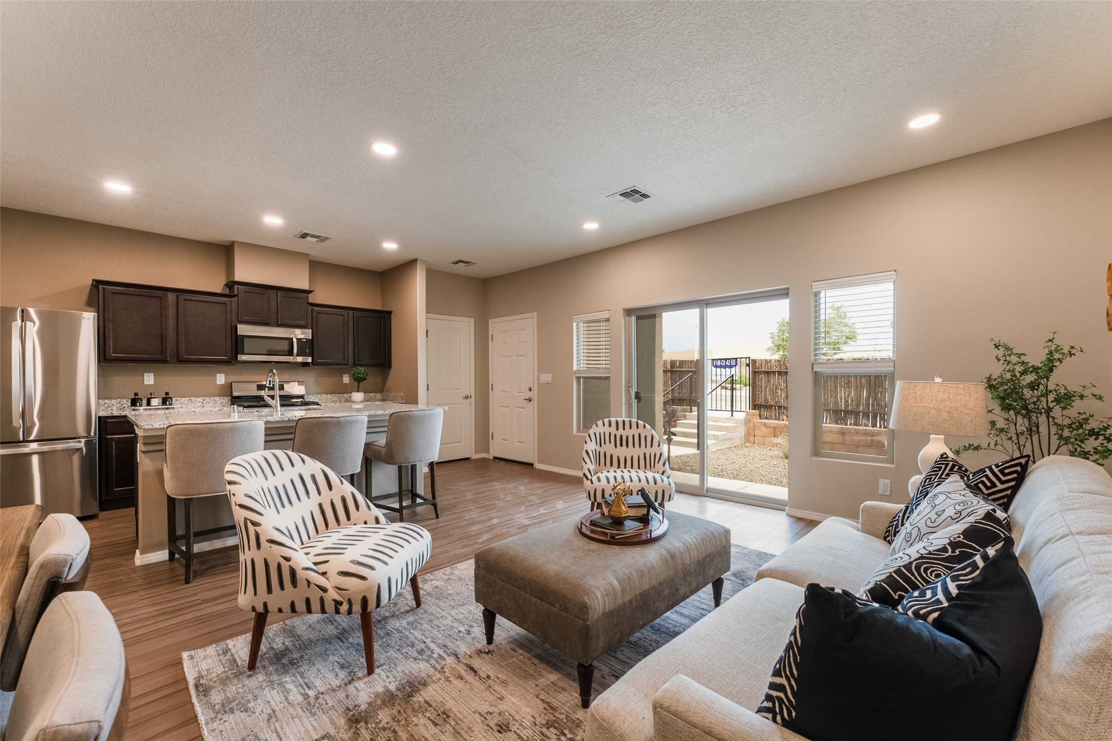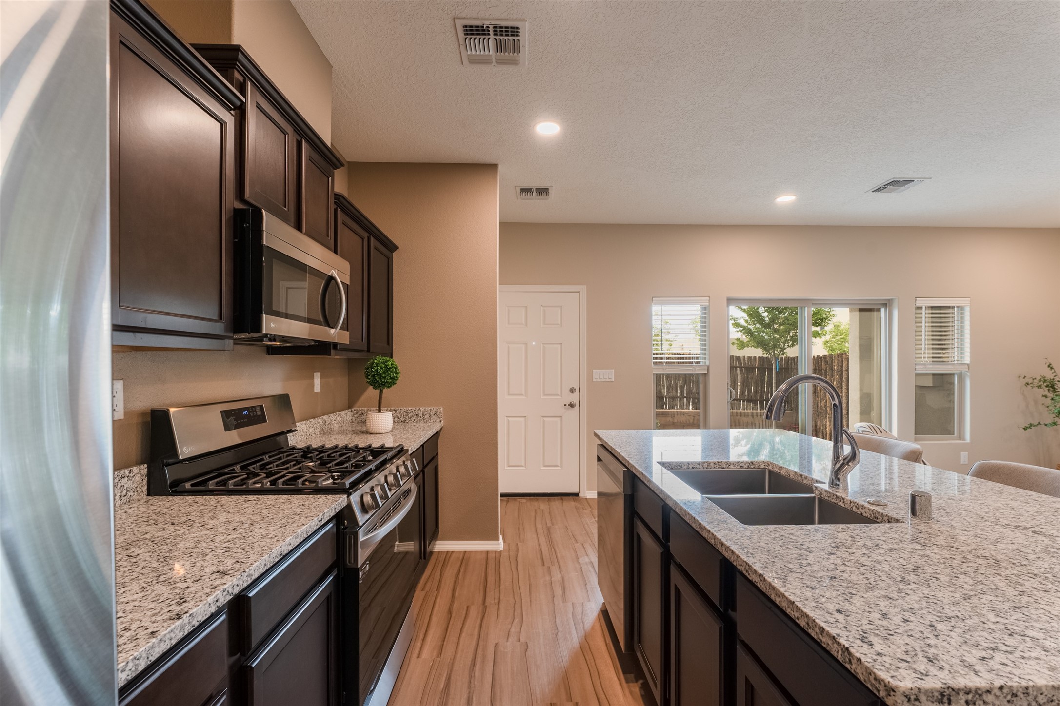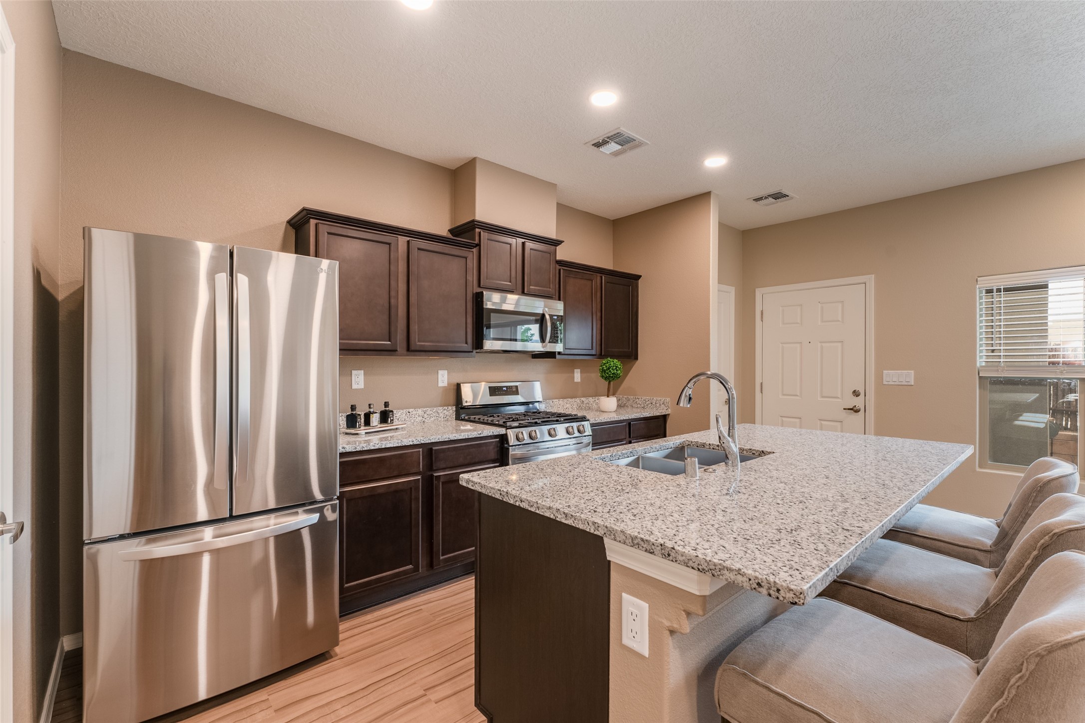 Huge price reduction on this move in ready new home in the new community of Tierra Contenta. This beautiful, new townhome community is conveniently located and incredibly priced.Very affordable pricing. First floor is an open floorplan with kitchen, dining area, powder bath and living area. Living area features glass sliders opening to a spacious back patio. Large walk in pantry and island. The second floor features all three bedrooms. The laundry room is conveniently located on the second floor as well. Primary bath features dual sinks and shower. Second upstairs bath features tub/shower. Large closets throughout. Primary bedroom has walk-in closet. Solid granite countertops in Kitchen and baths w/4" granite backsplash. Luxury vinyl tile on entire first floor, all bathrooms and laundry room. 2-10 Ltd 10yr Warranty + Exclusive Builder 1 yr warranty. Front and rear landscaping. Recessed LED lighting. Tankless water heater, programmable thermostat and much more.