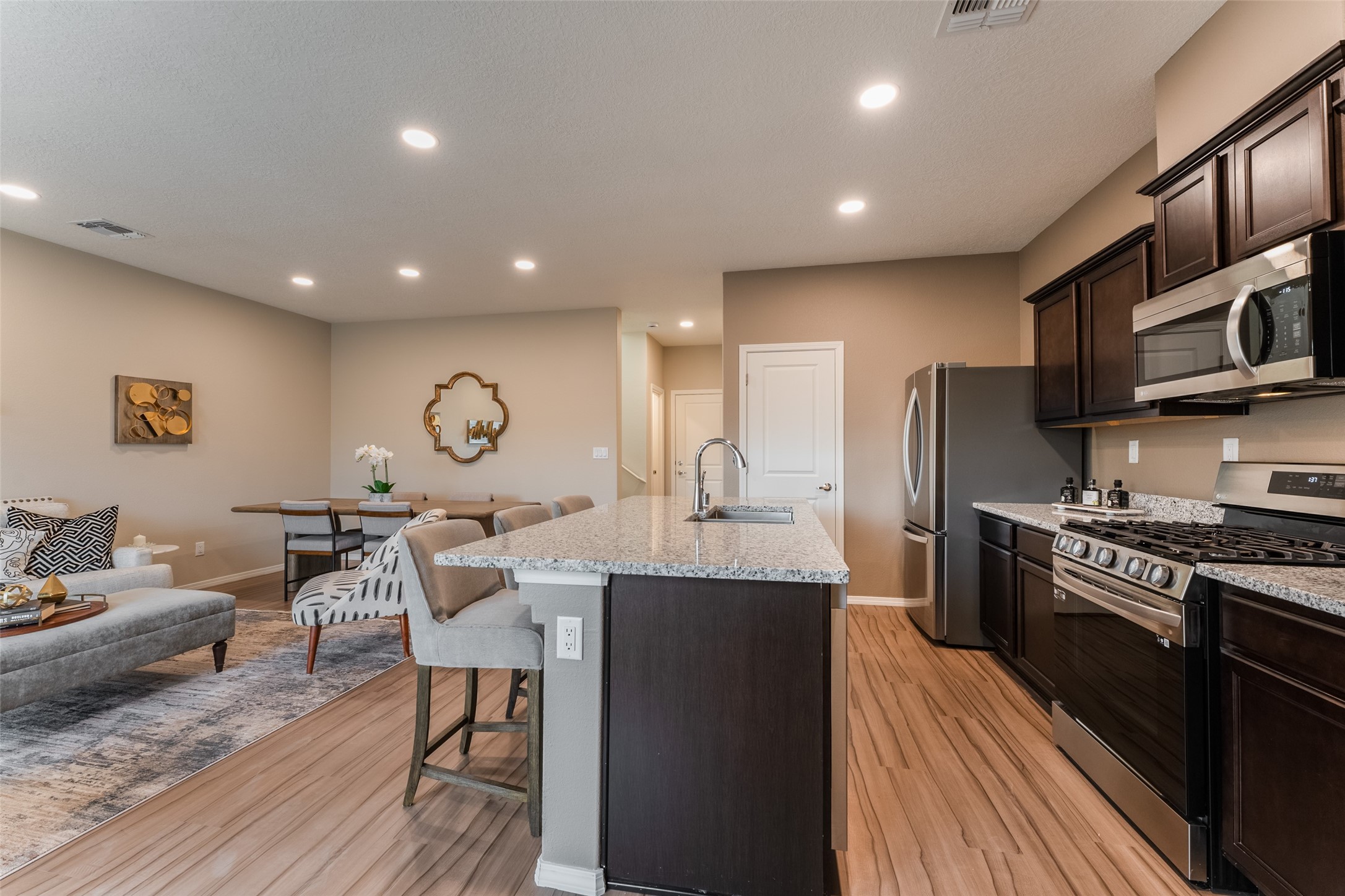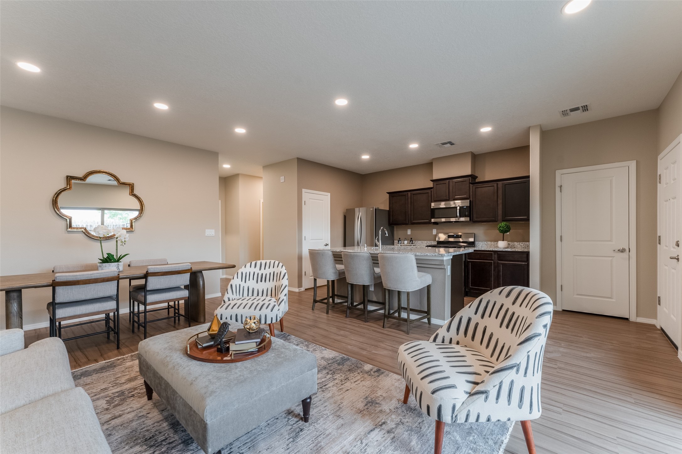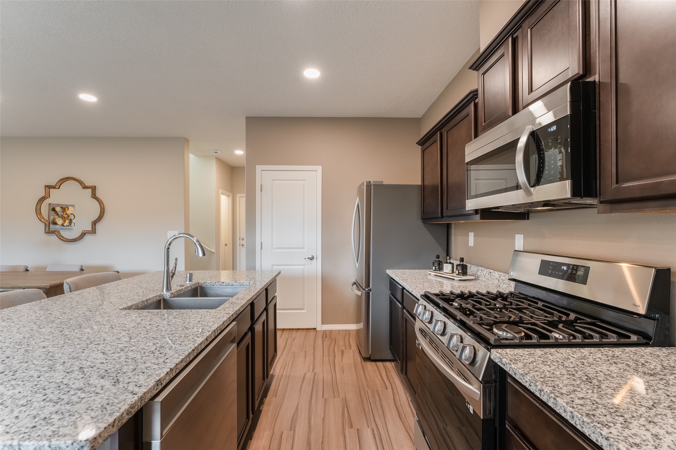 Huge price reduction on this move in ready new home in the new community of Tierra Contenta. This beautiful, new townhome community is conveniently located and incredibly priced.Very affordable pricing. First floor is an open floorplan with kitchen, dining area, powder bath and living area. Living area features glass sliders opening to a spacious back patio. Large walk in pantry and island. The second floor features all three bedrooms. The laundry room is conveniently located on the second floor as well. Primary bath features dual sinks and shower. Second upstairs bath features tub/shower. Large closets throughout. Primary bedroom has walk-in closet. Solid granite countertops in Kitchen and baths w/4" granite backsplash. Luxury vinyl tile on entire first floor, all bathrooms and laundry room. 2-10 Ltd 10yr Warranty + Exclusive Builder 1 yr warranty. Front and rear landscaping. Recessed LED lighting. Tankless water heater, programmable thermostat and much more.