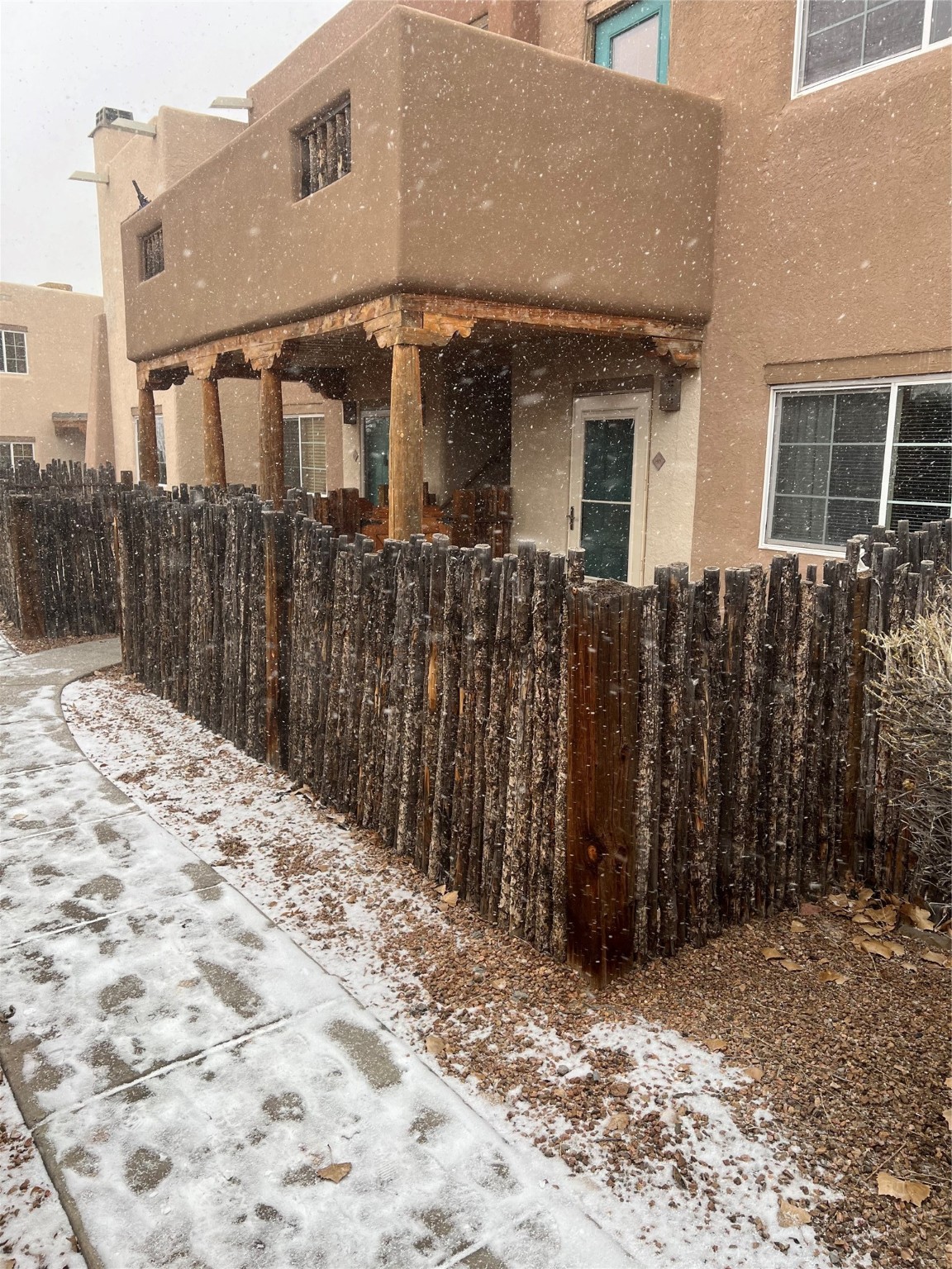 Come see this wonderful, gated Dos Santos two bedroom two bath condo on the ground floor~ no stairs! This condo has newer dark vinyl wood floors in most rooms except second bedroom which has nice carpet and kitchen has tile, evaporative cooling, tile countertops and full sized washer and dryer. Convenient to I-25, shopping, medical accommodations, restaurants and more! The HOA includes maintenance of the seasonal saline water pool, year round hot tub and gym and community maintenance, roof maintenance, exterior maintenance, water, sewer and trash, as well as security and landscaping. There are also BBQ grills and a fenced dog run for you and your furry friend's convenience! A dedicated parking spot can be obtained from the office for a one time fee. Schedule to see this condo today!