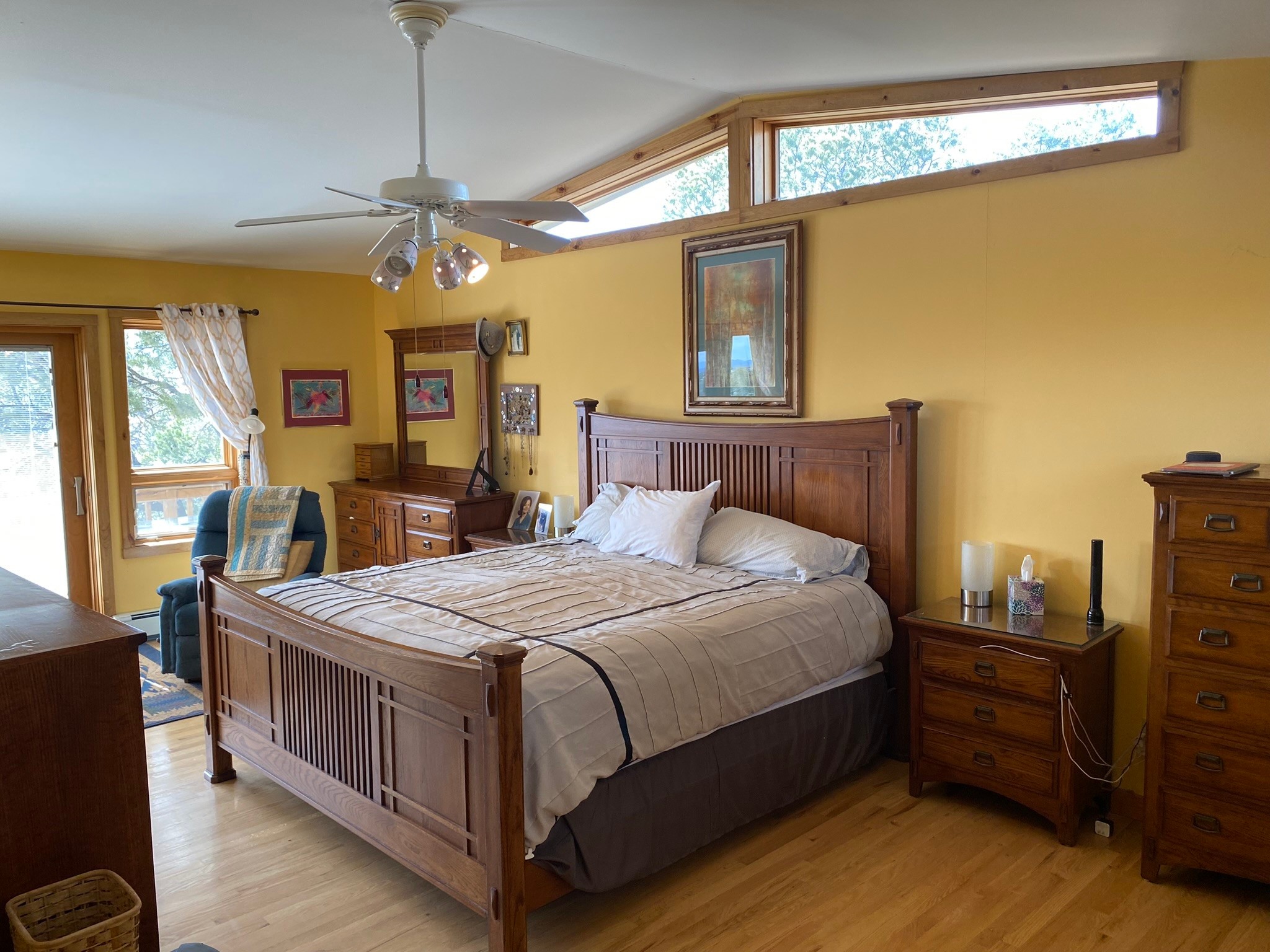 This house has it all! Room to put four cars in the garage, tons and tons of storage, gardening shed, an unfinished basement, drought resistant grass, and a view that goes on for miles! Enter into the beautifully maintained home and immediately see the pride in ownership. To your left you'll find one of two living areas complete with a wood burning fire place. To your right, an updated kitchen boasting granite counter tops and cherry wood cabinets. Upstairs you will find three of four bedrooms including a HUGE primary suite and closet. Two bathrooms service the upstairs bedrooms. Oak floors beneath your feet on main and second floor. Downstairs, on the well maintained cork floors, you'll find an additional bedroom and bathroom, plus a bonus living area, another wood burning fire place and access to the unfinished basement area. And this is just the beginning! The attached garage + shop space can hold 4 cars, could be used as a workshop and garage, tons of opportunity! Step outside and have your breath taken away with views of the Los Alamos Ski Hill, The Sandia Mountains, Sangres, Ortiz and St. Peter's Dome! Solar panels on the roof provide a nice break in the utility bills! In addition, you'll find drought resistant grass, a place for your fire pit, and additional storage for all of your gardening / lawn tools. A