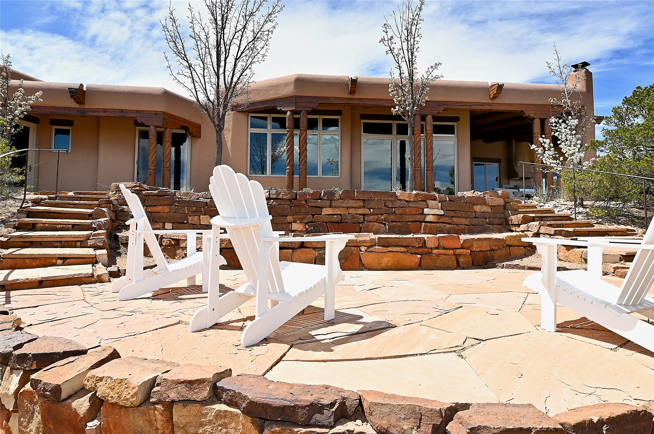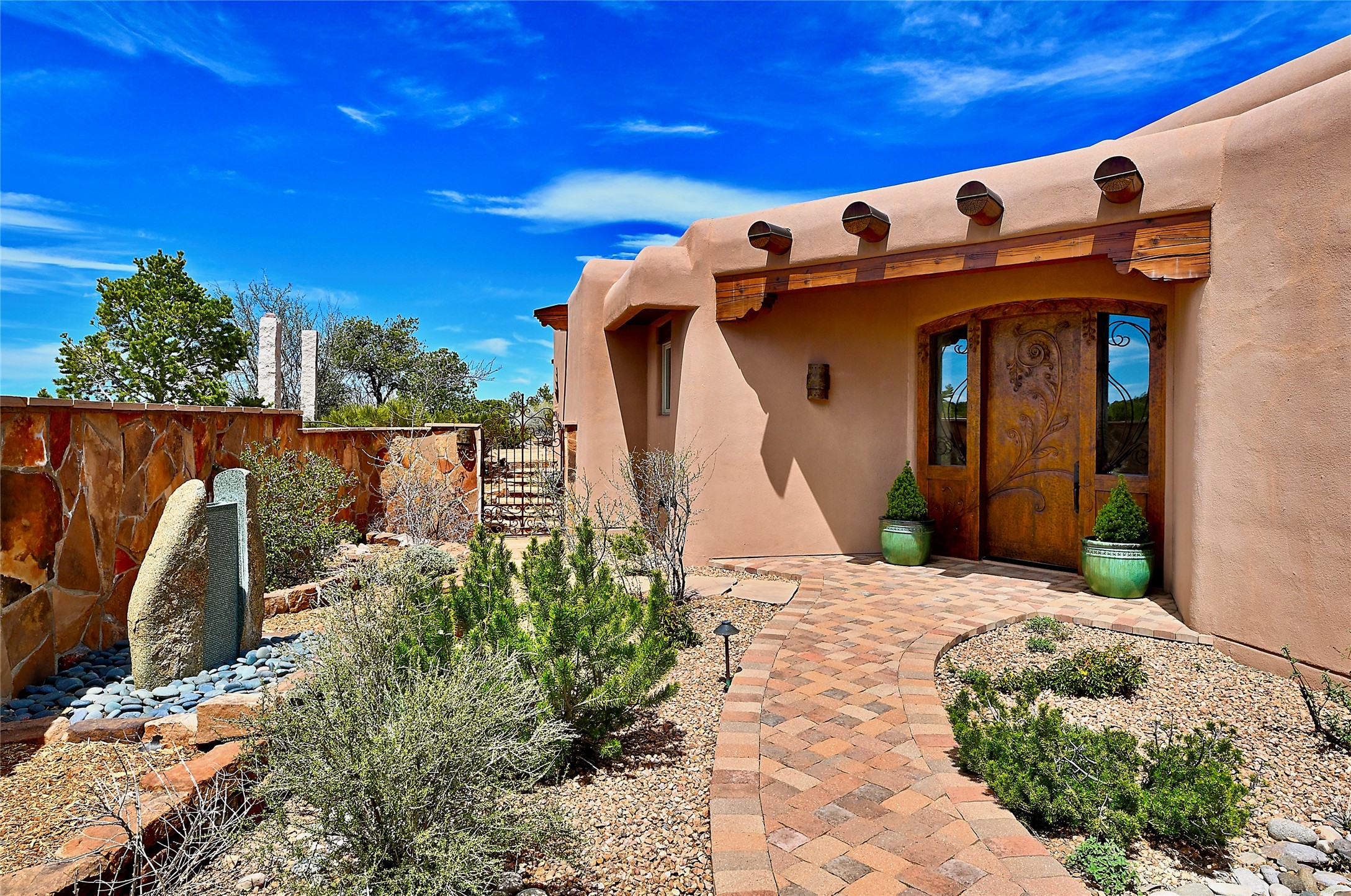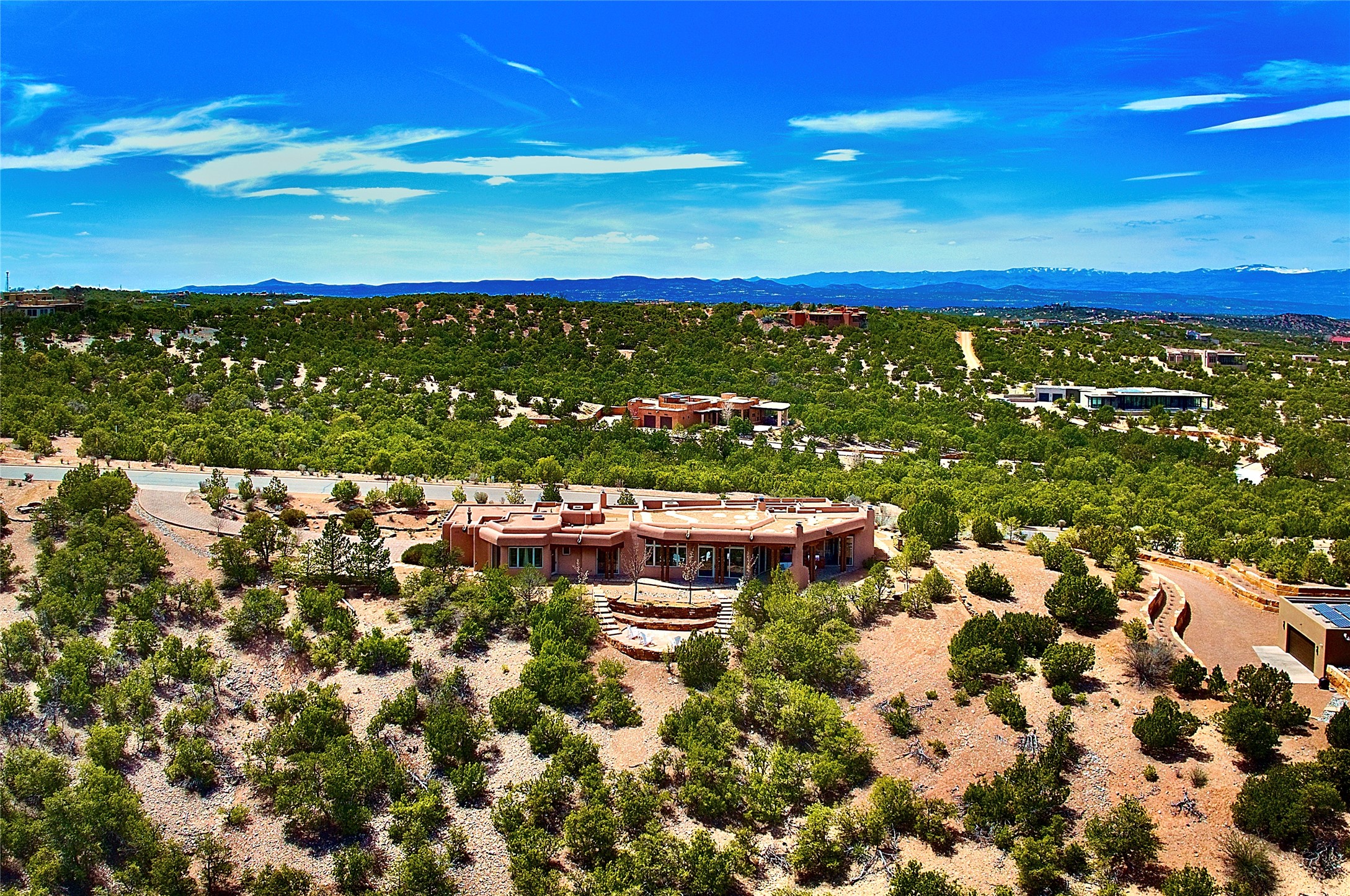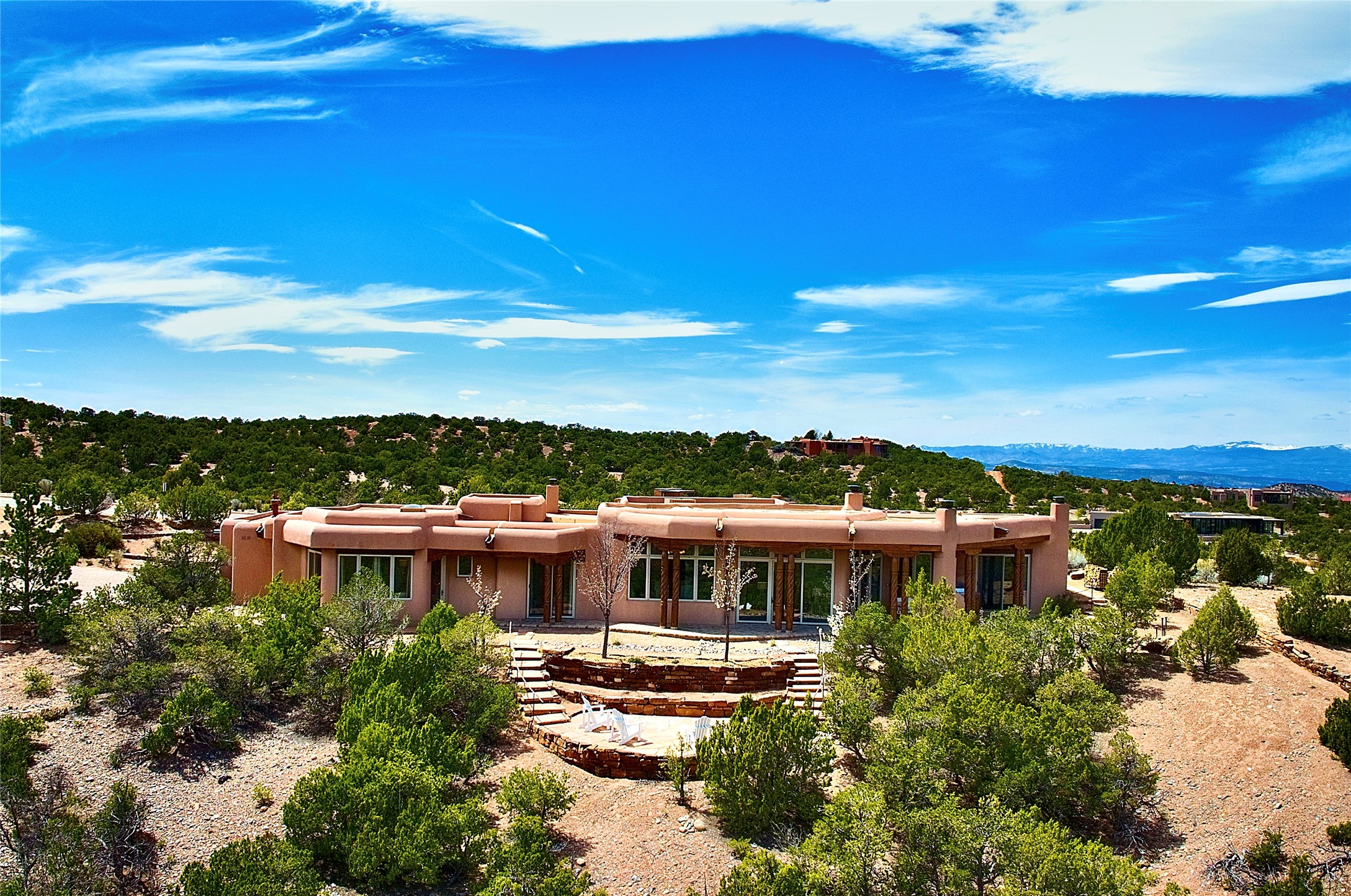 Exquisite single level Monte Sereno Home sited on one of the finest and highest lots within the Monte Sereno subdivision, capturing unobstructable and endless views of the Sangre de Cristo Mountain range and beyond. Rare to find such a spectacular lot and location of this caliber anymore! The home features a grand floor plan, perfect for entertaining. The open, great room concept, coupled with floor to ceiling windows, simply envelopes all public spaces with magnificent views. Additionally, the portal and outdoor areas are easily accessed from the living and dining areas for genuine indoor/outdoor comfort and entertaining. Although the house is grand in nature, there remains a wonderful separation of space between the sequestered, and intimate primary suite and all other bedroom suites. The owners suite bath features a jacuzzi tub, steam shower and sauna - the perfect respite! Completed in 2007, this Southwest Pueblo style home was crafted by legendary builder, John LeMaster and features the finest of finishes with great flair. The kitchen rivals all great kitchens but commands beautiful views from every location within it! A large bar height counter surrounds the kitchen for perfect communication with guests while cooking! Perfect center island with warming oven helps with prepping, storage and heating while cooking. Beautiful smooth, hand troweled sculptured plaster walls, travertine floors and gorgeous, detailed mosaic tile work throughout just touch the surface of this lovely home.