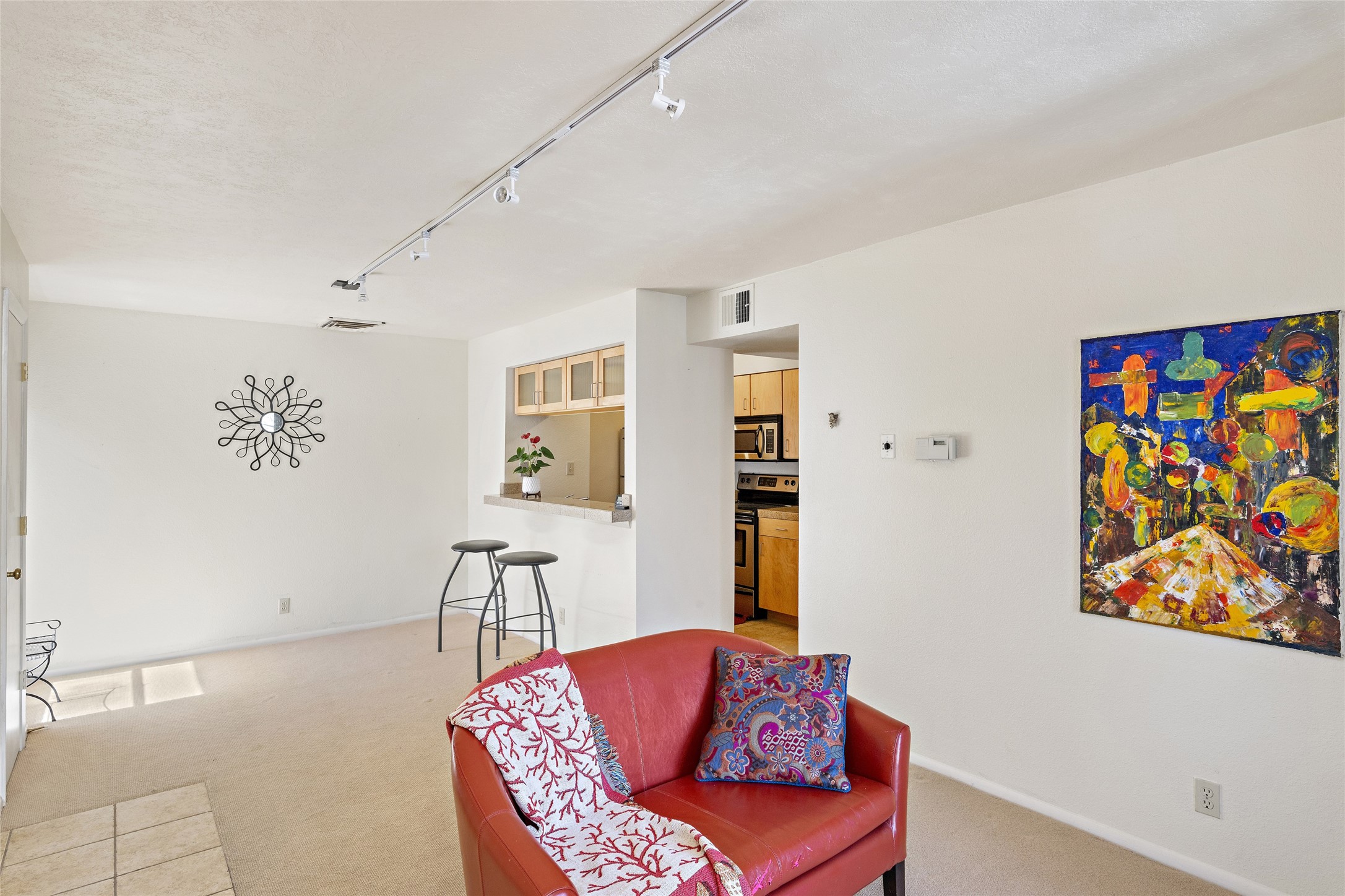 This lovely condo is on the north side of Santa Fe and is just a 5 minute drive to the Historic Plaza. It is on the second level (top level) of the building which allows for greater privacy and views of the treetops and mountains beyond. Both bedrooms are spacious with large closets and the kitchen and baths are well appointed. The unit has been very lightly used and is in terrific condition. There is ample parking and the clubhouse is nearby which offers a pool, spa and fitness plus well lit and clean laundry facilities.
