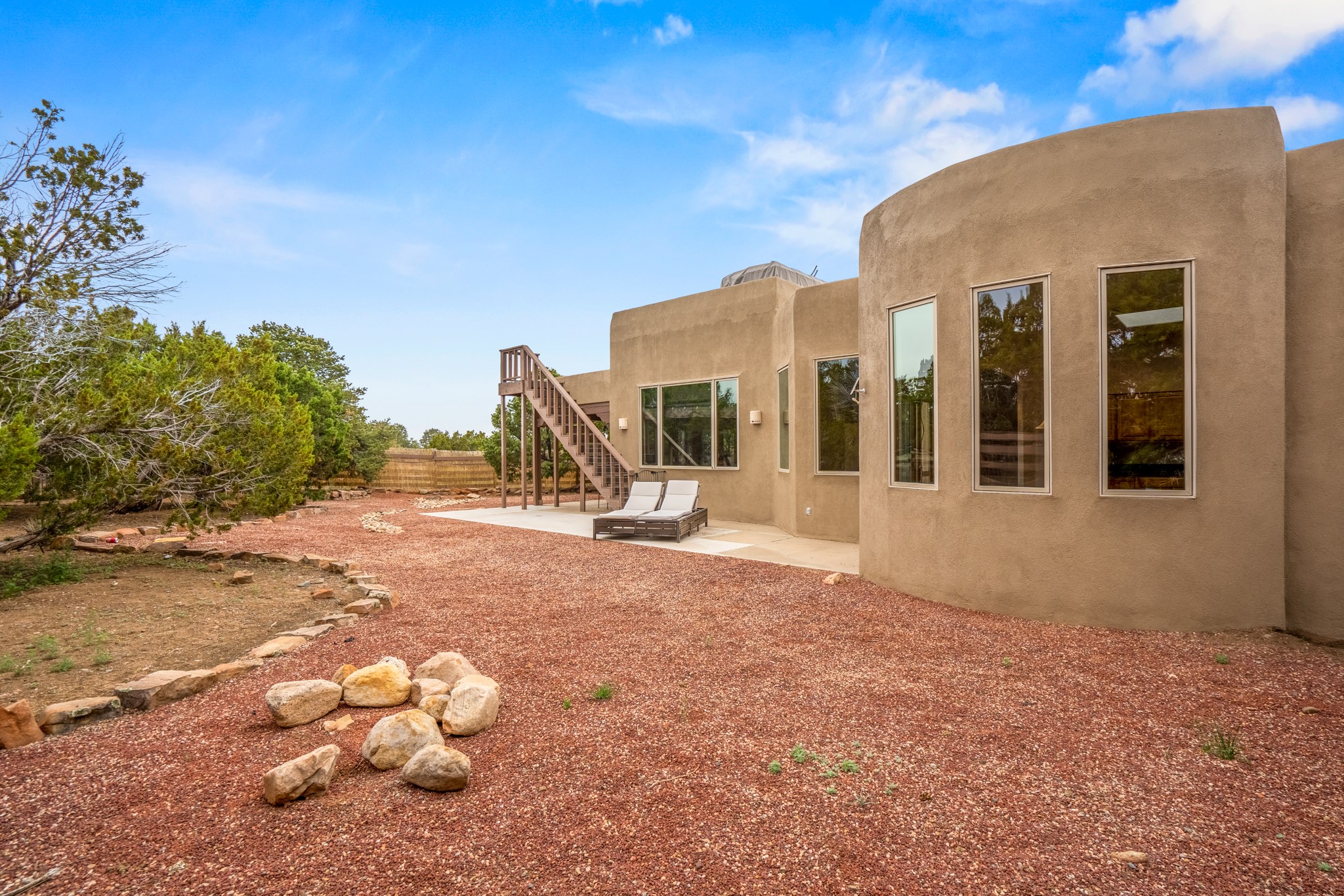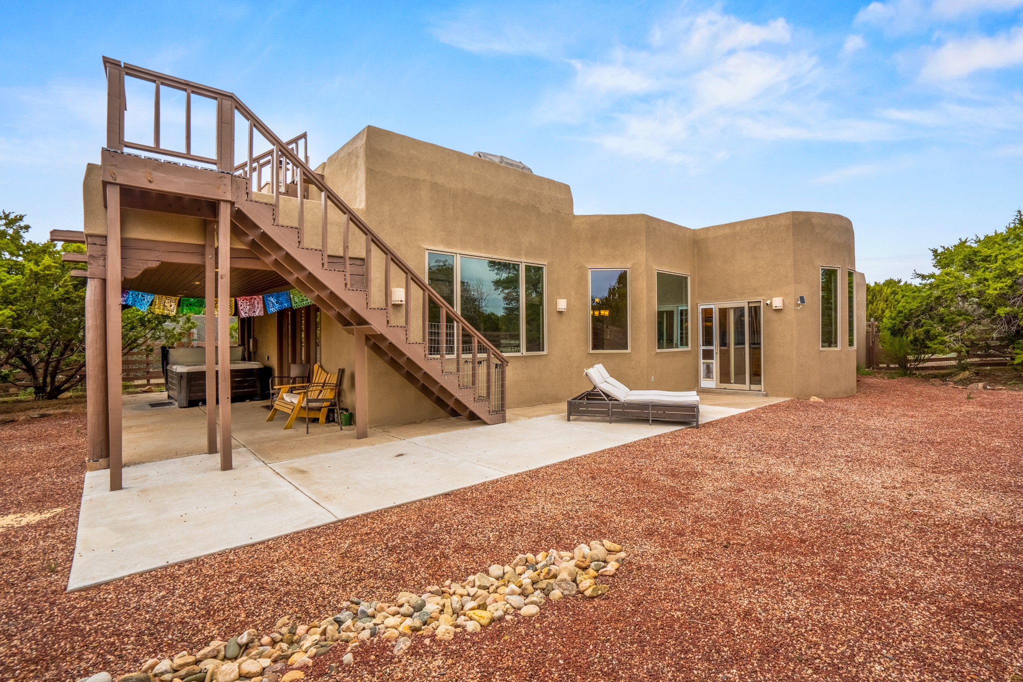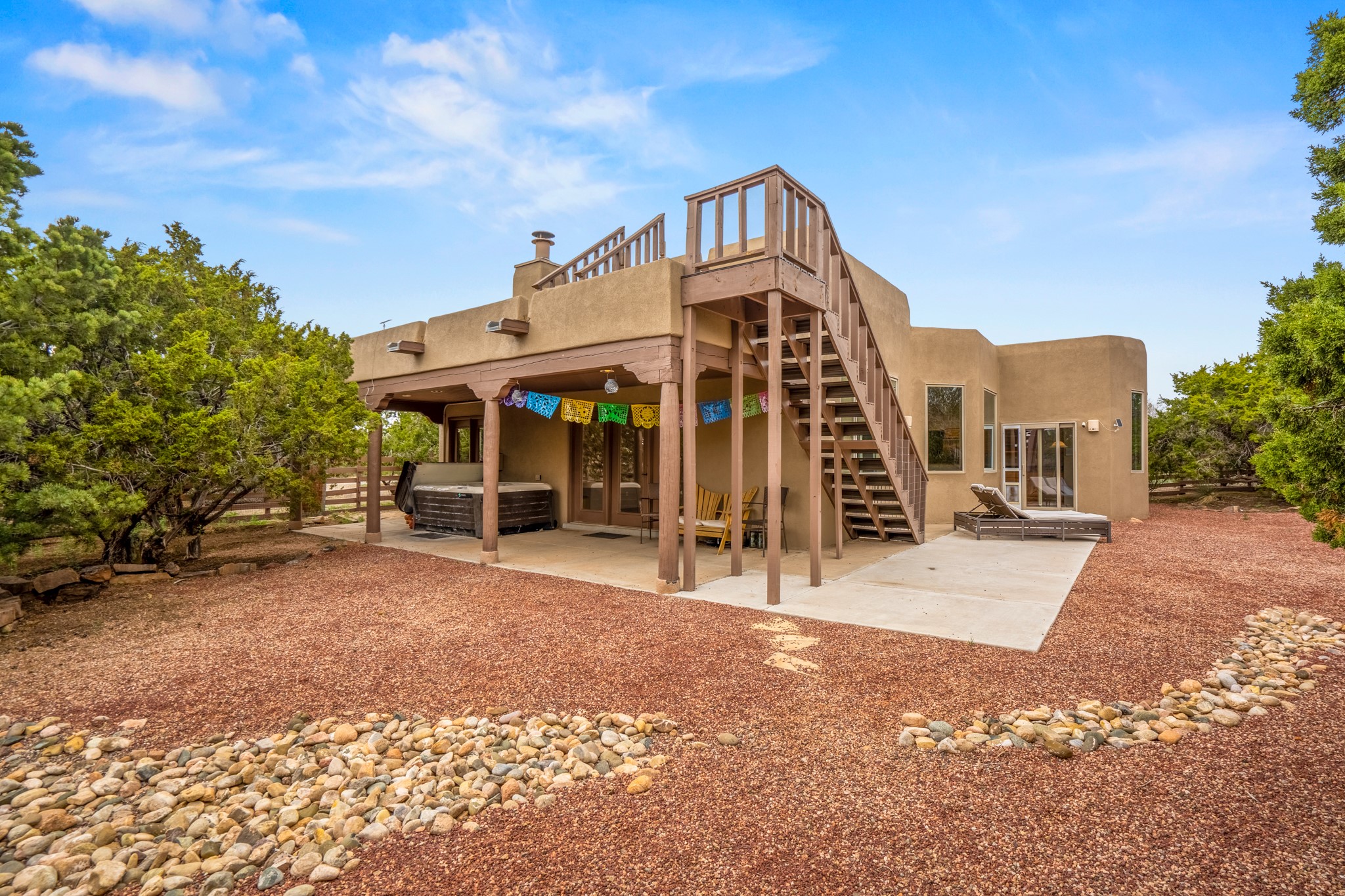 This beautiful home along with a detached studio sits on a generous 4.4 acre lot in the La Paz Subdivision. Adjoining the detached studio is a fenced in Motorcoach parking area with 220v. As you enter the home, you walk into a light filled living room with tall ceilings and an open living, dining, kitchen area with multiple French doors to the outdoor living spaces. Besides the detached studio, there is also a bonus room in the home before you enter the attached 2 car garage which could be used as a gym or office. The home also has a roof deck with a 360 degree view and is a 5 minute walk to the horse stables of Eldorado.