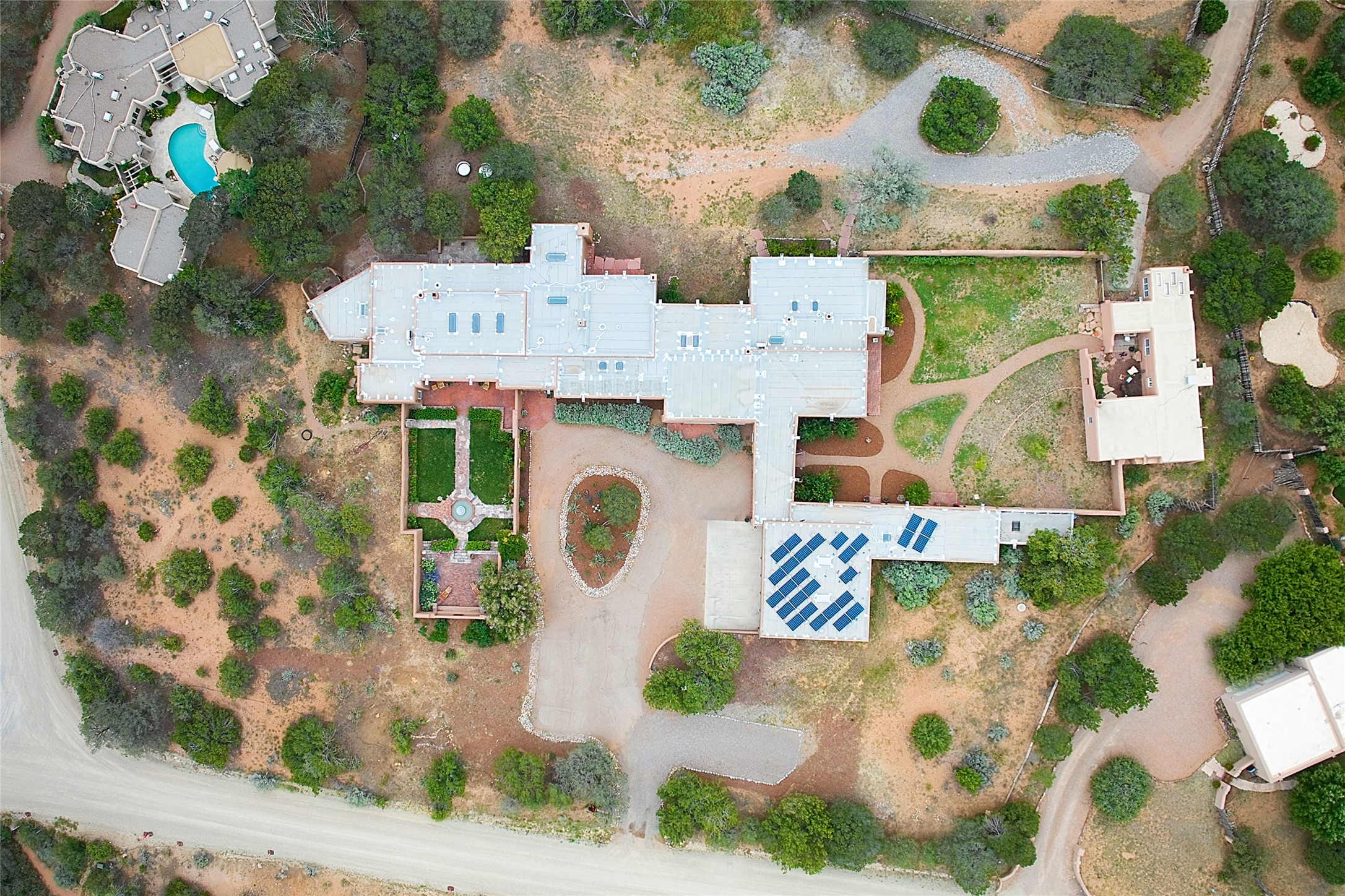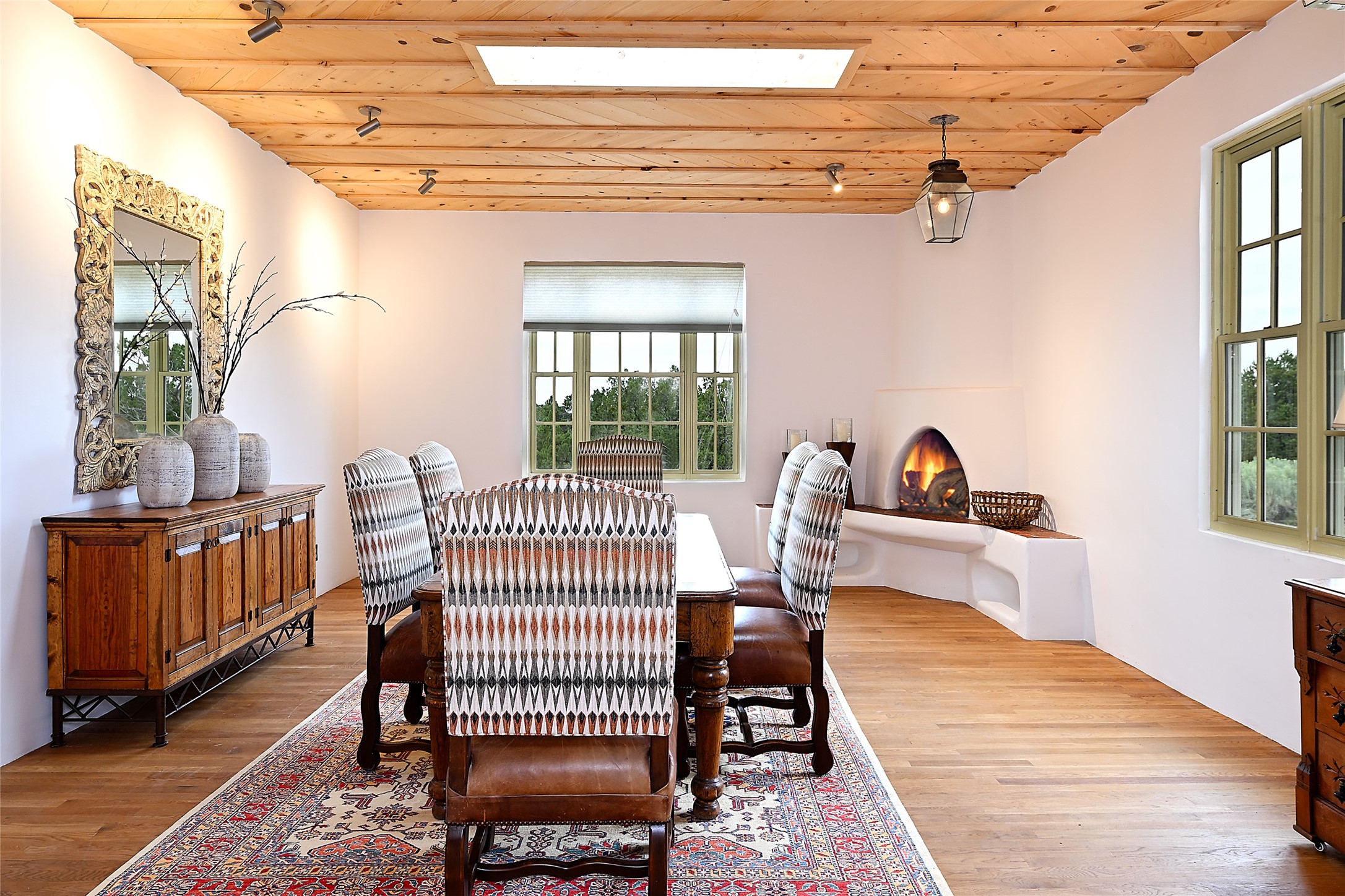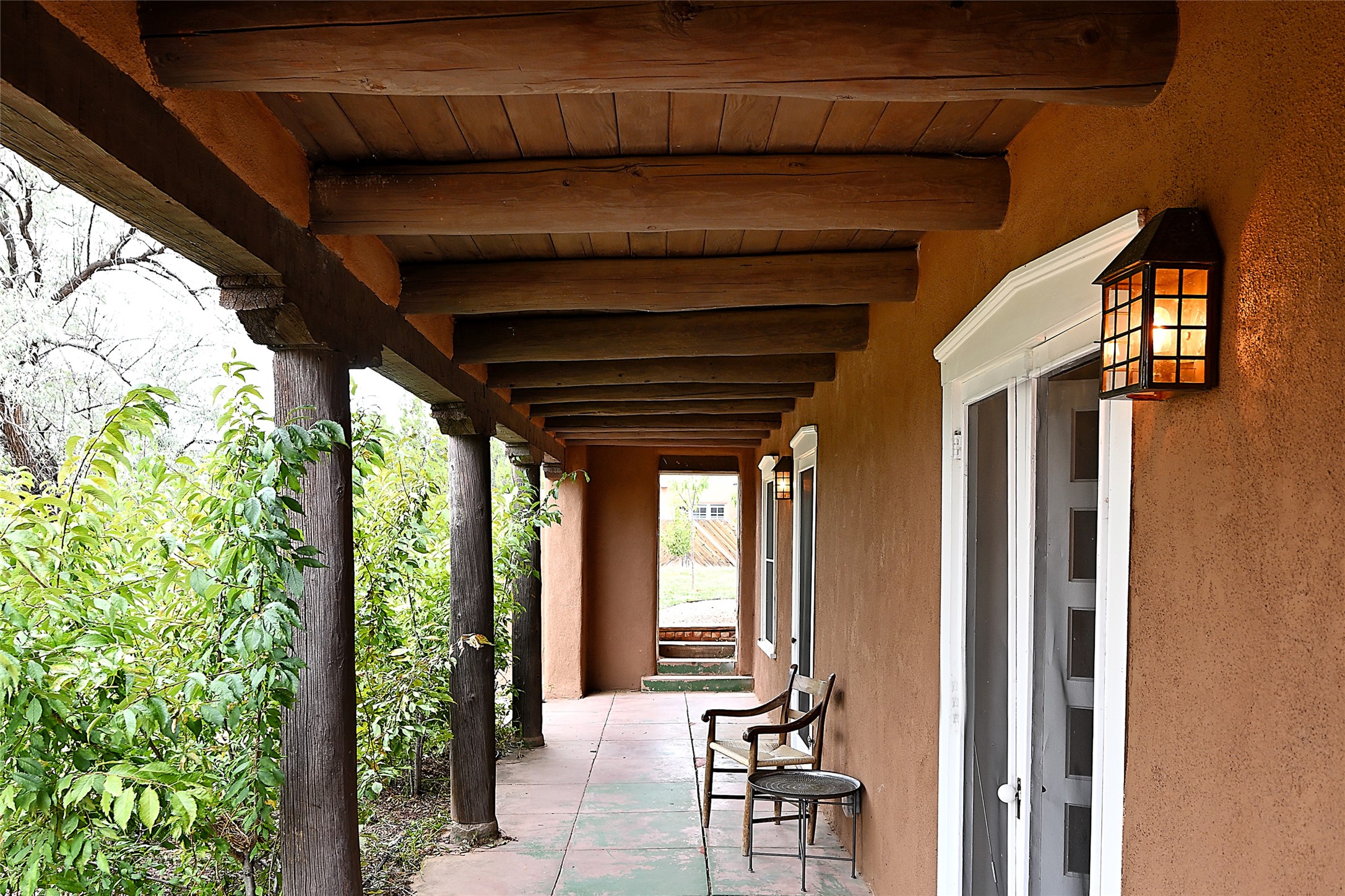 Designed by renowned architect John Gaw Meem and built in 1929, the historic Proctor Compound is sited on two acres in Sun Mountain Estates, on the edge of Museum Hill, and comprises a primary residence, a two-bedroom casita, and a spacious studio. The approximately 6,500-square-foot home is introduced by a courtyard with a classical fountain, a vintage fresco, flagstone terraces, and stunning mountain views. It features four bedrooms, six baths, five portals, a media room, a grand sala, formal dining room, spacious kitchen with superior appliances, a breakfast area, and two offices, laundry rooms, and sunrooms. The two-bedroom casita--which provides two baths, laundry facilities, a private courtyard, and the studio--which offers a full bath, a kitchen, and laundry facilities--lie across a second courtyard with fruit trees. While retaining the 1929 Pueblo Revival design elements and understated elegance for which Meem was known, the property has been carefully rejuvenated with updated systems: plumbing, electrical--including an 11.5 kilowatt solar array--heating, and cooling as well as a new roof, stucco, and windows. Contributing to the distinctive aesthetic are eight fireplaces, bancos, hand-carved doors, oak floors, vigas, beams, corbels, and replastered interior walls with original contours and soft edges. The skylit three-car garage could also serve as a workshop or studio. This is a rare opportunity not to be missed.