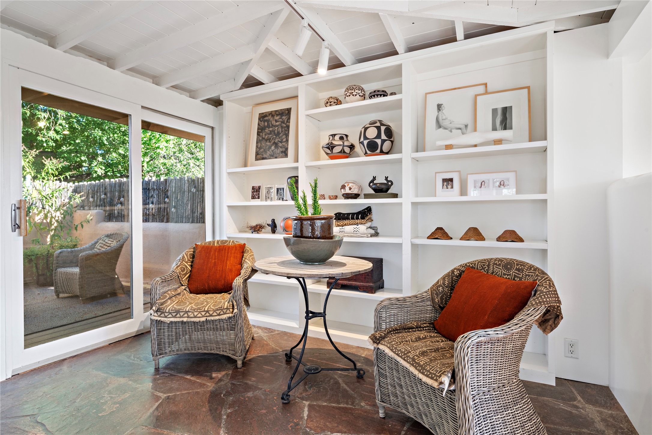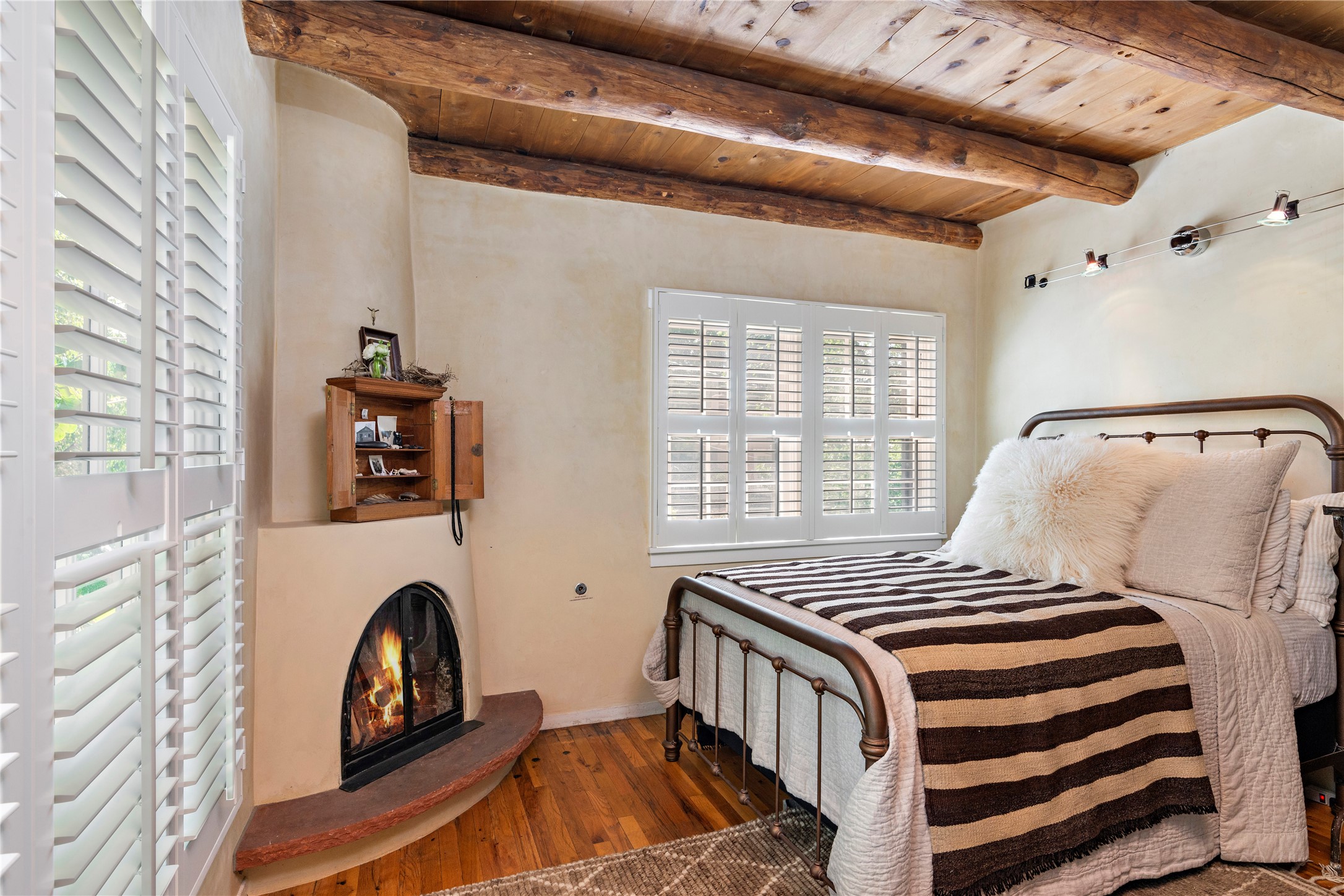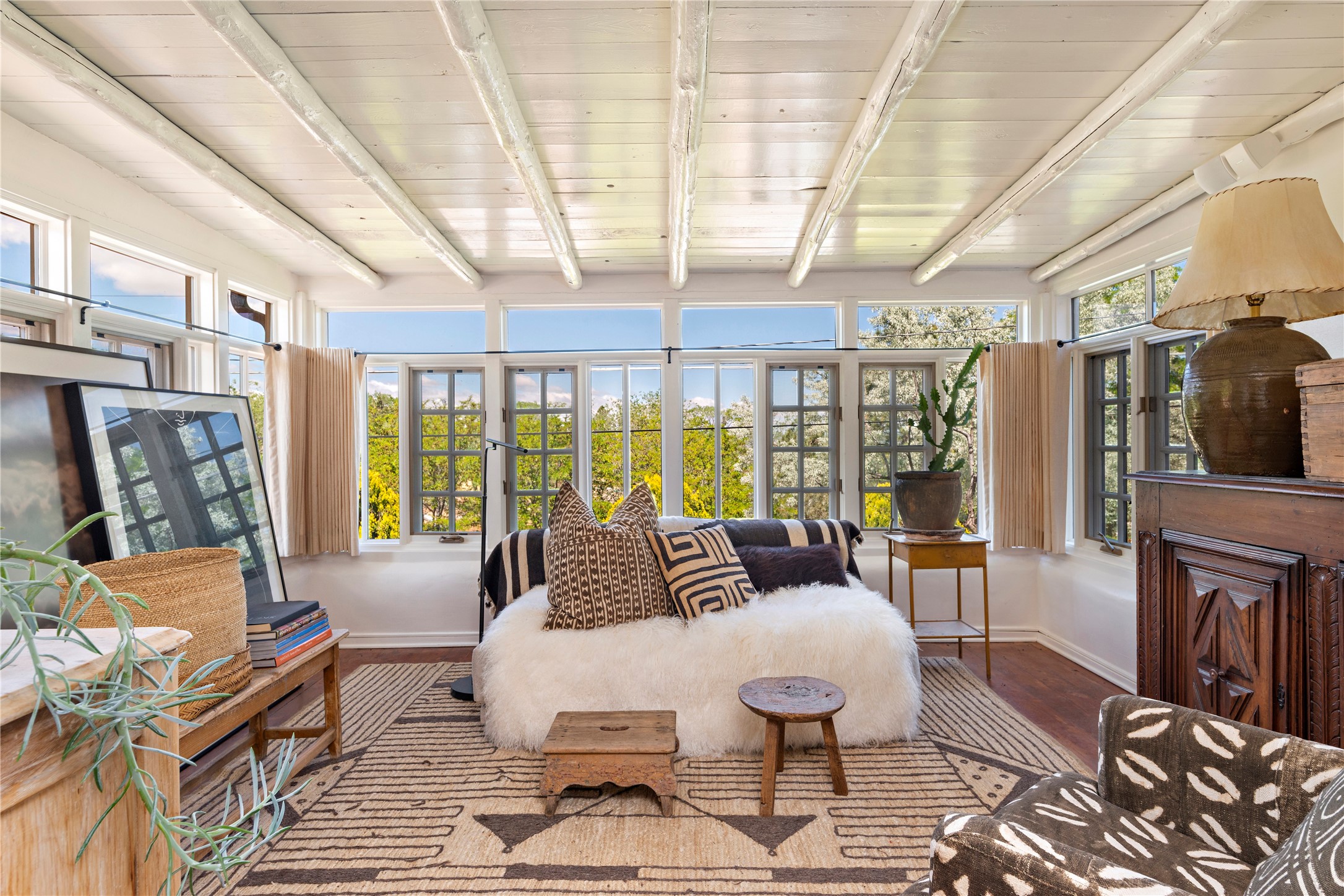 Located on a quiet lane in the Historic Eastside this condo is not to be missed. It sits above the surrounding properties giving the feeling of living in a treehouse. Sunrise and sunset skies can be enjoyed year round. Immaculately maintained with beautiful details and a short walk to Canyon Road art galleries and restaurants makes this property special. Mini splits for cooling. New roof with transferable warranty.