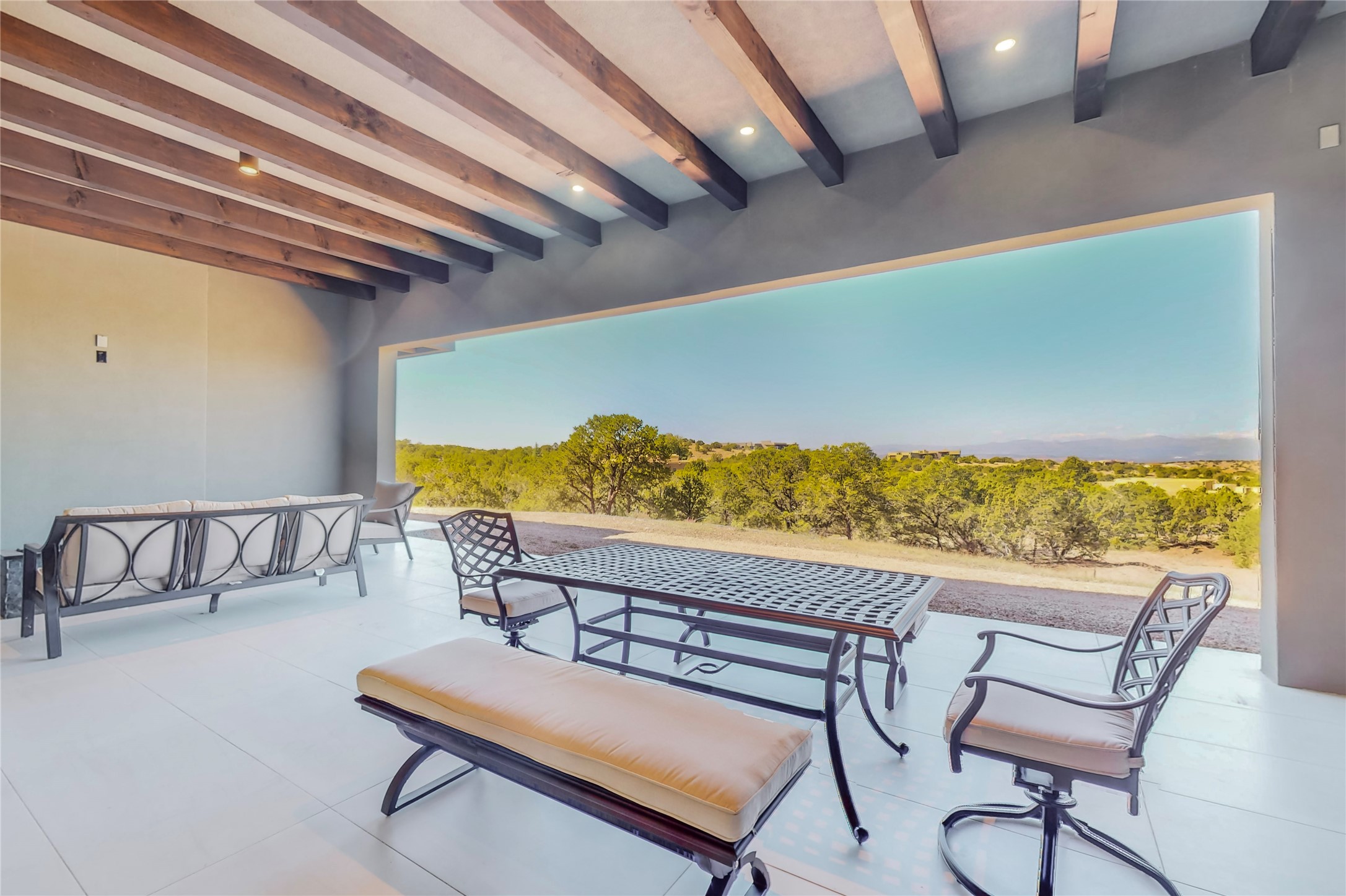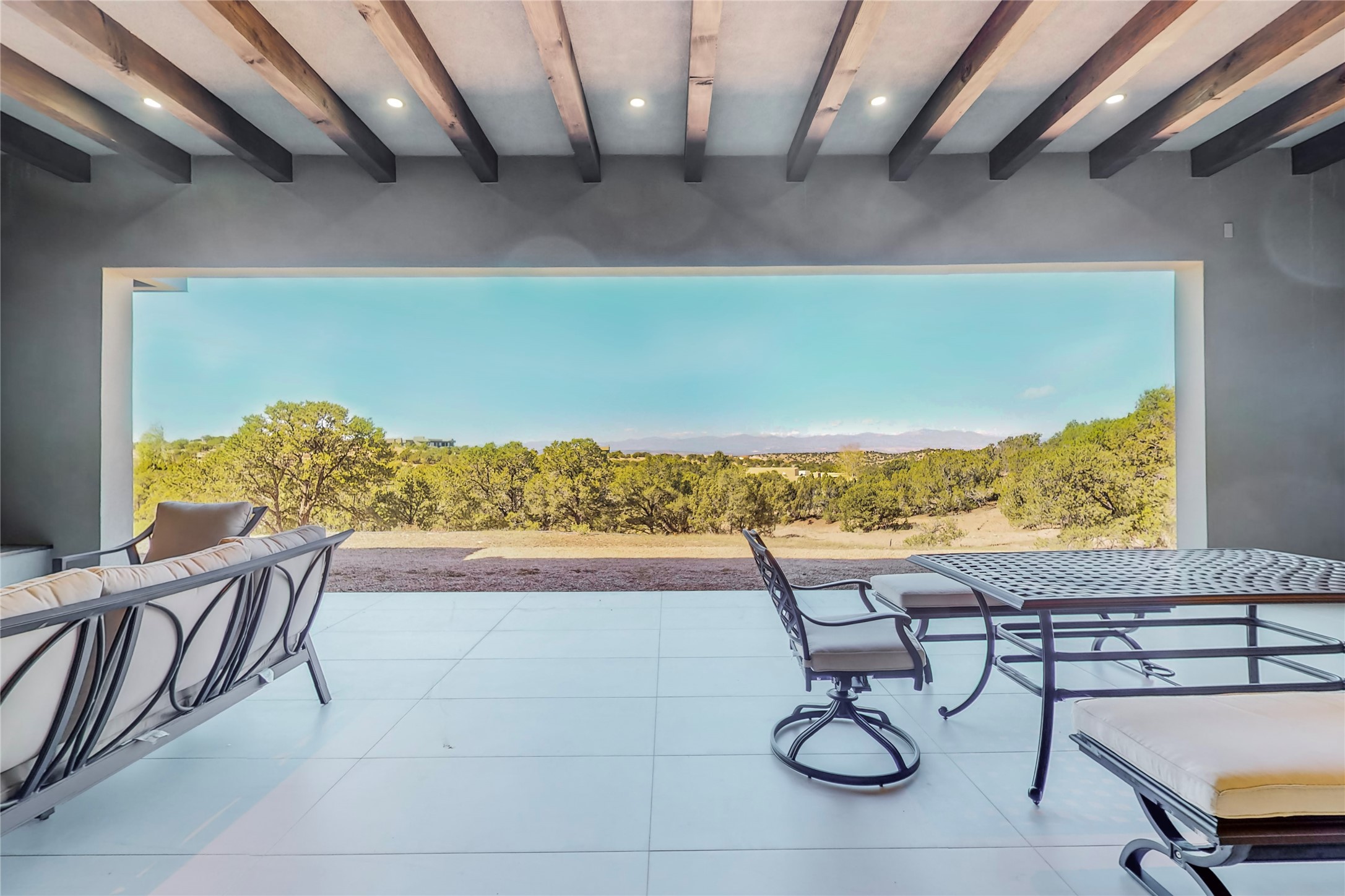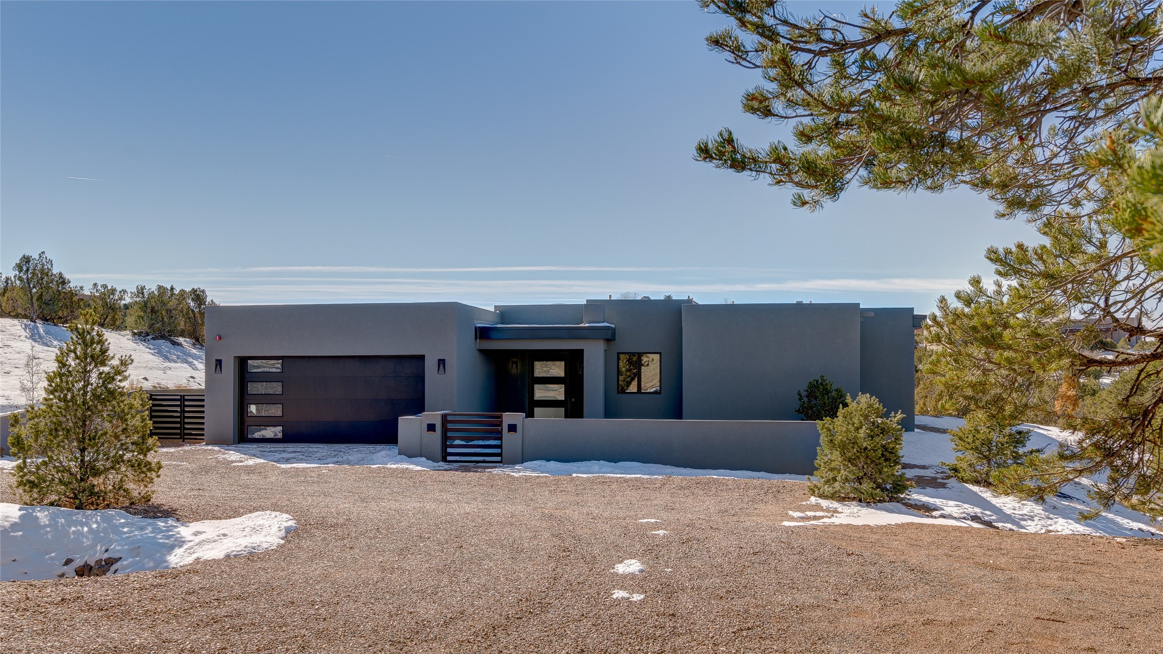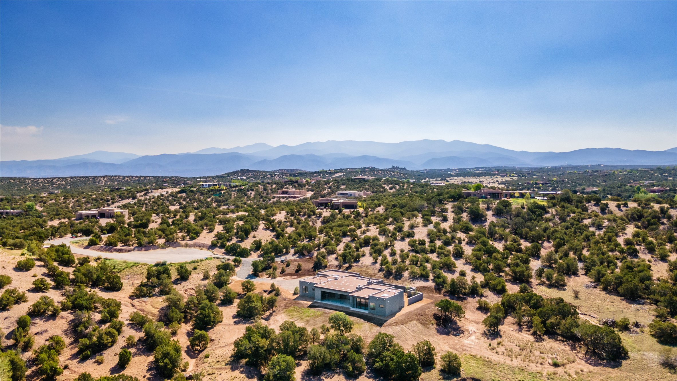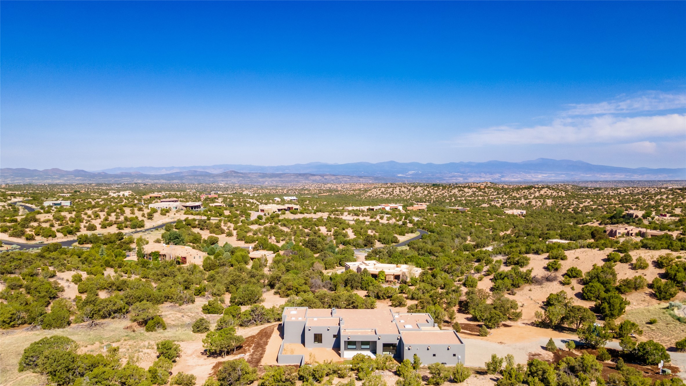 Come experience the latest custom home by Santa Fe Builders Construction, LLC. Set on one of the last remaining lots in the exclusive Sundance Ridge community. This enclave of exceptional custom homes is married to Santa Fe's most sought after land of rolling hills, unparalleled views and privacy. Your new home is at the end of a private cul-de-sac, tucked in on a ridge and overlooking the Jemez mountain range. Delivering stunning sunsets, and starry nights; it feels like you own the west. The soft pueblo contemporary features an open concept floor plan, exquisite kitchen and butler's pantry, luxurious master suite, plus two additional bedrooms, and a heated garage. Glass panel, vanishing pocket doors in the great room blur the lines between indoor and outdoor space, leading you to an expansive, view filled, covered portal with outdoor kitchen and fire pit. Enjoy instant comfort in any season with in-floor radiant heat and refrigerated air. Located just 15 minutes from downtown means quick access to everything Santa Fe while still feeling worlds away.