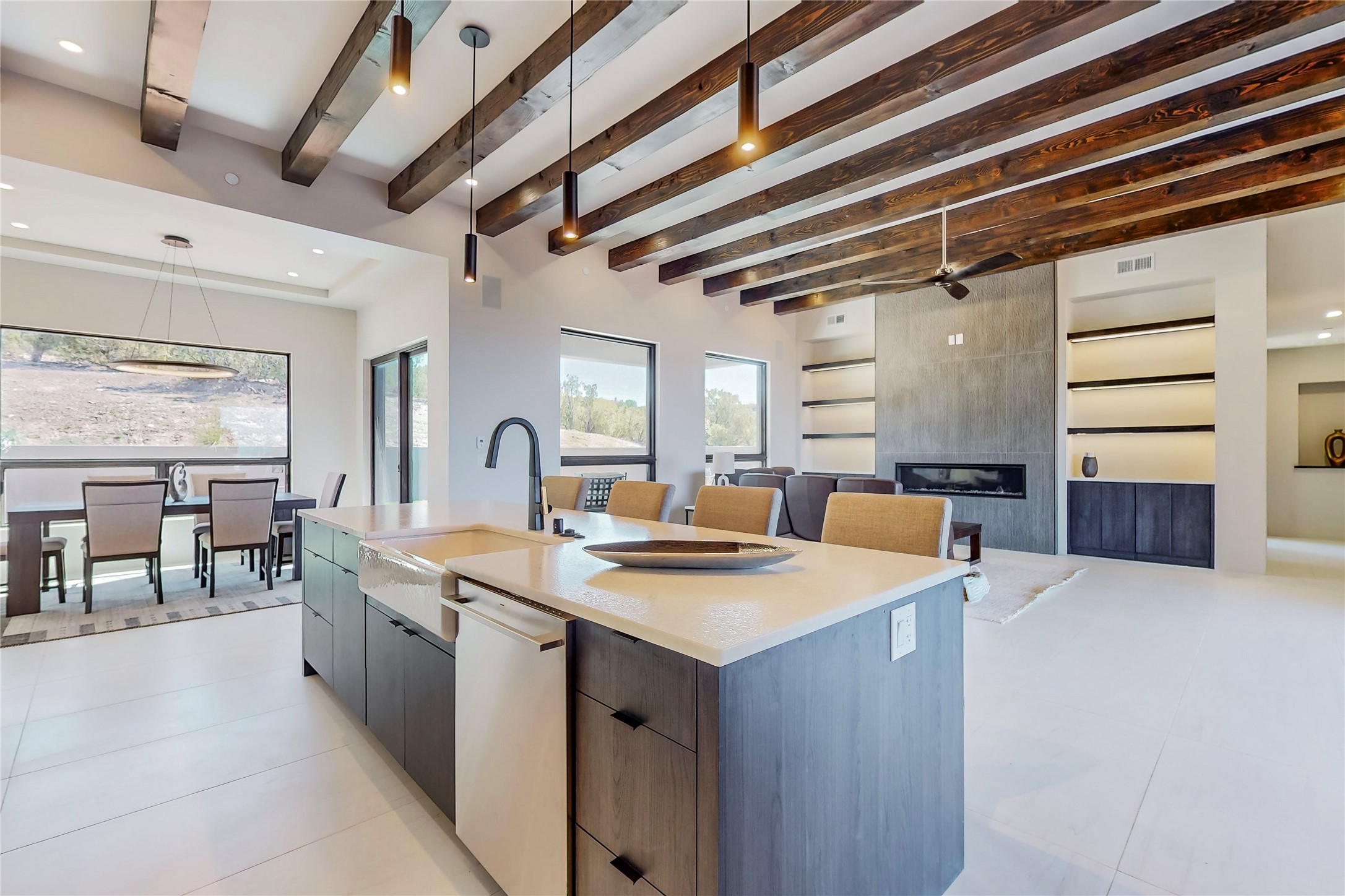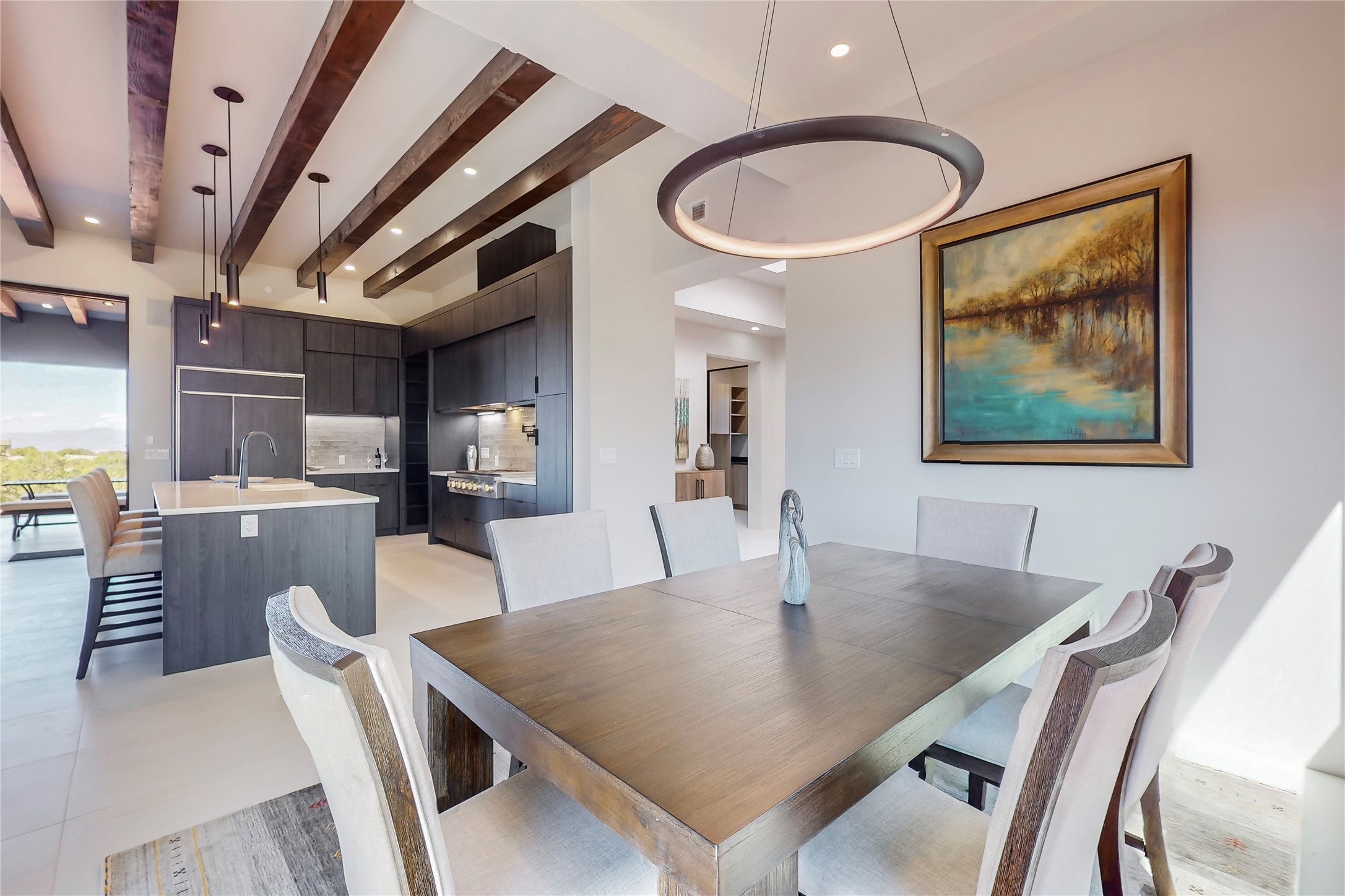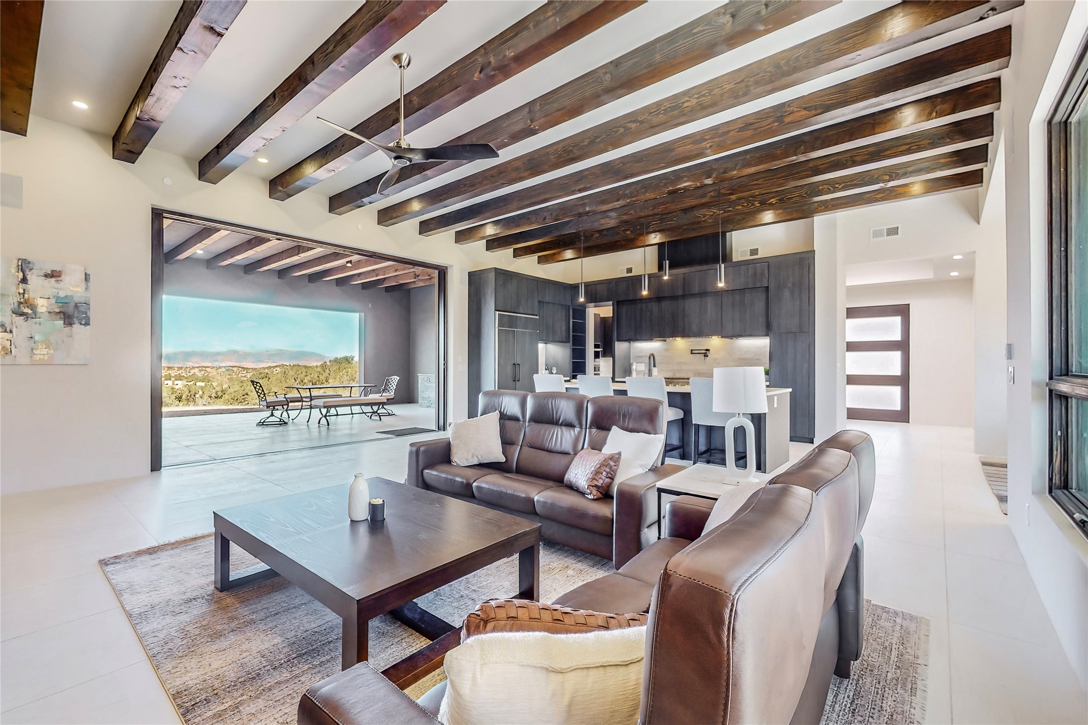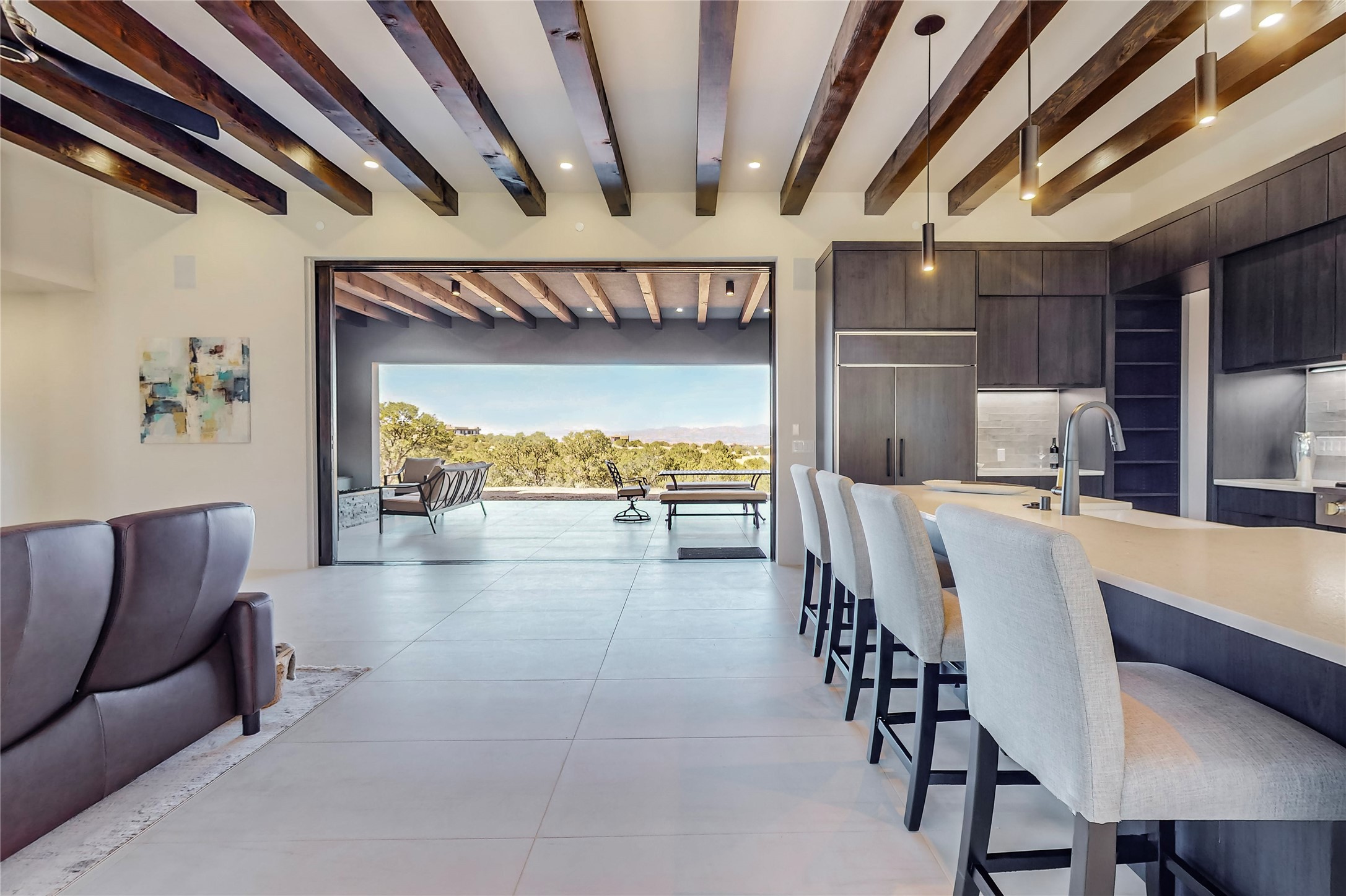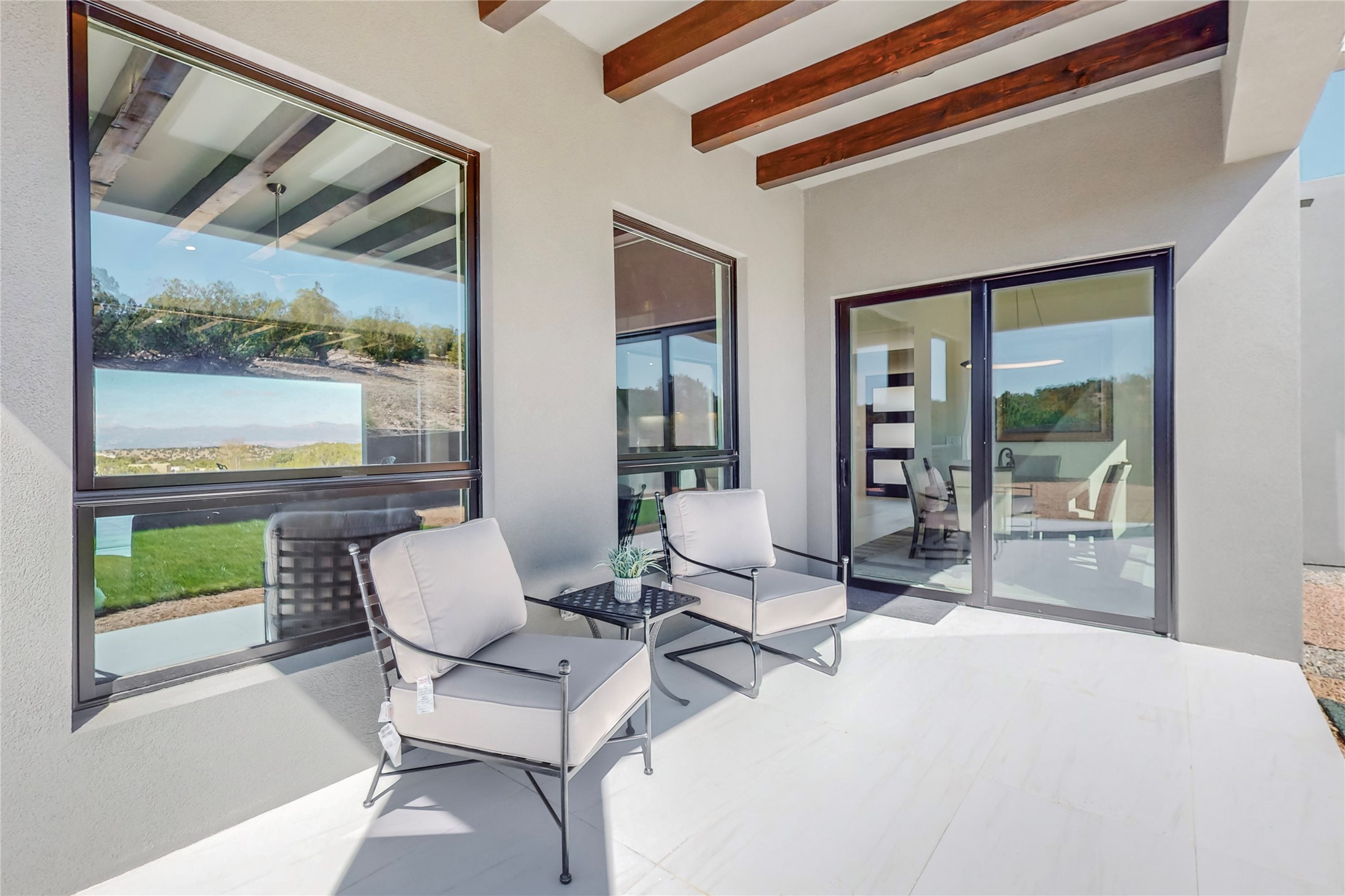 Come experience the latest custom home by Santa Fe Builders Construction, LLC. Set on one of the last remaining lots in the exclusive Sundance Ridge community. This enclave of exceptional custom homes is married to Santa Fe's most sought after land of rolling hills, unparalleled views and privacy. Your new home is at the end of a private cul-de-sac, tucked in on a ridge and overlooking the Jemez mountain range. Delivering stunning sunsets, and starry nights; it feels like you own the west. The soft pueblo contemporary features an open concept floor plan, exquisite kitchen and butler's pantry, luxurious master suite, plus two additional bedrooms, and a heated garage. Glass panel, vanishing pocket doors in the great room blur the lines between indoor and outdoor space, leading you to an expansive, view filled, covered portal with outdoor kitchen and fire pit. Enjoy instant comfort in any season with in-floor radiant heat and refrigerated air. Located just 15 minutes from downtown means quick access to everything Santa Fe while still feeling worlds away.