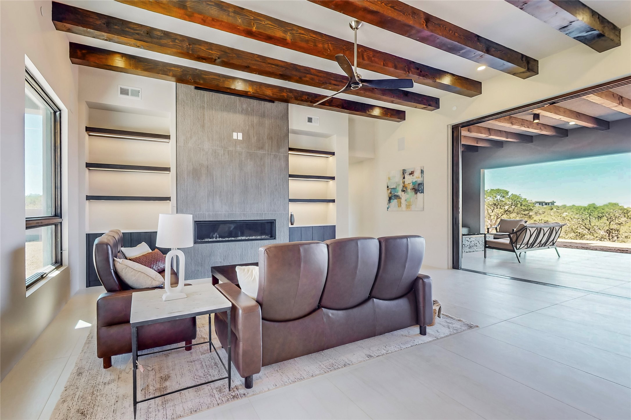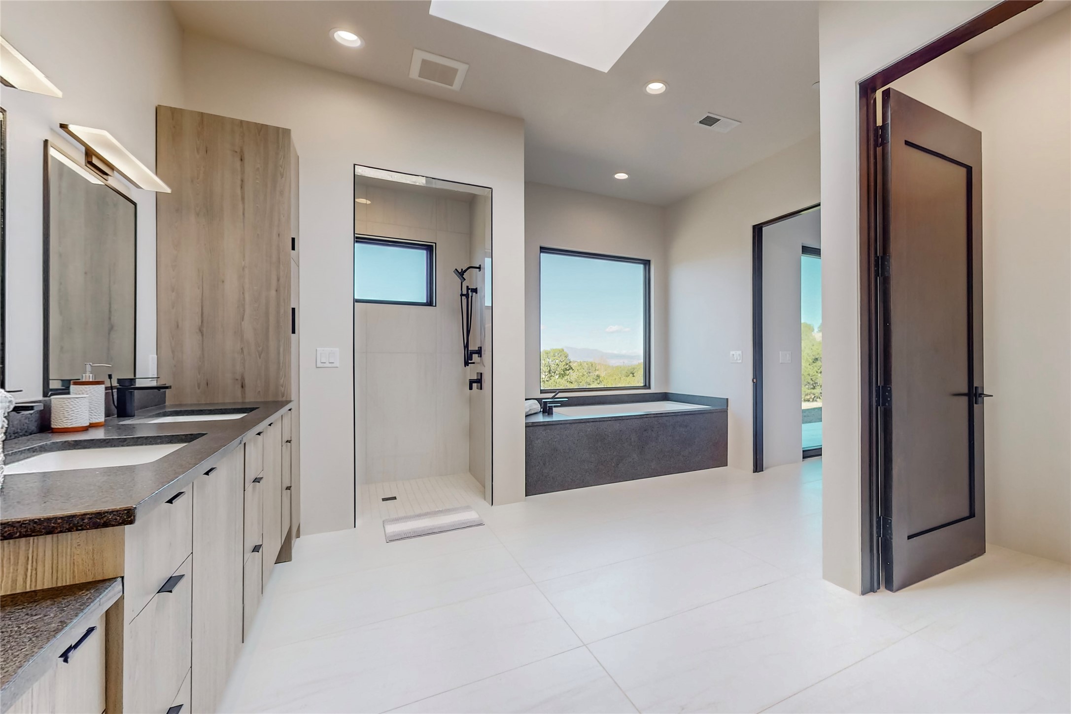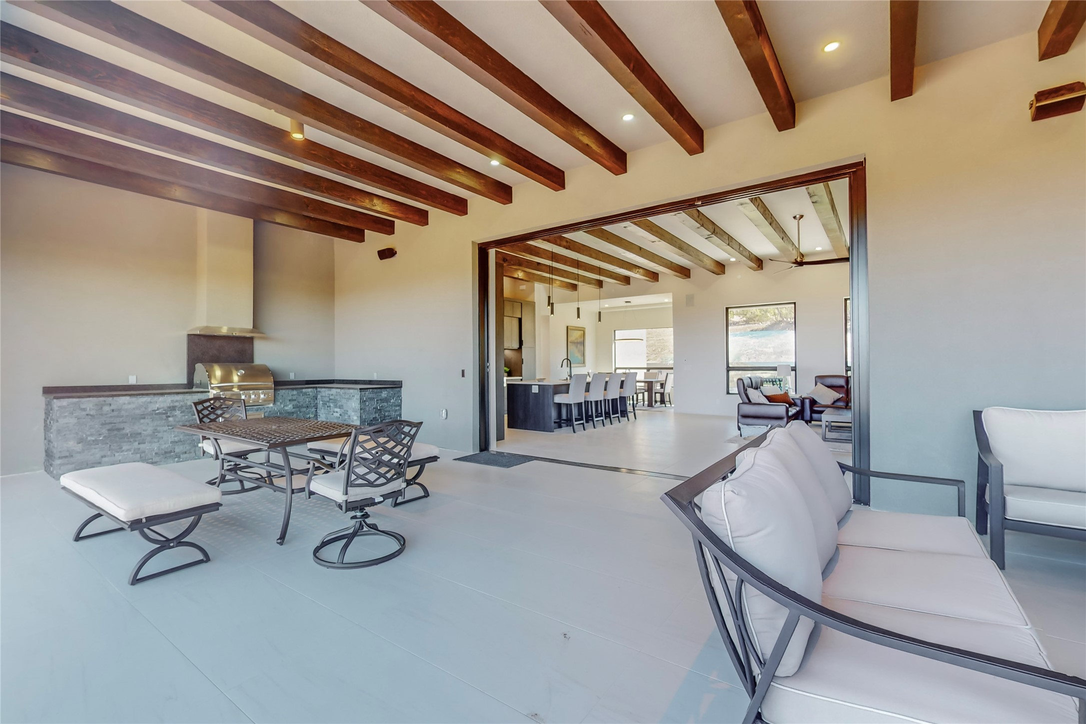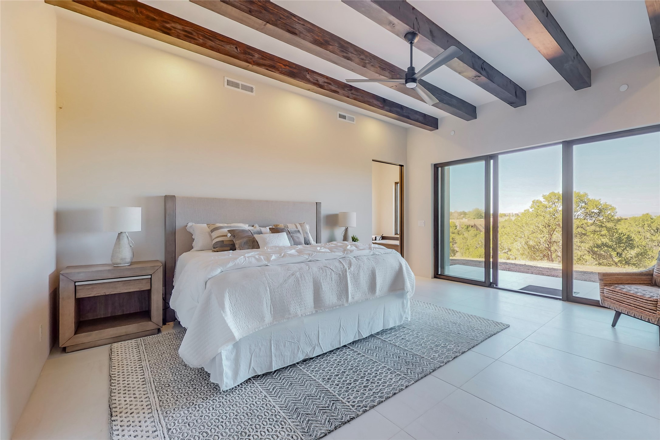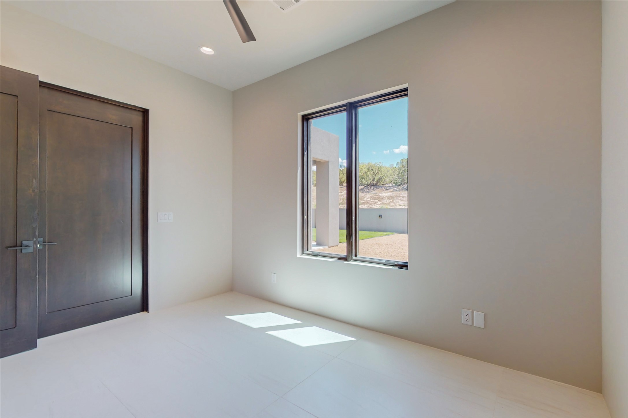 Come experience the latest custom home by Santa Fe Builders Construction, LLC. Set on one of the last remaining lots in the exclusive Sundance Ridge community. This enclave of exceptional custom homes is married to Santa Fe's most sought after land of rolling hills, unparalleled views and privacy. Your new home is at the end of a private cul-de-sac, tucked in on a ridge and overlooking the Jemez mountain range. Delivering stunning sunsets, and starry nights; it feels like you own the west. The soft pueblo contemporary features an open concept floor plan, exquisite kitchen and butler's pantry, luxurious master suite, plus two additional bedrooms, and a heated garage. Glass panel, vanishing pocket doors in the great room blur the lines between indoor and outdoor space, leading you to an expansive, view filled, covered portal with outdoor kitchen and fire pit. Enjoy instant comfort in any season with in-floor radiant heat and refrigerated air. Located just 15 minutes from downtown means quick access to everything Santa Fe while still feeling worlds away.