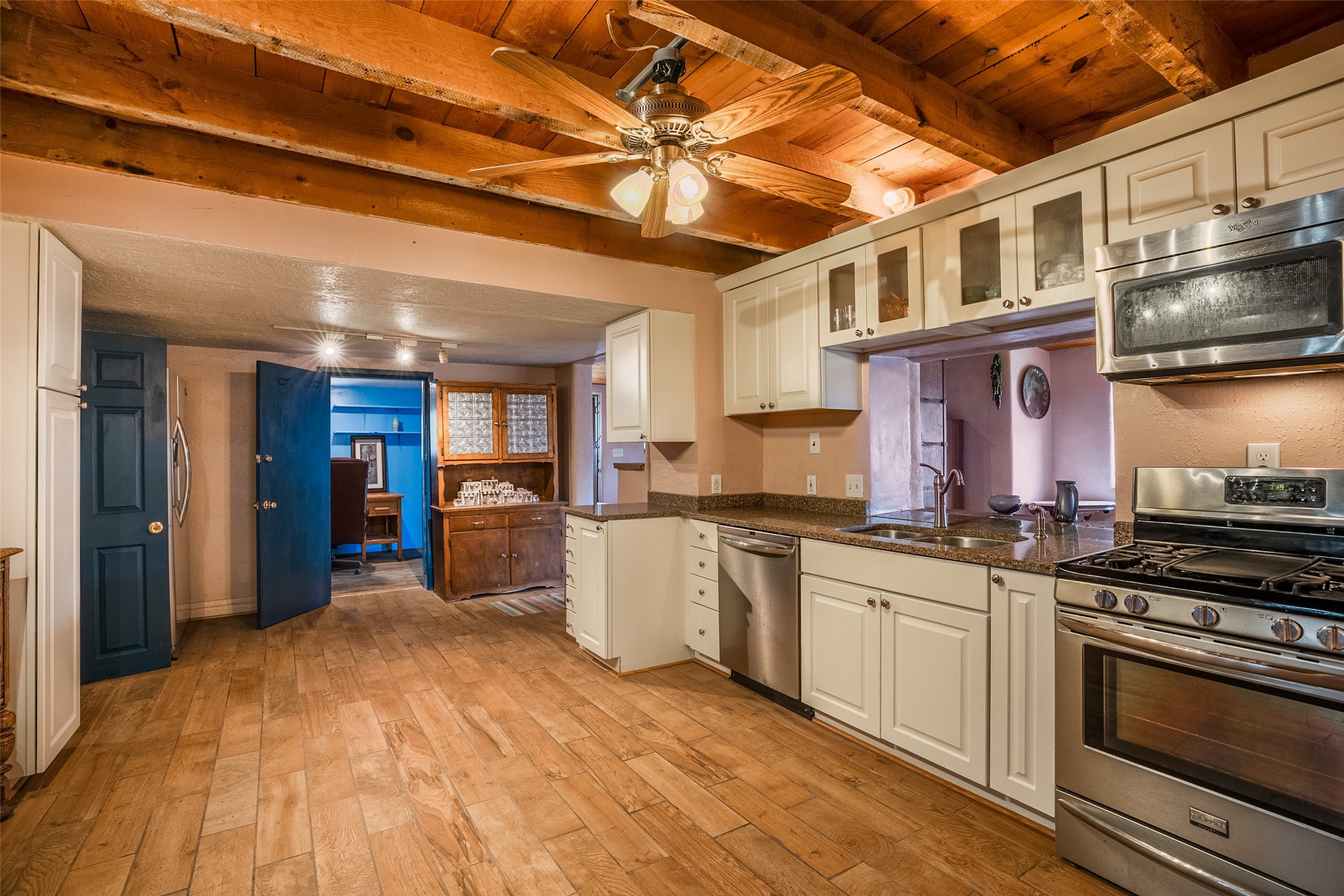 PRICE REDUCED on this lovely property in Alcalde. 3 bedrooms, 1-3/4 baths sitting on .46 acres of land with views. The house has recently upgraded appliances, kitchen cabinets and water heater. There is a large detached garage with plenty of room for storage and over 2000 sq. ft, in the main house. Beautiful outdoor spaces are perfect for a family with children, or anyone who just enjoys sitting outside. A 40 minute drive will take you to downtown Los Alamos or downtown Santa Fe. Bring your buyers!