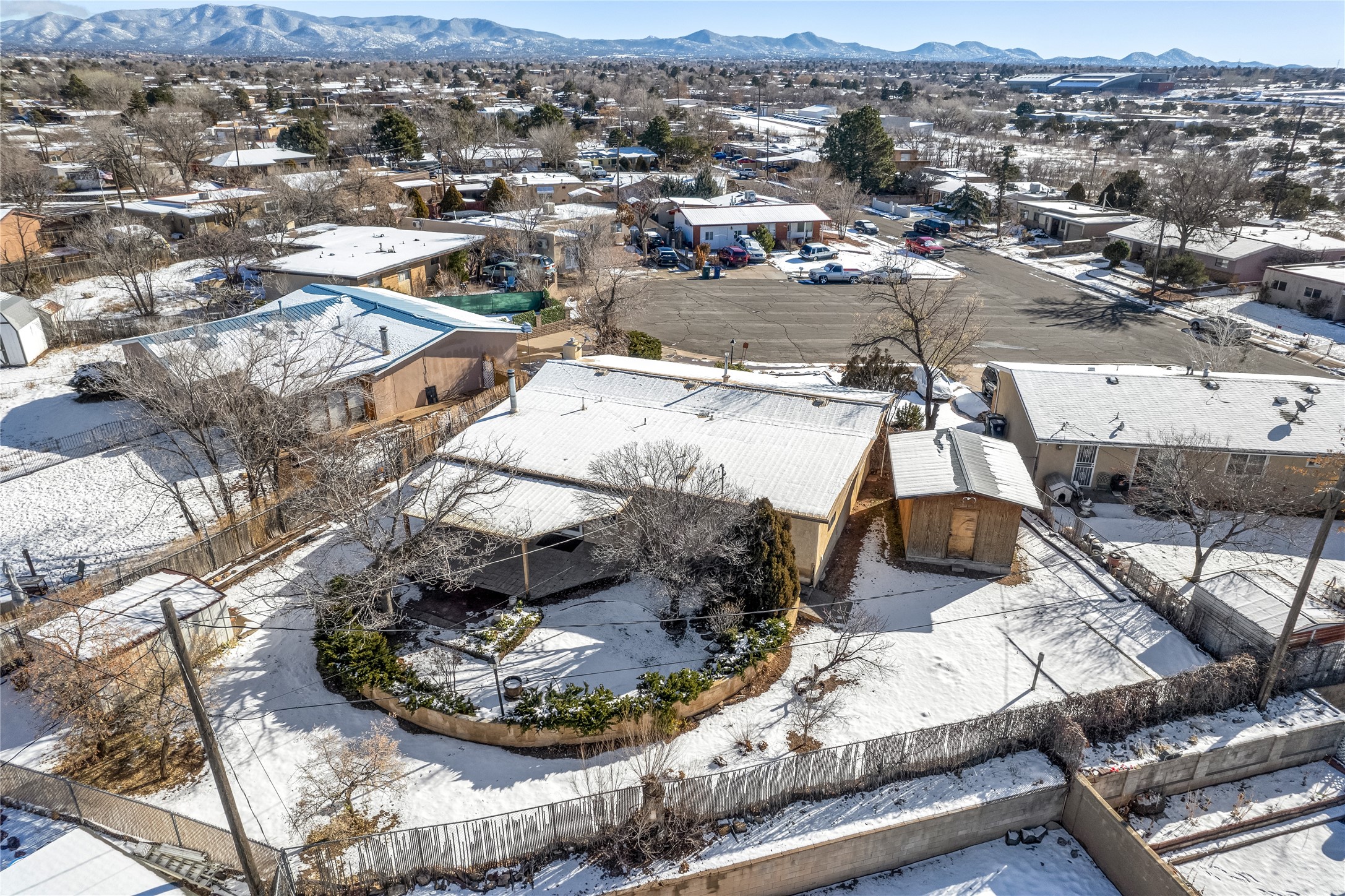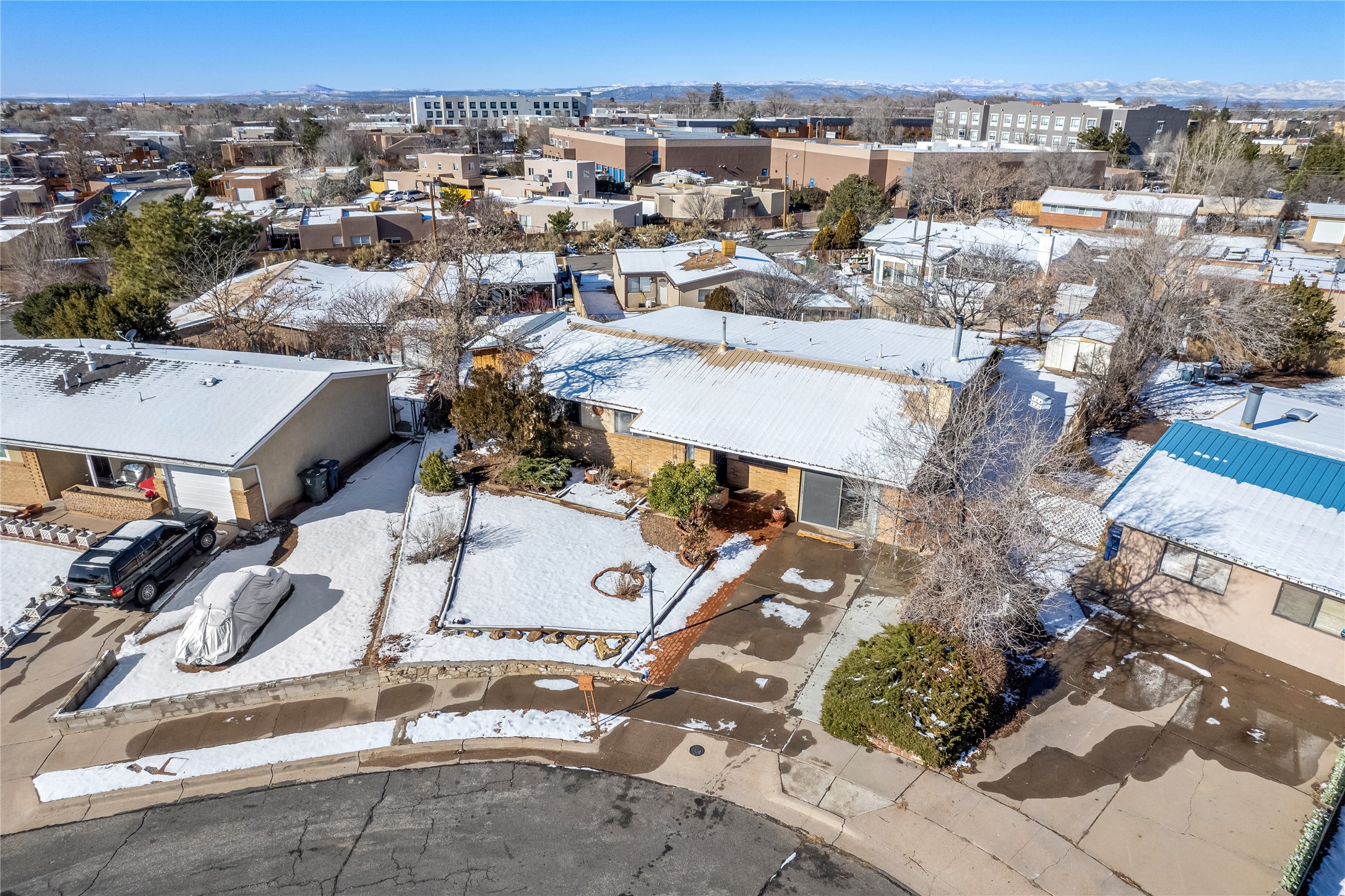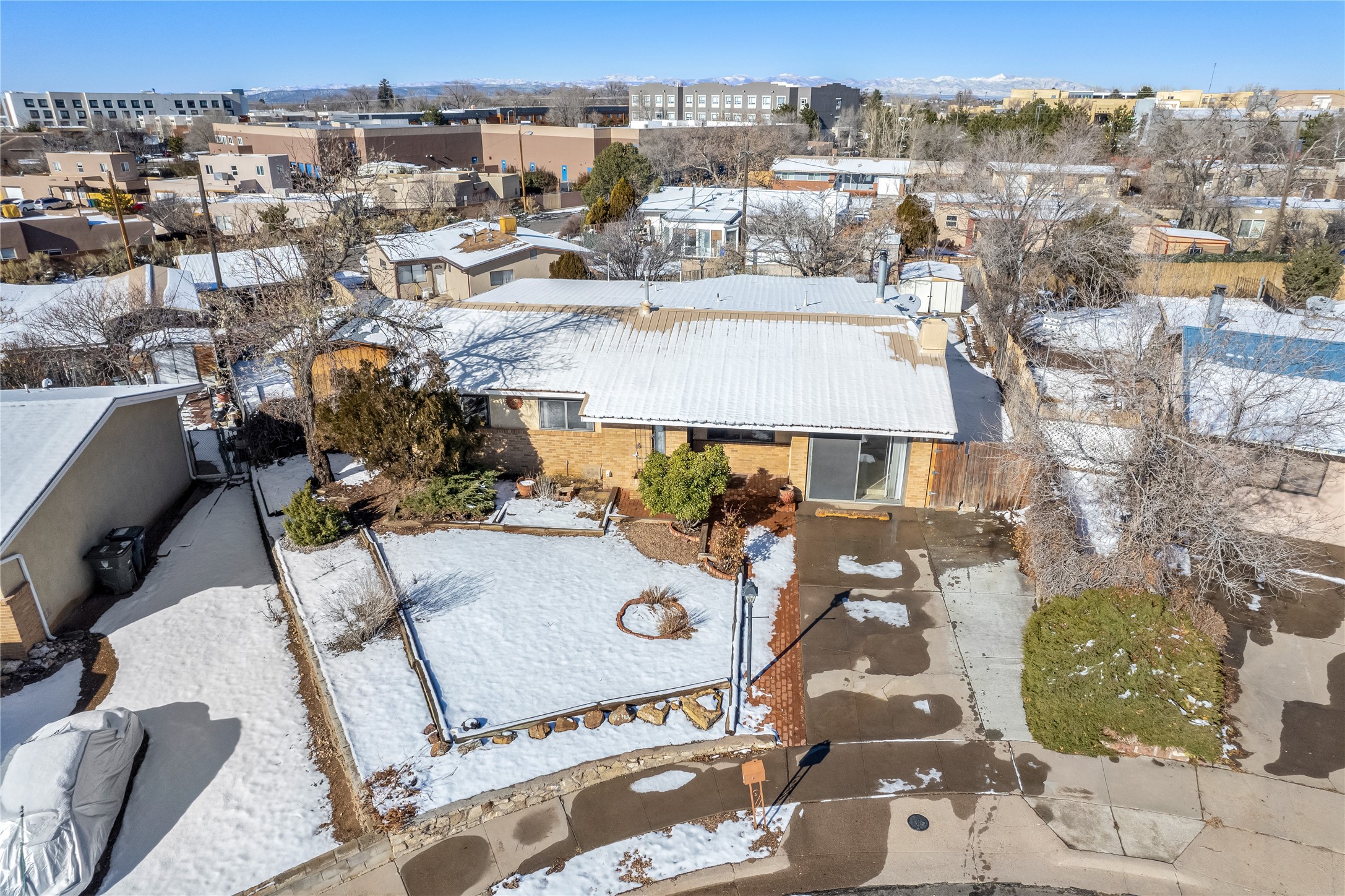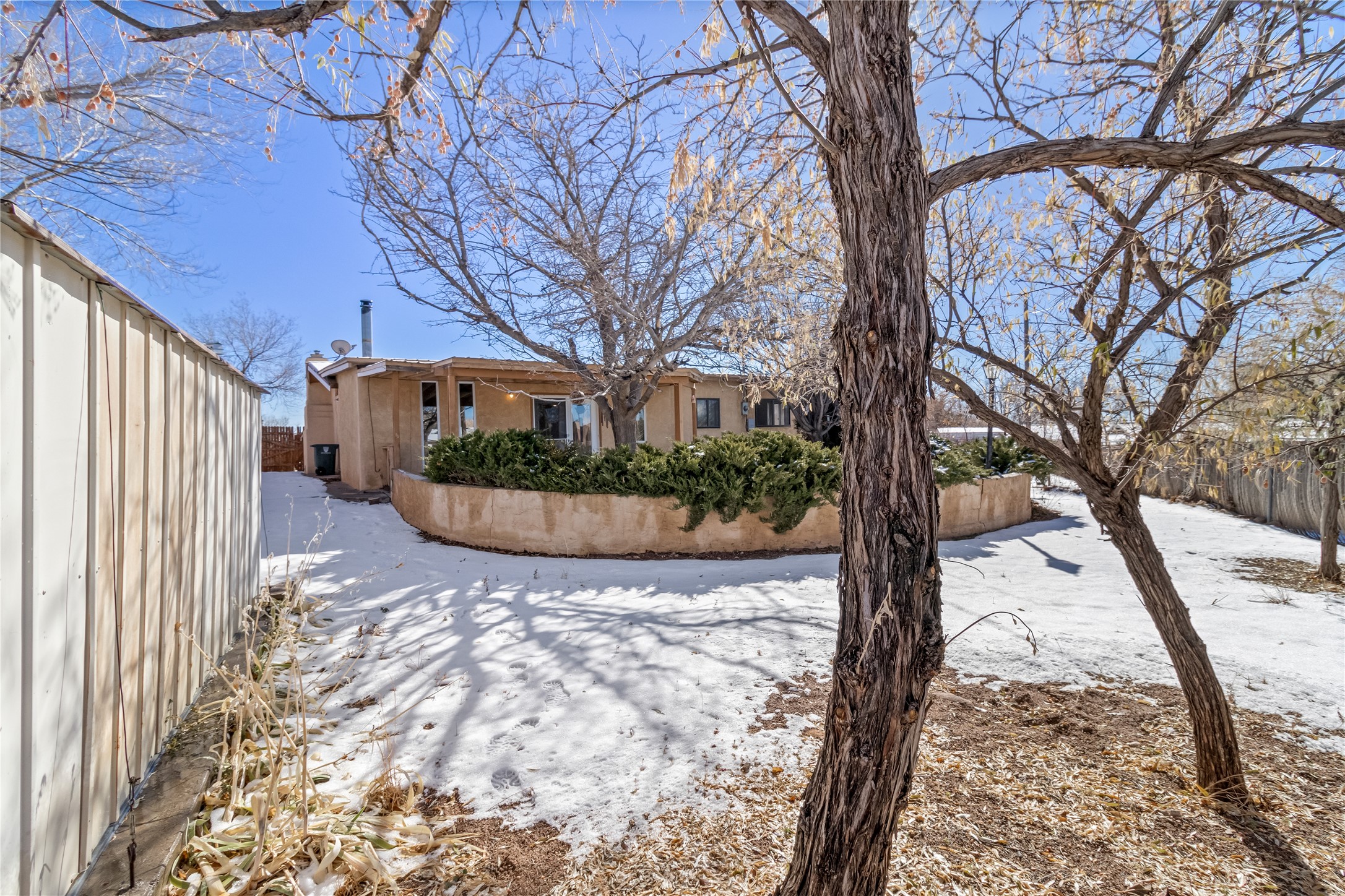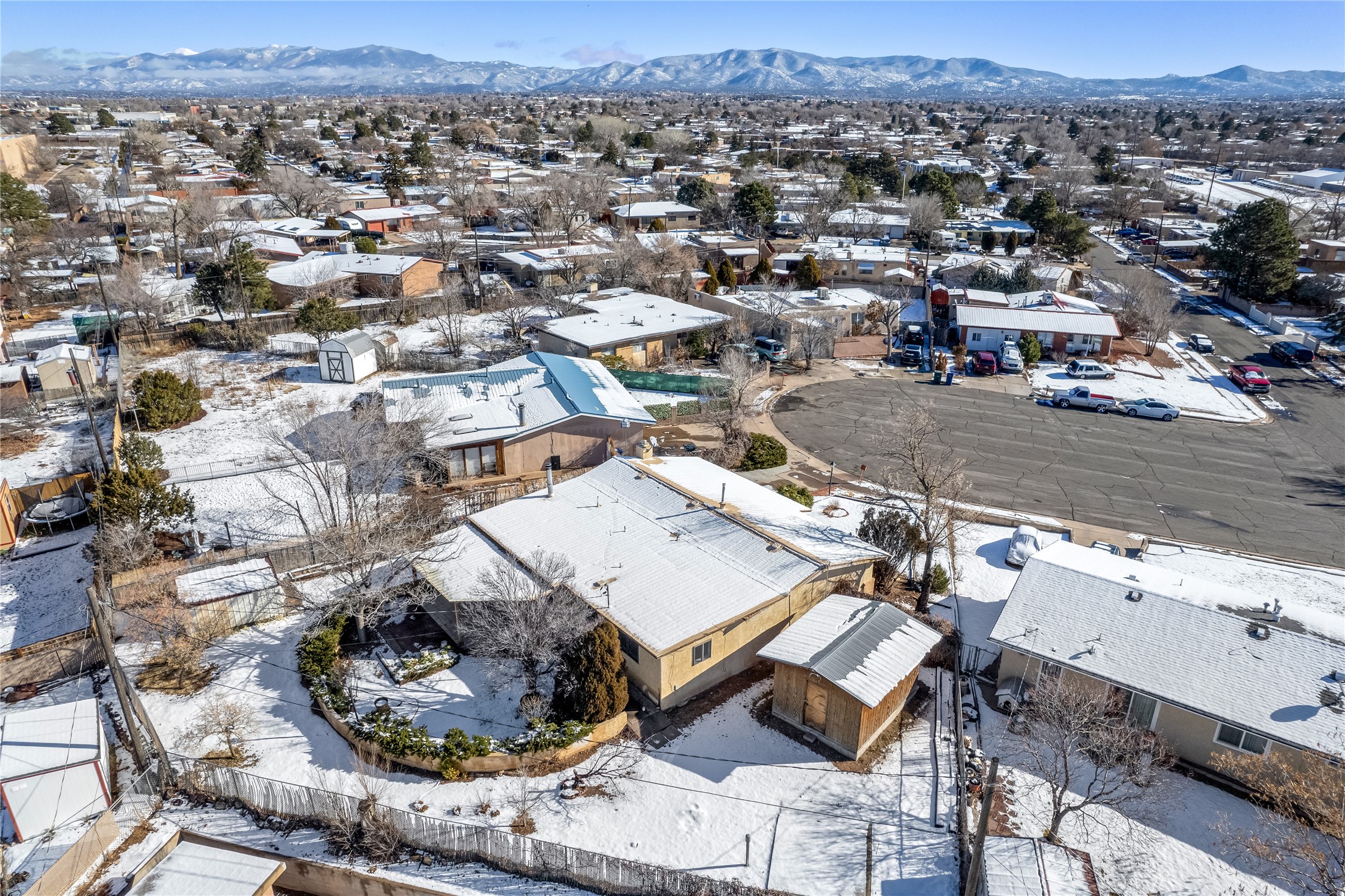 This single-story home offers three bedrooms and two bathrooms (Master Bath is accessible )- and is almost in the center of Santa Fe. Located in a Cul-de-sac, This is a longtime family owned home. You will have 2 living areas with fireplace and wood stove in the rear area. A Large back yard area for entertaining. The Kitchen, complete with a breakfast bar, is perfect for hosting guests. The primary bedroom has a walk-in closet and an attached bathroom. Additionally, the spacious rear portal further enhances the entertainment space and the yard is fenced with Mature landscaping. The property also has 2 large sheds that convey. Conveniently located nearby are amenities such as The Genoveva Chavez Community Center, Herb Martinez Park, and various shops and restaurants. This is not a bad commute for Los Alamos and Albuquerque.