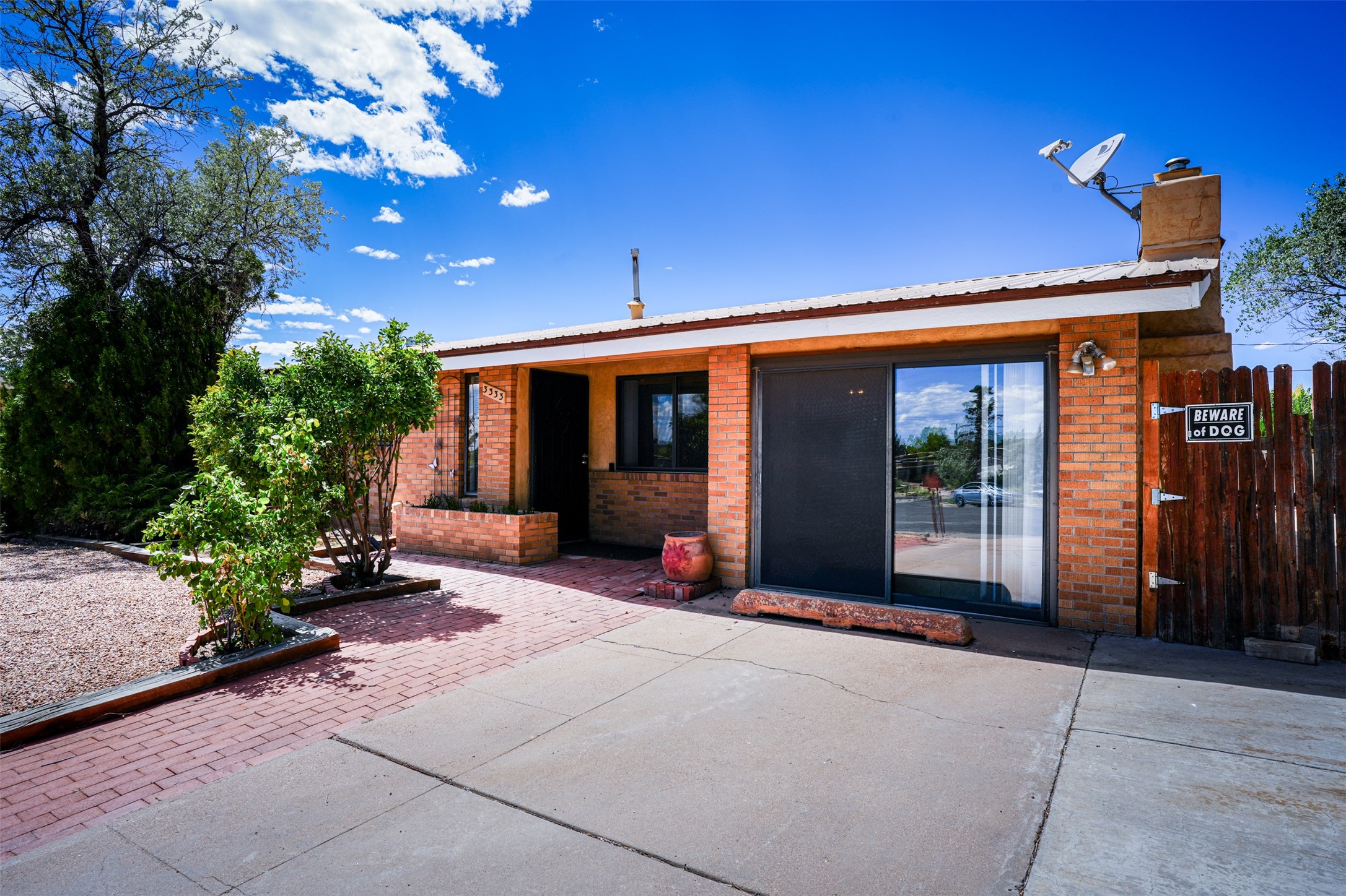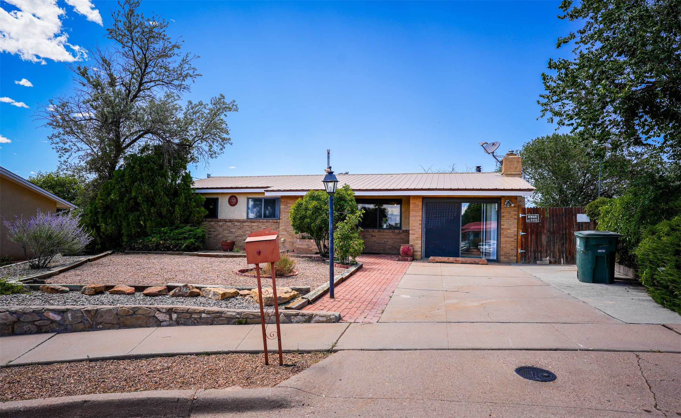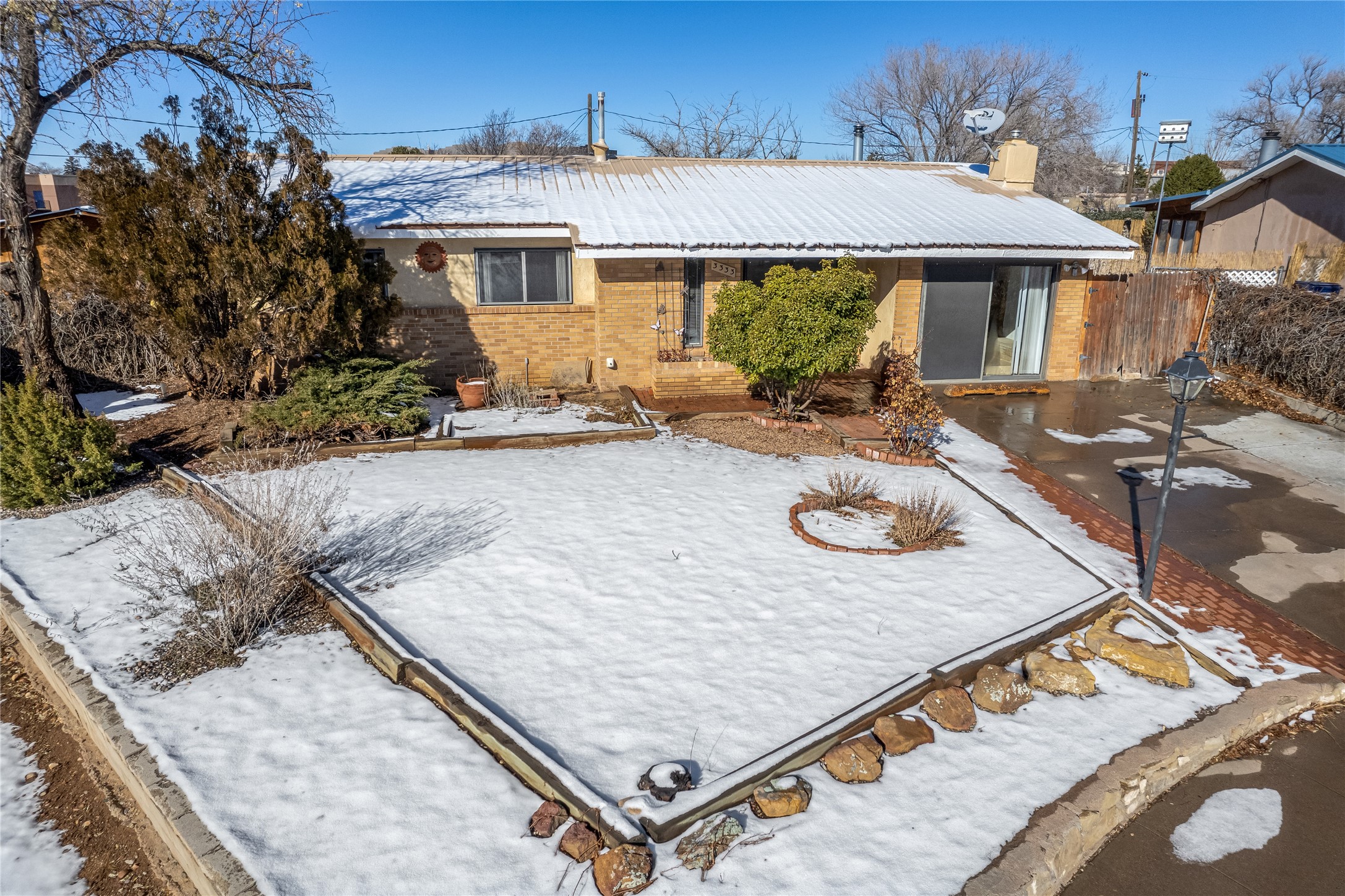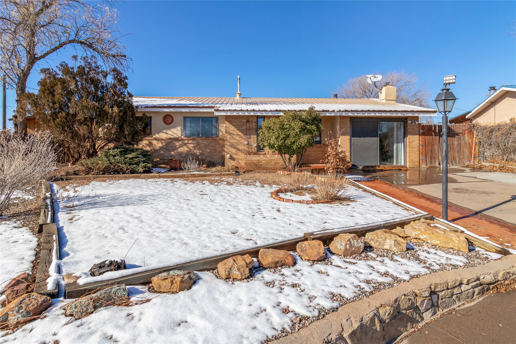 This single-story home offers three bedrooms and two bathrooms (Master Bath is accessible )- and is almost in the center of Santa Fe. Located in a Cul-de-sac, This is a longtime family owned home. You will have 2 living areas with fireplace and wood stove in the rear area. A Large back yard area for entertaining. The Kitchen, complete with a breakfast bar, is perfect for hosting guests. The primary bedroom has a walk-in closet and an attached bathroom. Additionally, the spacious rear portal further enhances the entertainment space and the yard is fenced with Mature landscaping. The property also has 2 large sheds that convey. Conveniently located nearby are amenities such as The Genoveva Chavez Community Center, Herb Martinez Park, and various shops and restaurants. This is not a bad commute for Los Alamos and Albuquerque.