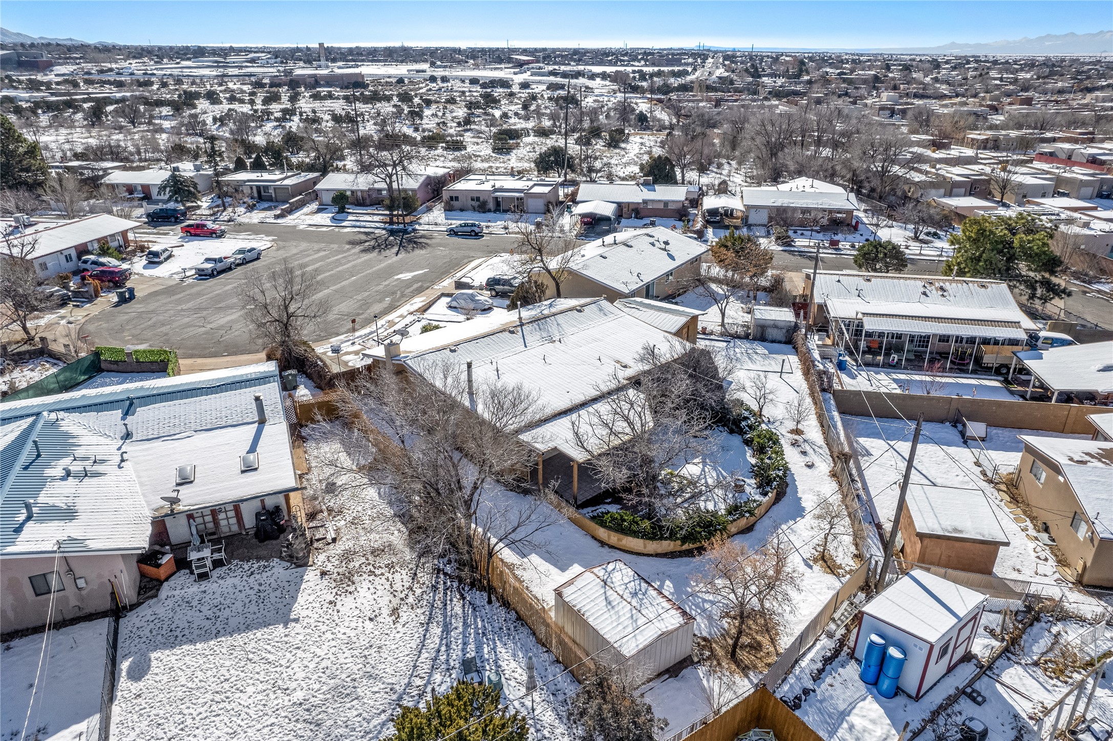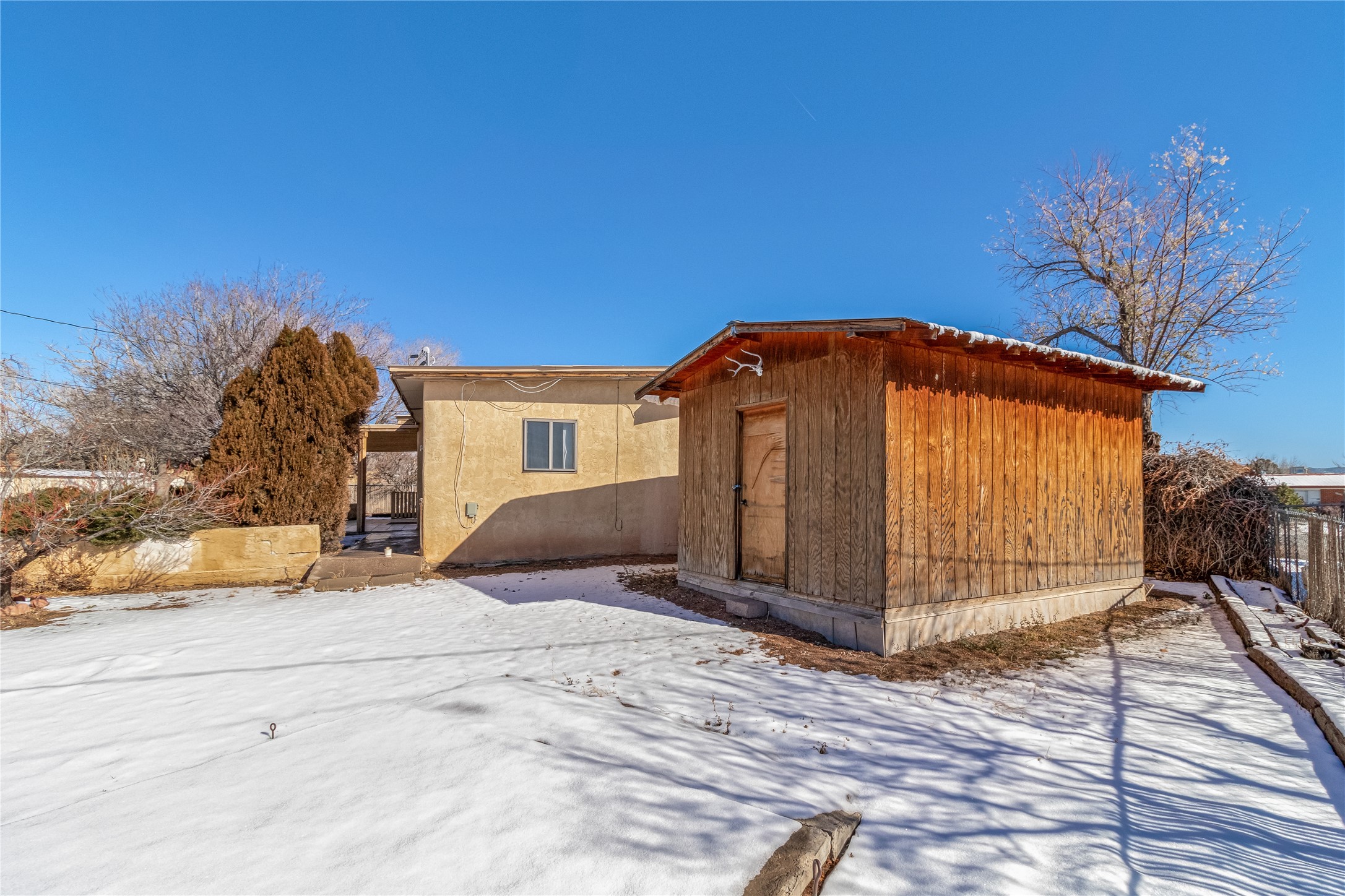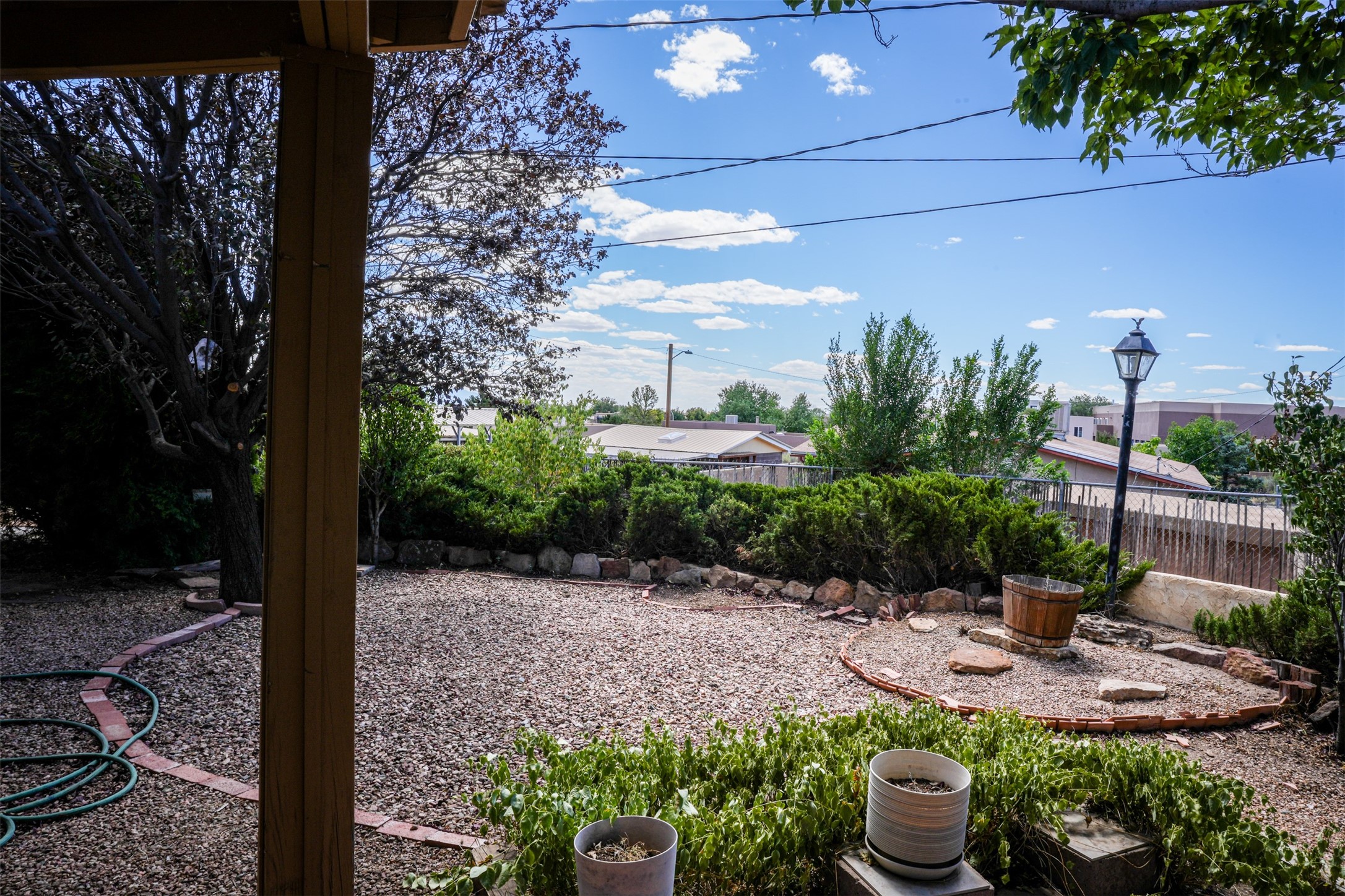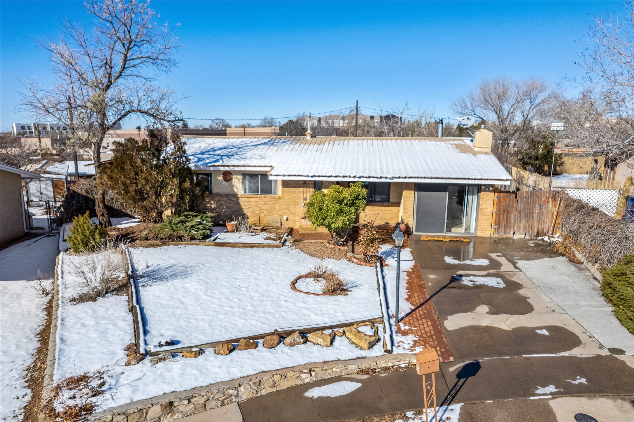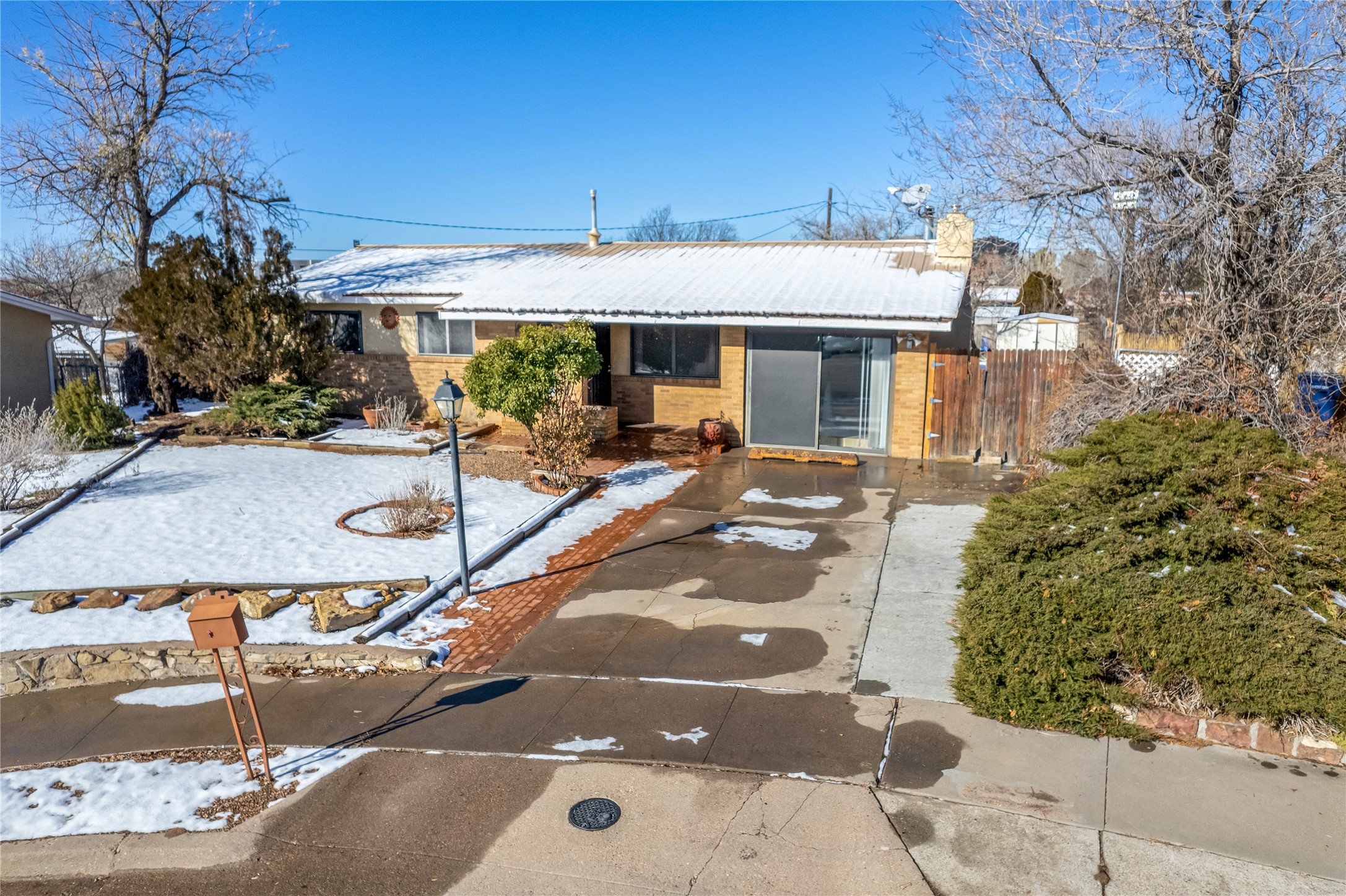 This single-story home offers three bedrooms and two bathrooms (Master Bath is accessible )- and is almost in the center of Santa Fe. Located in a Cul-de-sac, This is a longtime family owned home. You will have 2 living areas with fireplace and wood stove in the rear area. A Large back yard area for entertaining. The Kitchen, complete with a breakfast bar, is perfect for hosting guests. The primary bedroom has a walk-in closet and an attached bathroom. Additionally, the spacious rear portal further enhances the entertainment space and the yard is fenced with Mature landscaping. The property also has 2 large sheds that convey. Conveniently located nearby are amenities such as The Genoveva Chavez Community Center, Herb Martinez Park, and various shops and restaurants. This is not a bad commute for Los Alamos and Albuquerque.