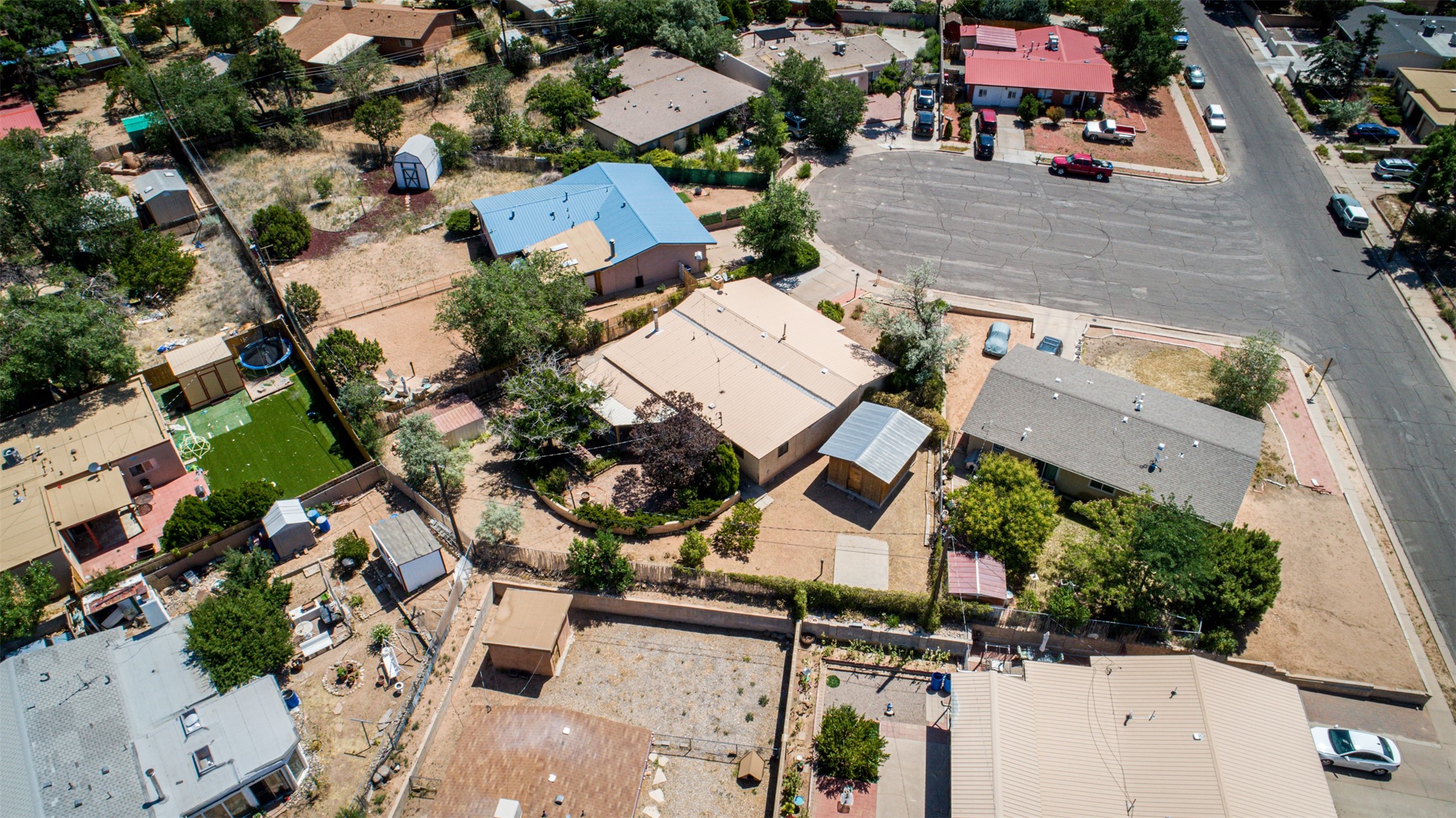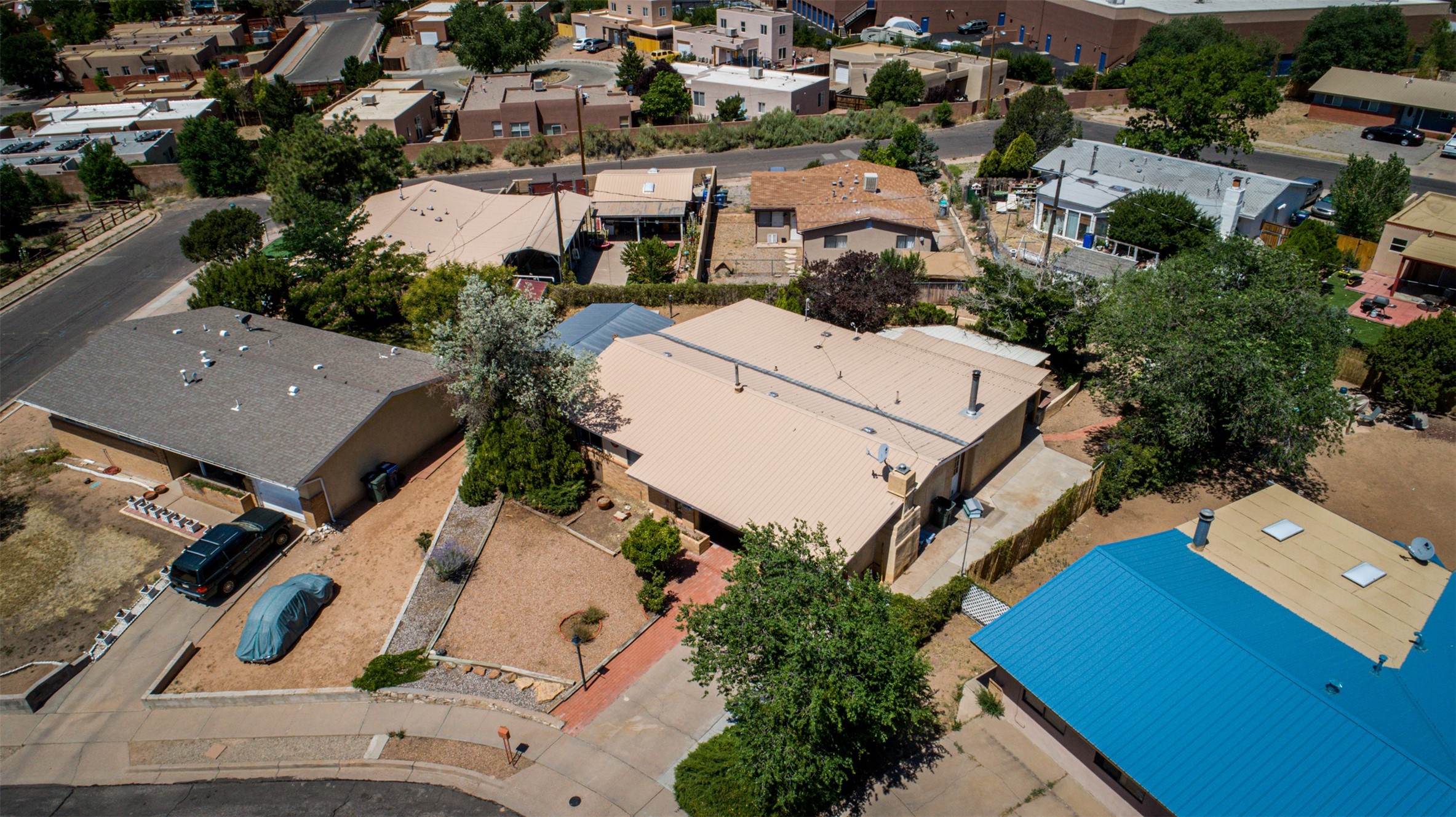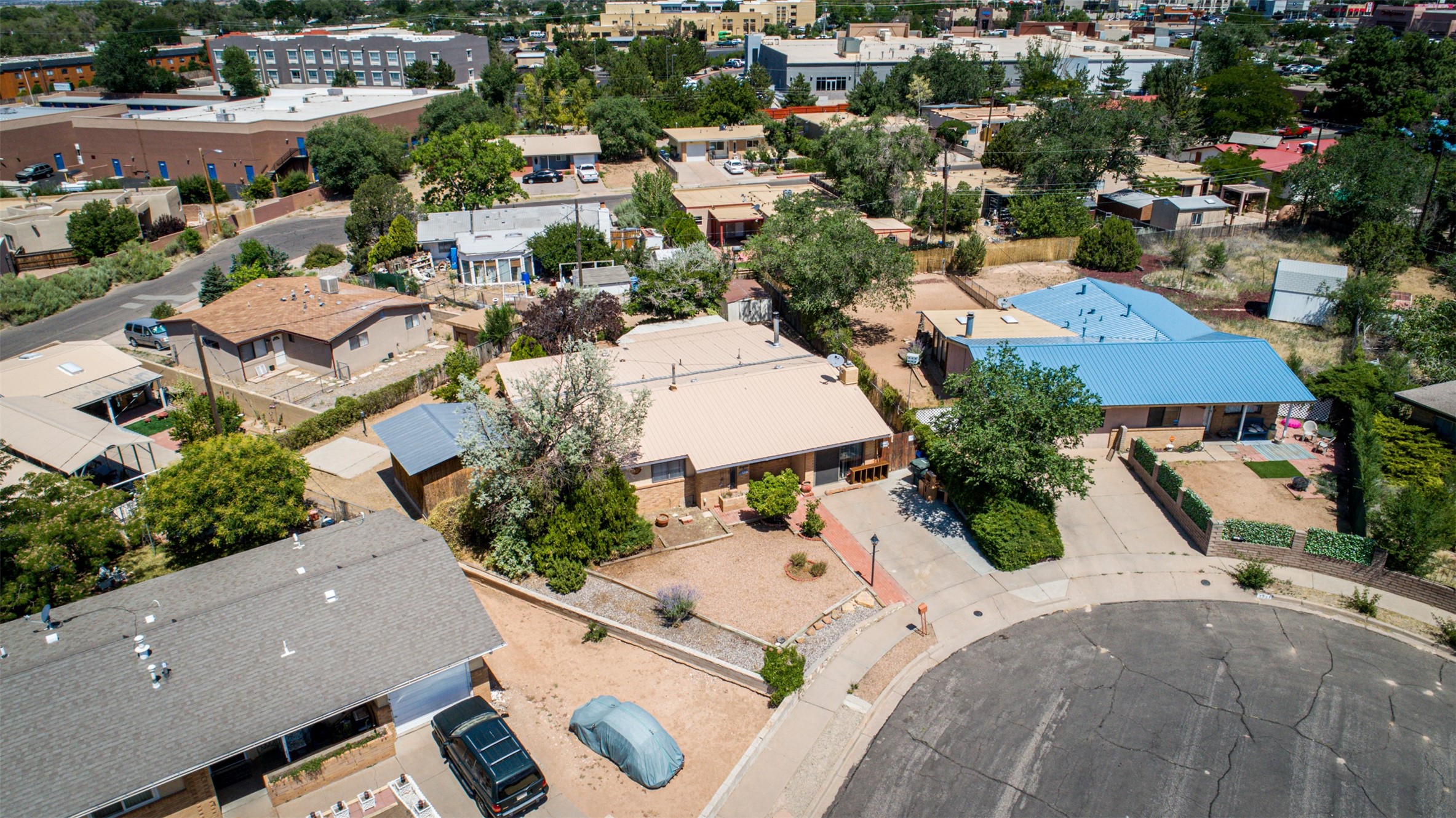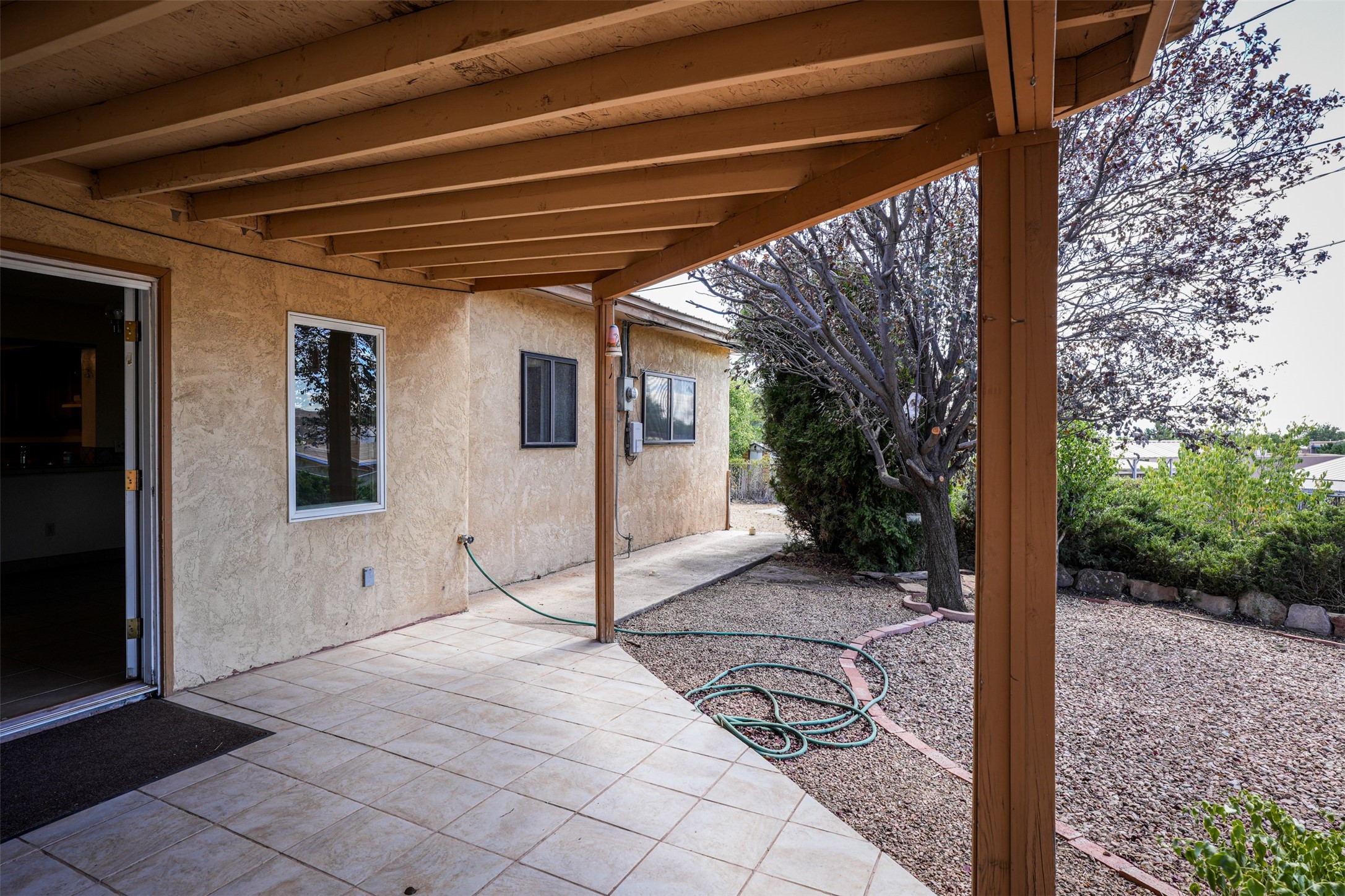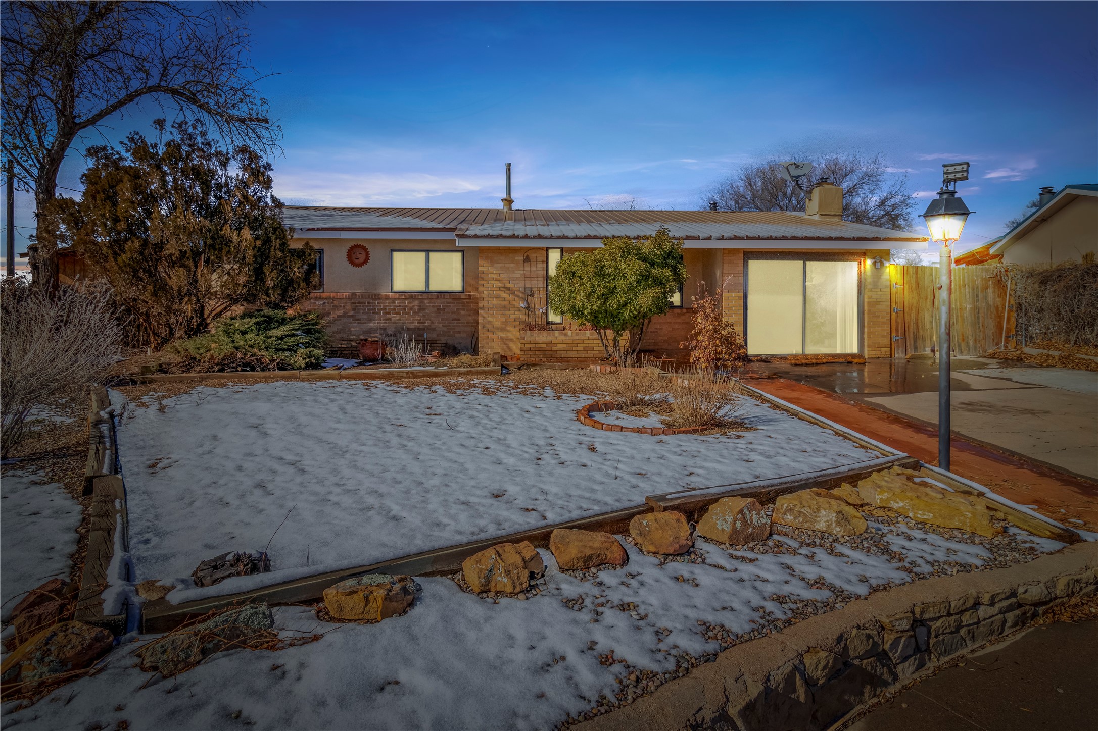 This single-story home offers three bedrooms and two bathrooms (Master Bath is accessible )- and is almost in the center of Santa Fe. Located in a Cul-de-sac, This is a longtime family owned home. You will have 2 living areas with fireplace and wood stove in the rear area. A Large back yard area for entertaining. The Kitchen, complete with a breakfast bar, is perfect for hosting guests. The primary bedroom has a walk-in closet and an attached bathroom. Additionally, the spacious rear portal further enhances the entertainment space and the yard is fenced with Mature landscaping. The property also has 2 large sheds that convey. Conveniently located nearby are amenities such as The Genoveva Chavez Community Center, Herb Martinez Park, and various shops and restaurants. This is not a bad commute for Los Alamos and Albuquerque.