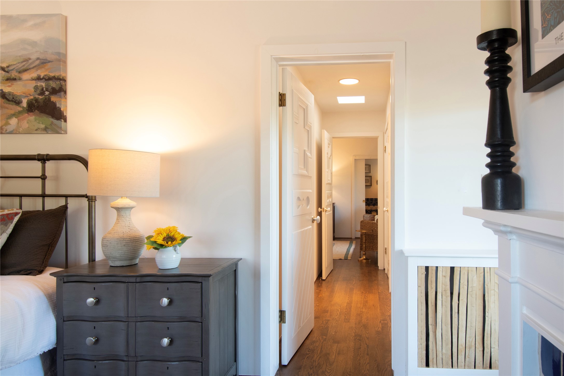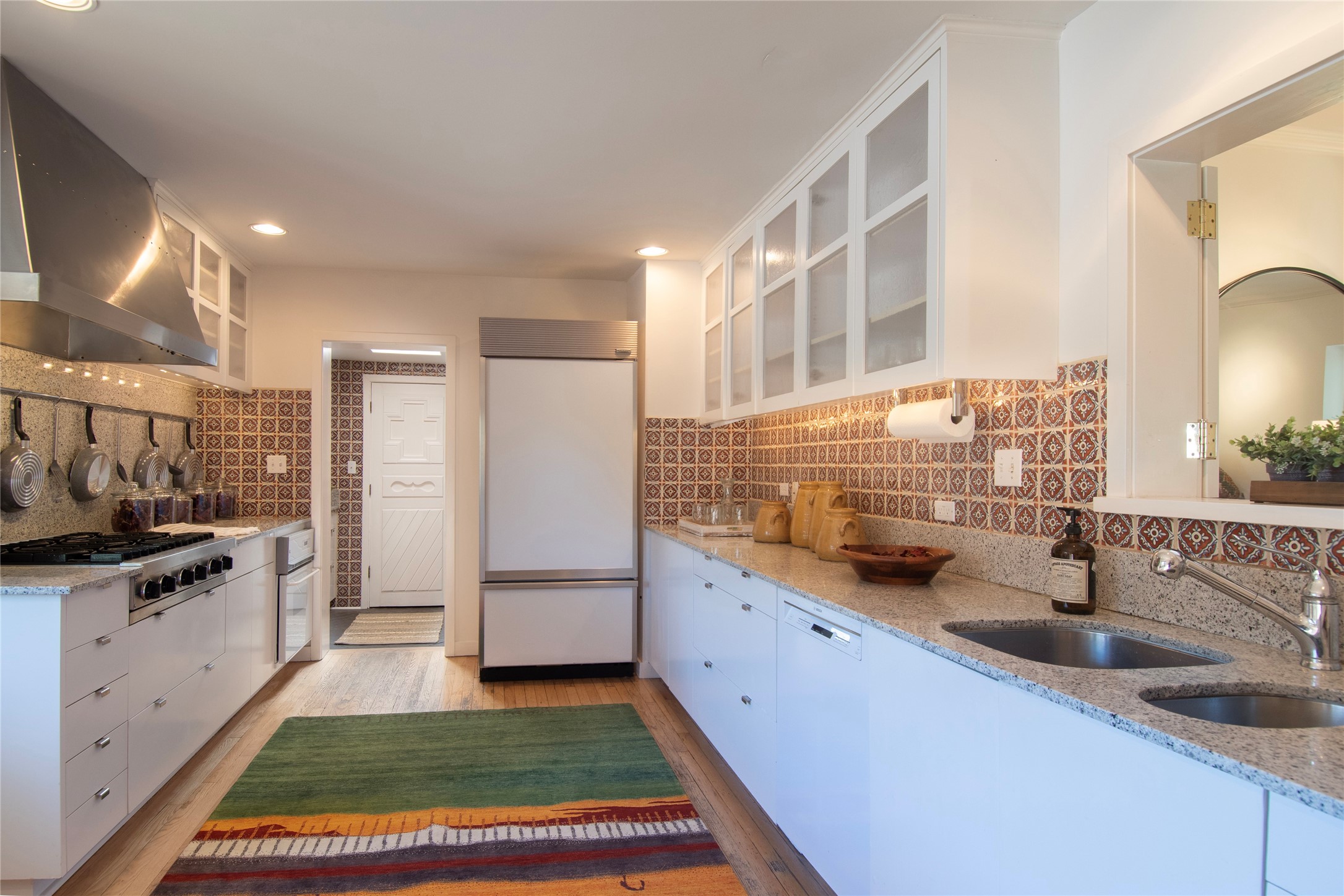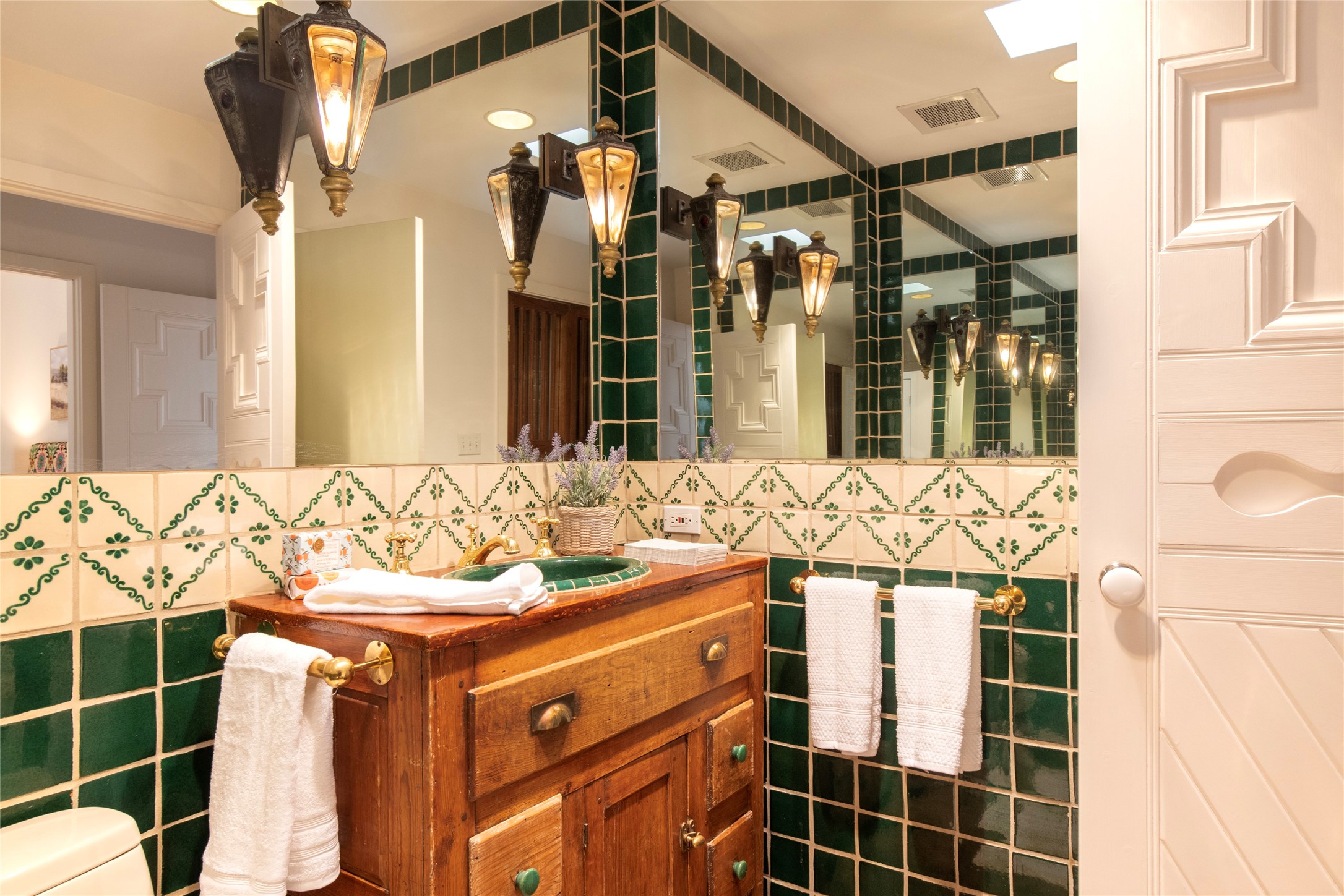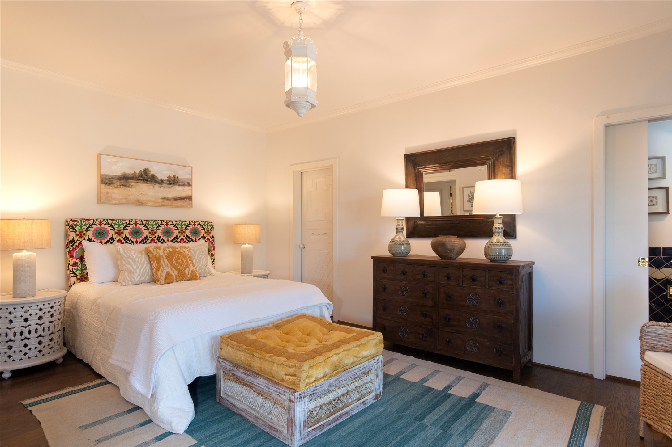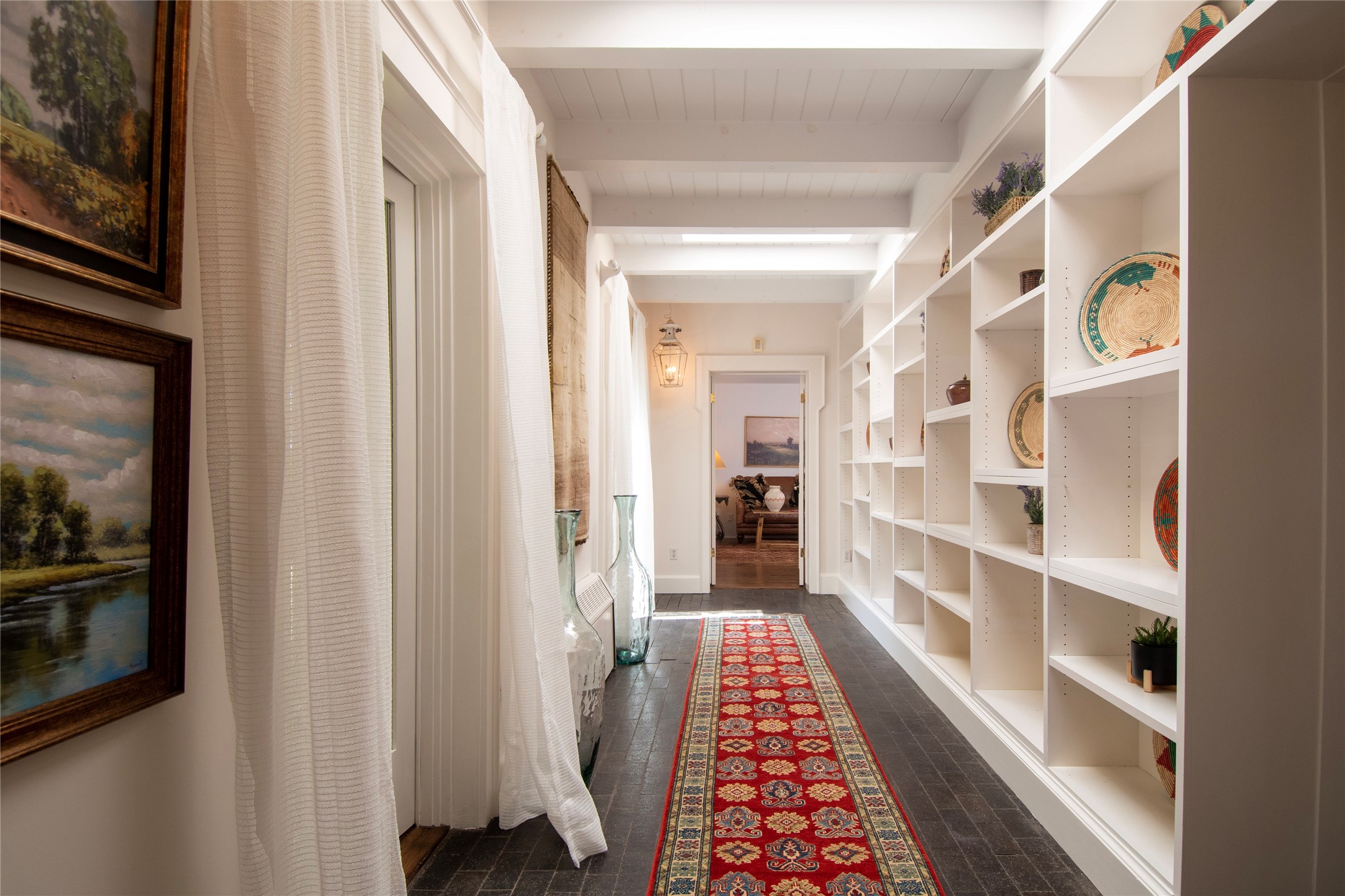 Nestled among mature trees, this classic New Mexico Territorial-style home rests on 2.788 acres of beautiful land with stellar views of Sangre de Cristo, Sandia and Ortiz Mountains. In the 3,600 sq. ft. main house a long, lovely, bricked entry hallway connects many of the rooms. Here there are 3 bedrooms, 4 bathrooms, separate office, living room, formal dining room, and a good-sized eat-in kitchen. The quiet, primary bedroom suite has a media room, full walk-in closet and private portal. There are 6 fireplaces, including one on a wide portal off the living room, so nearly every room is warm and inviting on cold winter nights. There are several portals to enjoy the views and the great Northern New Mexico weather. The guest house (753 sq. ft.) is a one bedroom, one bath home with a living/dining room, separate kitchen, and private patio. A covered brick walkway leads from the two houses to a 2-car garage. Nearby, a 1,059 sq. ft. detached garage/studio stands alone just waiting to make your dreams come true as a studio, shop, or an antique car showroom. Privately located in the historic Eastside of Santa Fe this home is just minutes from hiking trails, Museum Hill, Canyon Road and the Downtown Plaza.