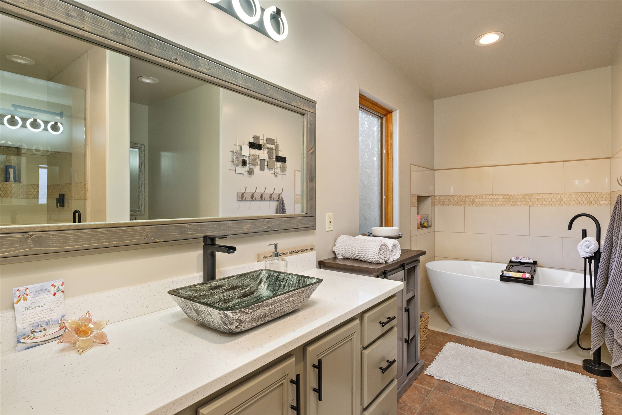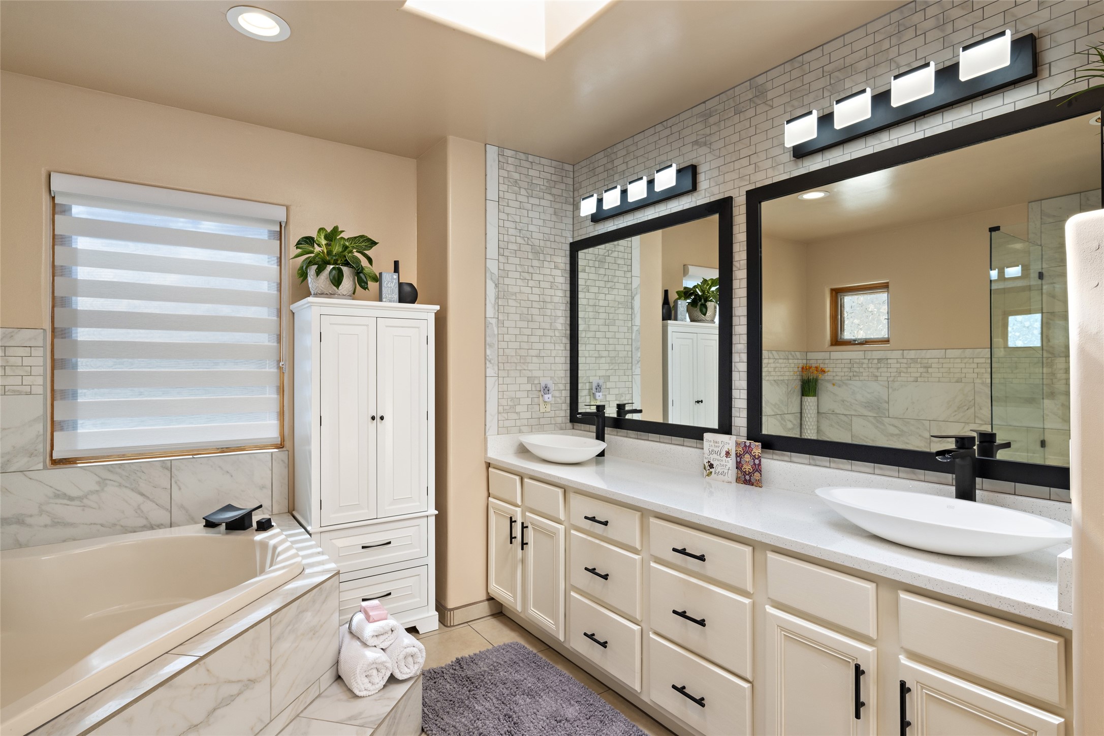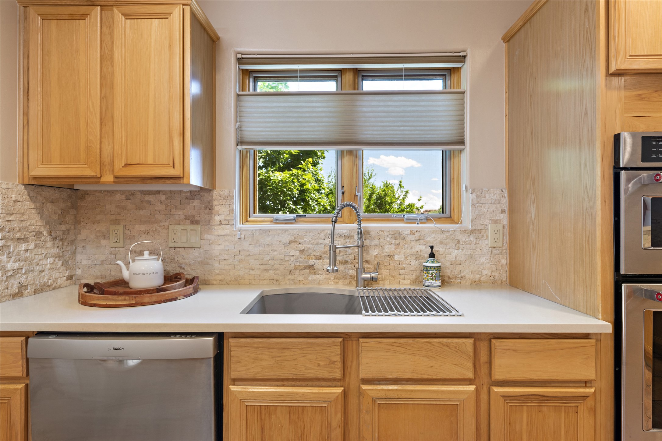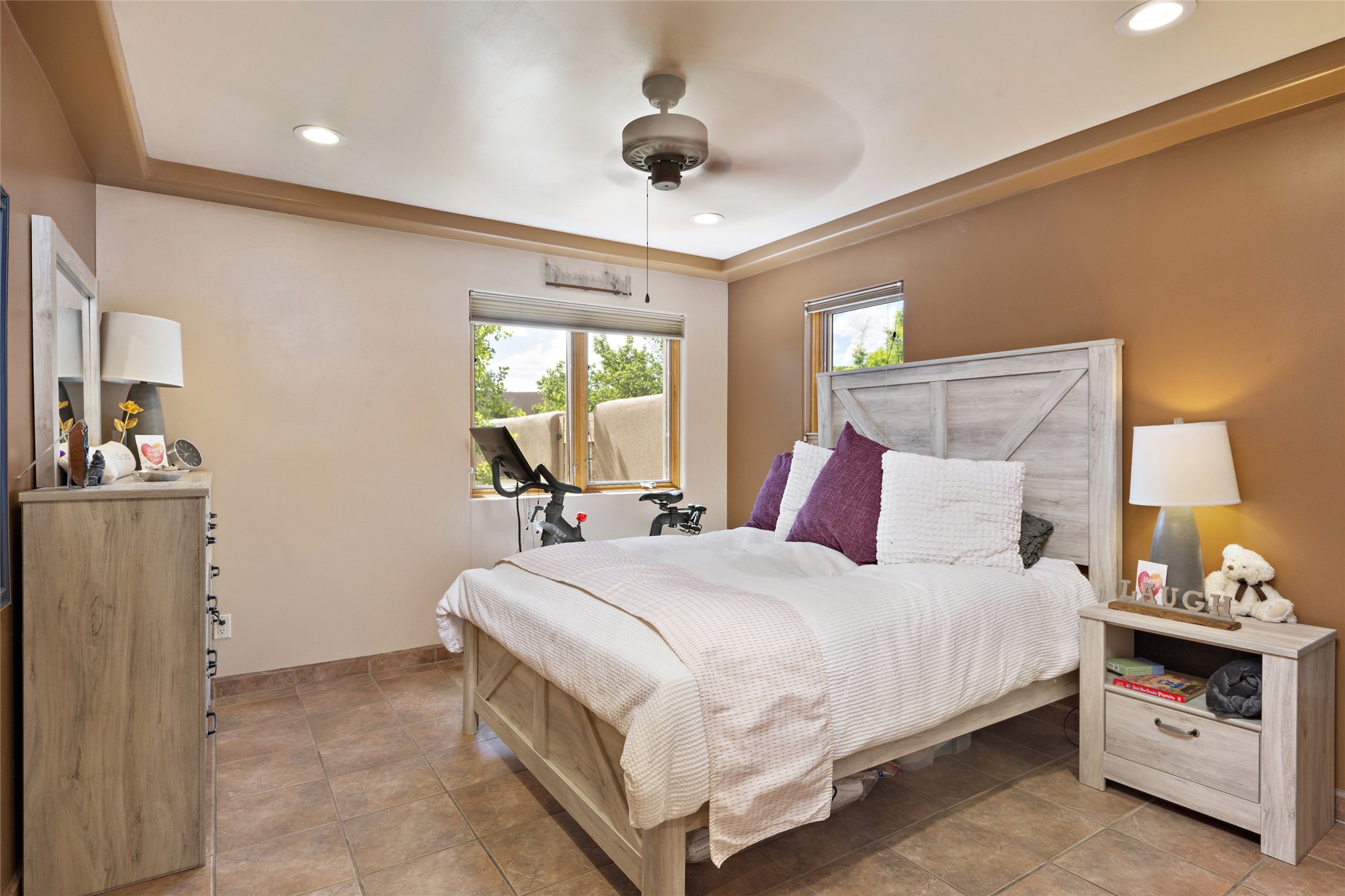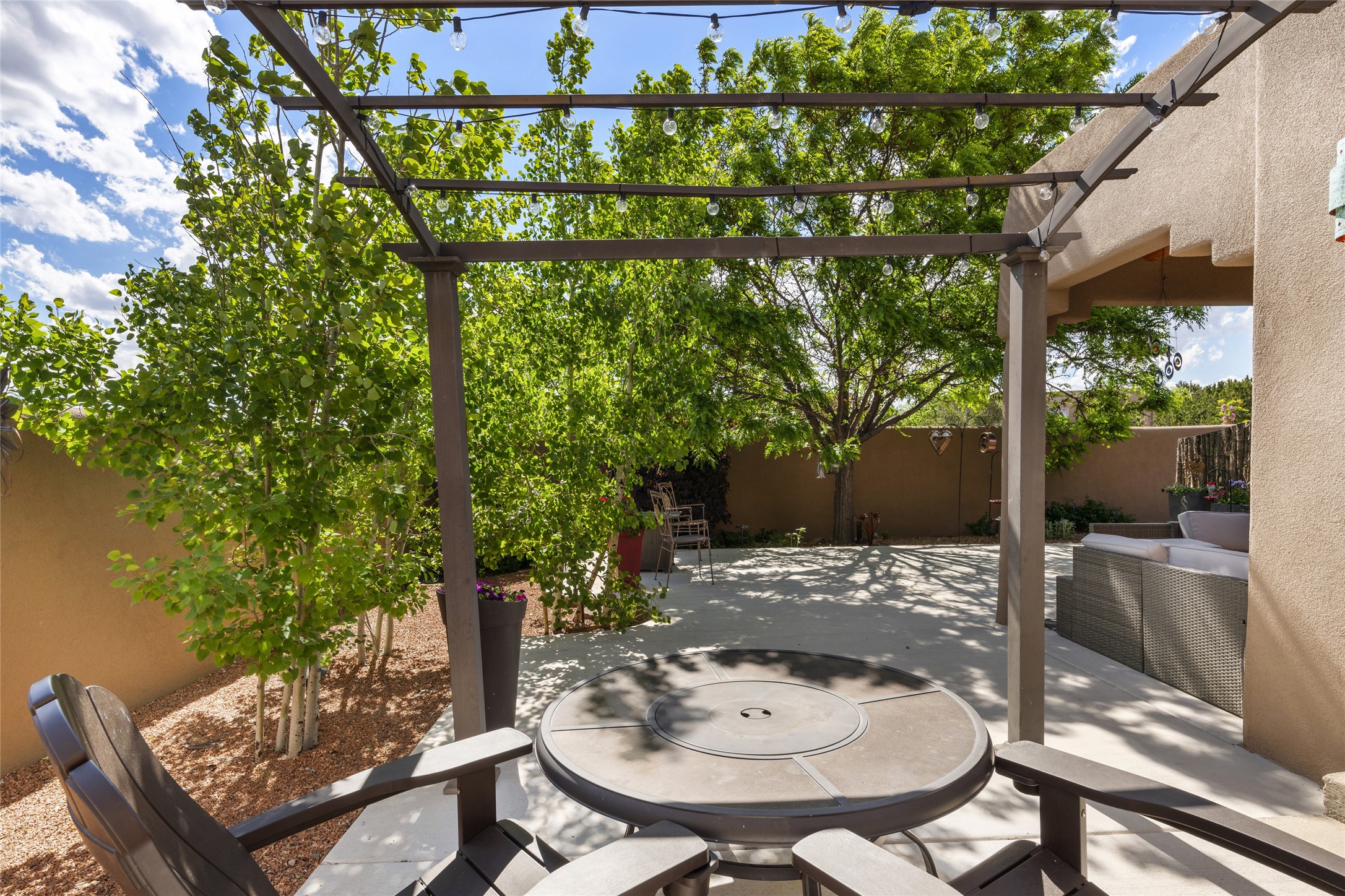 This immaculate residence, thoughtfully curated and lovingly maintained by its original owner can now be yours. Nestled in the coveted Pueblos Del Sol neighborhood, this remarkable home has been meticulously maintained. With freshly stucco, and a new roof (with a warranty) this property is like a brand new home. Immerse yourself in the authentic Santa Fe ambiance with artisan corbels, vigas, and a cozy kiva fireplace in the living space. The kitchen is a dream for culinary enthusiasts, featuring new appliances and an elegant white quartz countertop. You'll have the option of both a formal dining area and an informal breakfast bar, perfect for every dining occasion. This splendid home 3-bedroom, 3.5-bathroom residence is a masterpiece of comfort and style. Each bedroom boasts its own en-suite bathroom, offering unparalleled convenience and privacy. Radiant heating and easily maintainable tile floors ensure year-round comfort and simplicity.No detail has been spared in the meticulous updates throughout the home. The primary bathroom is a lavish sanctuary, featuring a luxurious soaking tub for moments of ultimate relaxation. Beyond the enchanting interior, this property sits on an exceptionally rare corner lot, meticulously landscaped to create outdoor living spaces designed to relish our delightful climate.Conveniently located, this home offers easy access to walking trails, restaurants, shopping, and top-notch schools. Discover the ultimate Pueblos Del Sol living experience in this unrivaled residence.
