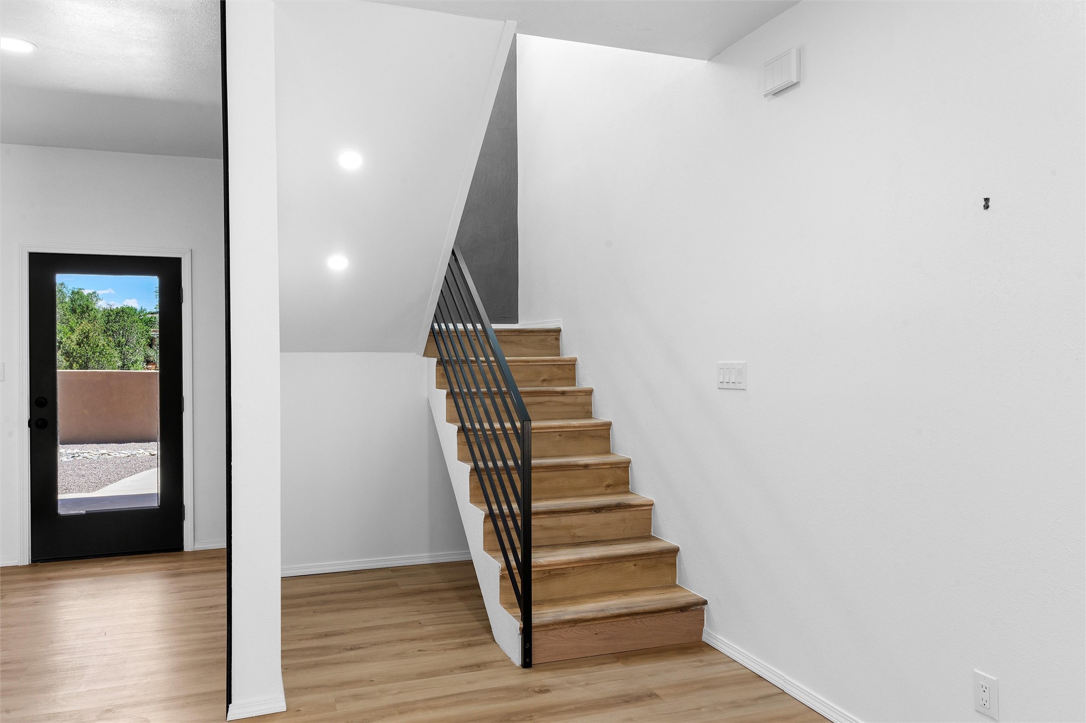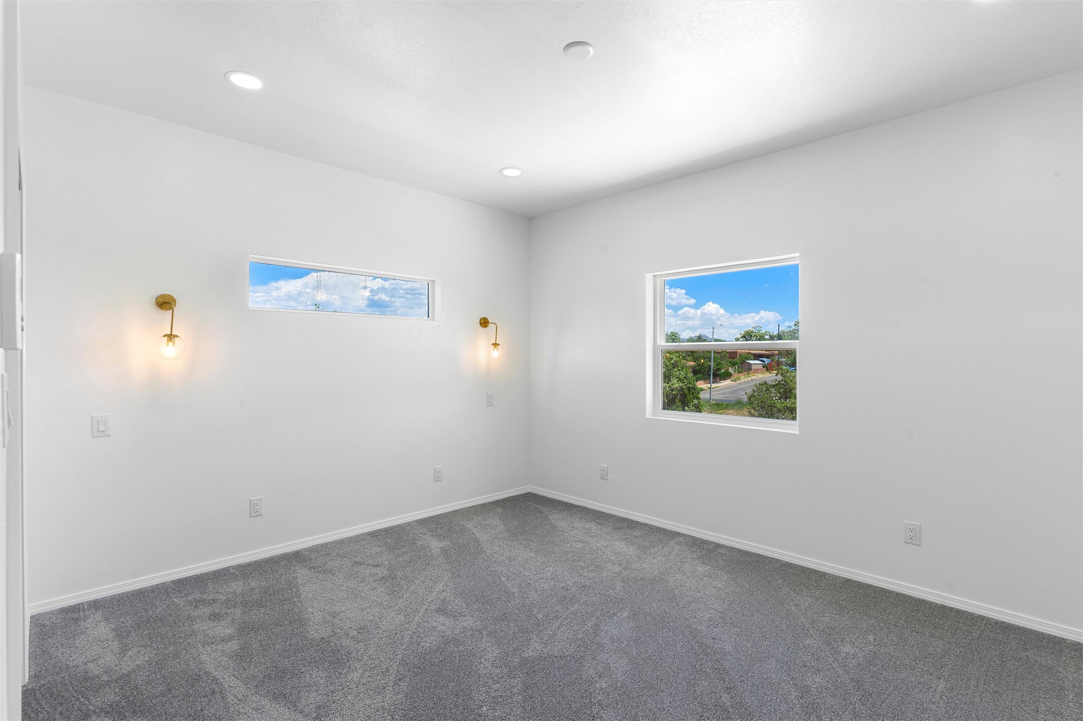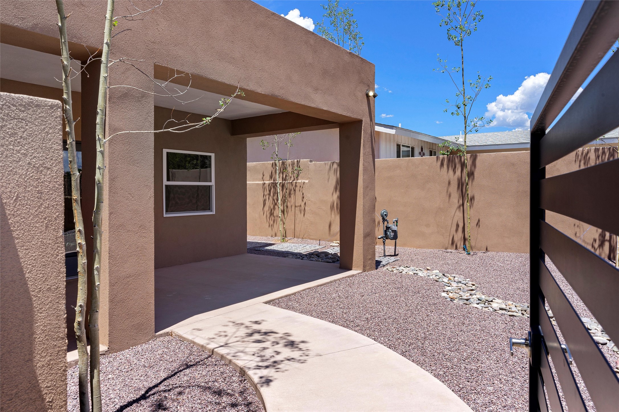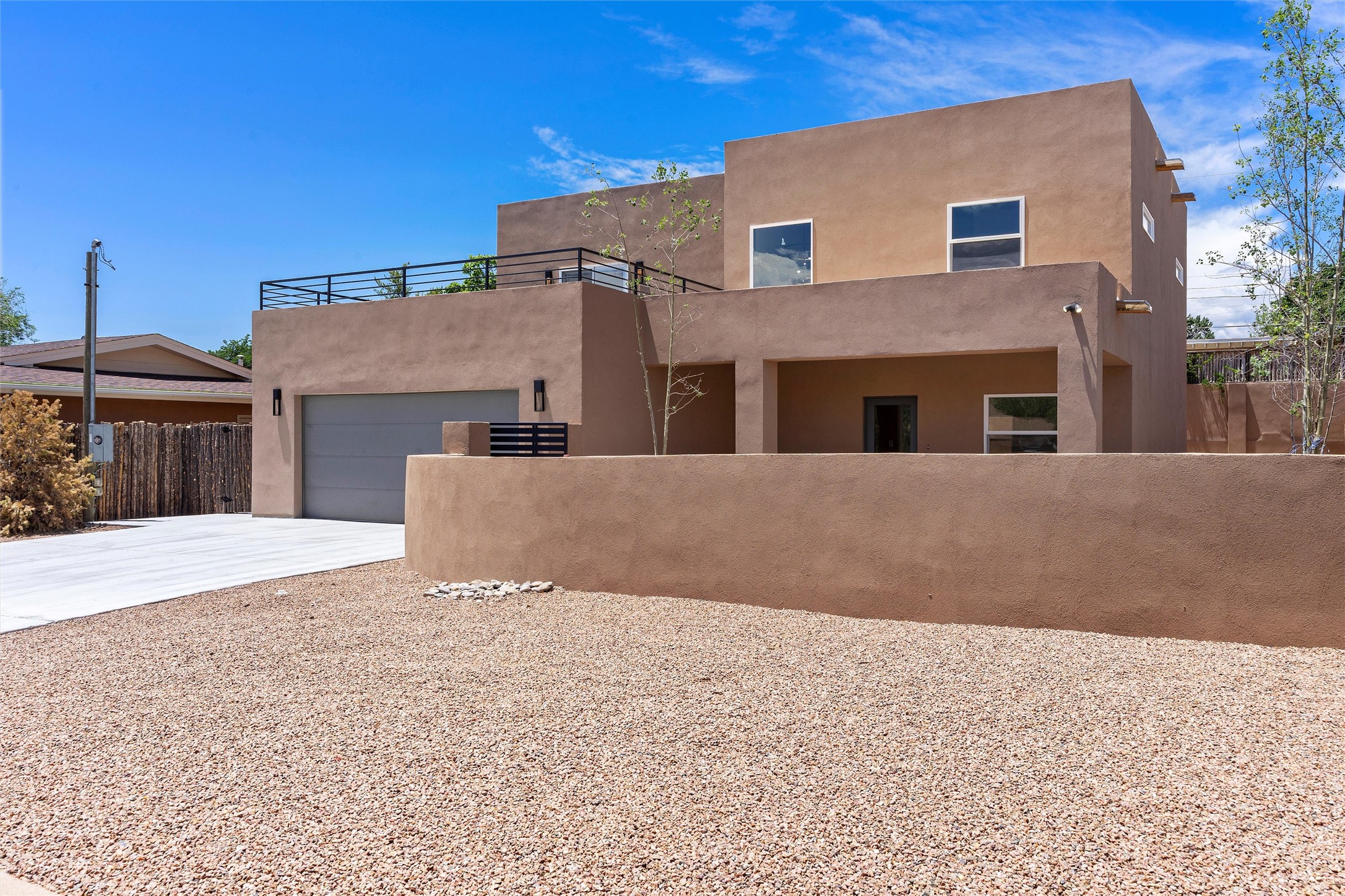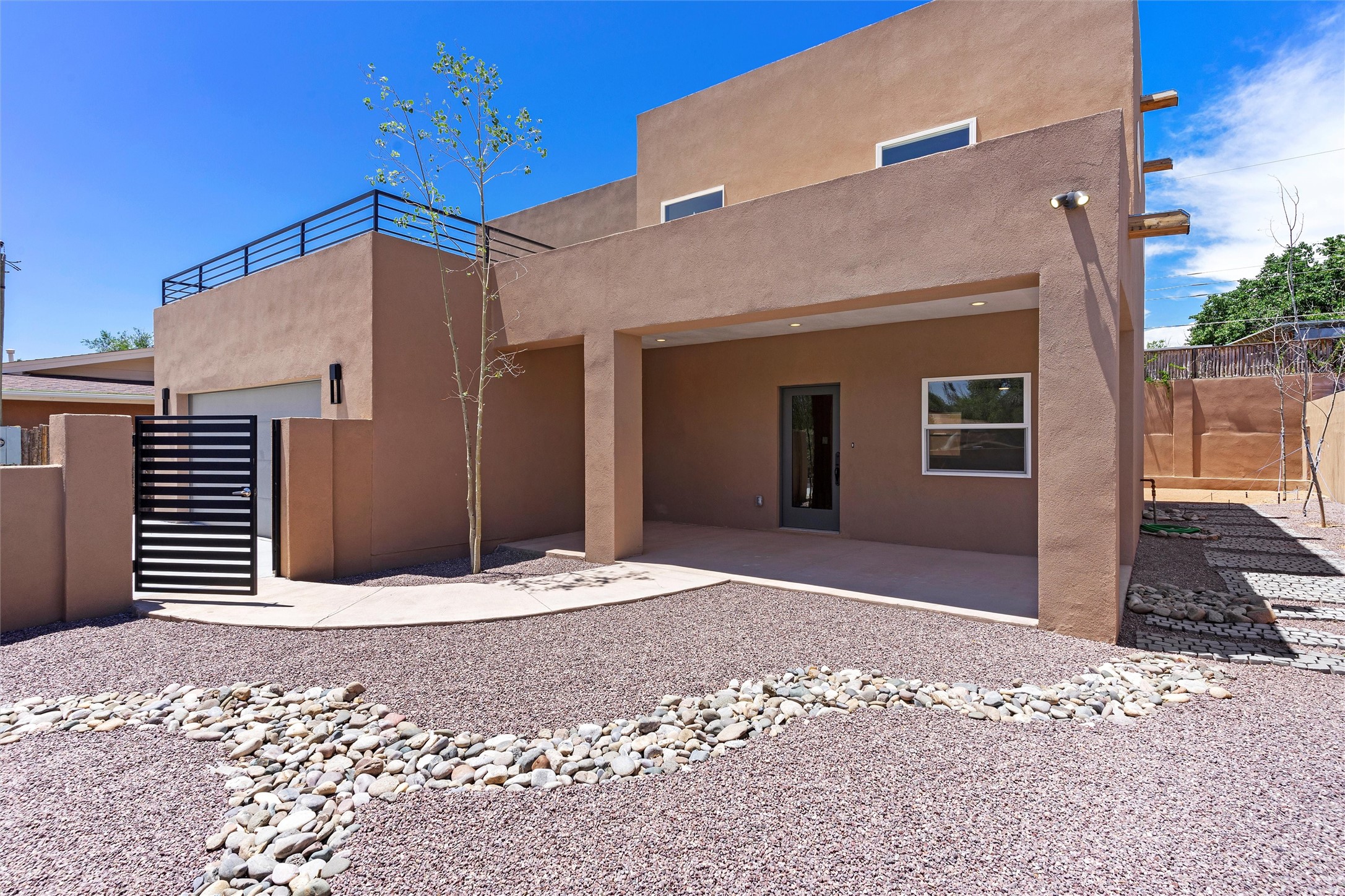 Offered under appraised value, this brand new custom built home presents a unique modern design, offering the perfect home for those seeking a sophisticated and luxurious lifestyle. This 3-bedroom, 2.5-bathroom house, showcases an open-concept layout that effortlessly combines style, functionality, and comfort. Step inside and be greeted by an abundance of natural light, illuminating the sleek lines and clean finishes throughout the home. The spacious living area serves as the centerpiece of the home and the carefully designed kitchen is a culinary enthusiast's dream, featuring stunning cabinetry, a walk-in pantry, quartz countertops and a large functional island for both meal preparation and casual dining. The chic primary bedroom offers a large walkout balcony with mountain views, walk-in closet, and an en-suite with a soaking tub, standing shower, and double sinks, which all together creates the perfect retreat to rejuvenate and recharge. Outside, the property features well manicured landscaping in the front and side yards and high privacy walls surround the home. The house is centrally located, offering convenient access to all Santa Fe has to offer. Don't miss this rare opportunity to own a new construction, modern masterpiece in Santa Fe.