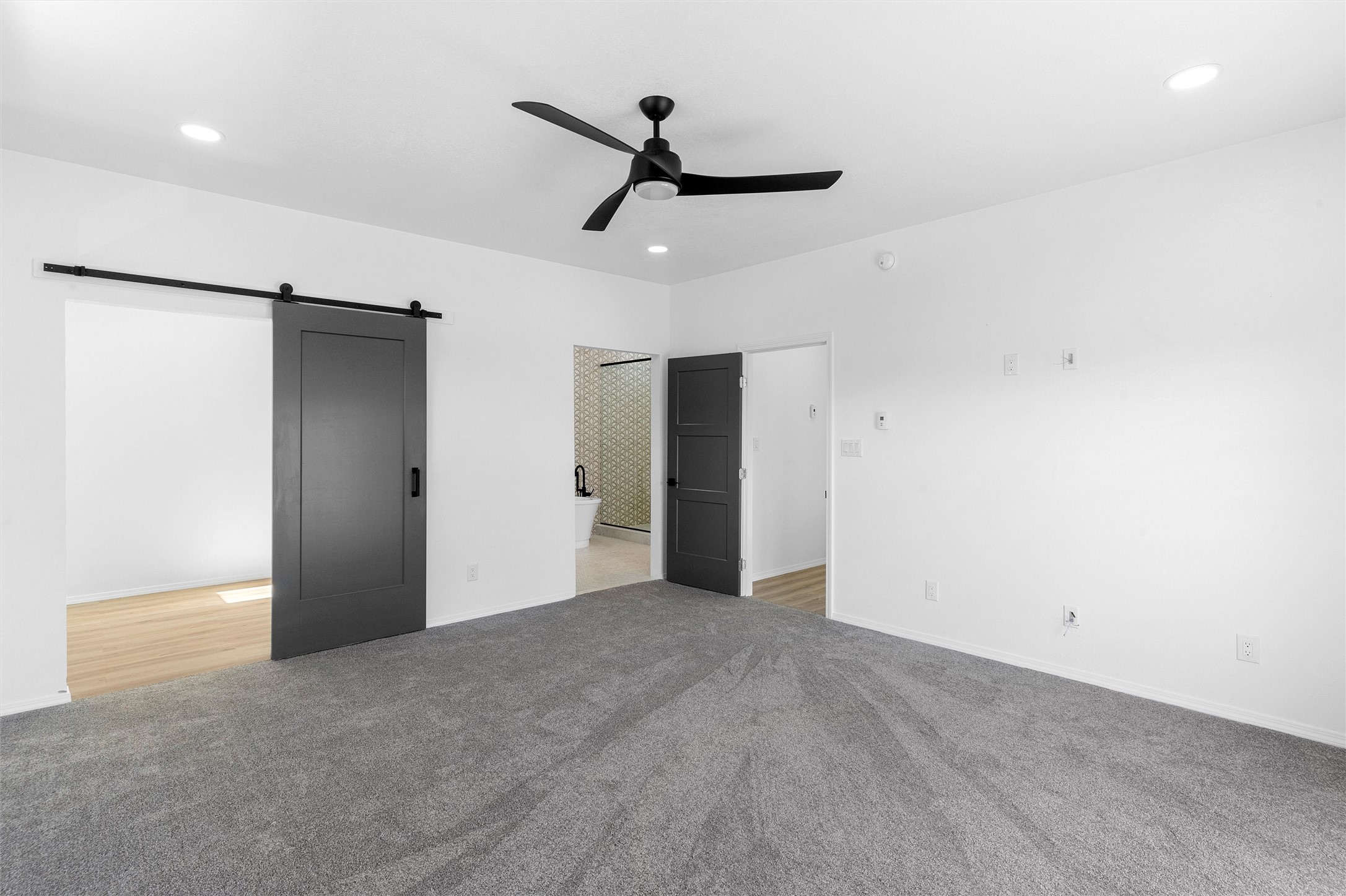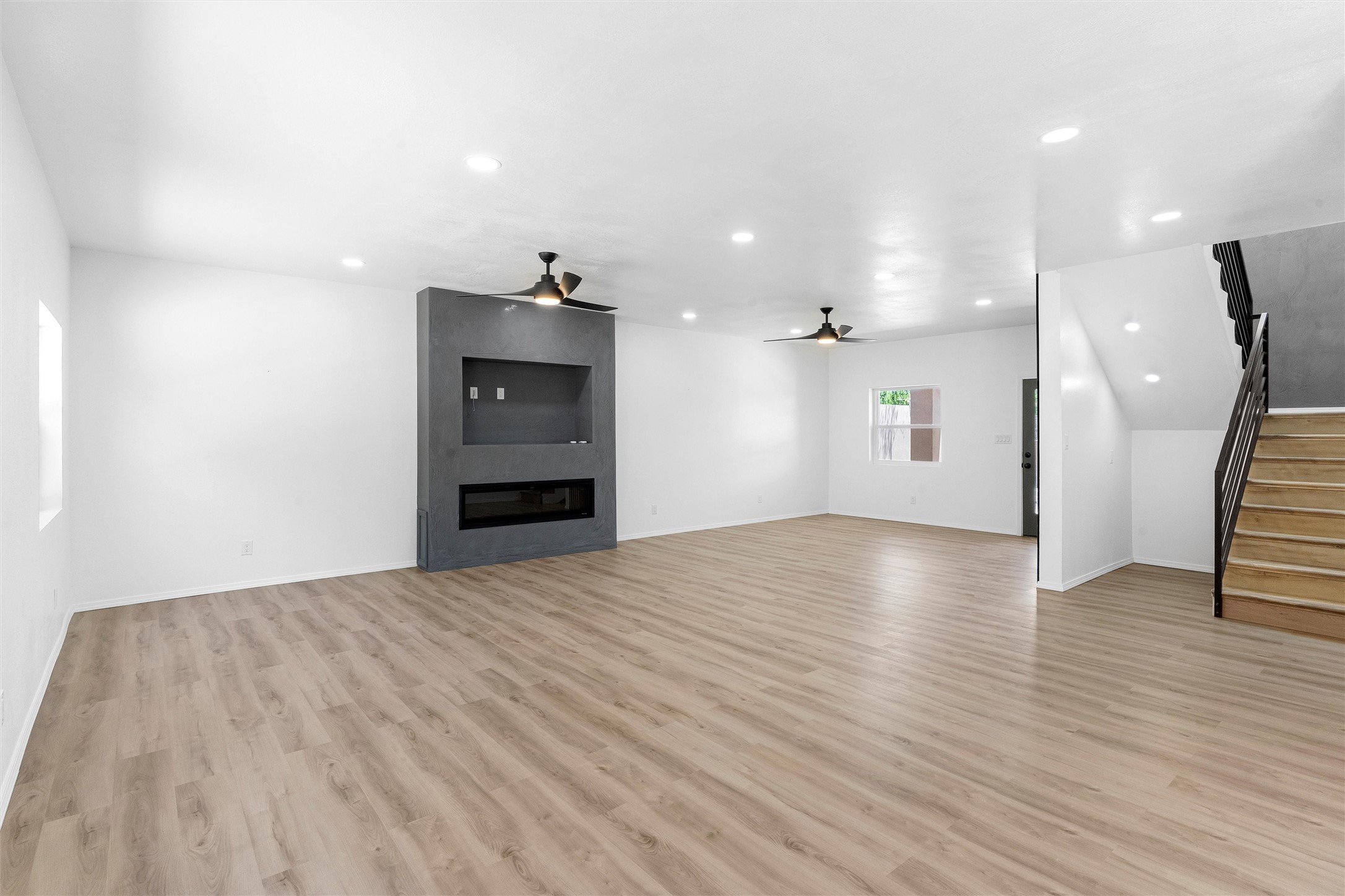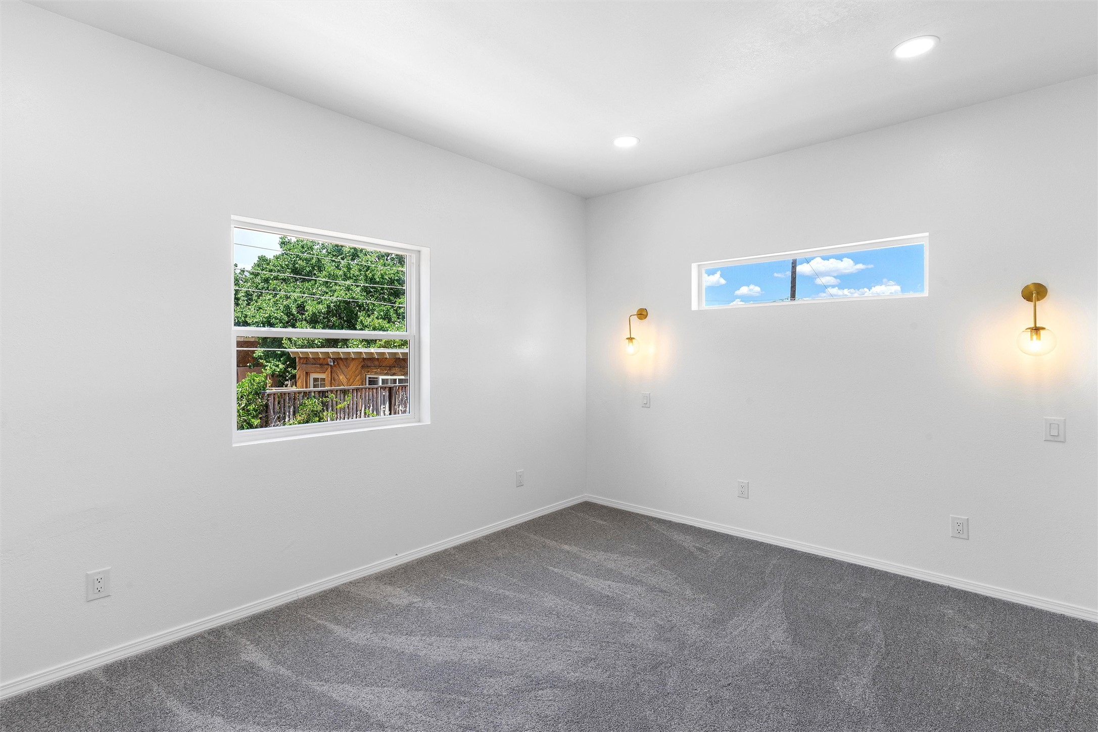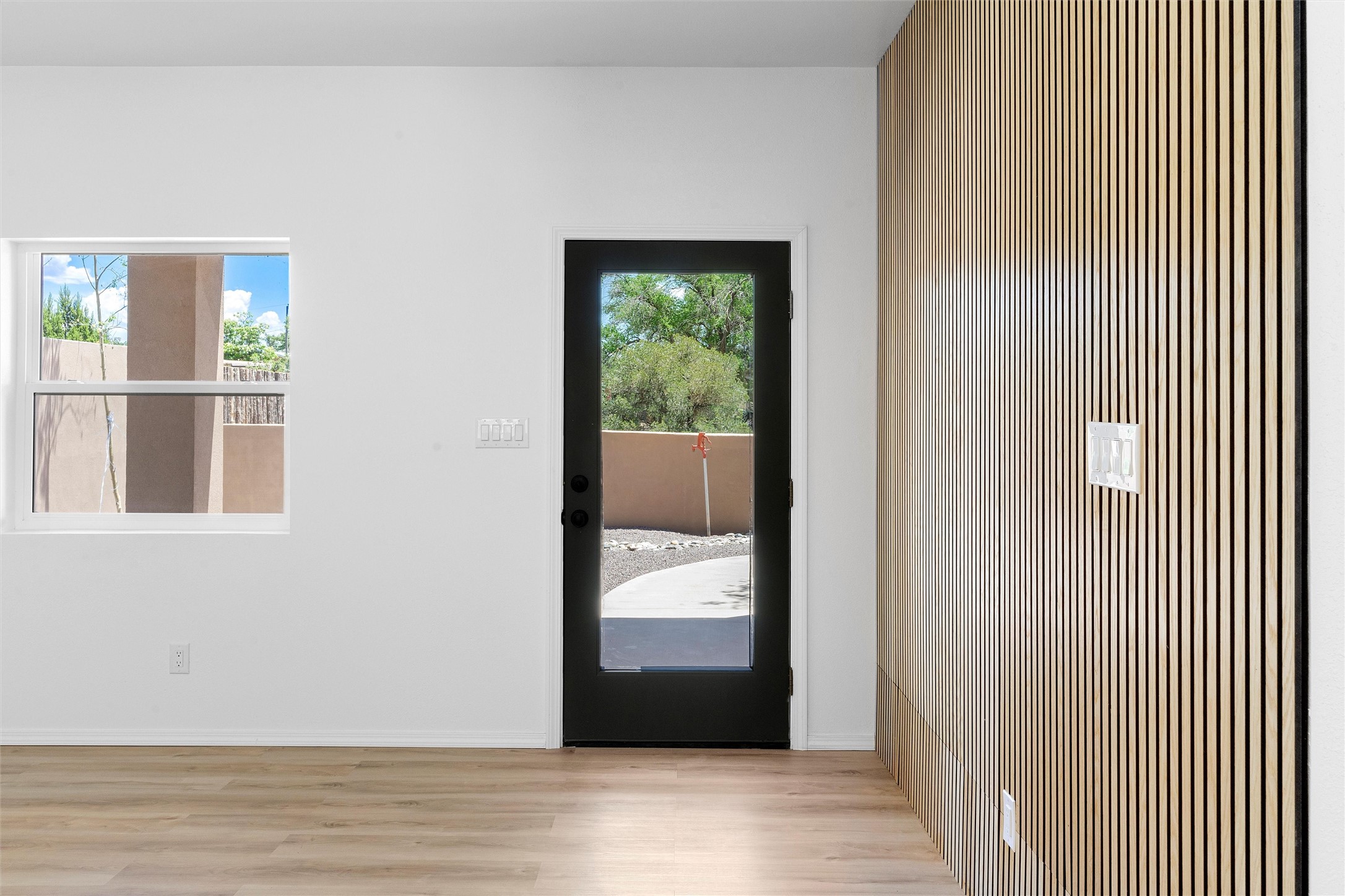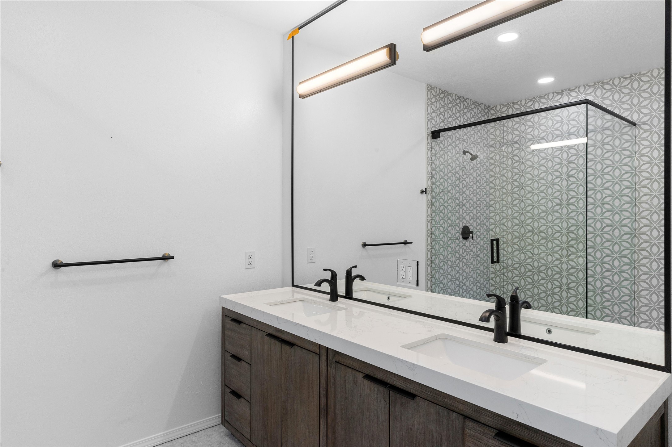 Offered under appraised value, this brand new custom built home presents a unique modern design, offering the perfect home for those seeking a sophisticated and luxurious lifestyle. This 3-bedroom, 2.5-bathroom house, showcases an open-concept layout that effortlessly combines style, functionality, and comfort. Step inside and be greeted by an abundance of natural light, illuminating the sleek lines and clean finishes throughout the home. The spacious living area serves as the centerpiece of the home and the carefully designed kitchen is a culinary enthusiast's dream, featuring stunning cabinetry, a walk-in pantry, quartz countertops and a large functional island for both meal preparation and casual dining. The chic primary bedroom offers a large walkout balcony with mountain views, walk-in closet, and an en-suite with a soaking tub, standing shower, and double sinks, which all together creates the perfect retreat to rejuvenate and recharge. Outside, the property features well manicured landscaping in the front and side yards and high privacy walls surround the home. The house is centrally located, offering convenient access to all Santa Fe has to offer. Don't miss this rare opportunity to own a new construction, modern masterpiece in Santa Fe.