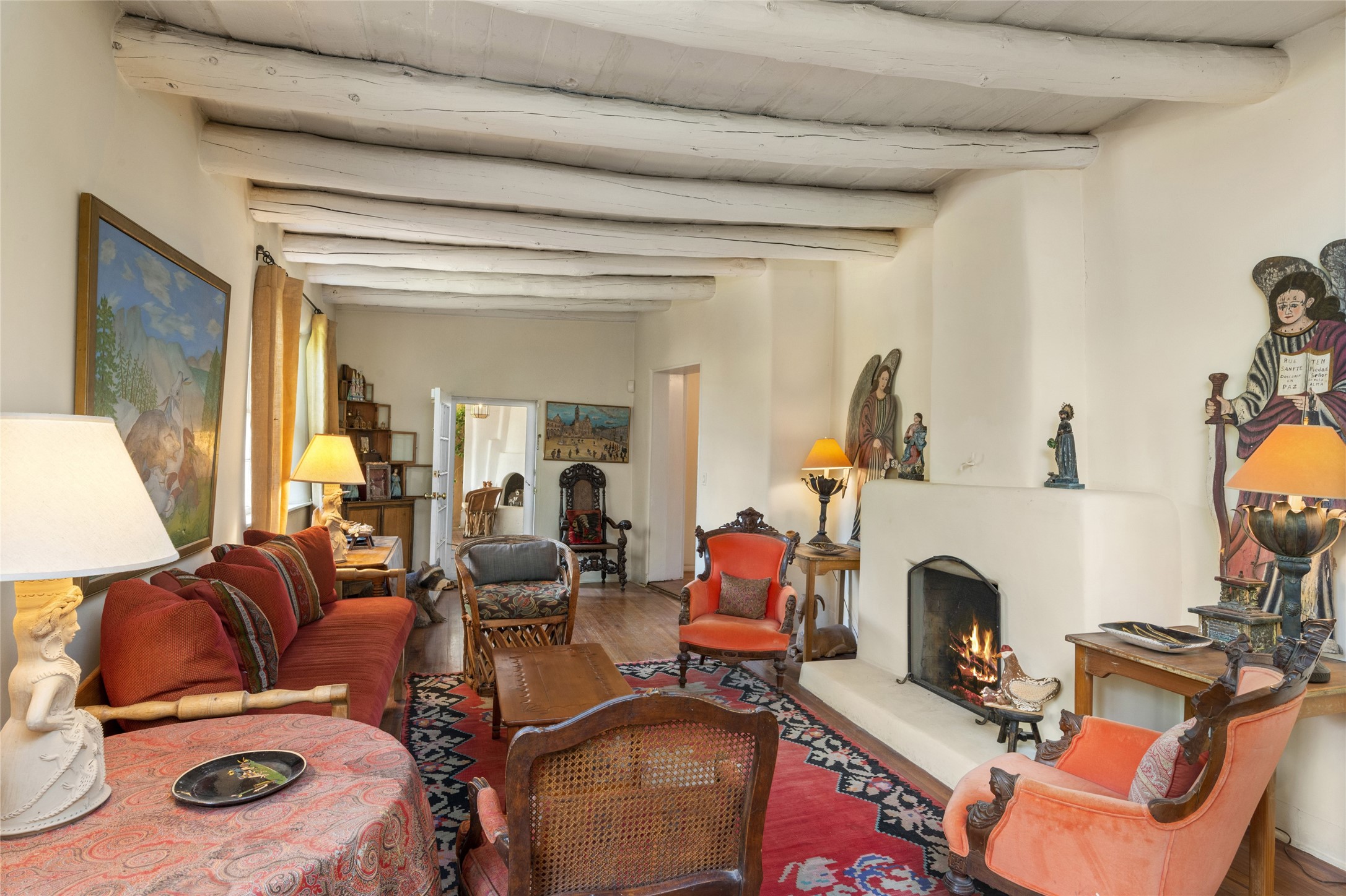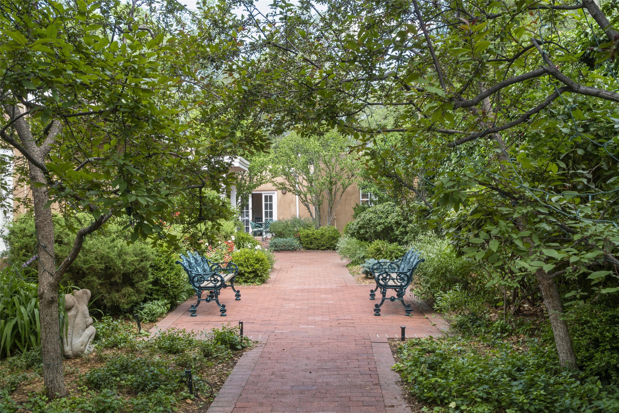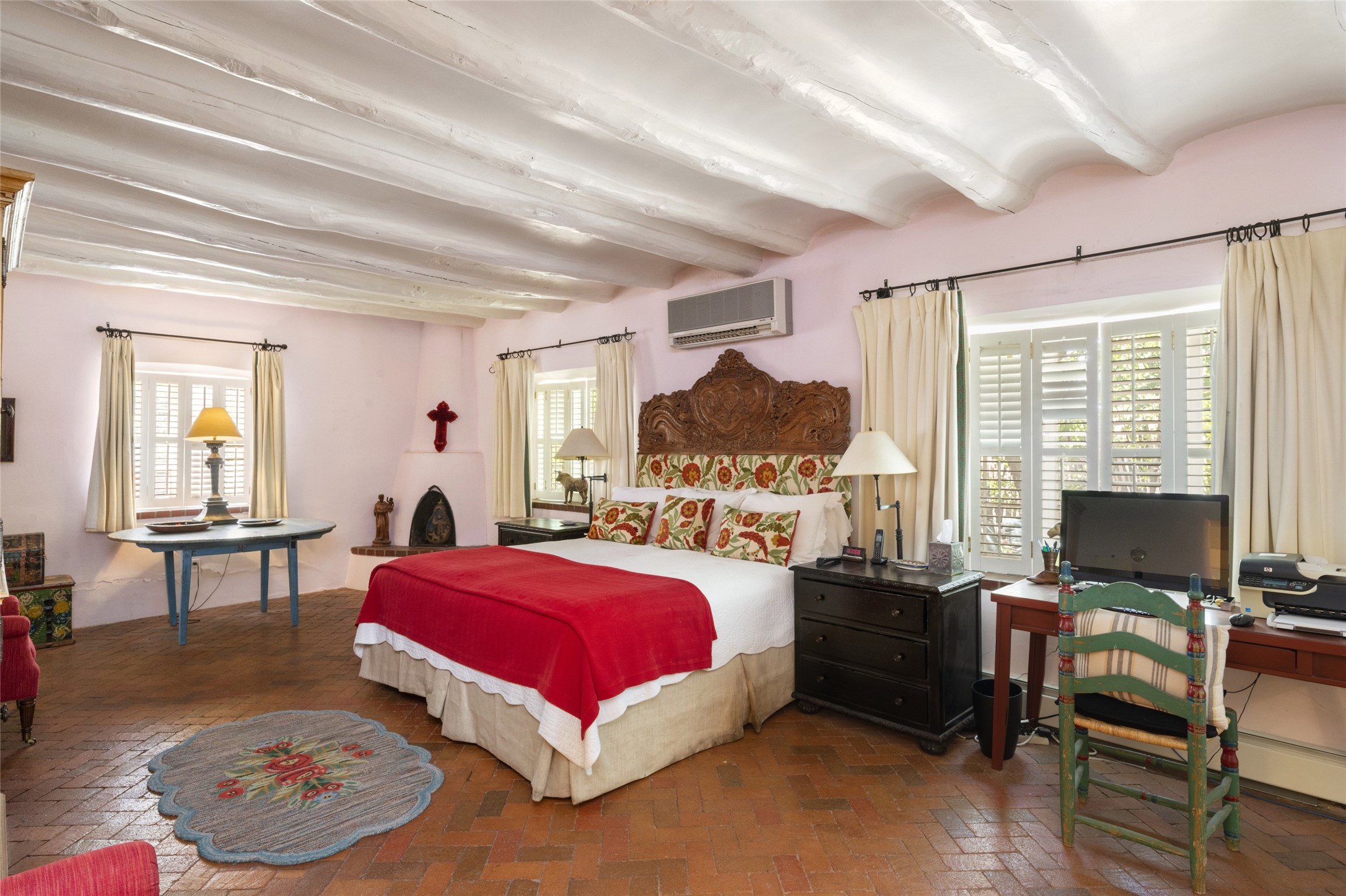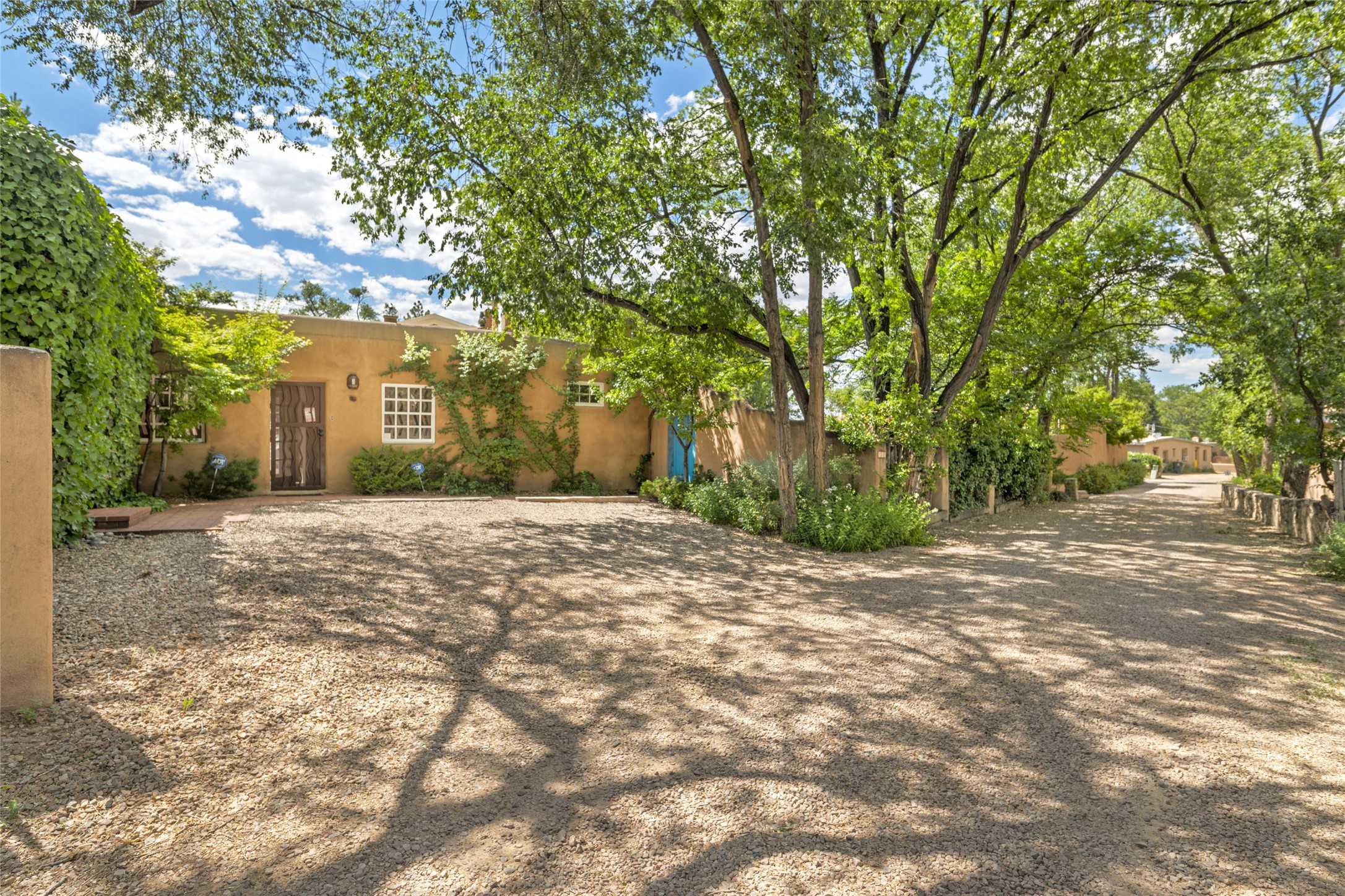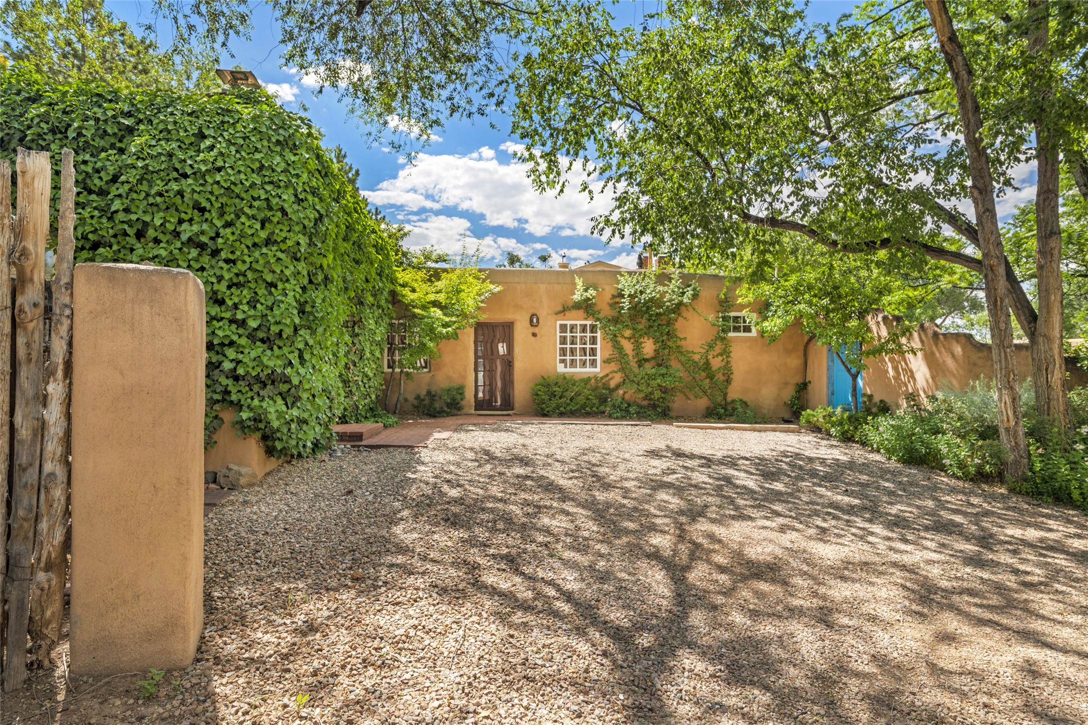 Set back from the famed Camino del Monte Sol lies this elegant Eastside jewel. Seeped in history, with parts dating back to the 1800's, this property was once the home of famed photographer Laura Gilpin. Four bedrooms, five bathrooms, beautiful outdoor spaces featuring a deep entry courtyard as well as a beautiful back portal and terraced gardens - with classic New Mexico architectural details; such as vigas, carved doors, coved ceiling and kiva fireplaces . . . this is the real thing!