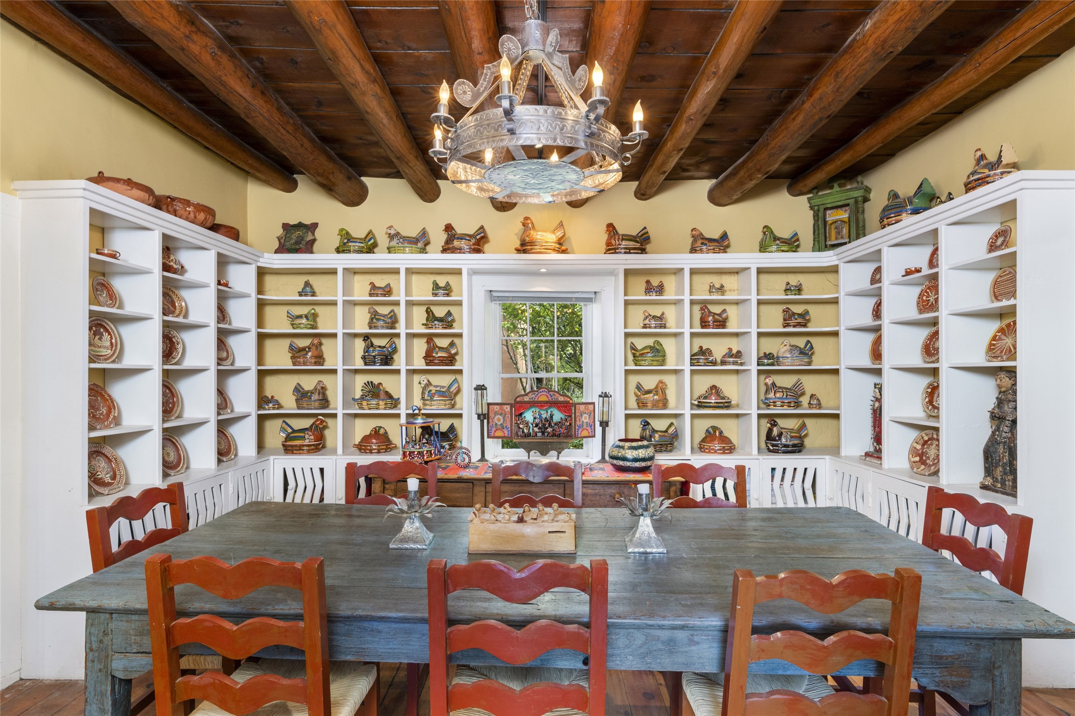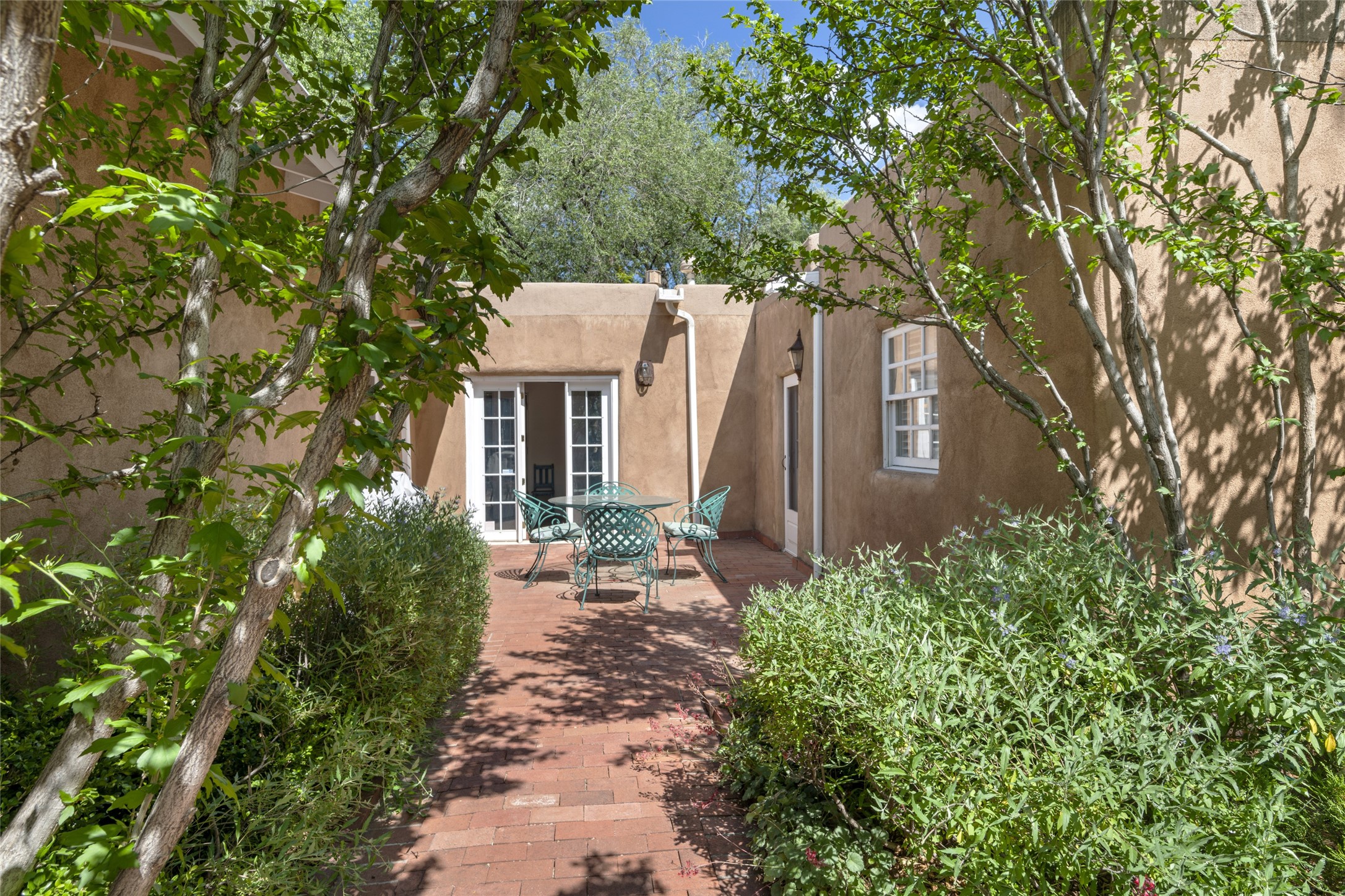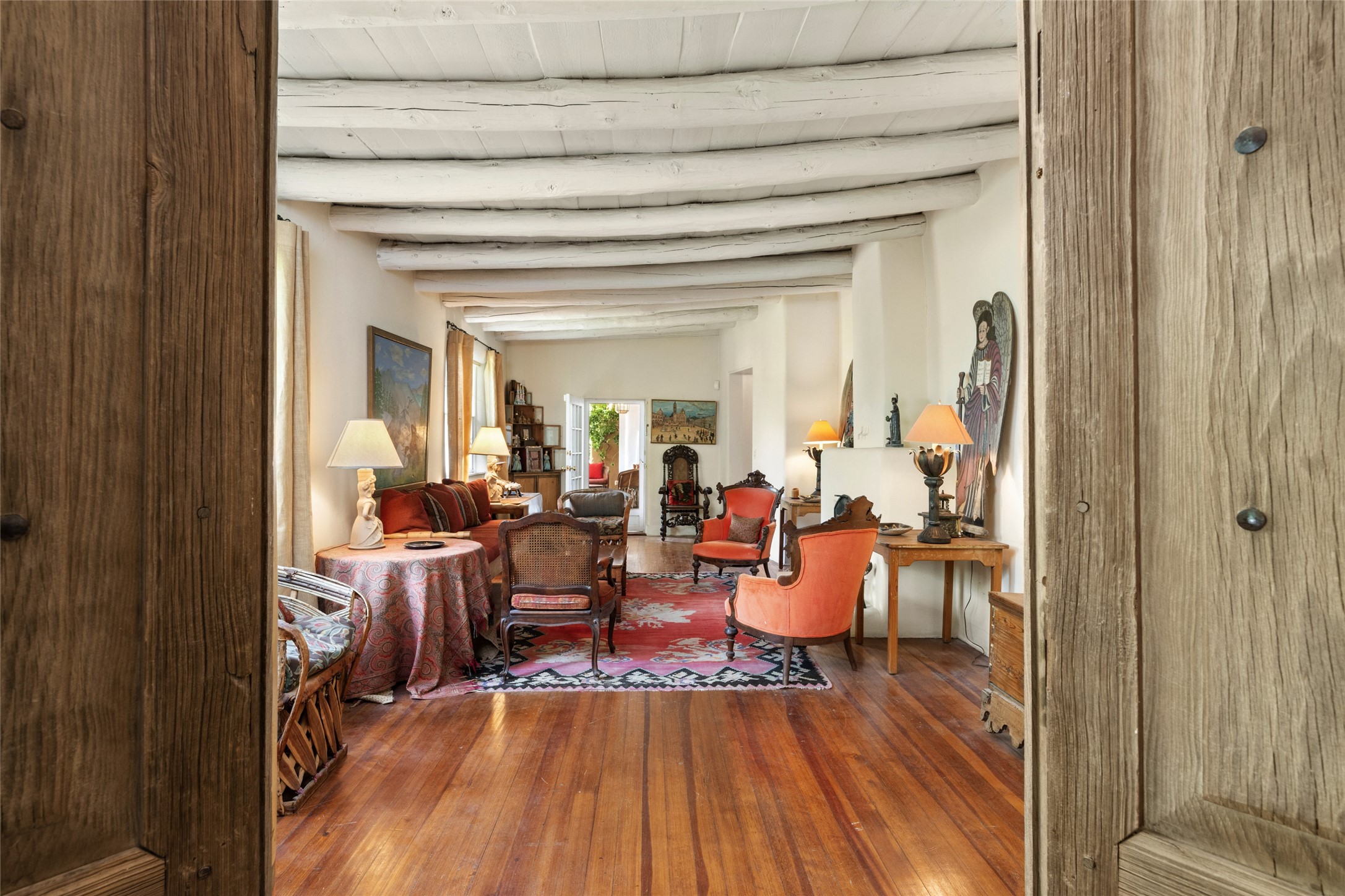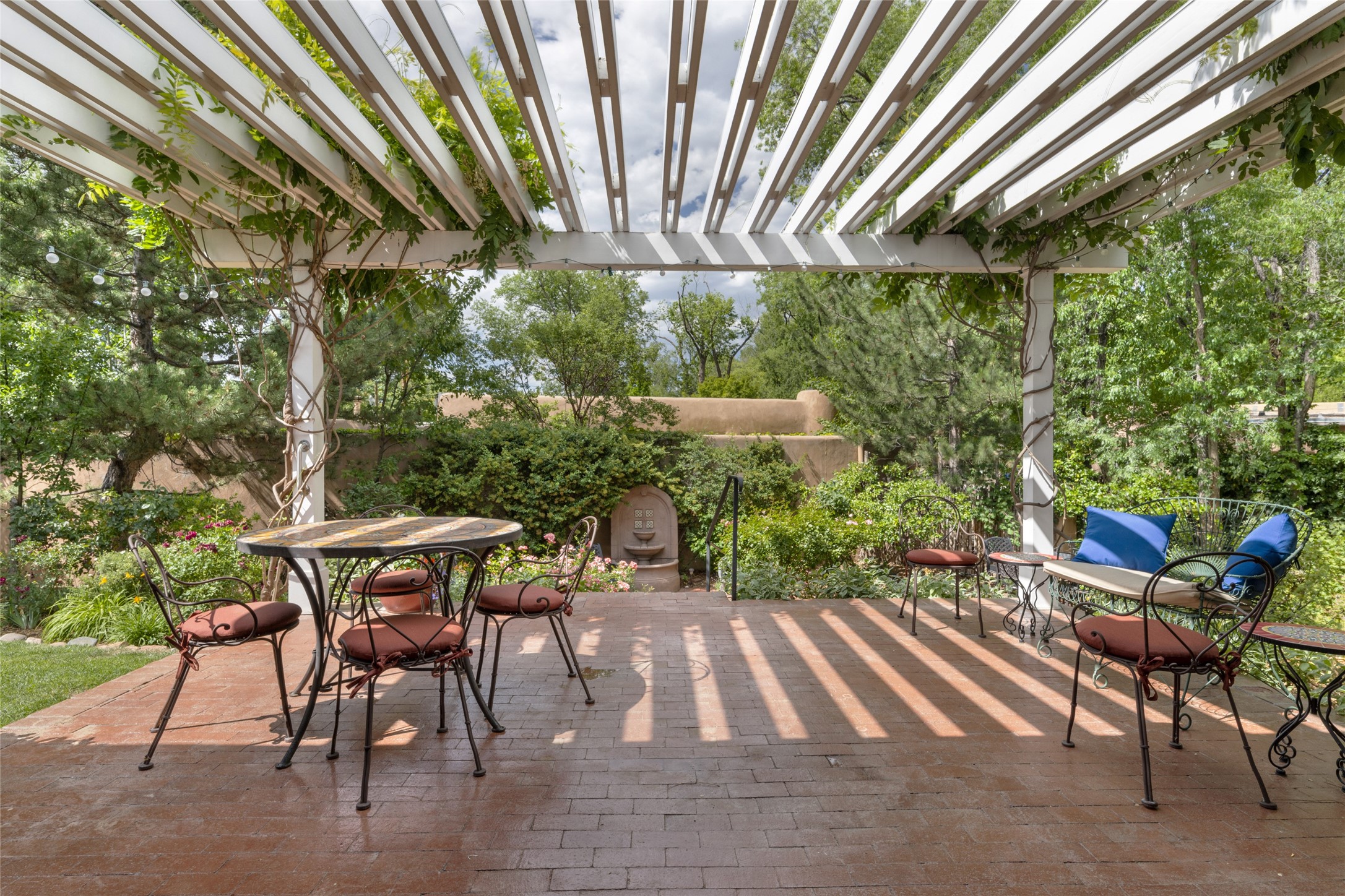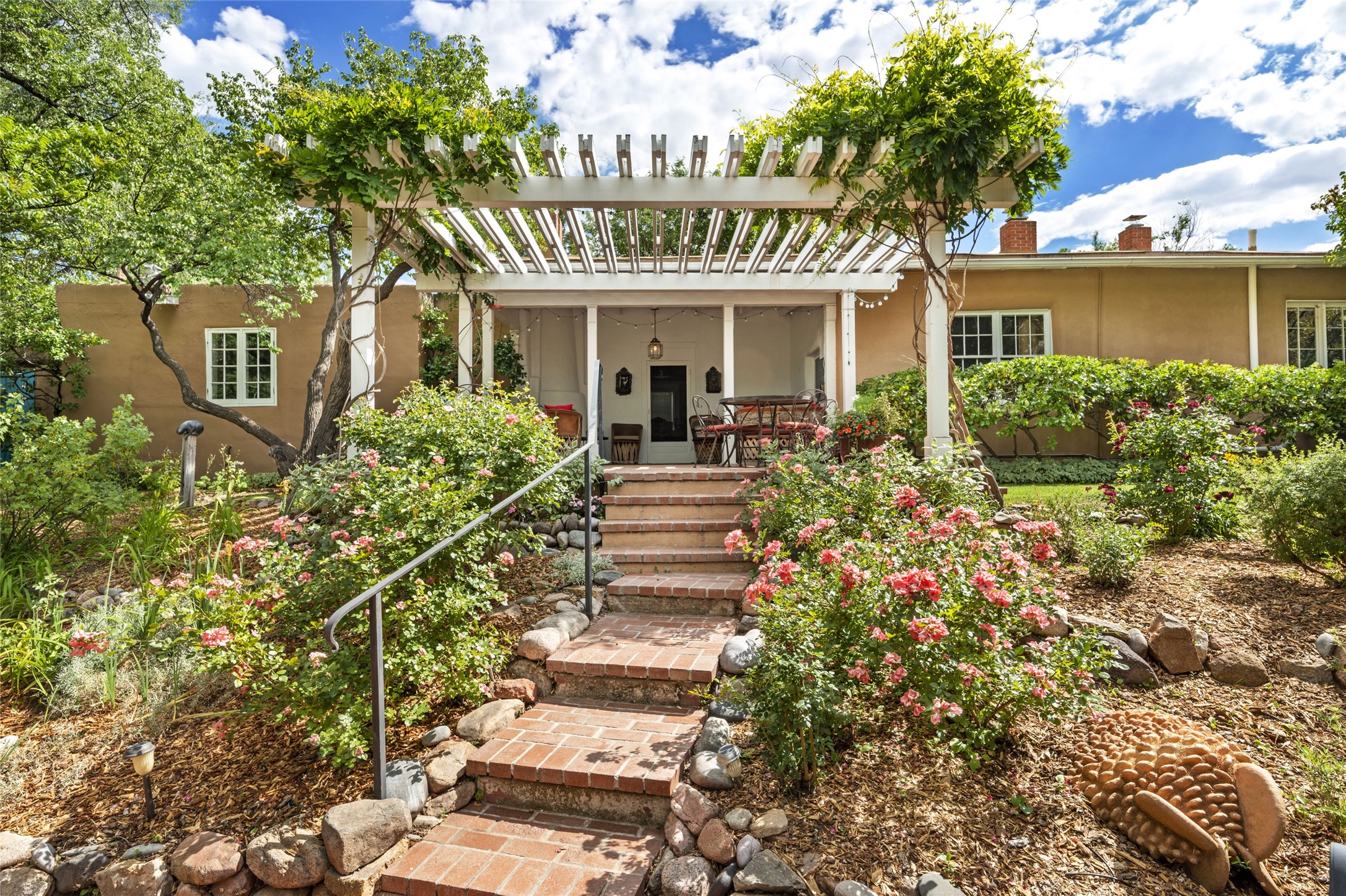 Set back from the famed Camino del Monte Sol lies this elegant Eastside jewel. Seeped in history, with parts dating back to the 1800's, this property was once the home of famed photographer Laura Gilpin. Four bedrooms, five bathrooms, beautiful outdoor spaces featuring a deep entry courtyard as well as a beautiful back portal and terraced gardens - with classic New Mexico architectural details; such as vigas, carved doors, coved ceiling and kiva fireplaces . . . this is the real thing!