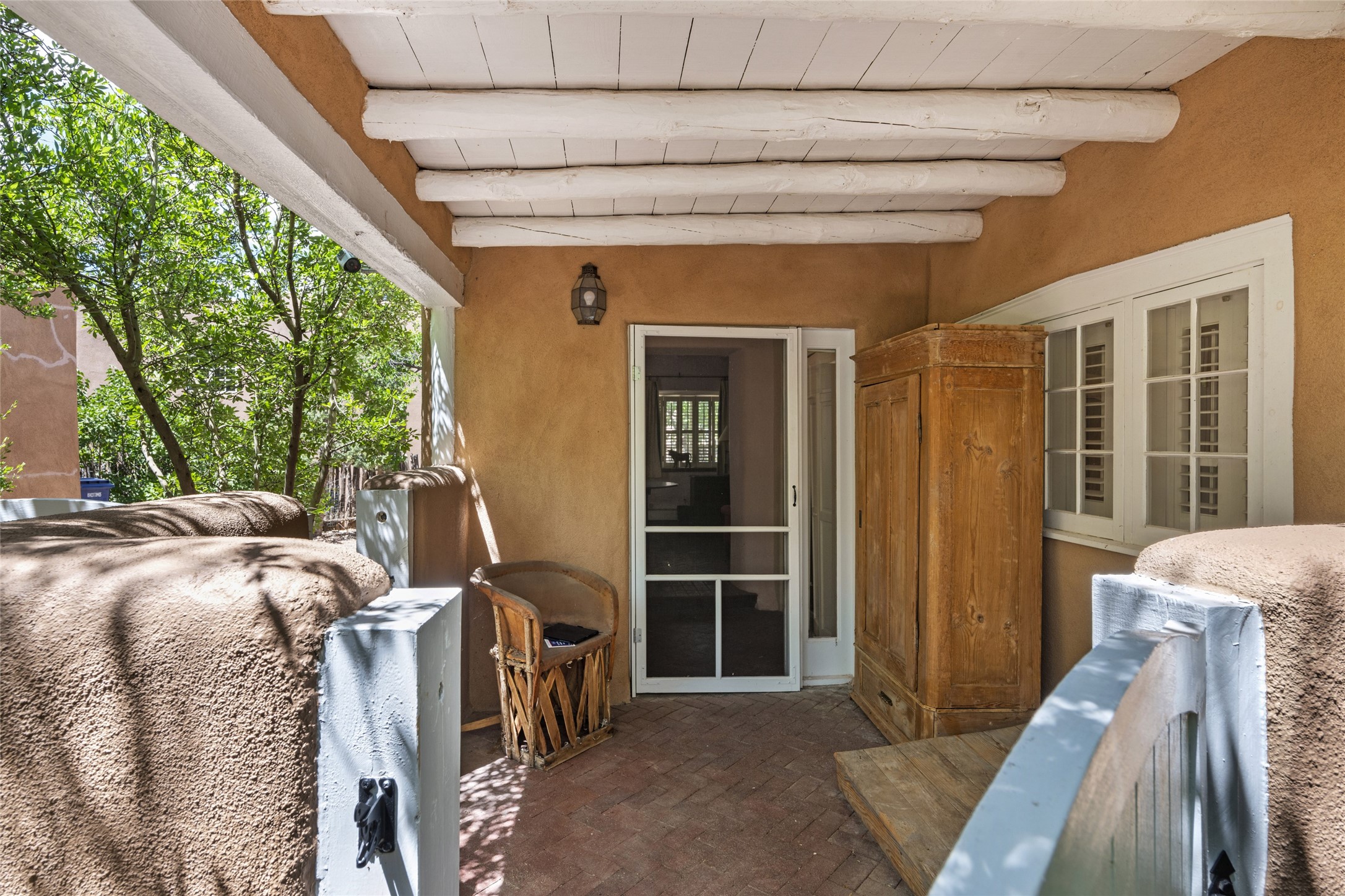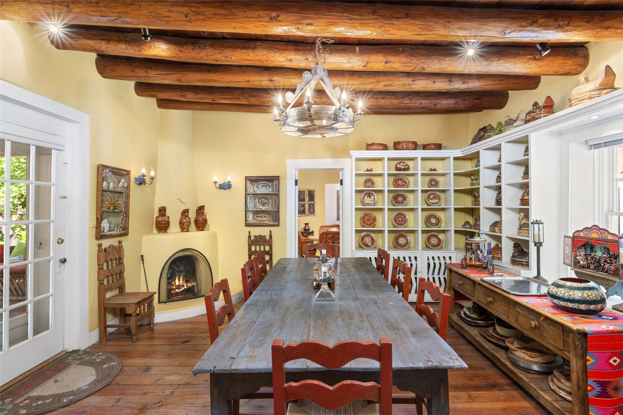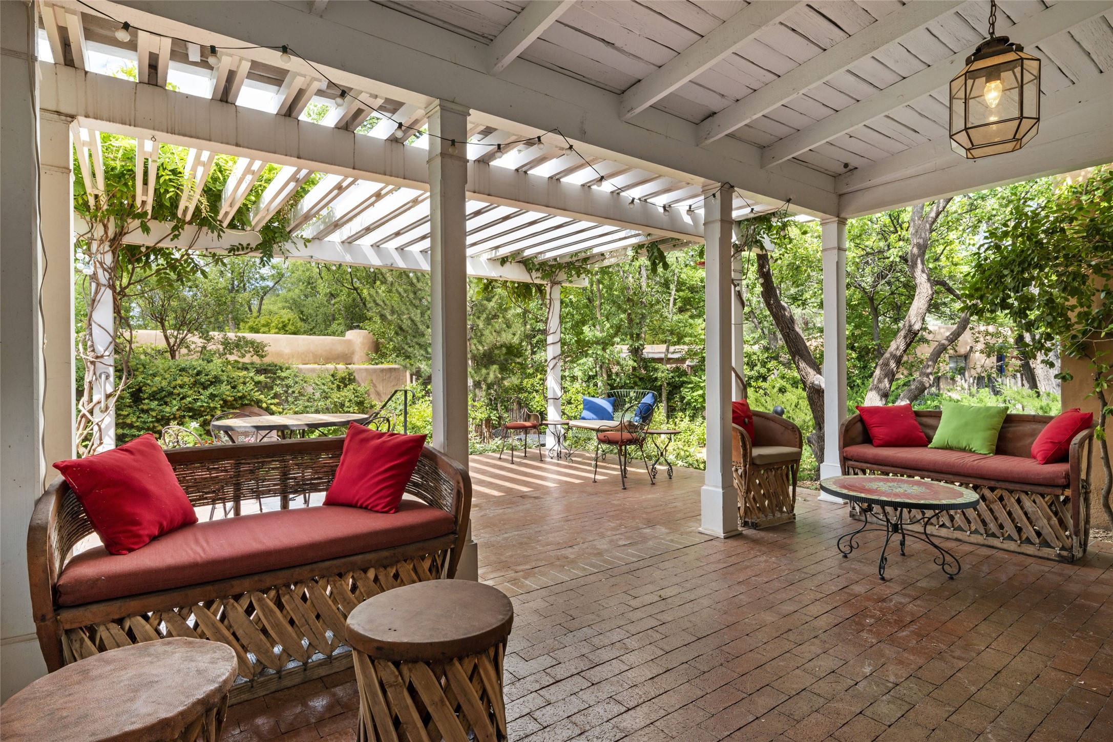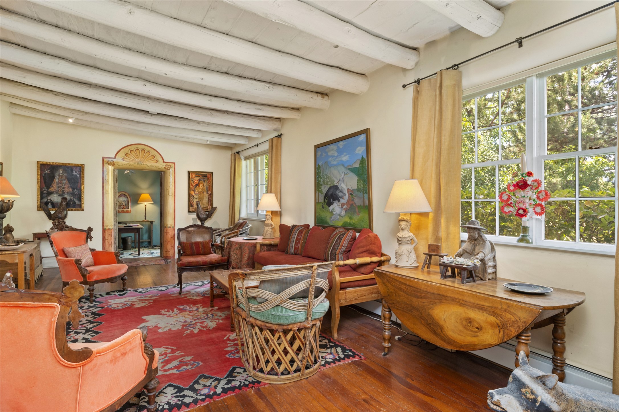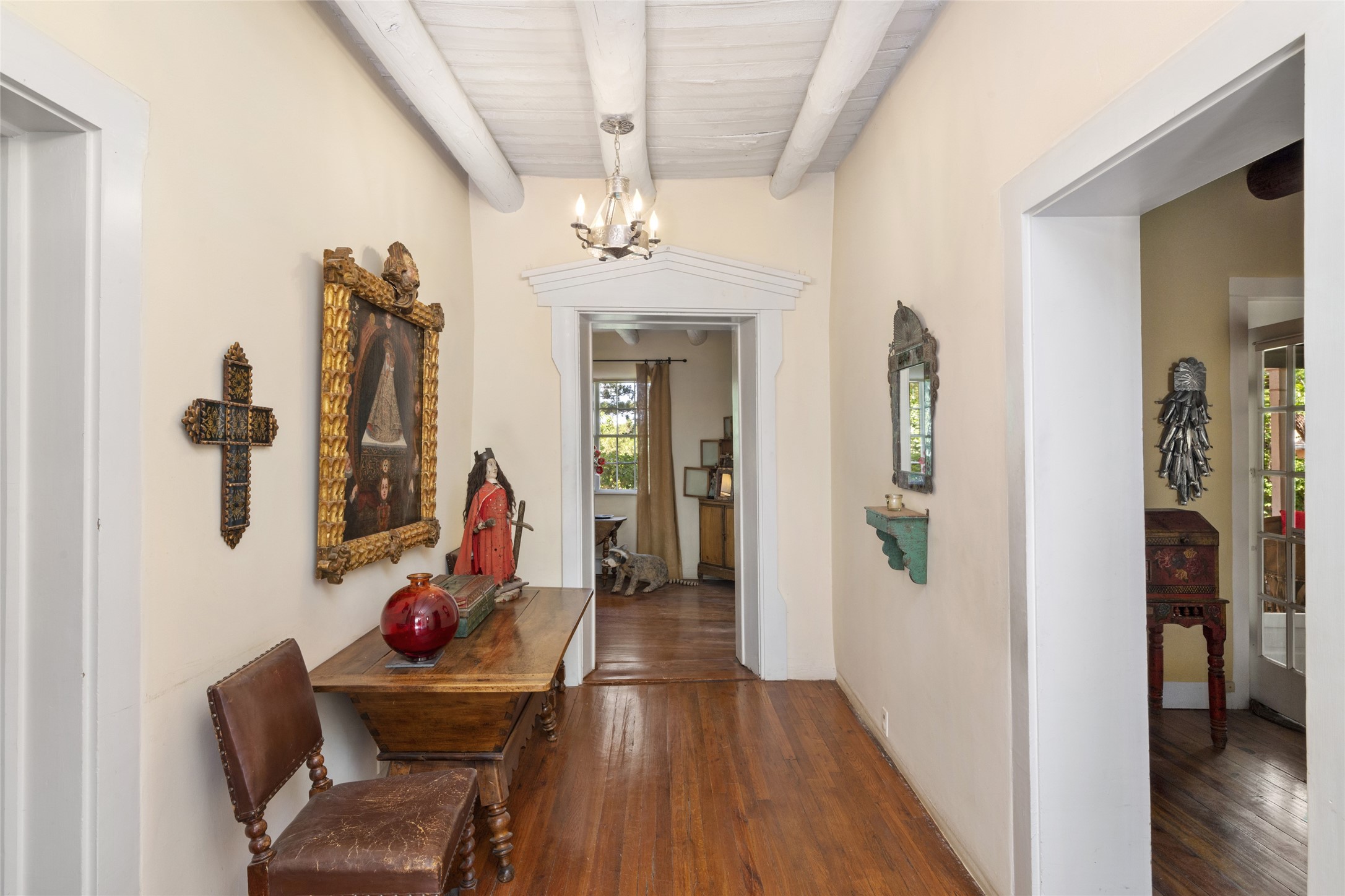 Set back from the famed Camino del Monte Sol lies this elegant Eastside jewel. Seeped in history, with parts dating back to the 1800's, this property was once the home of famed photographer Laura Gilpin. Four bedrooms, five bathrooms, beautiful outdoor spaces featuring a deep entry courtyard as well as a beautiful back portal and terraced gardens - with classic New Mexico architectural details; such as vigas, carved doors, coved ceiling and kiva fireplaces . . . this is the real thing!