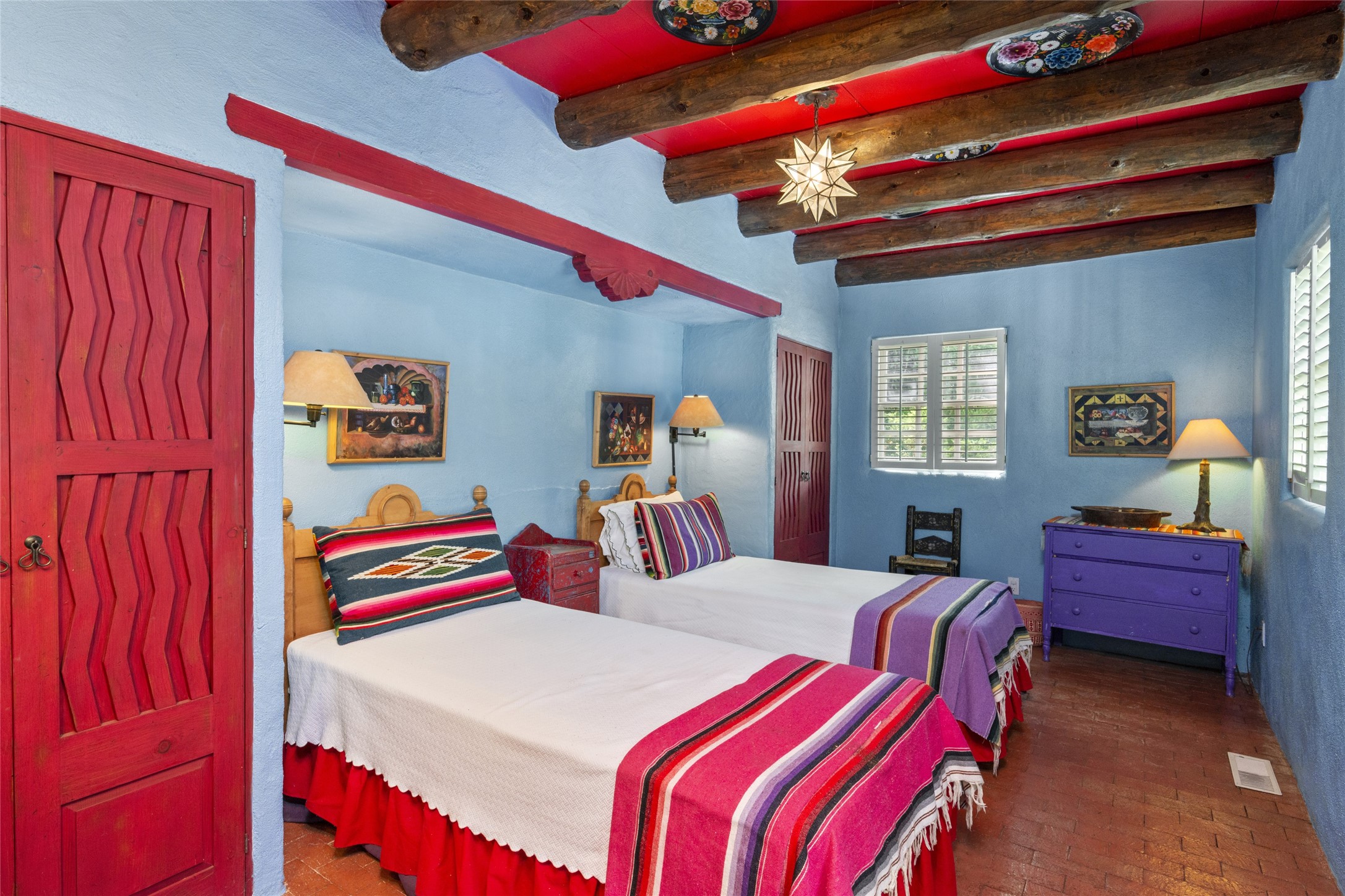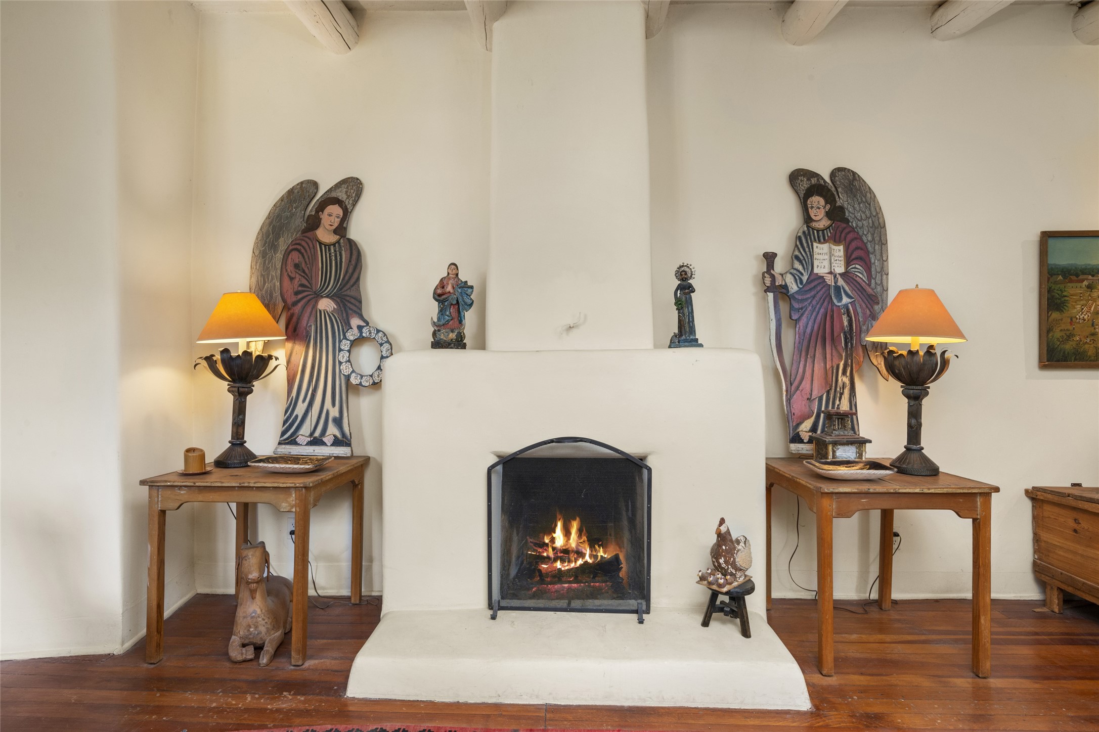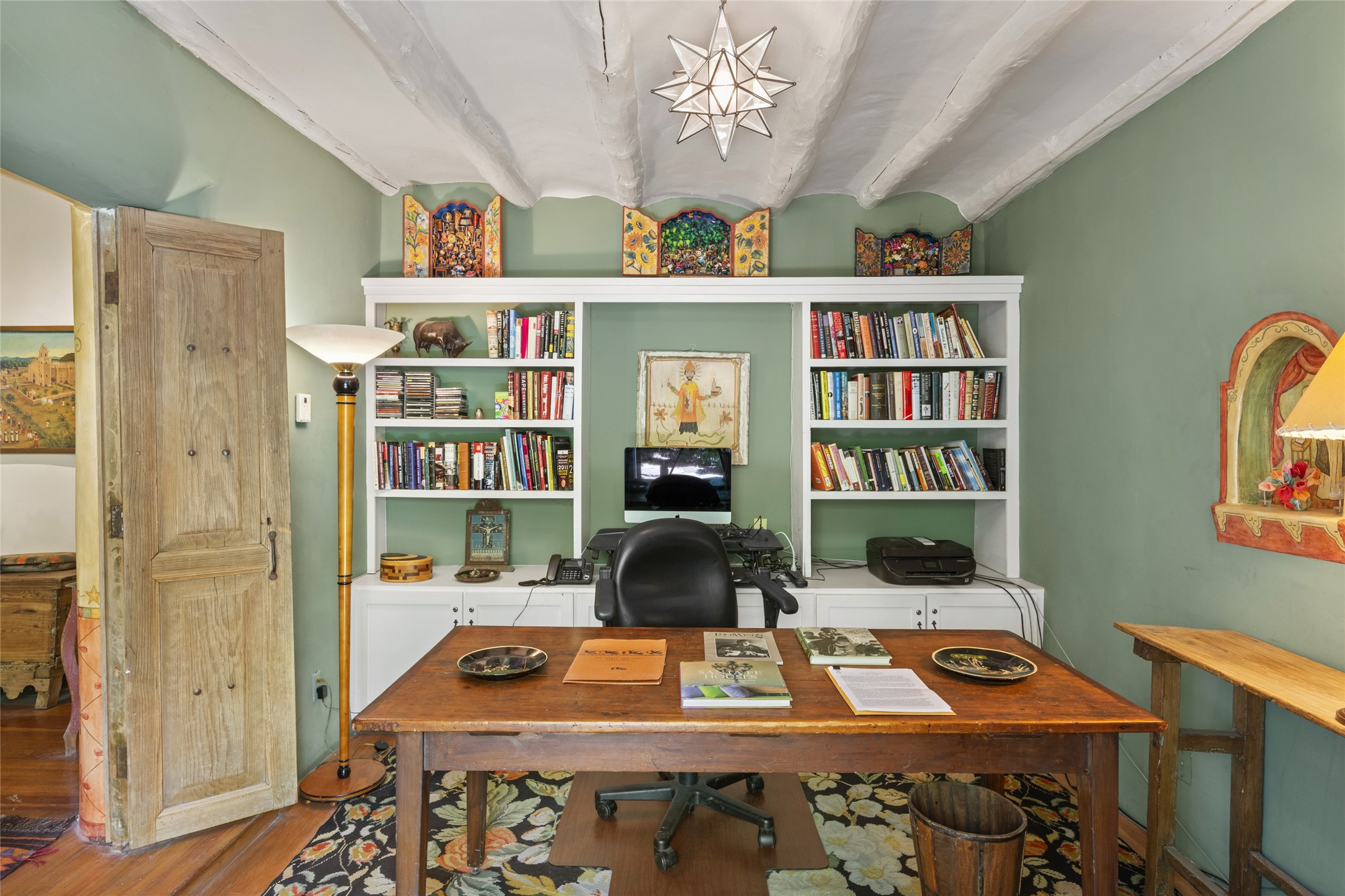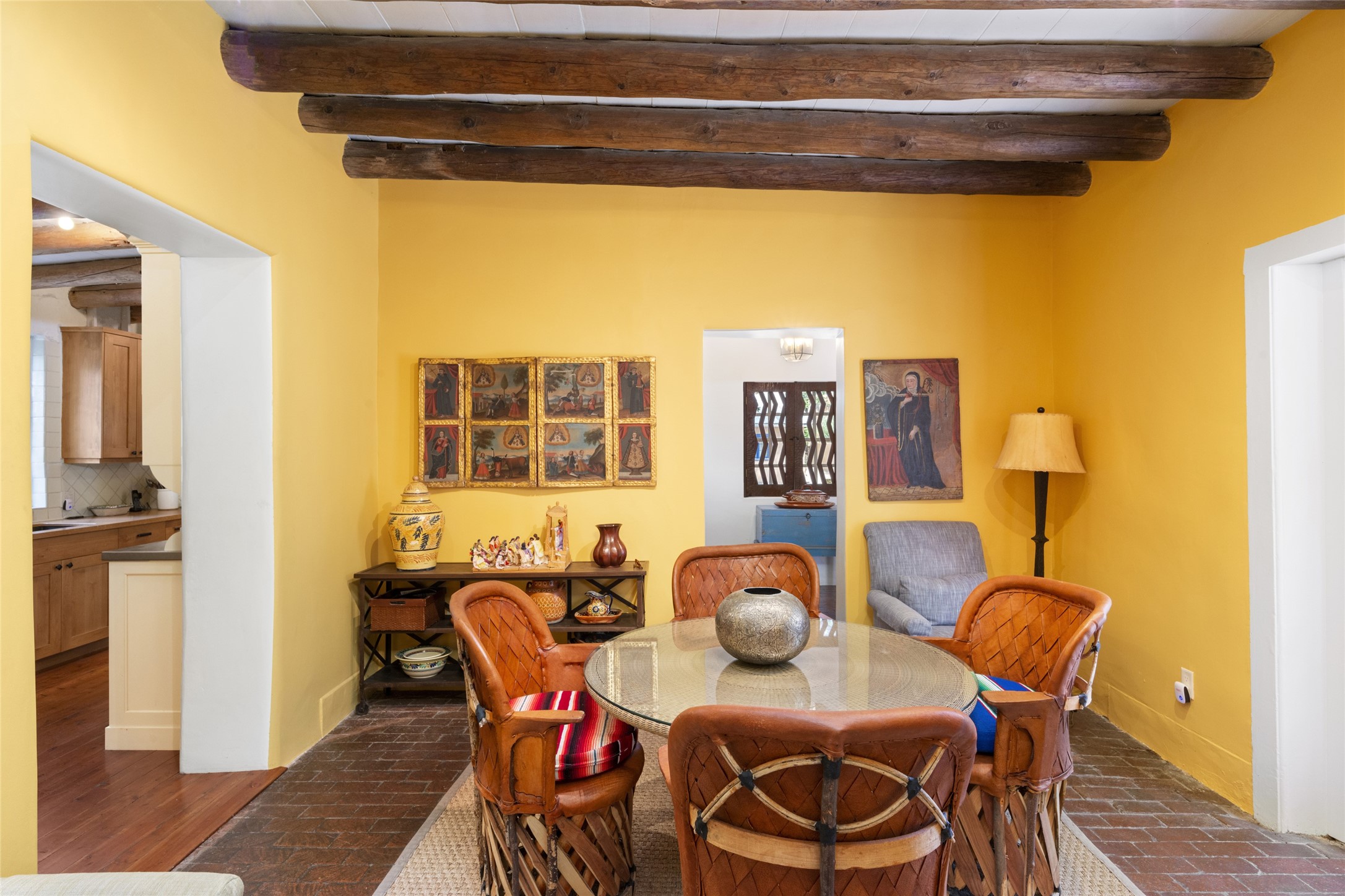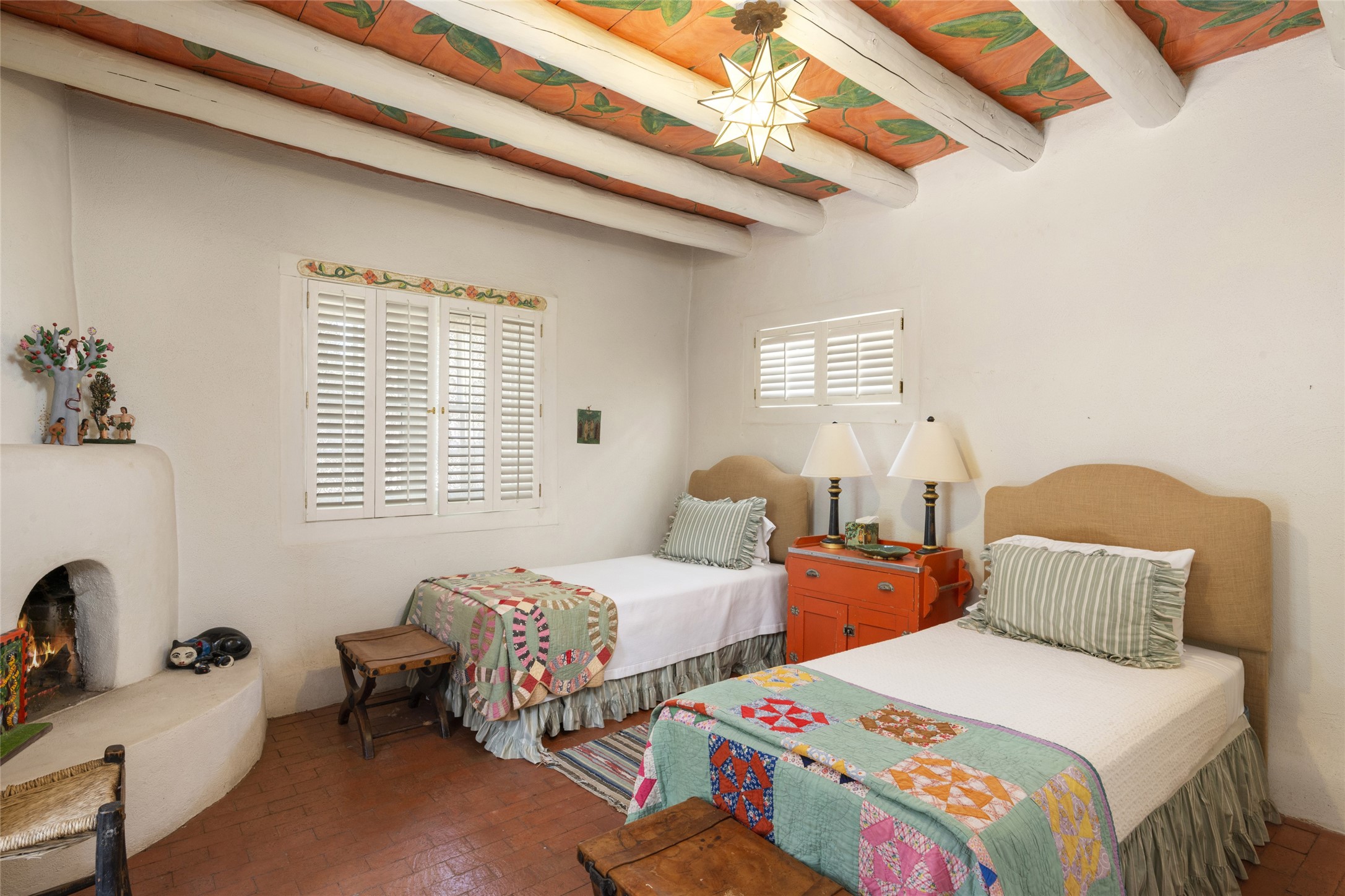 Set back from the famed Camino del Monte Sol lies this elegant Eastside jewel. Seeped in history, with parts dating back to the 1800's, this property was once the home of famed photographer Laura Gilpin. Four bedrooms, five bathrooms, beautiful outdoor spaces featuring a deep entry courtyard as well as a beautiful back portal and terraced gardens - with classic New Mexico architectural details; such as vigas, carved doors, coved ceiling and kiva fireplaces . . . this is the real thing!
