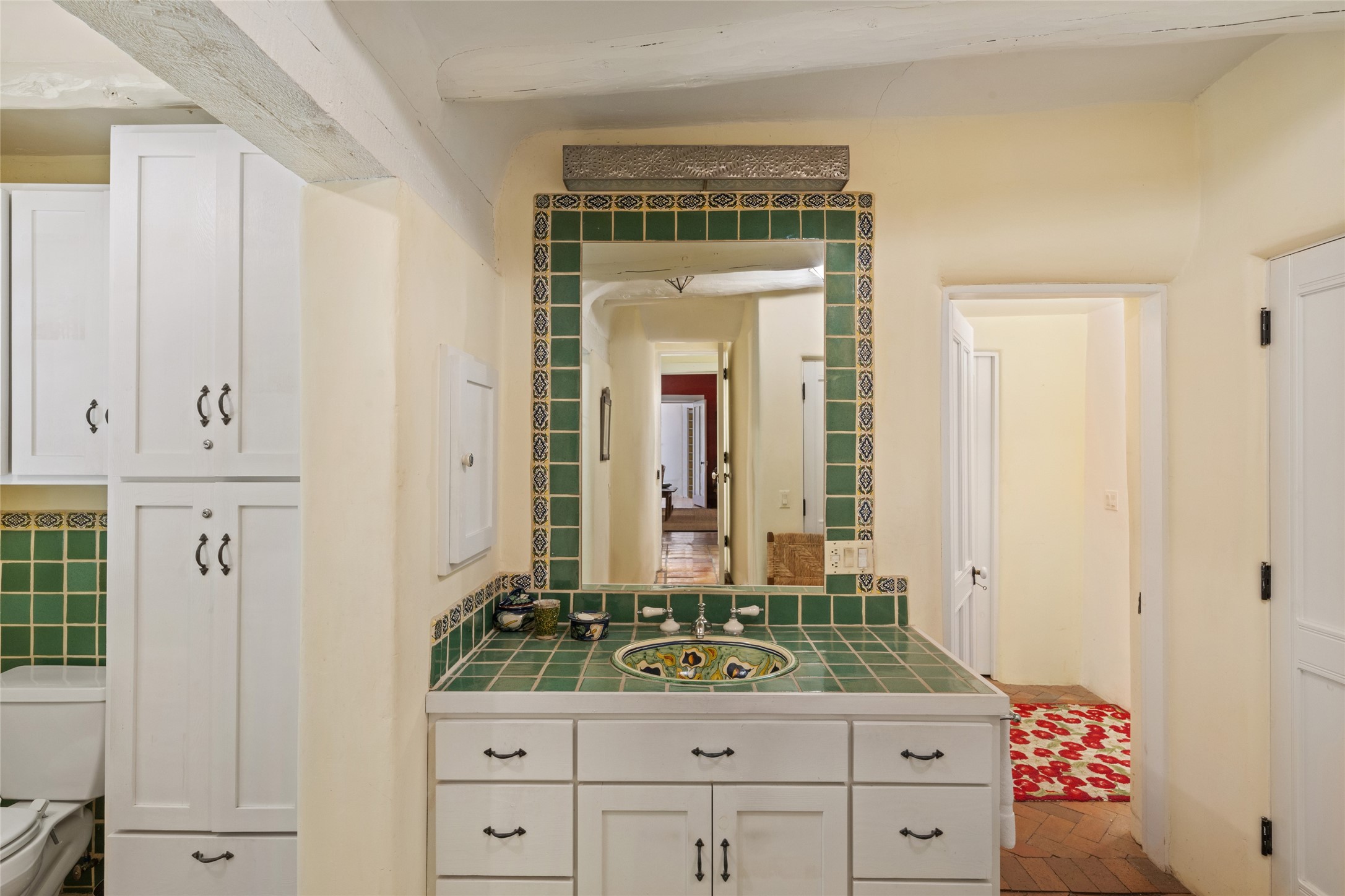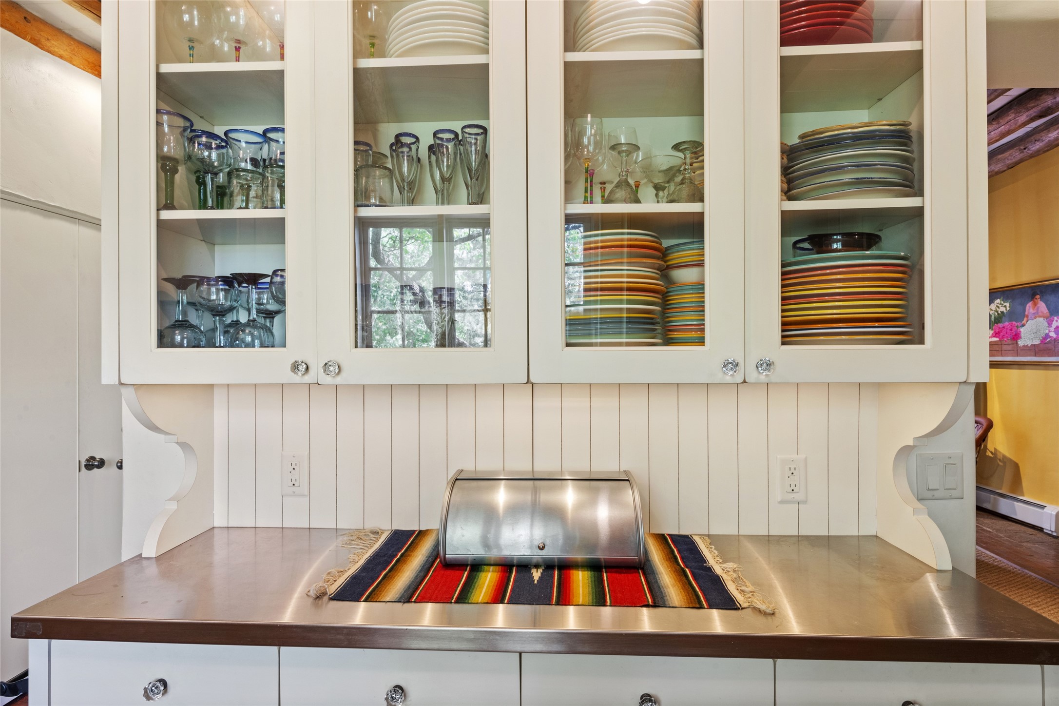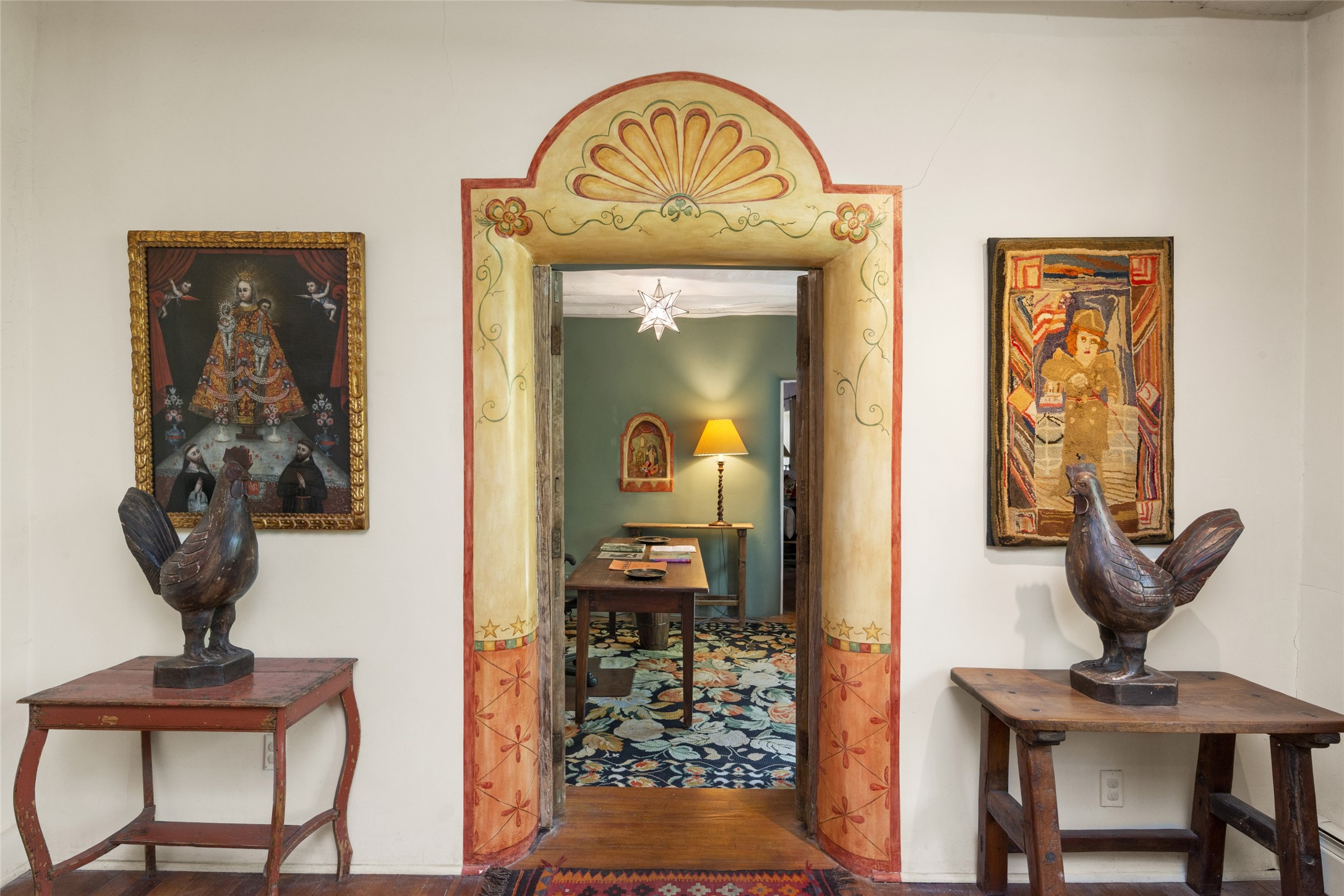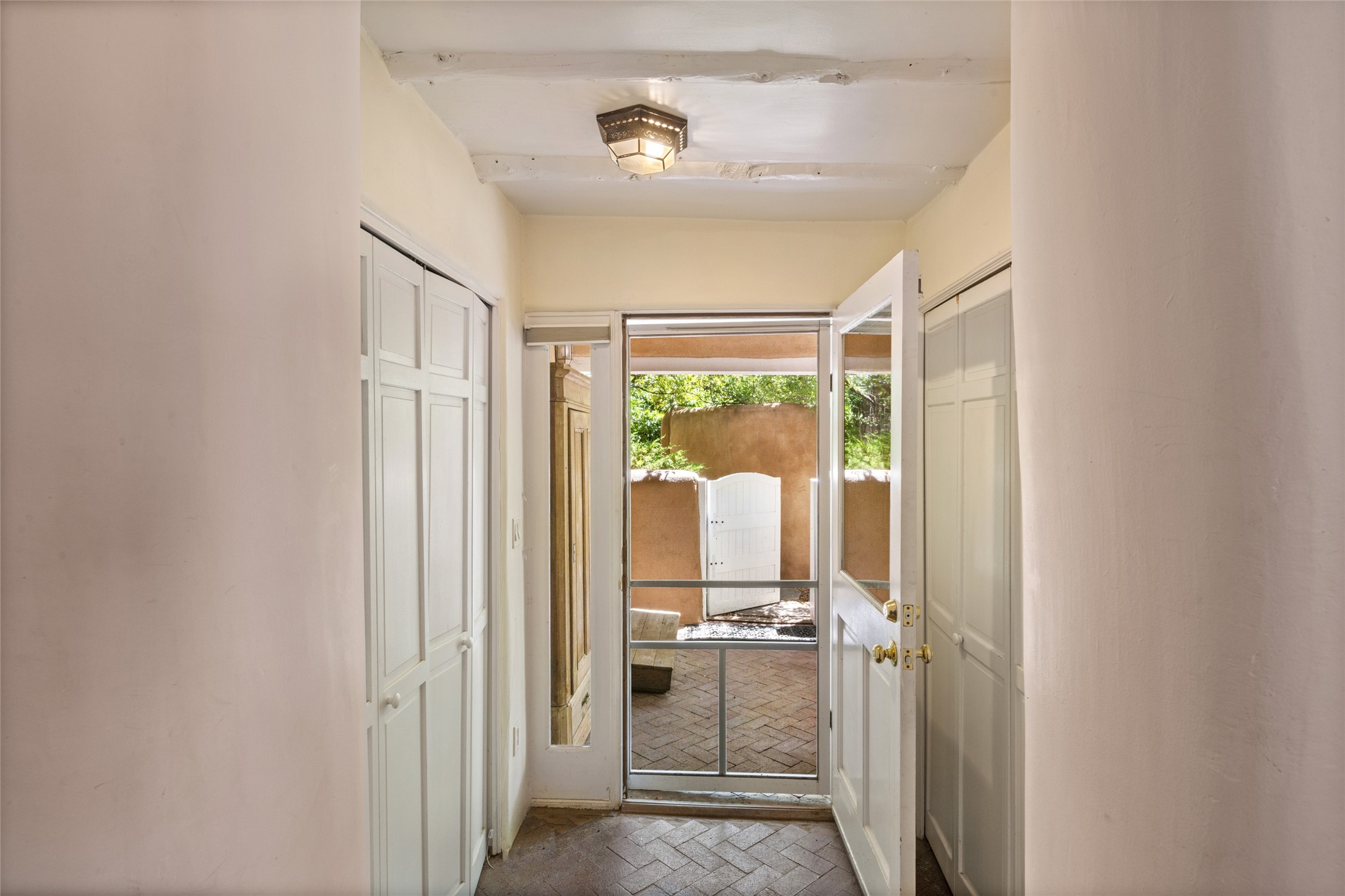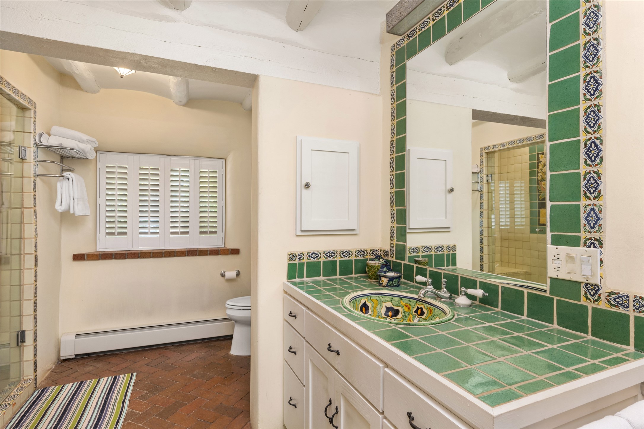 Set back from the famed Camino del Monte Sol lies this elegant Eastside jewel. Seeped in history, with parts dating back to the 1800's, this property was once the home of famed photographer Laura Gilpin. Four bedrooms, five bathrooms, beautiful outdoor spaces featuring a deep entry courtyard as well as a beautiful back portal and terraced gardens - with classic New Mexico architectural details; such as vigas, carved doors, coved ceiling and kiva fireplaces . . . this is the real thing!