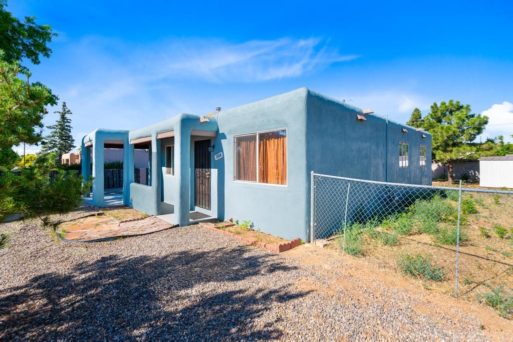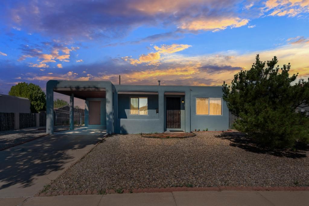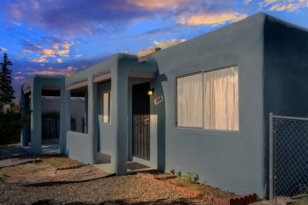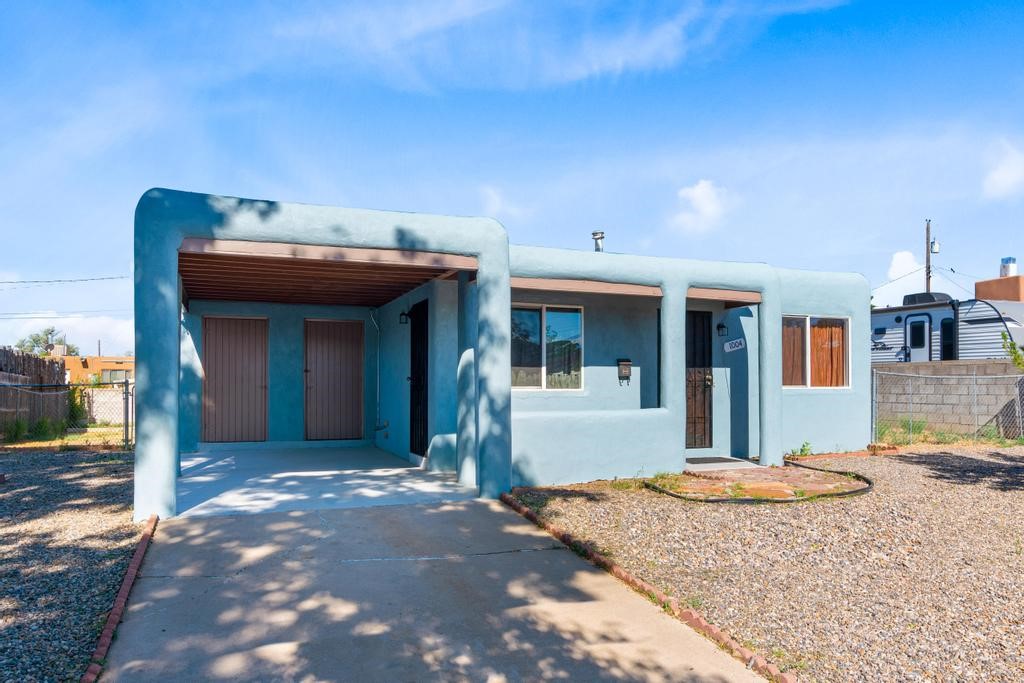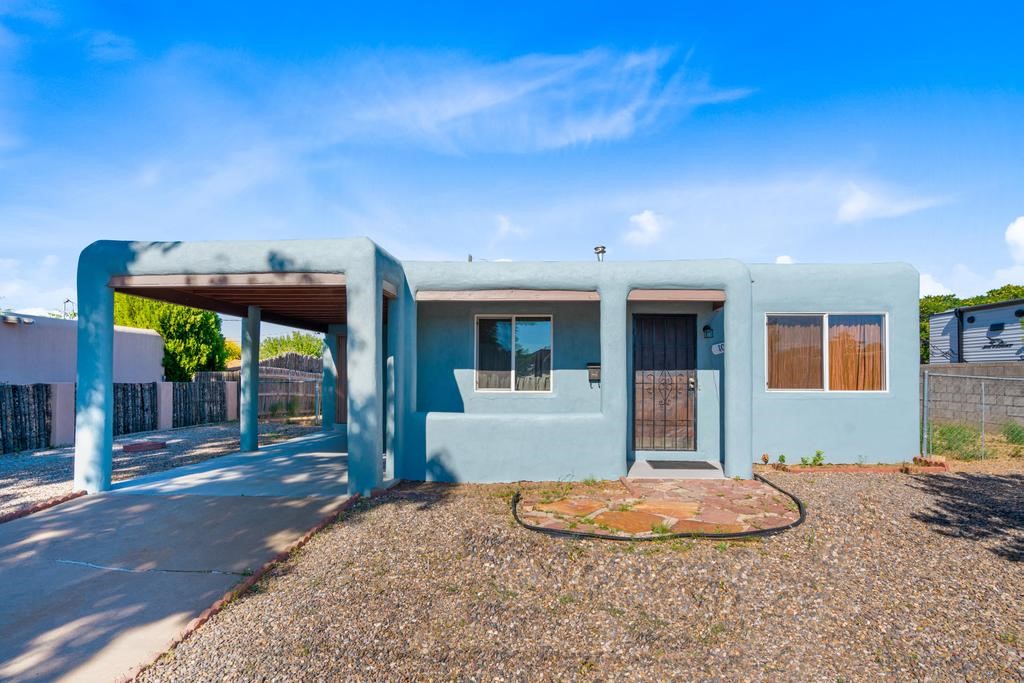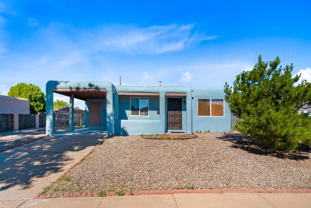 Here's a special and centrally-located home in the La Resolana and Bellamah area of Santa Fe! This three bedroom one bath charmer resides on a large .14 acre lot which provides plenty of room for expansion while retaining plenty of the front and back yard spaces. The inviting kitchen is open to the living room space, there is an evaporative cooling unit, tile and carpet flooring, the home has plenty of natural light and the one-car carport is a plus! You'll enjoy the convenience of this location and being in such a well established and known neighborhood in Santa Fe. You'll be and feel right at home! Come and see this cute and cozy gem of a home today!