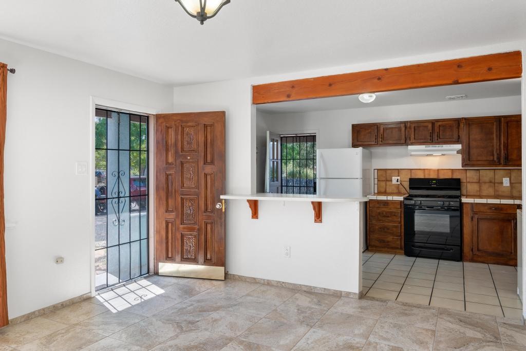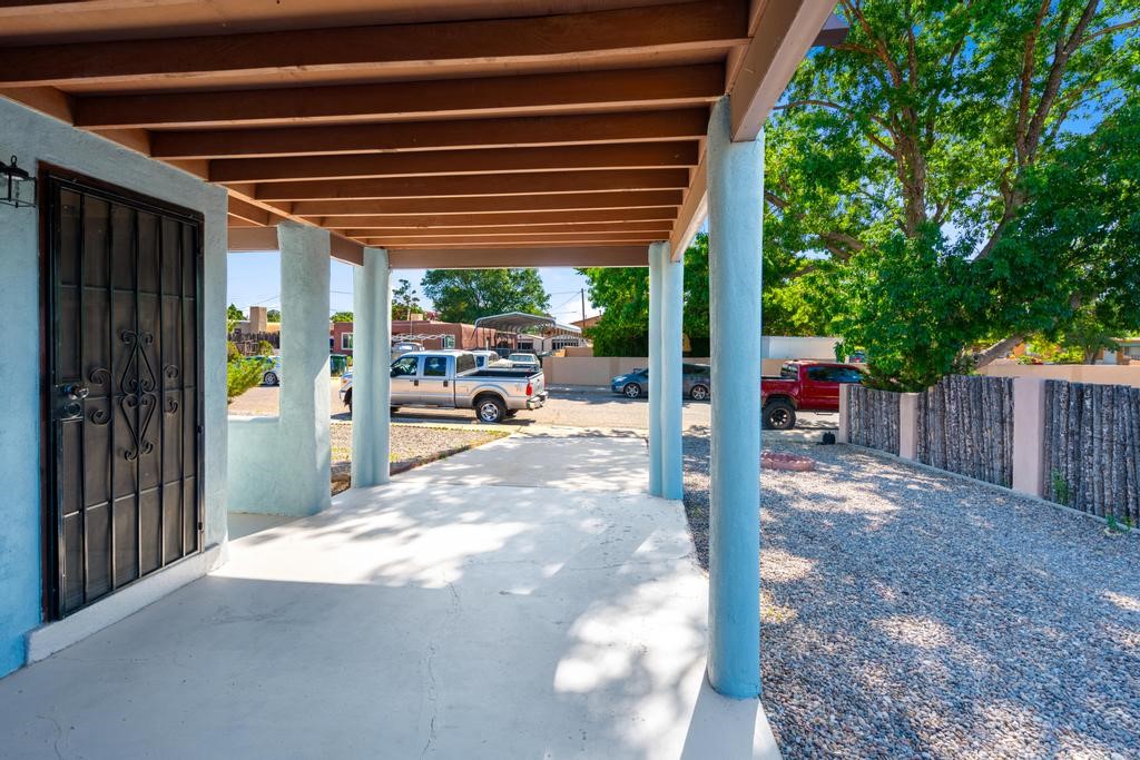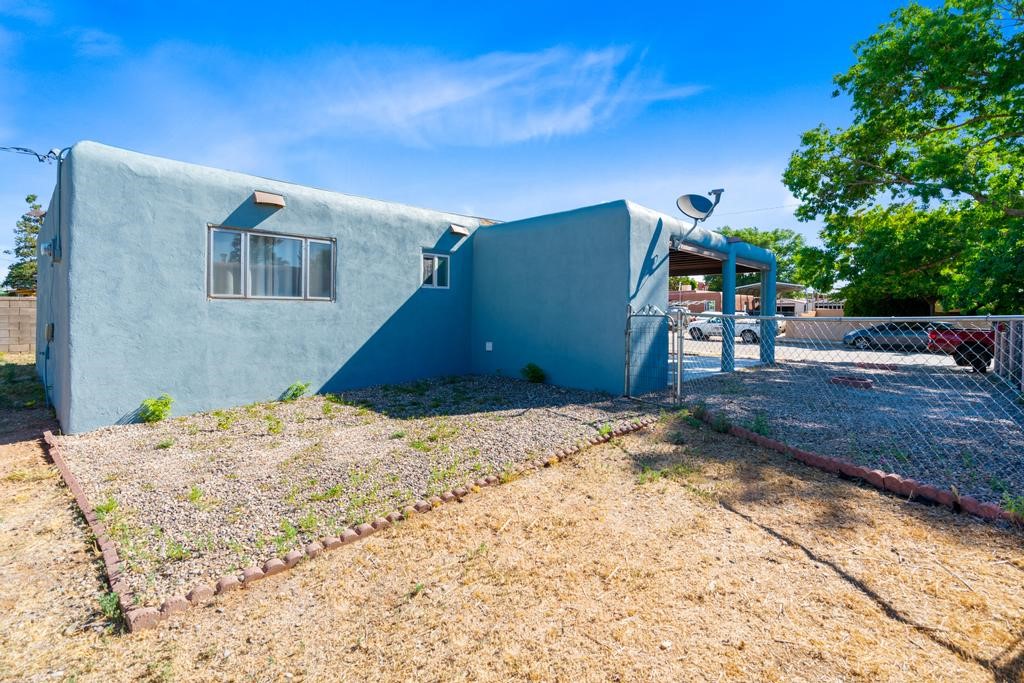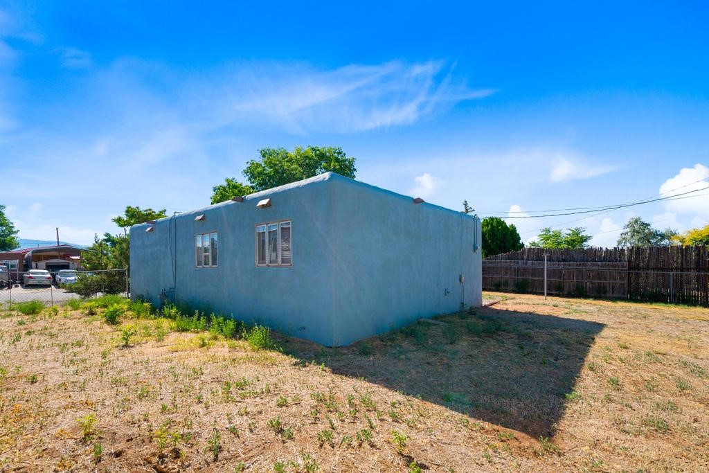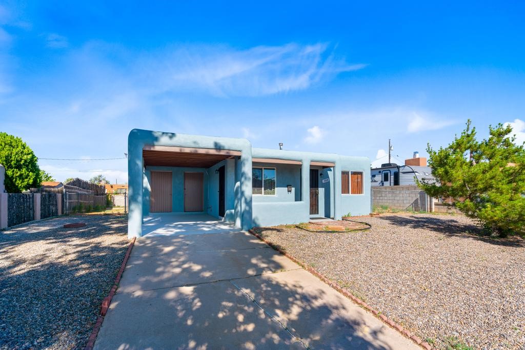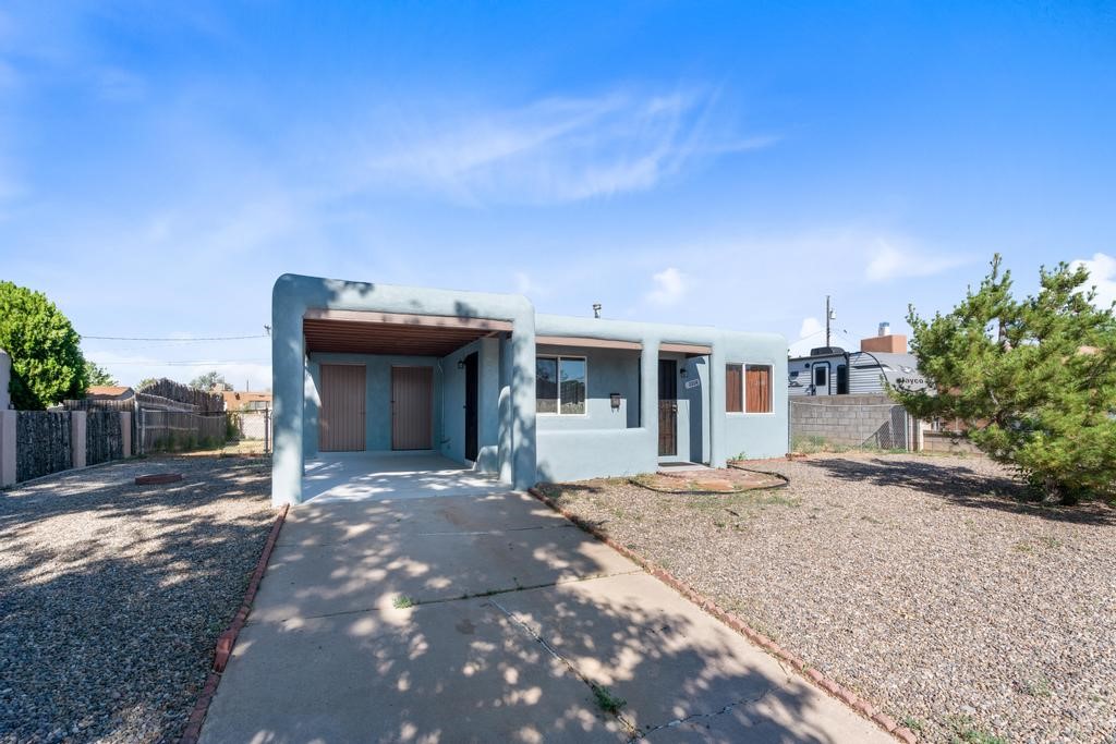 Here's a special and centrally-located home in the La Resolana and Bellamah area of Santa Fe! This three bedroom one bath charmer resides on a large .14 acre lot which provides plenty of room for expansion while retaining plenty of the front and back yard spaces. The inviting kitchen is open to the living room space, there is an evaporative cooling unit, tile and carpet flooring, the home has plenty of natural light and the one-car carport is a plus! You'll enjoy the convenience of this location and being in such a well established and known neighborhood in Santa Fe. You'll be and feel right at home! Come and see this cute and cozy gem of a home today!