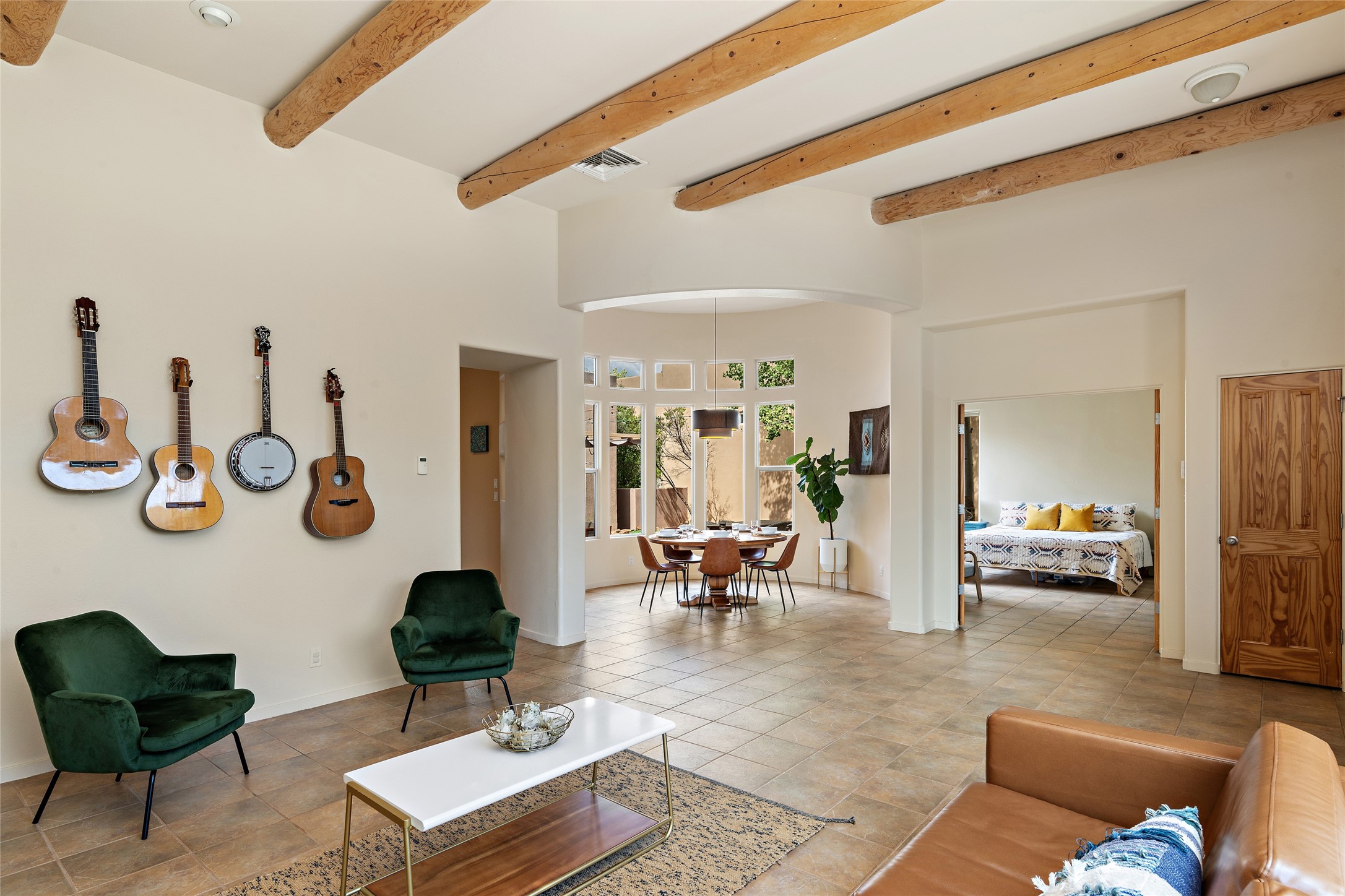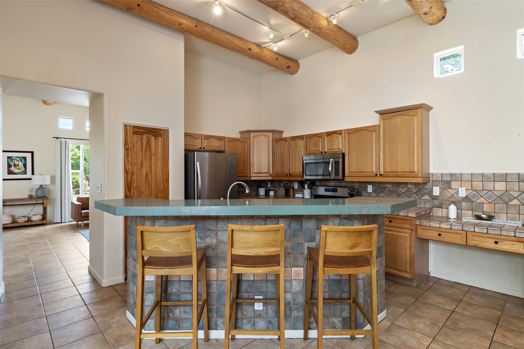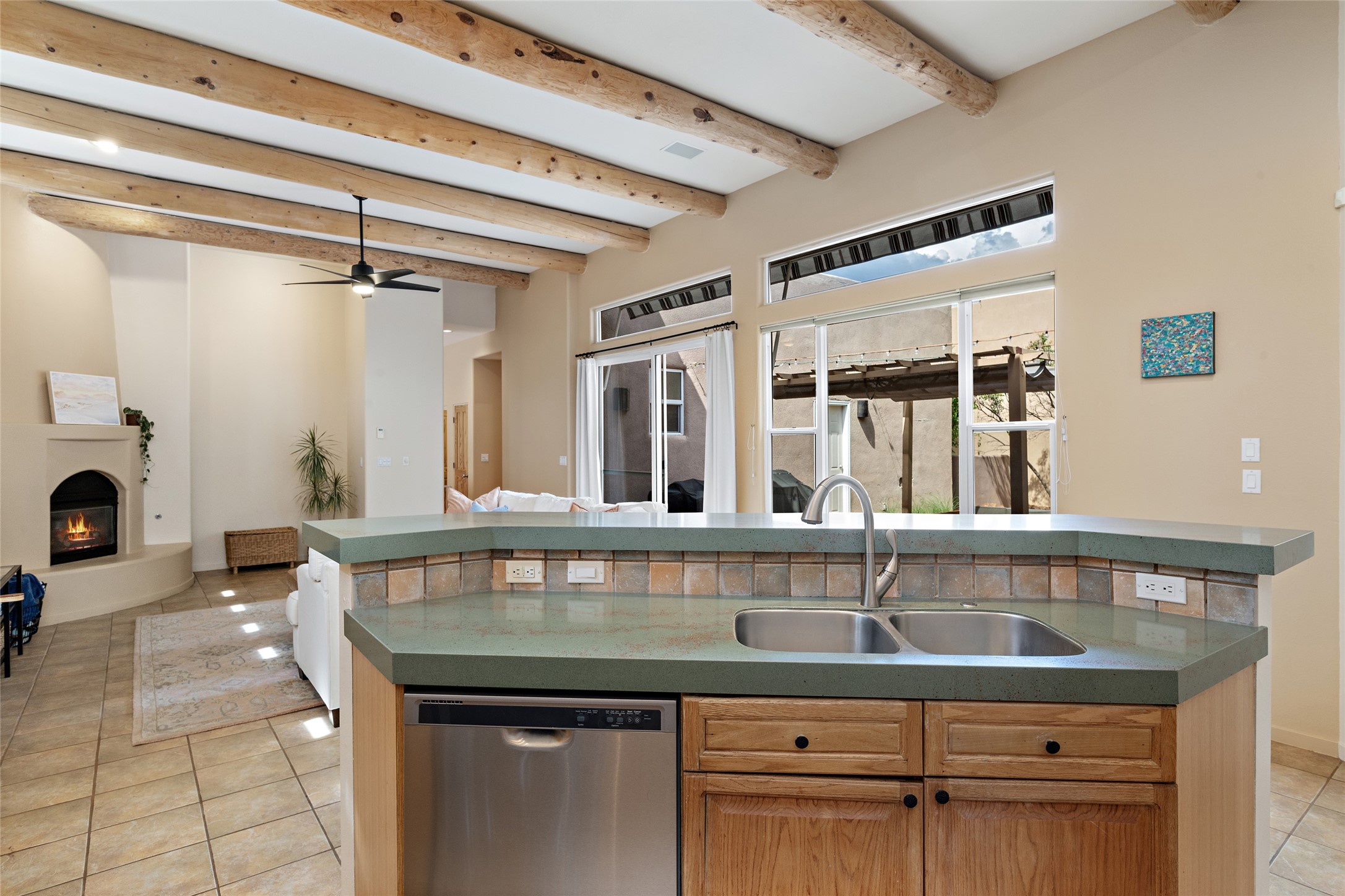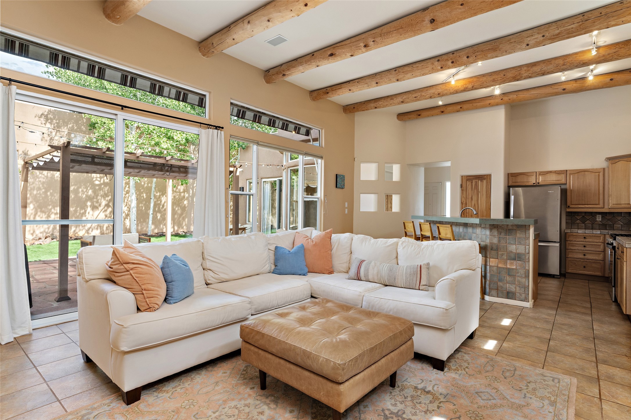 This lovely, well maintained Luminaria floor plan Rancho Viejo home offers 3 bedrooms, 2 bathrooms and approximately 2,260 sq. ft. of living space with a beautiful central patio and low maintenance landscaping. You'll be greeted upon entering the home by high ceilings with vigas and easy to clean tile floors throughout as well as solid wood doors and some nice upgrades to the kitchen appointments. The open concept kitchen and den make for a fantastic space to entertain or stay cozy in front of the gas fireplace on a winter evening while the ample master bedroom suite has fantastic separation from the guest bedrooms There is wonderful privacy from neighbors in the enclosed central yard which can be accessed from the den/kitchen, the master bedroom or the 2-car garage. Don't miss your opportunity to own this lovely home!