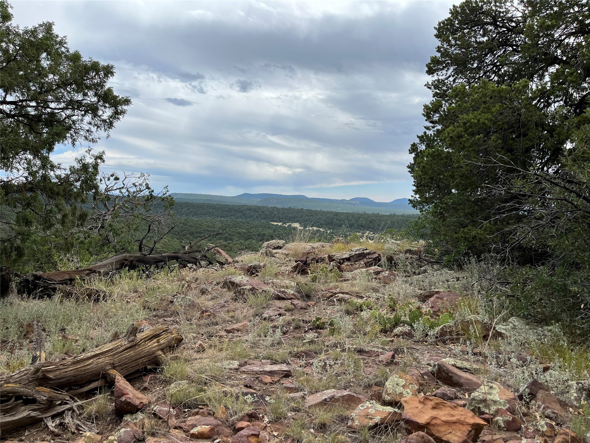La Tierra Del Alba (Land of the Sunrise). Come and become one with nature where wildlife, nature, and stunning night skies collide creating a private refuge on this stunning 40 acre mountain top property with mature tree cover and wonderful rock-outcroppings. This property has some stunning panoramic views of the mountains and vistas in a park-like setting. Approximately 18 miles to Santa Fe or a 25 minute drive! Borders National Forest! Seller will convey property with a $3,000 water well siting study showing two possible sites for wells in addition to a modest trailer and composting toilet to begin your next adventure.
