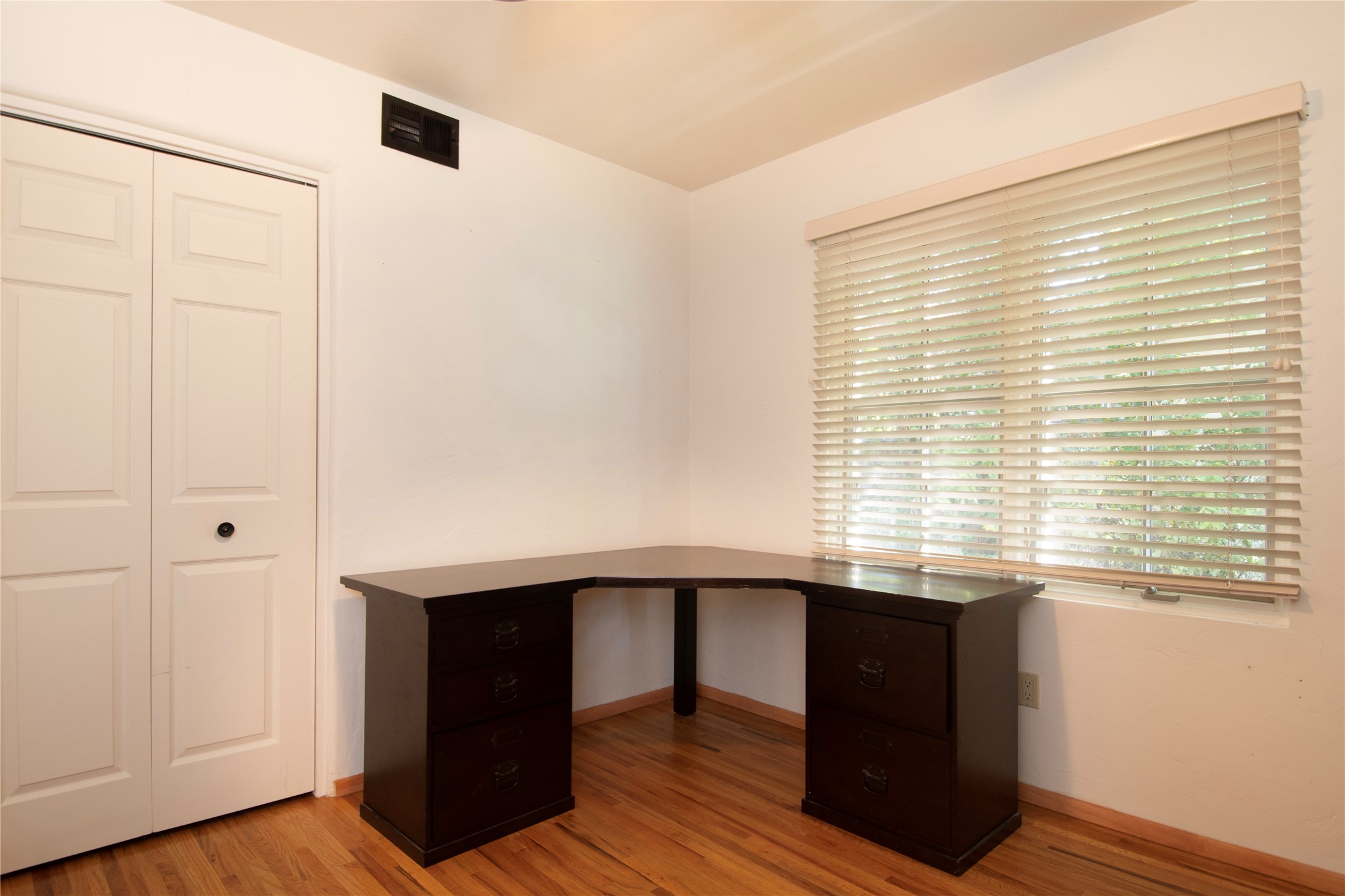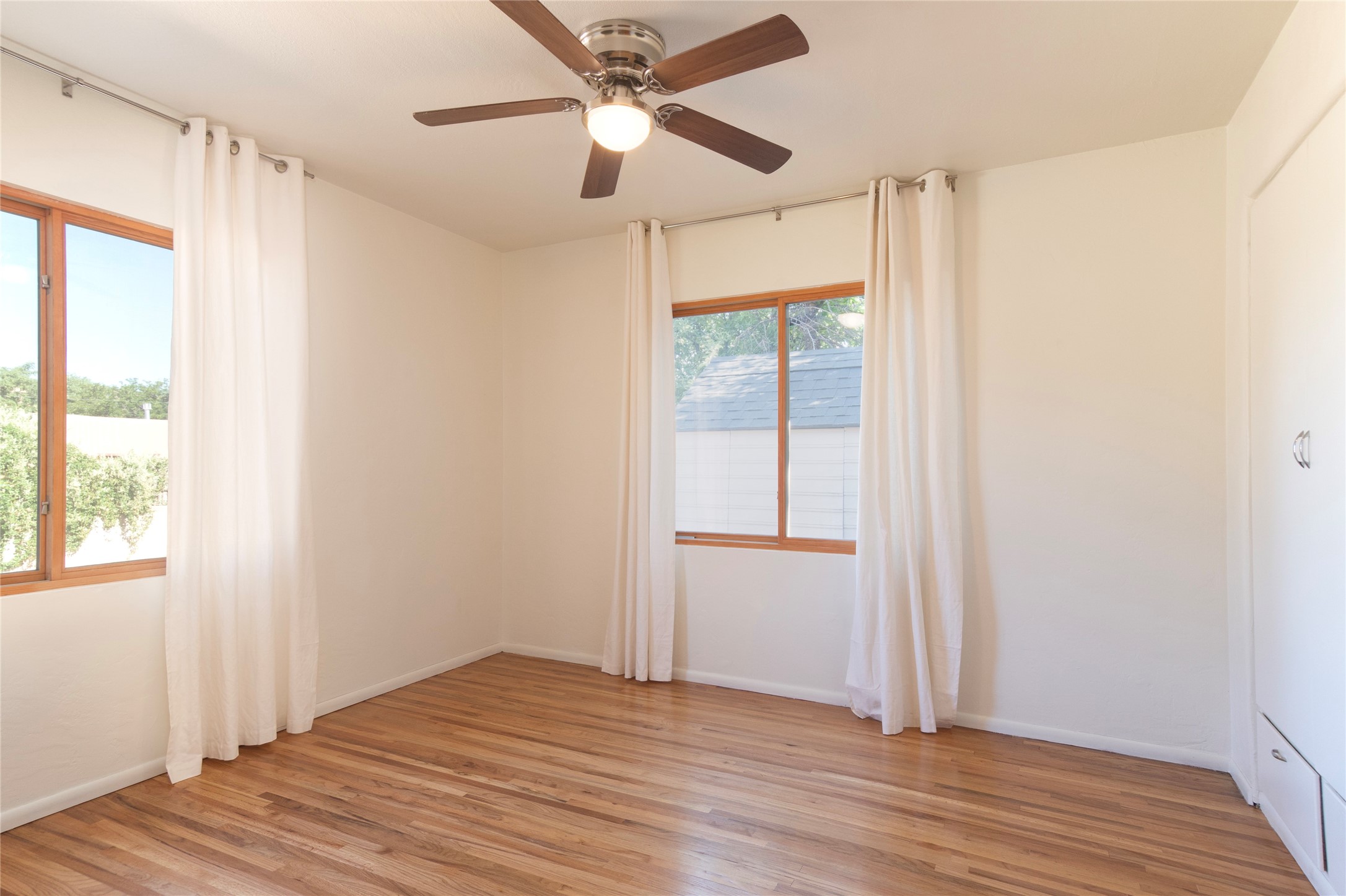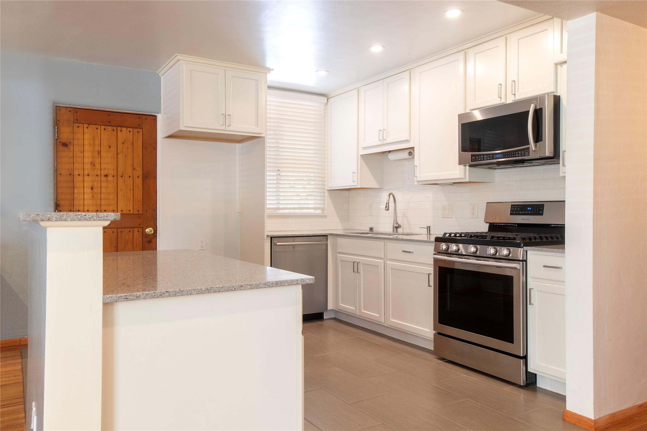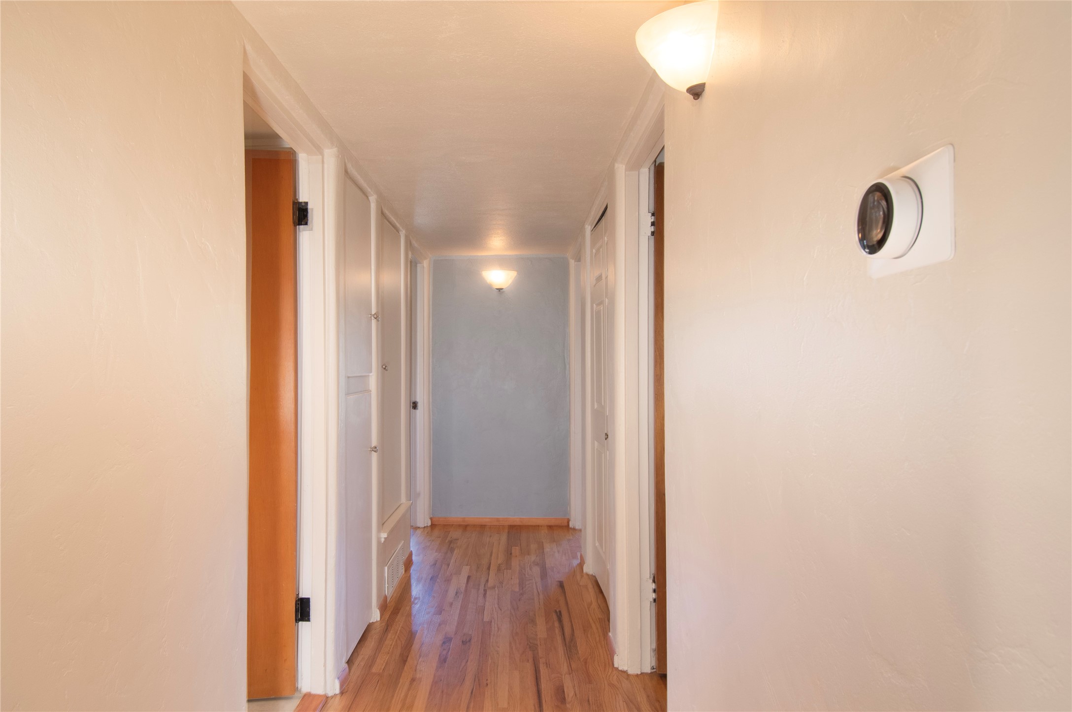 This sweet Allen Stamm home is located in desirable Casa Solana in the Northwest region of Santa Fe. Offering an ideal location for anyone looking for quick access to downtown, the area is an established neighborhood with a community pool, local businesses, and access to Frank Ortiz dog park. Beautiful wooden floors, an open floor plan, and a great room with an oversized kiva fireplace create a warm and inviting environment. The dining area, updated kitchen, and island offer plenty of cabinet space and top appliances. A good-sized covered portal and an open patio are just off the kitchen and are perfect for enjoying our Northern New Mexico seasons. The master suite has a 3/4 bath, walk-in closet, and access to the portal. Adjacent to the master suite are two bedrooms and a full bath. Simple, but charming, this home is just waiting for its new owners to make it their own.