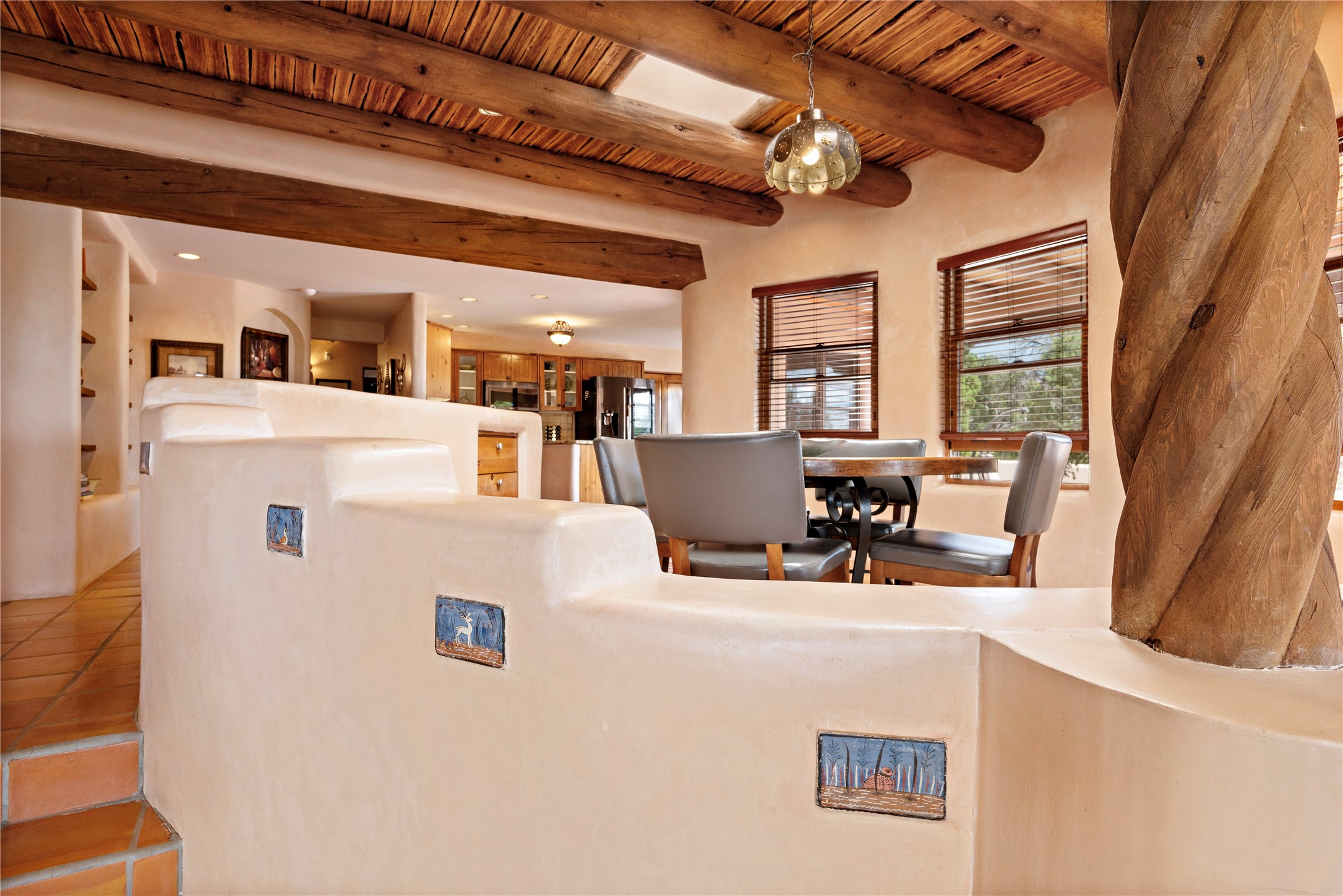 Assumable mortgage at 2.375%. Yes way. Short term Seller financing possible if you are in transition. Yes way. Wooded, private, 3 minutes east of Santa Fe. Way yes. The hum of traffic from a tenth mile away, and stairs to a lovely master suite limit the market to the fortunate percentage that are fit and realistic about living affordably near the State Capitol of New Mexico. This home is gorgeous, completed with southwest finishes like plaster walls, beamed ceilings, and a traditional kiva fireplace. Well thought out for optimizing views, open concept living area, and guest rooms on the ground floor. This is an amazing opportunity on all levels. Call today.