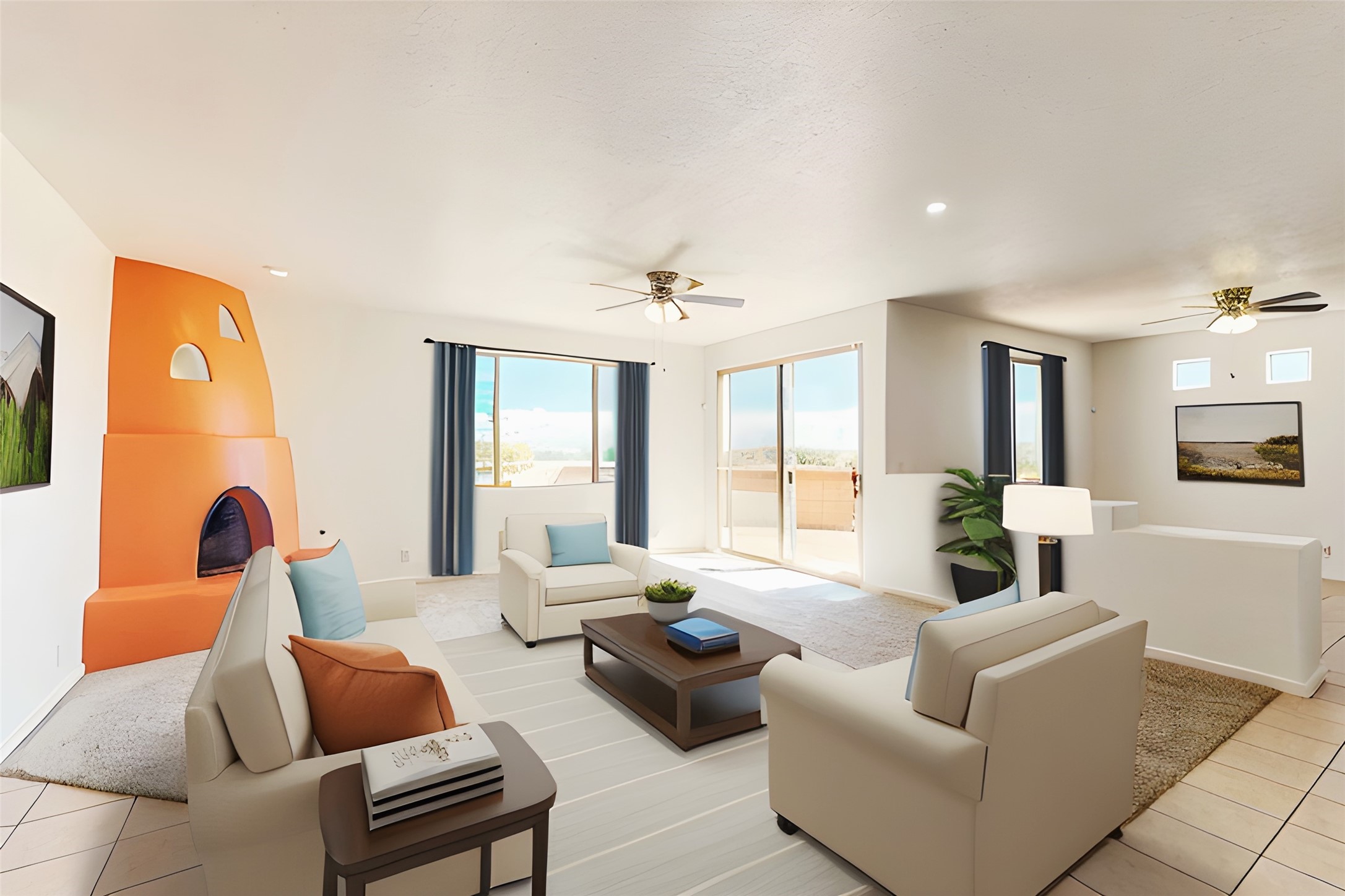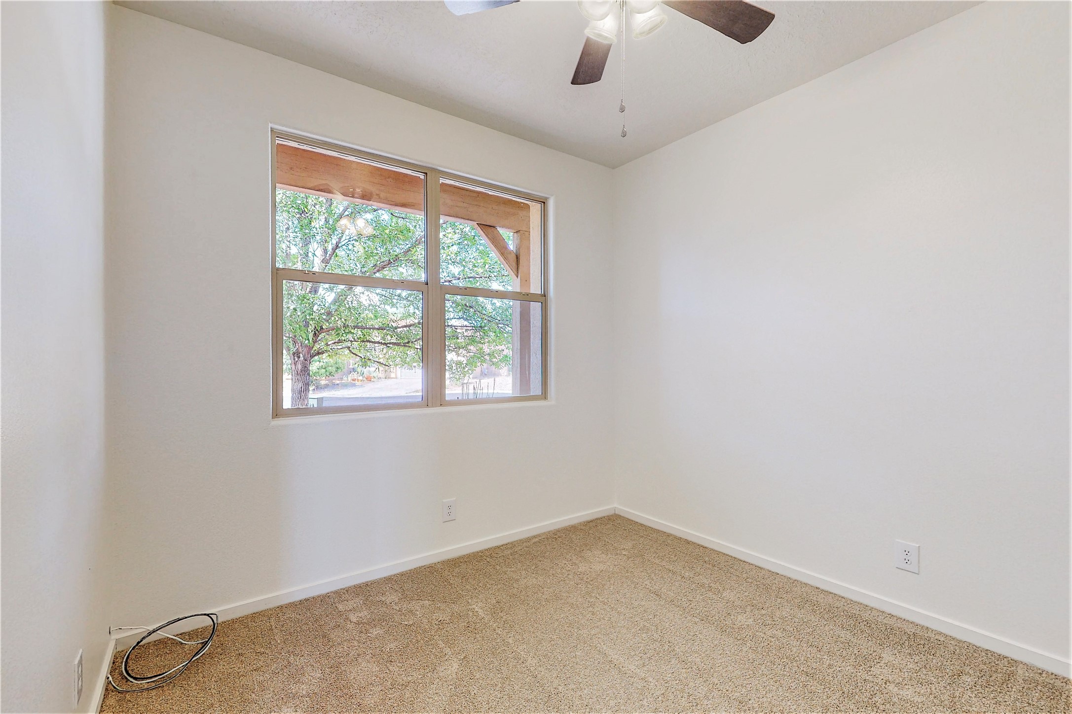Step into unparalleled value in the heart of Windmill Ridge. This fine home with Rancho Viejo charm, nestles on a premium view lot at the end of a quiet cul-de-sac. As you arrive the sweeping vistas of Jemez, Sangre de Cristo and Sandia Mountains will welcome you. Every corner of this adobe radiates with natural light, blending with its functional open design. This well maintained improved home features: 1825 square feet, 3 bedrooms, 2 full baths, great room with a kiva fireplace, adjoining open kitchen with eating bar, pantry and breakfast nook, den/dining room, 2 car garage, radiant heated floors, dual evaporative cooling, instant hot water, established front and back landscaping, flagstone patio and much more. MORE IMPROVEMENTS: New TPO Roof Warranty to 2033, new custom painted interior including front and garage doors, new custom carpeting, new surfaced sidewalk and driveway. Beyond this home's privacy and tranquility, life thrives beginning with out your door to paved trails. Moments away are the education hubs of the Santa Fe Community College and the Institute of American Indian Arts. Rancho Viejo is more than a neighborhood; it's an experience. Paved roads, enchanting parks, underground utilities and an ambience free of street lights make for starlit nights. Your forever vistas and nearly 15 miles of walking trails ensure nature is your companion. This is your opportunity to experience the soul of Santa Fe living in a community with something for everyone with easy access to museums, galleries, shopping, restaurants and more. This home is a great beginning for your next Santa Fe chapter whether your first or forever home. Call to learn more and see. BONUS: 10 years roof warranty and one year Home Warranty from Home Warranty of America at no cost to Buyer. Call for your showing appointment today.