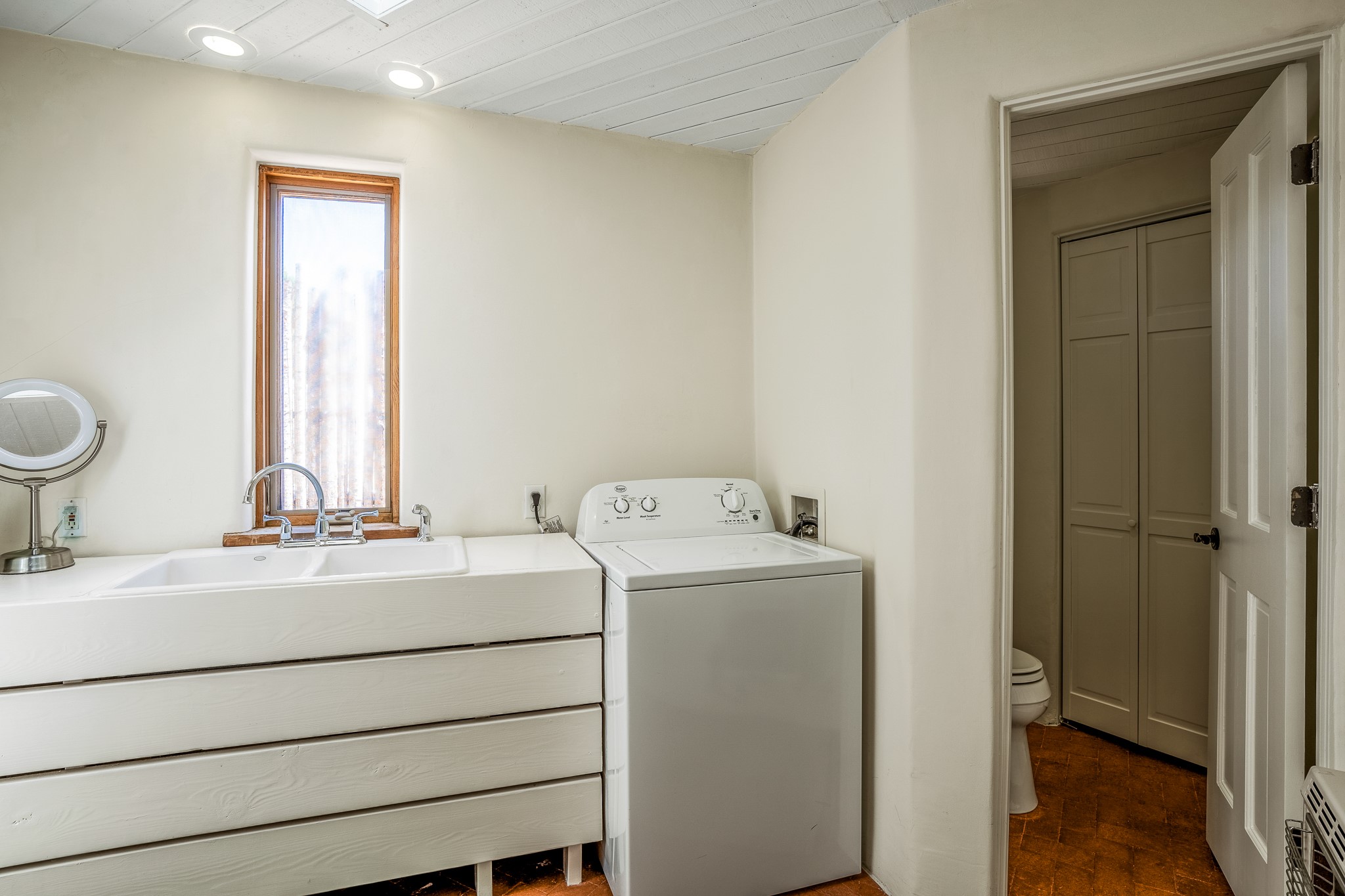 Gracious off-grid living in Lamy only 1 mile East of the Legal Tender and the heart of the Lamy village. This elegant 2bed/1 bath home with a separate studio is beautifully sited on 5 acres with broad views down Lamy's valley. Built in 2004by Karen Terry, a highly respected eco-friendly builder, this property is completely self-sufficient: a shared well (thewell is on the property of the owners of 73 Los Hornos), solar-powered with a 2+ year old battery bank, E-creteconstruction, 3 hand-poured trombe walls for warmth in the winter, 3 cisterns for water catchment, and a Morso wood stove in the beautiful main living area. The main house has an open concept living/dining/kitchen with high ceilings andskylights in every room. Brick flooring throughout the house. Established native pollinator plant beds. There are 3wonderful outdoor areas and 5 raised vegetable garden beds. The art studio is separate and has also been used as a guest casita/office. This special property is 25 minutes to Santa Fe's Plaza and yet another world and time period away.