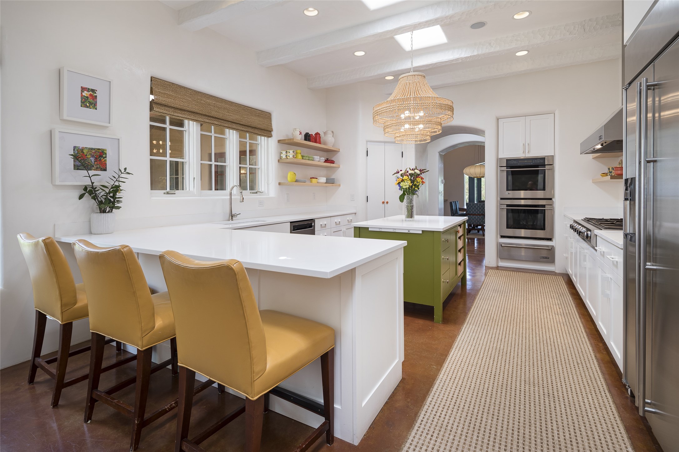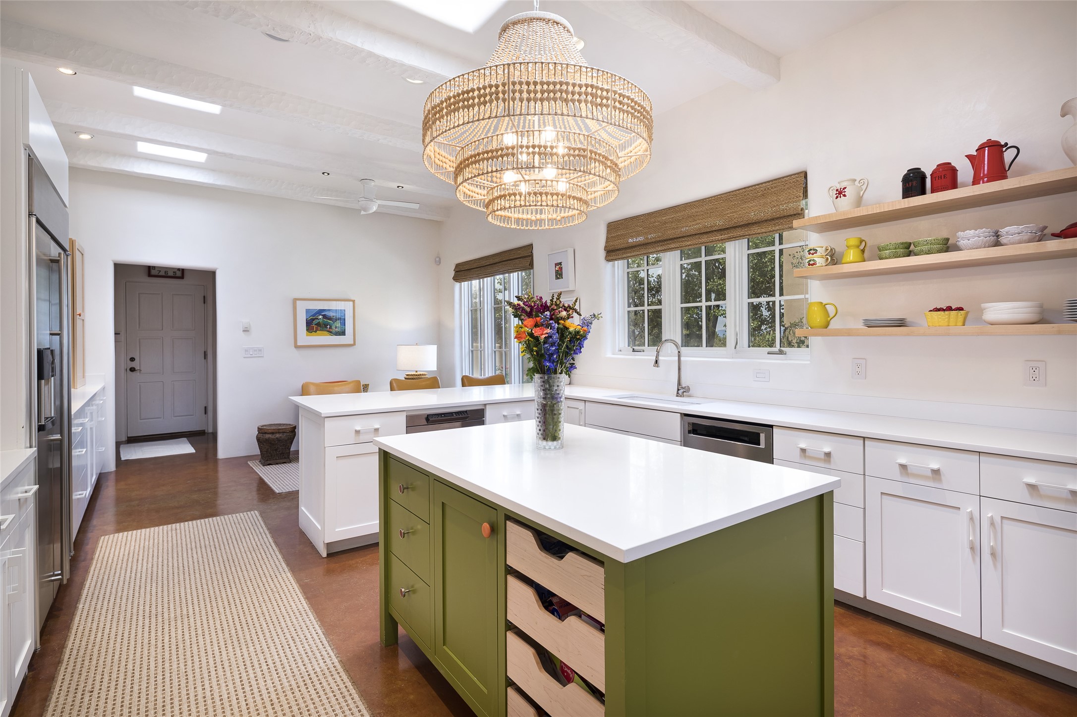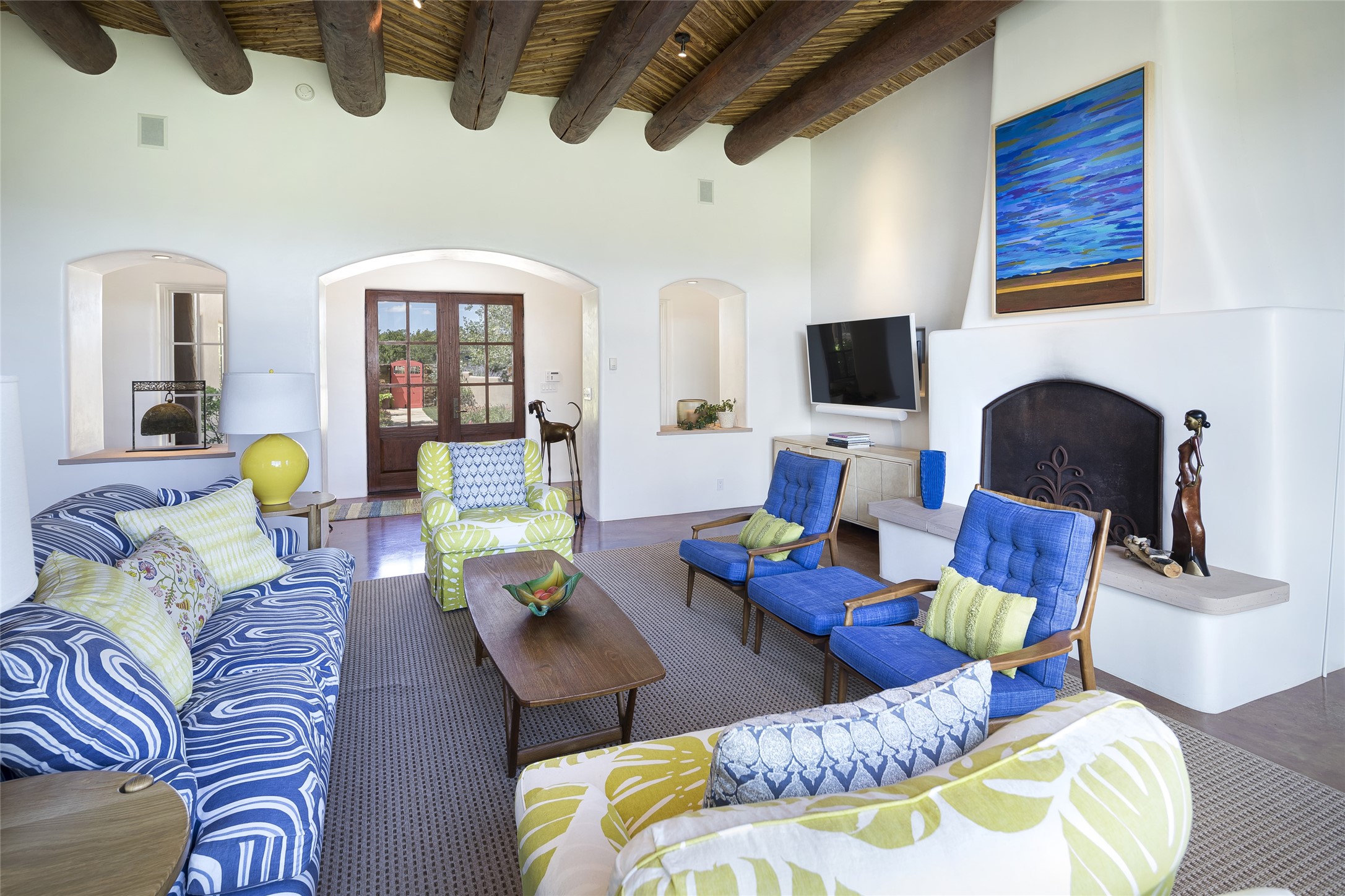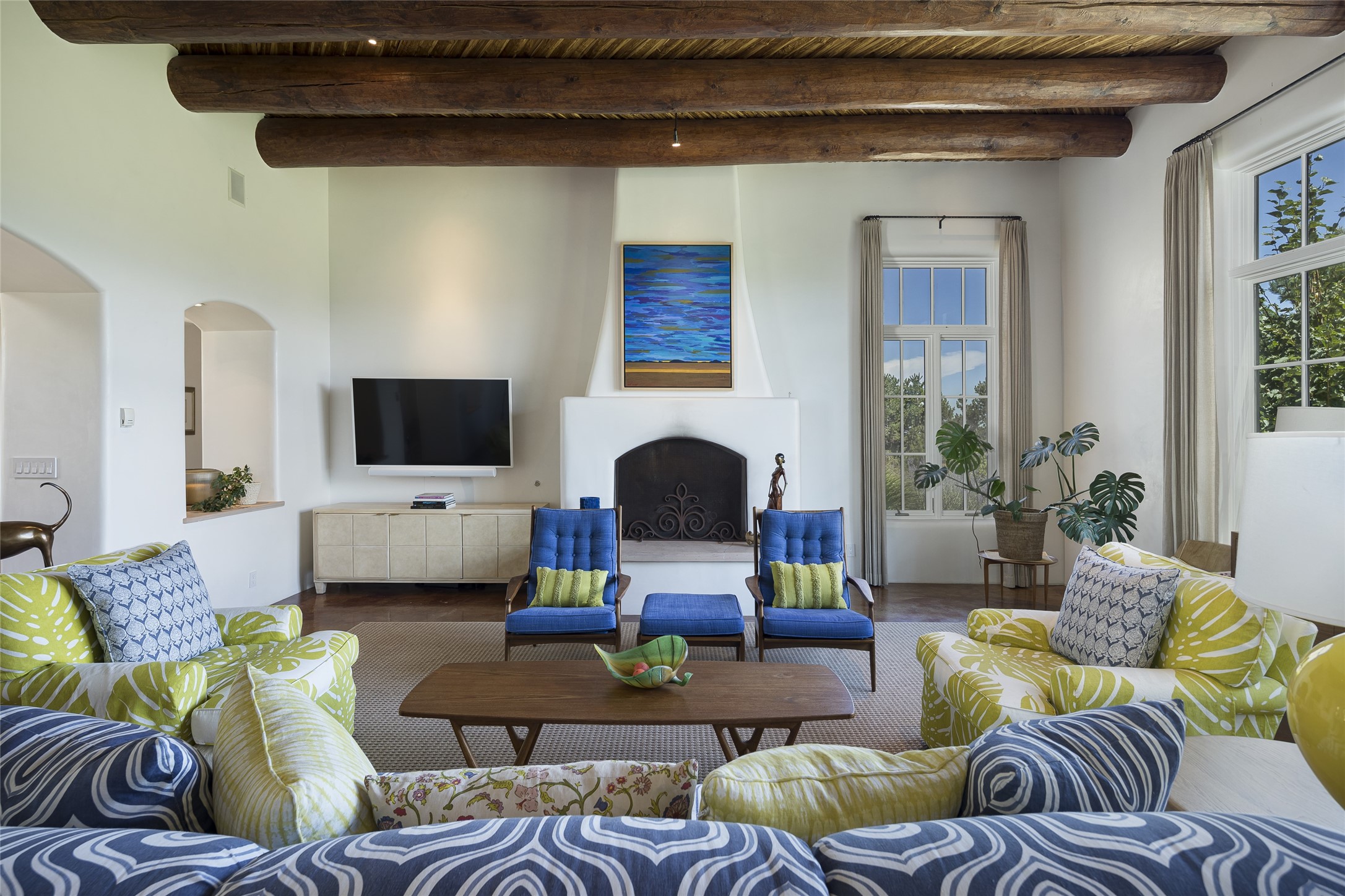 EXPERIENCE THE BEST-OF-THE-BEST IN THIS EXCITING SANTA FE PROPERTY WITH SWEEPING MOUNTAIN VIEWS LOCATED ON A RARE ELEVATED 5+ ACRE PARCEL ON COVETED TANO ROAD. Casa de la Luz is an open, airy, happy, single level home with natural light and lush gardens that enhance the home at every turn. Private gated entry and winding driveway are just the beginning. This exquisite residence has been renovated practically stem-to-stern with first class materials that feel livable, luxurious and relaxing. Dazzling white hand plastered walls, soaring ceilings and banks of windows take your eyes to the WOW views of mountain and sky! Elegant gates lead to the front courtyard with a water feature and impressive double doors that peak through the home to the Sangre de Cristo Mountains. The cook's kitchen is welcoming with plenty of counter space, high-end appliances and a den-like informal dining area. Entertain with style and grace at this stunning property which offers 3 bedrooms, each with an ensuite bathroom, and a separate office. The primary suite features a fireplace, a spa-like bathroom, a soaking tub, separate walk-in shower, and three oversized closets. The living room has soaring ceilings, a fireplace, and large windows that showcase the panoramic views. The sunroom is a perfect place to relax and enjoy the scenery, while the sitting room offers a cozy spot to read or watch TV. The property also includes a 3-car garage with epoxy floors and slat hanging units, a sleek laundry room, and a designer powder room with colors that subtly carry throughout the house. Fall in love with the outdoor living spaces filled with lush landscaping, water features, and mature trees, a covered patio with Lynx grill, and gated vegetable gardens where you can enjoy the peace and tranquility of nature, while being only minutes away from historic downtown Santa Fe. This is a rare opportunity to own a magnificent home in one of the most sought-after locations in Santa Fe. Live...Love...87506!