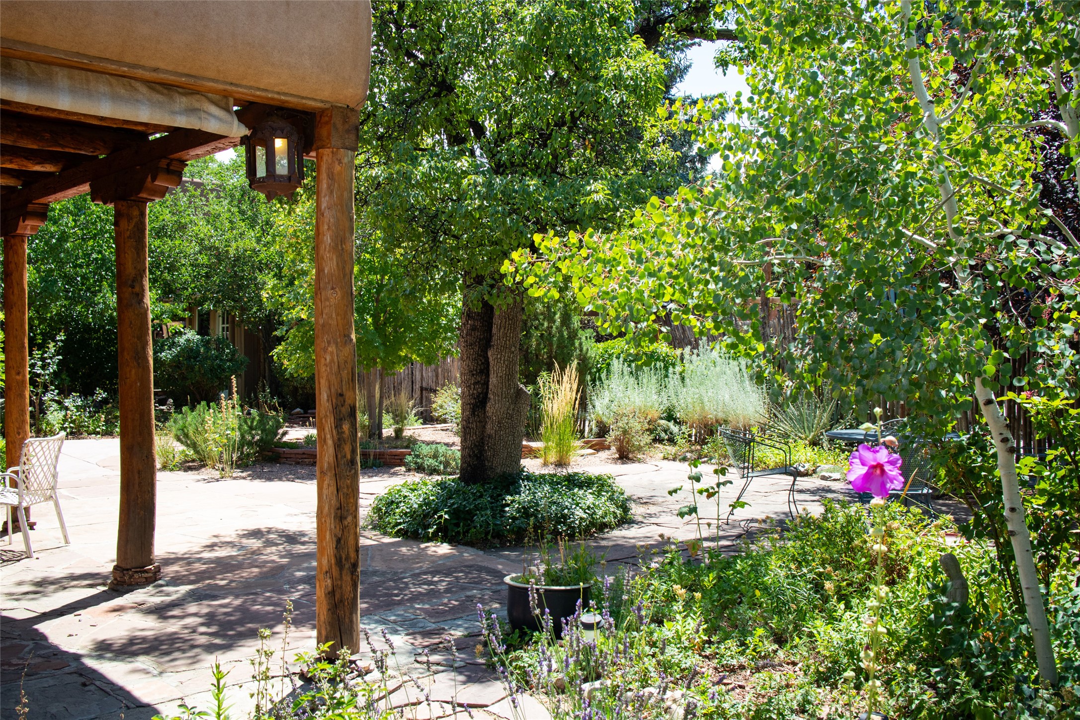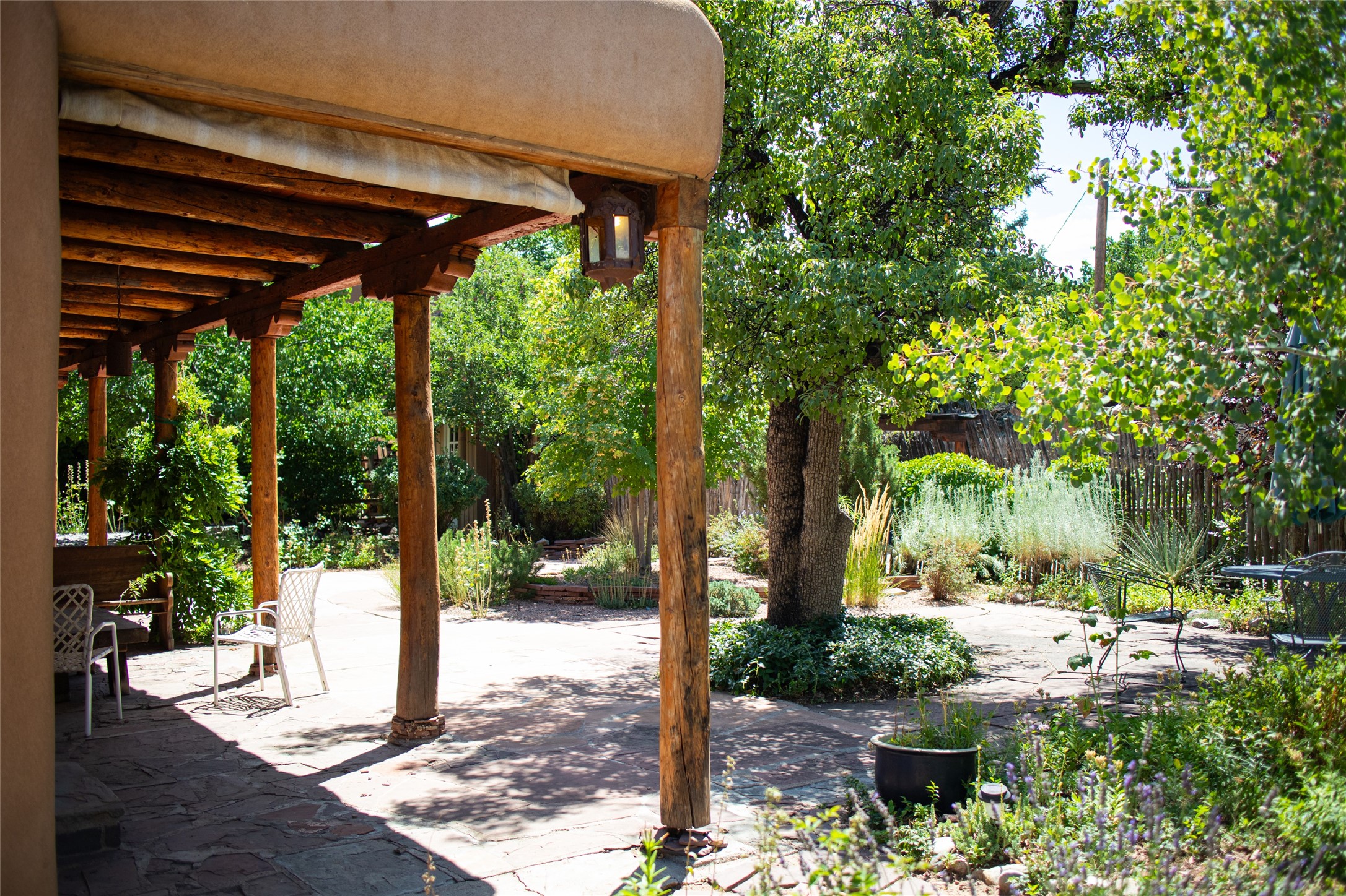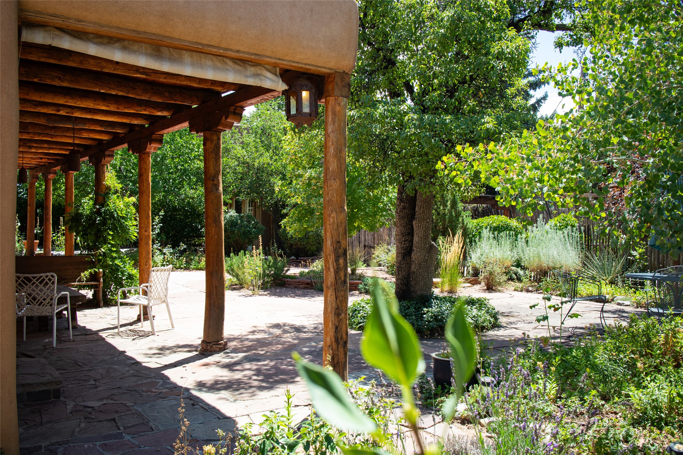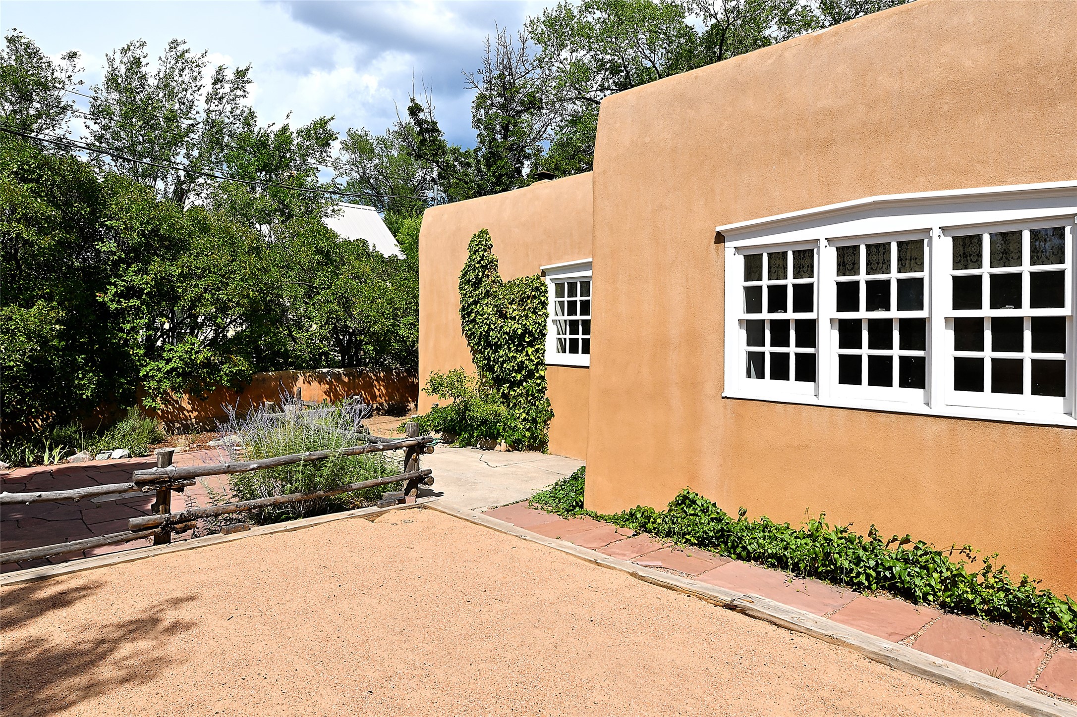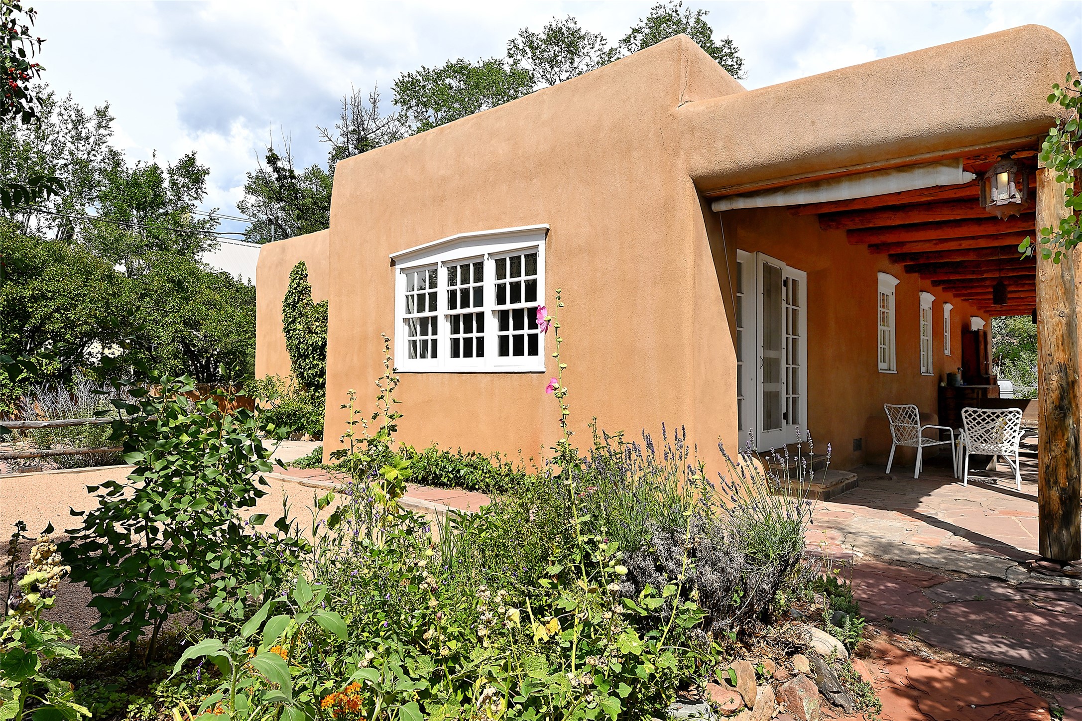 Enjoy the best of Santa Fe from this lovely Eastside charmer. Located on coveted Garcia Street, steps from Historic Canyon Road and the famed Downtown Subscription, a better location would be hard to find. This 3 bedroom 3 bathroom Contributing home and ancillary building sit on almost a quarter of an acre. Incredible outdoor spaces include a deep portal, patios, mature landscaping and fruit trees. Don't miss an opportunity to live in and relish all that Santa Fe has to offer from the heart of the Eastside.