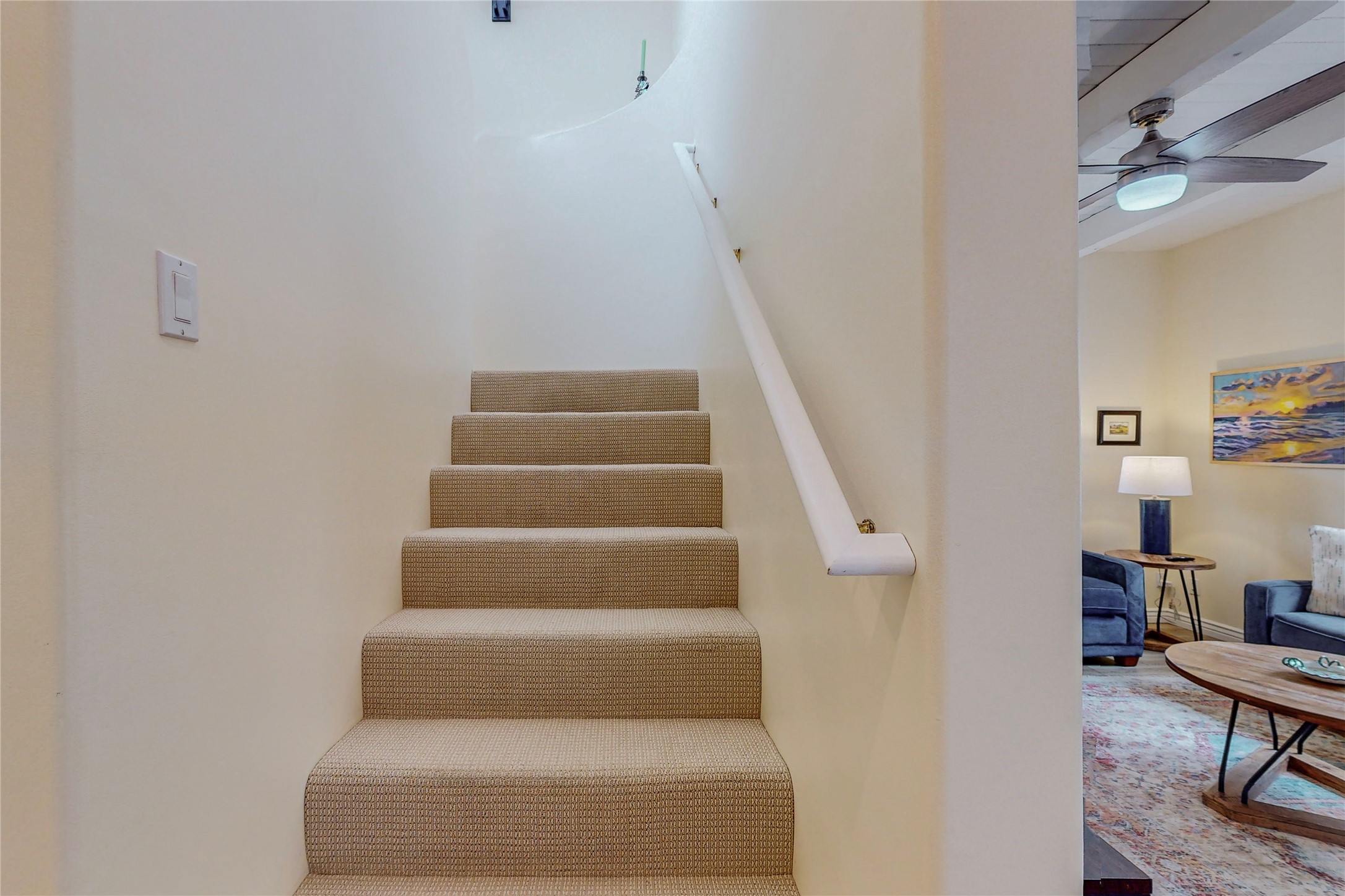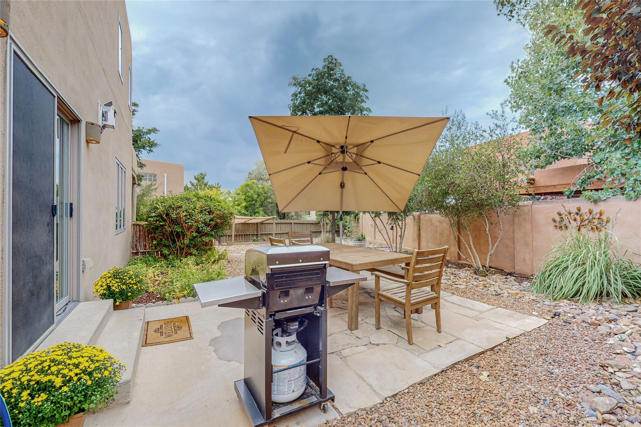 This 3 bed, 3 bath home is located on a quiet cul-de-sac in the desirable Pueblos Del Sol neighborhood. Recent updates include new flooring, new kitchen cabinets, new countertops and all new appliances. All the baths in the home have been updated. This owner has recently had new ductless (mini-split) HVAC units that both cool and heat added. Enjoy views of the Sangre de Cristo Mountains from the primary bedroom and western views from the upstairs guest bedroom. One fireplace that serves dining and living areas. Primary shower is a walk-in. There is one guest bedroom and full bath on the ground level.