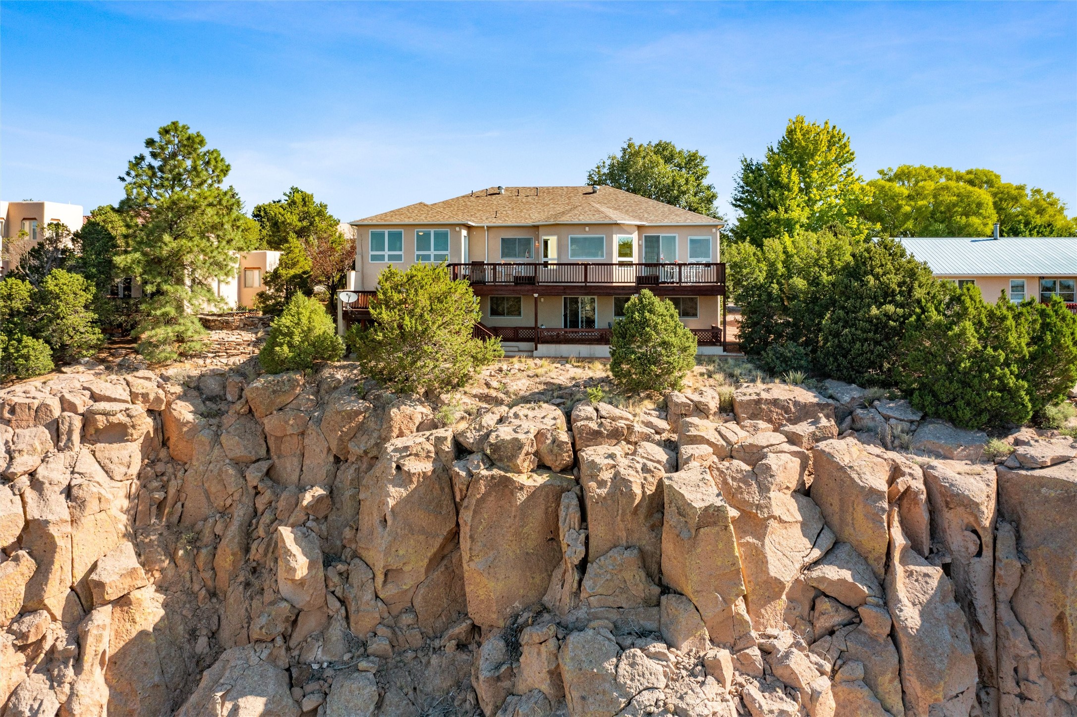 Welcome to 1765 Los Pueblos, a spectacular oasis nestled on the edge of the canyon. This exquisiteresidence boasts a generous 3,729 square feet of luxurious living space, featuring 3 bedrooms and 4bathrooms, with the added convenience of a bonus room perfectly suited for an office or an optional4th bedroom. Upon arrival, you will be captivated by the breathtaking canyon views that surround thisremarkable property, offering a serene and awe-inspiring backdrop for everyday living. Step inside anddiscover a harmonious blend of elegance and comfort. The open living area is designed to create aseamless flow between spaces, ideal for both entertaining and relaxation. Sunlight dances through largewindows, illuminating the interior with natural radiance. A highlight of this residence is the spaciousgame room, complete with a built-in bar, setting the stage for memorable gatherings and endlessenjoyment. Whether you are hosting game nights, social events, or simply indulging in a quiet moment ofrelaxation, this space is sure to be a favorite. Outside, the beauty of the property is further enhanced bythe meticulously manicured landscaping. If this isn't enough space, check out the 250 sq ft storage areawith a concrete pad and 7' high ceiling located in crawlspace. With its versatile floor plan, stunningcanyon views, and thoughtful features, this home presents an unparalleled opportunity to embrace alifestyle of luxury and comfort. Do not miss your chance to own this exquisite residence and make it yourforever home. Schedule your private showing today and experience the allure of 1765 Los Pueblosfirsthand.
