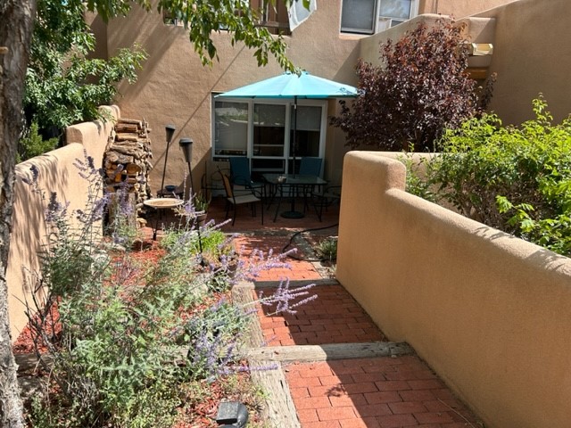 Under 400,000 in Santa Fe! Townhome with great outdoor living space that offers beautiful backyard privacy and second level deck to enjoy relaxation and enjoy night skies. Easy care brick flooring in main living area, wood burning fireplace. Great open floor plan. Appliances included so move right in. This property has a successful long term rental history too.