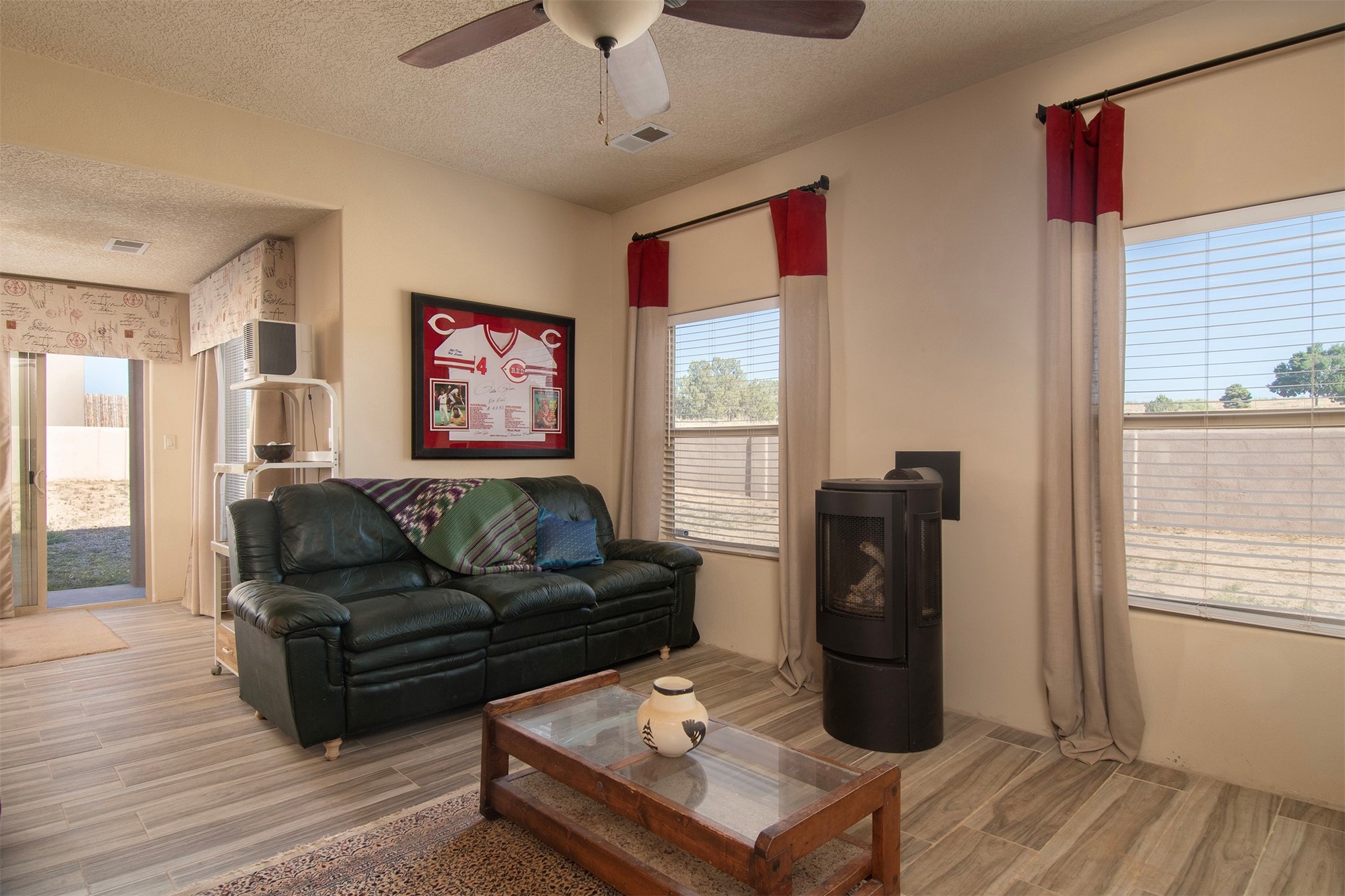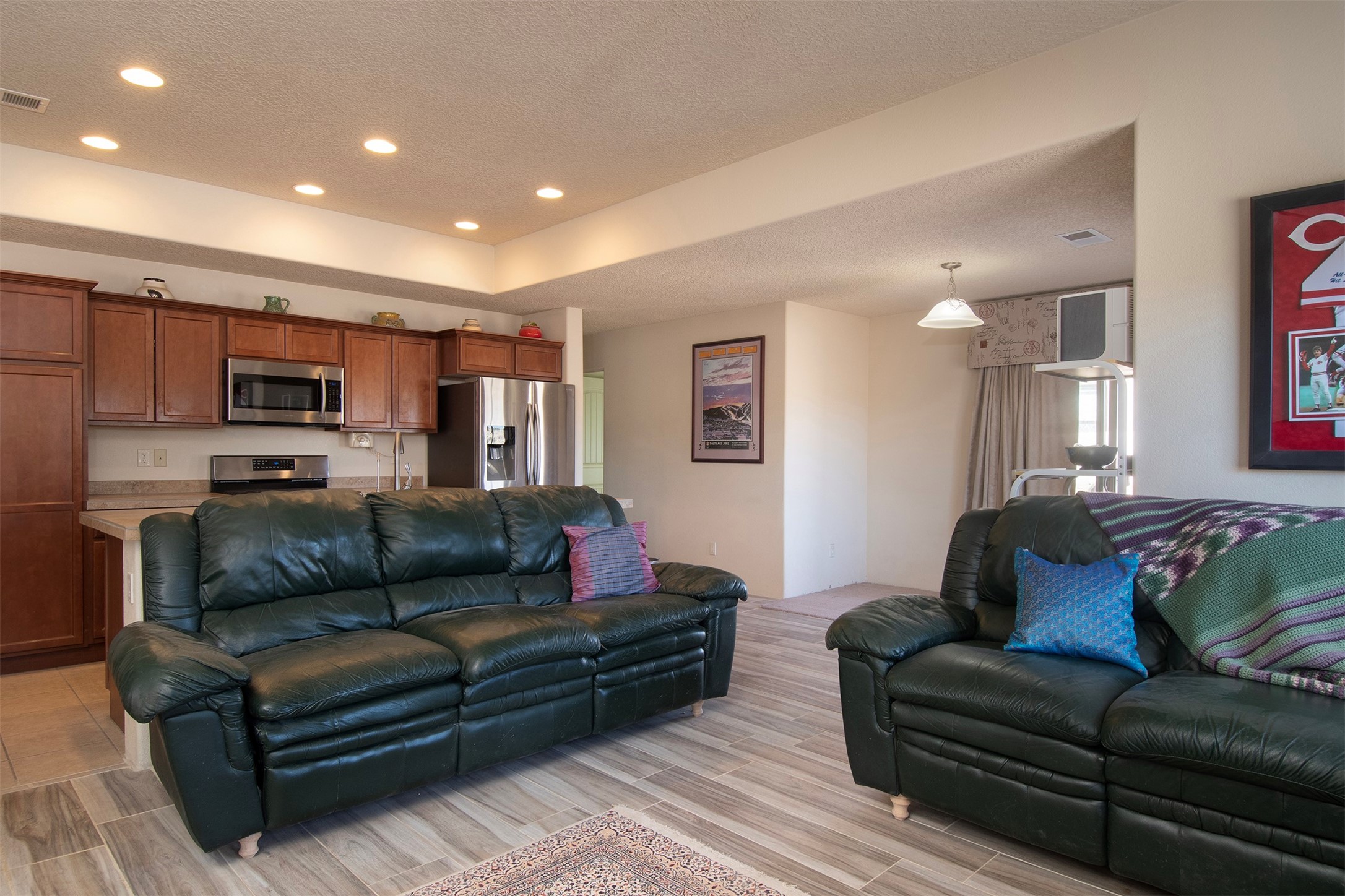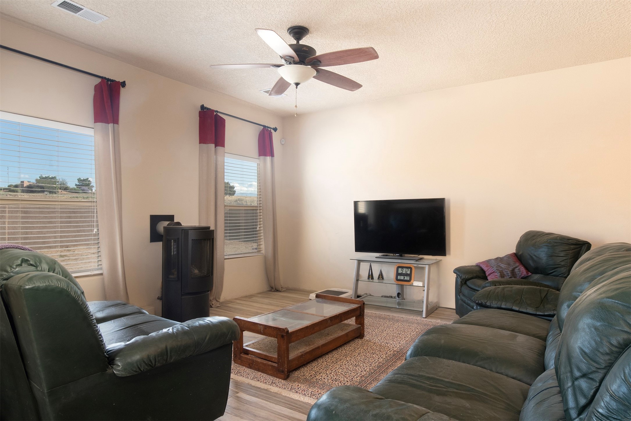 INCREDIBLE PRICE REDUCTION!!! The Sellers want to sell thier home in the highly desirable neighborhood of La Pradera.. The Kitchen, Living room and dining room have a great central flow. Stainless steal appliances with a gas stove and custom cabinetry accent this central kitchen.The primary ensuite offers two separate, spacious closets. The other side of the house offers 3 additional bedrooms and a shared main bathroom. Looking out the living room window you can see the Sangre de Cristo's off in the distance, and to the southwest you have great visibility for the Sandia Mountains. New Stucco, The backyard boasts a spacious backyard, the sellers kept the fence lower to be able to have more visibility of the open space to the side and back of the house. However the Fence has been prepped for additional fencing if the new owners prefer more privacy. A two car garage rounds out the features in this lovely home. La Pradera offers 50% of the grounds for open space, 2 parks, easy acces to the Community College, schools, 599 for Albuquerque or Los Alamos Commuters. 5 minutes to Presbyterian Hospital, shopping or dining. Come by and enjoy this great neighborhood and lovely home.