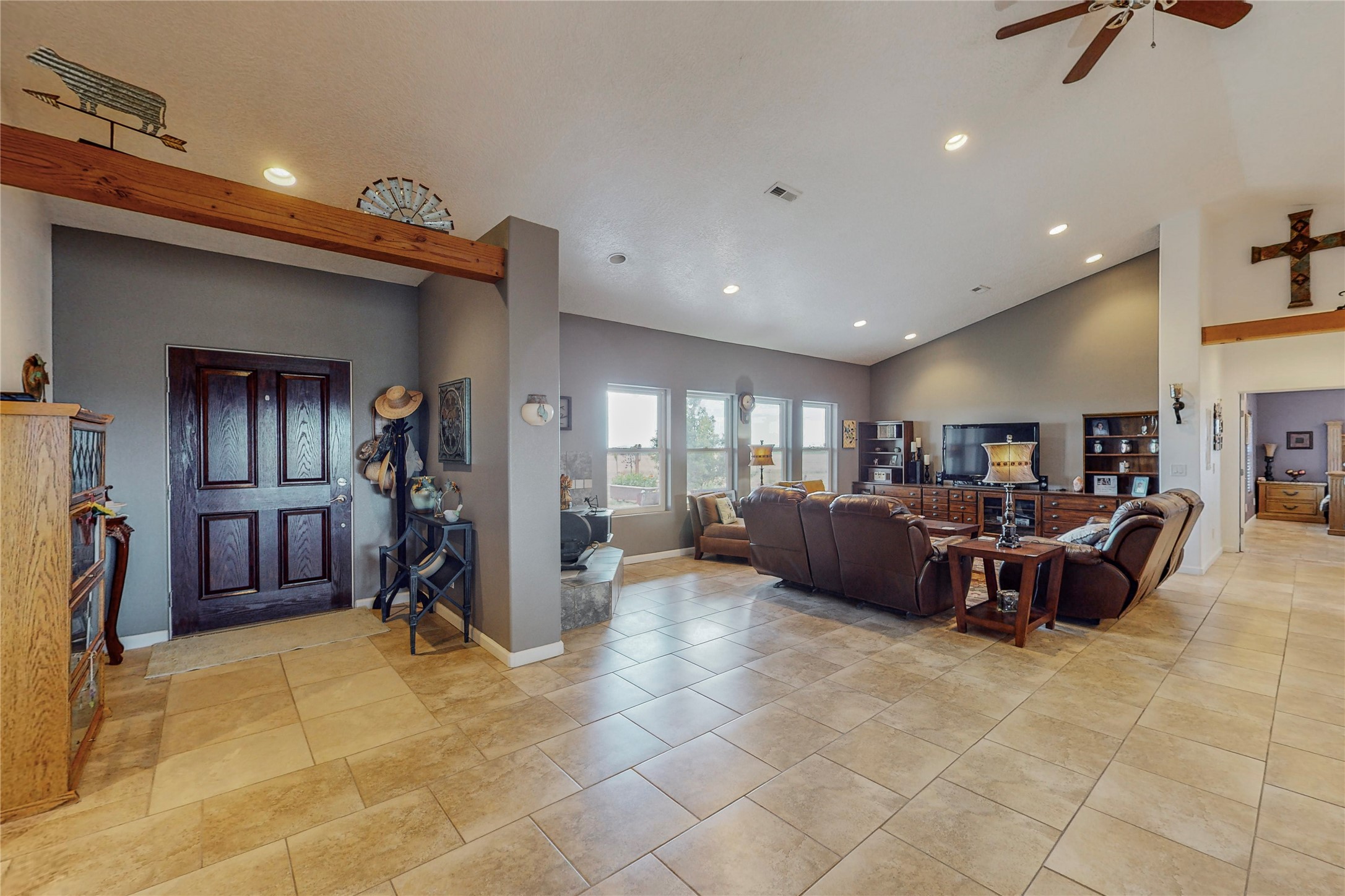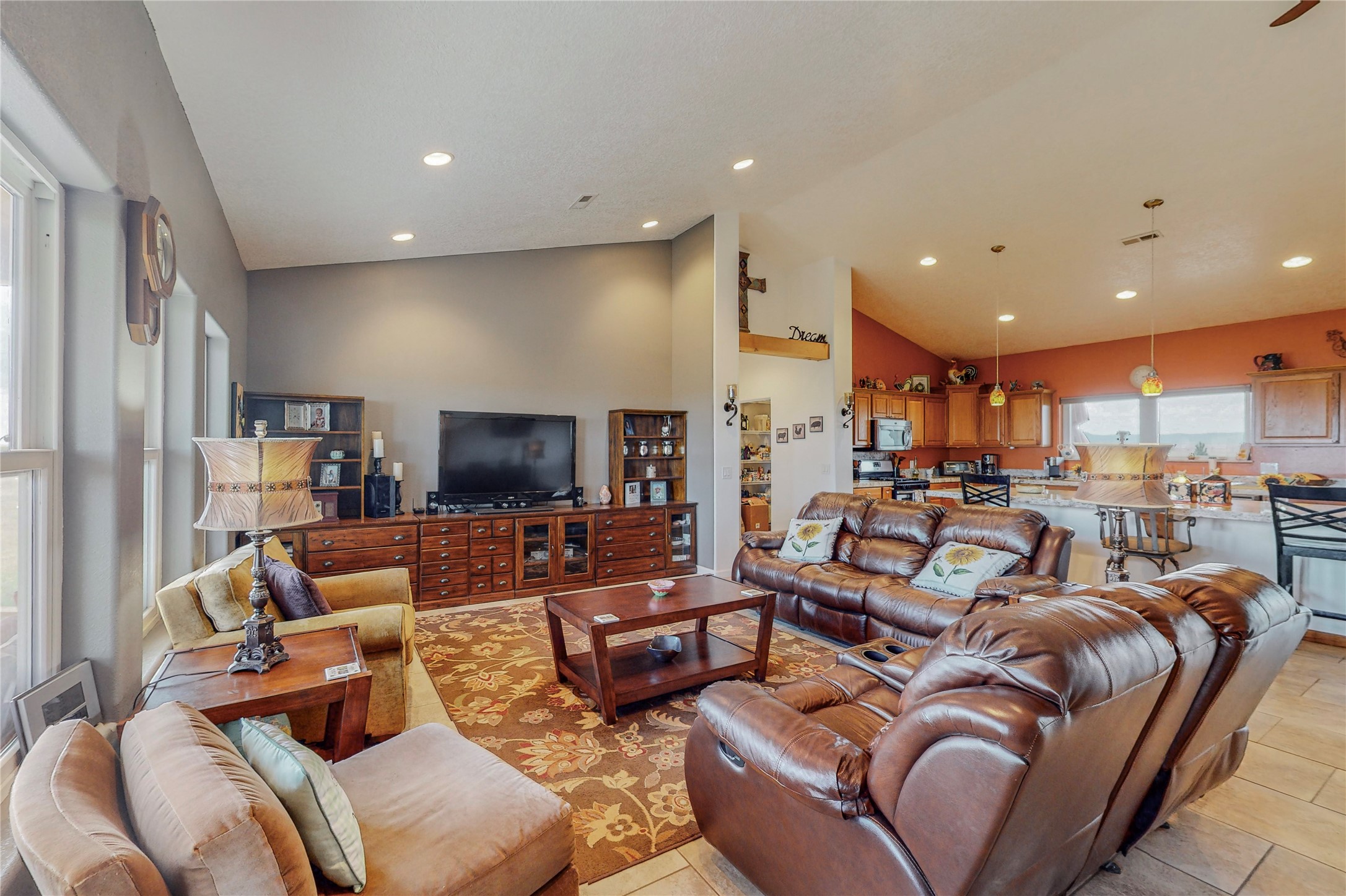Stunning home on beautiful, usable acreage. Home was meticulously built and lovingly maintained by current residents. State of the art heating and cooling for year round comfort, includes 2X6 construction, top of the line windows and doors, radiant heat as well as refrigerated air. Beautiful custom entertainment center stays. Home takes full advantage of the mountain views. Barns and out buildings to shelter cattle as well as other livestock or animals along with tons of storage. There is a two bedroom mobile home on the property that offers a number of options. Currently rented as an Air B & B and utilized often. Property has a total of two separate, domestic wells.