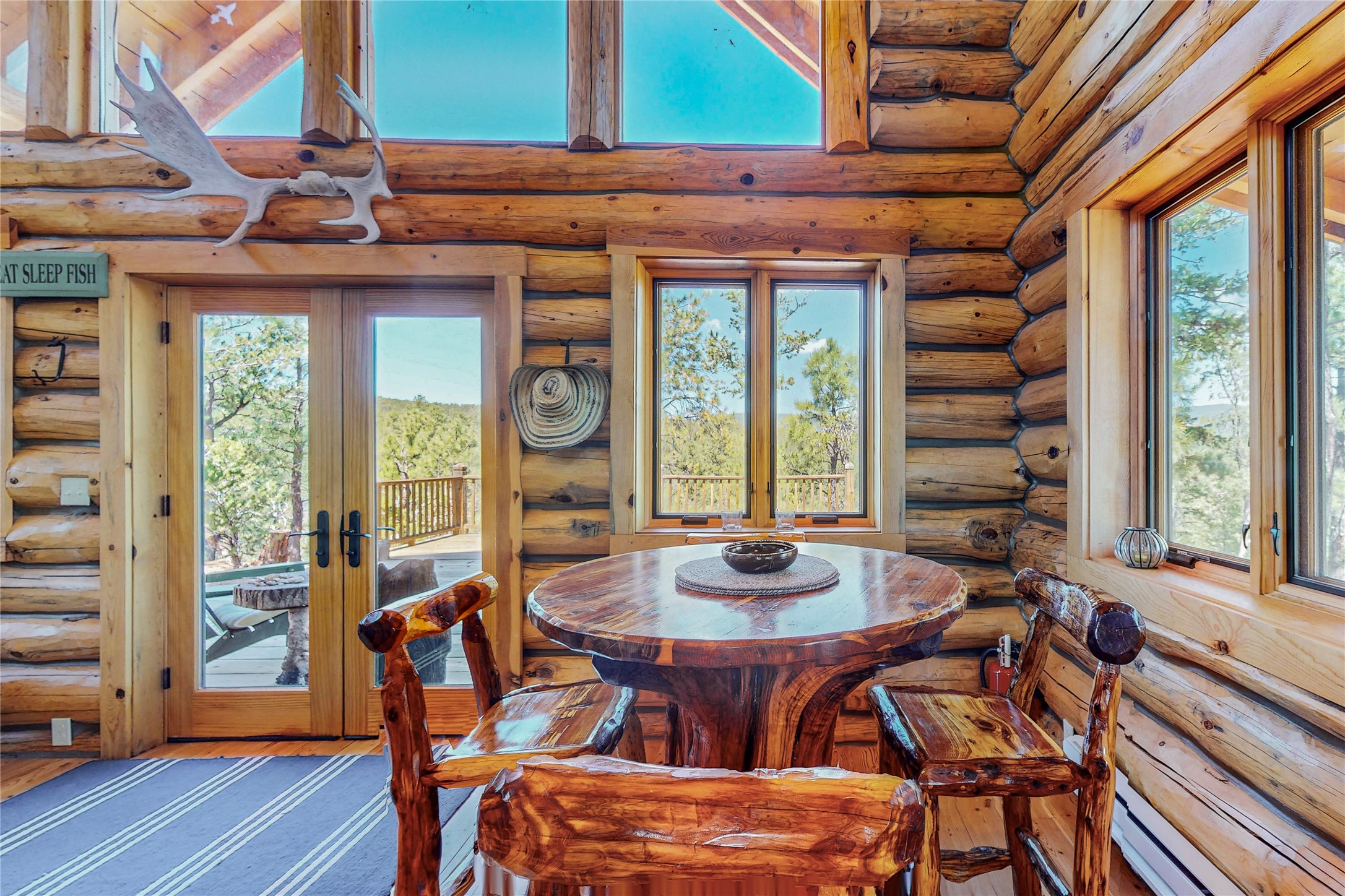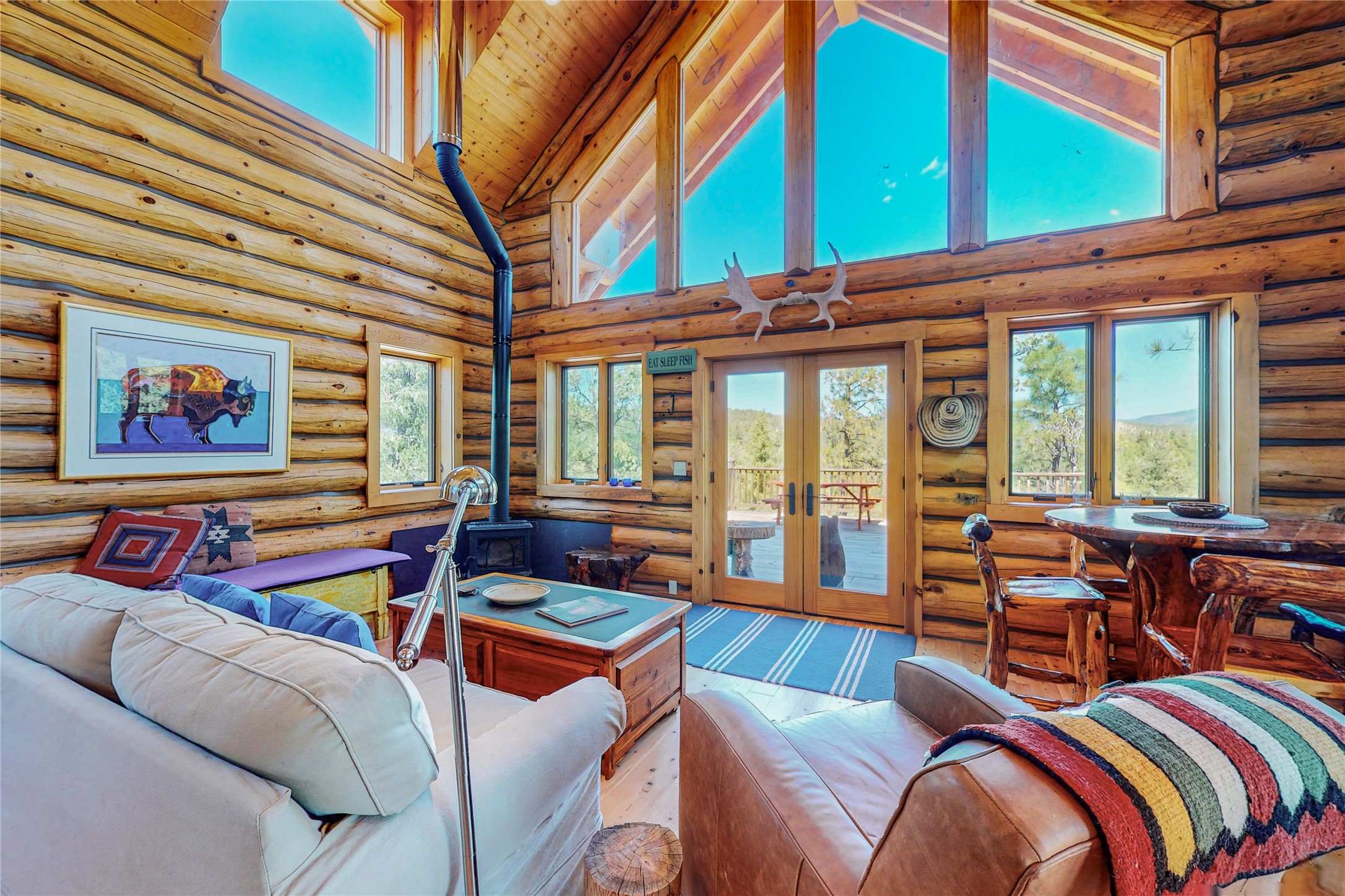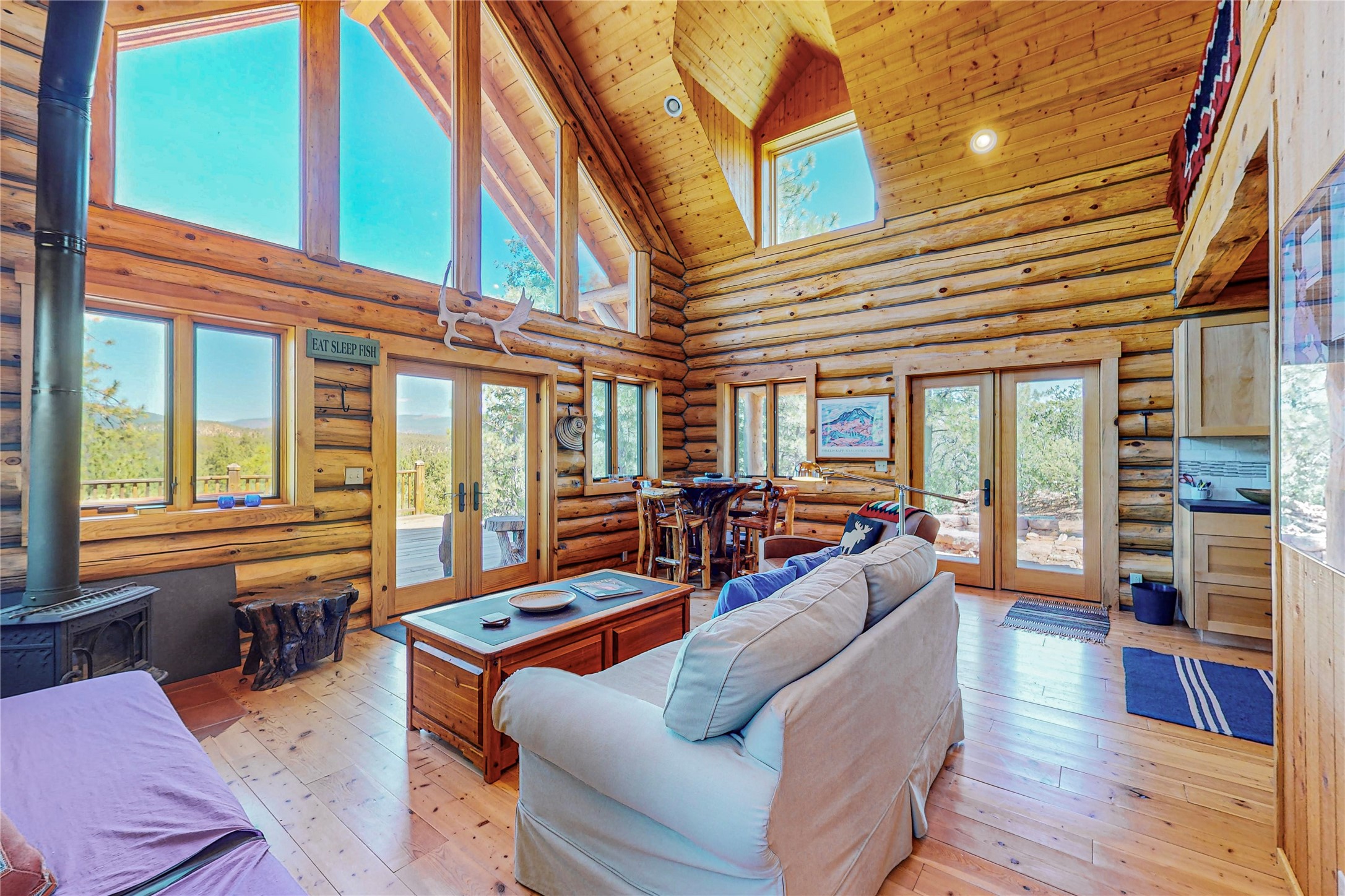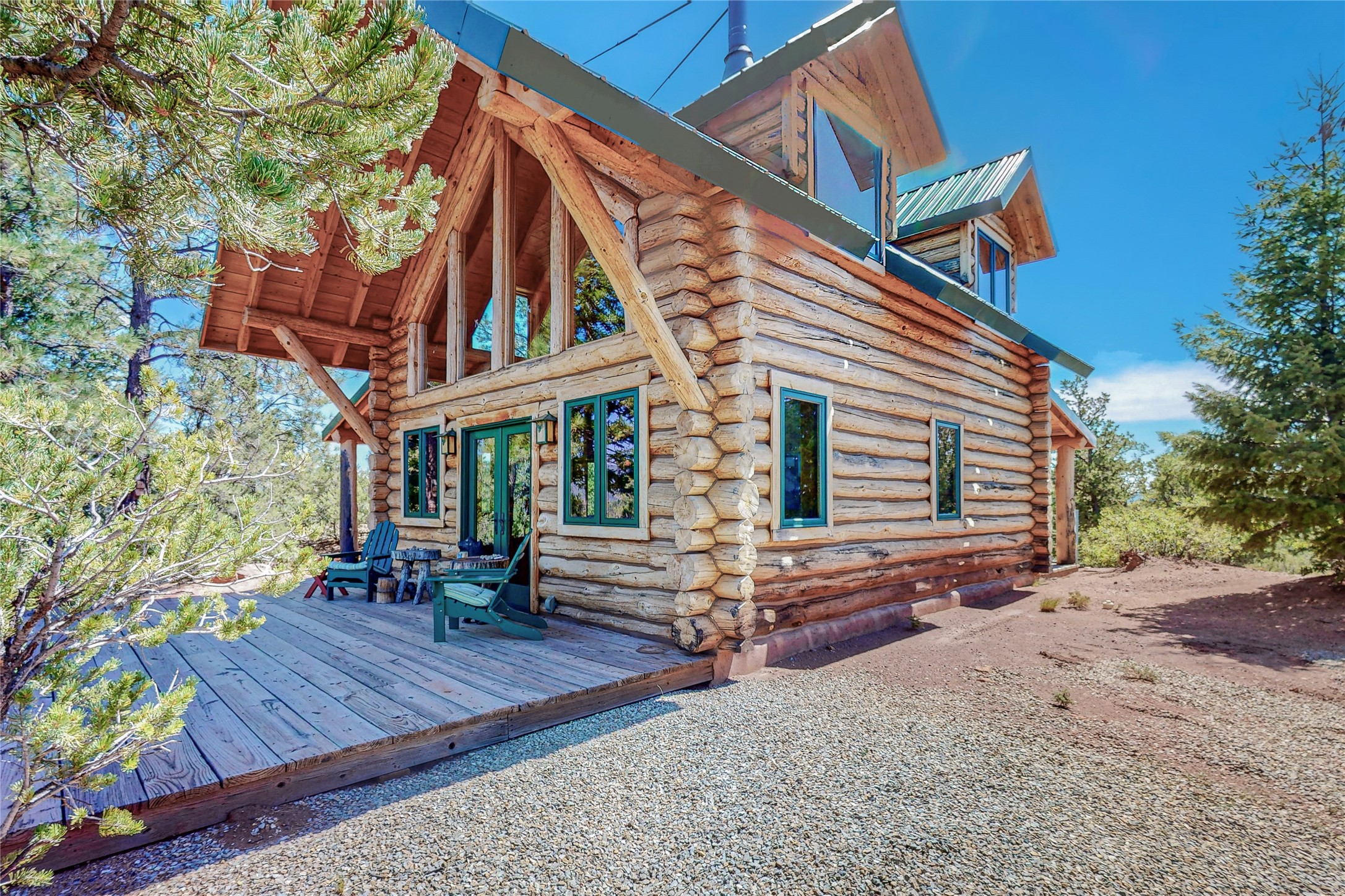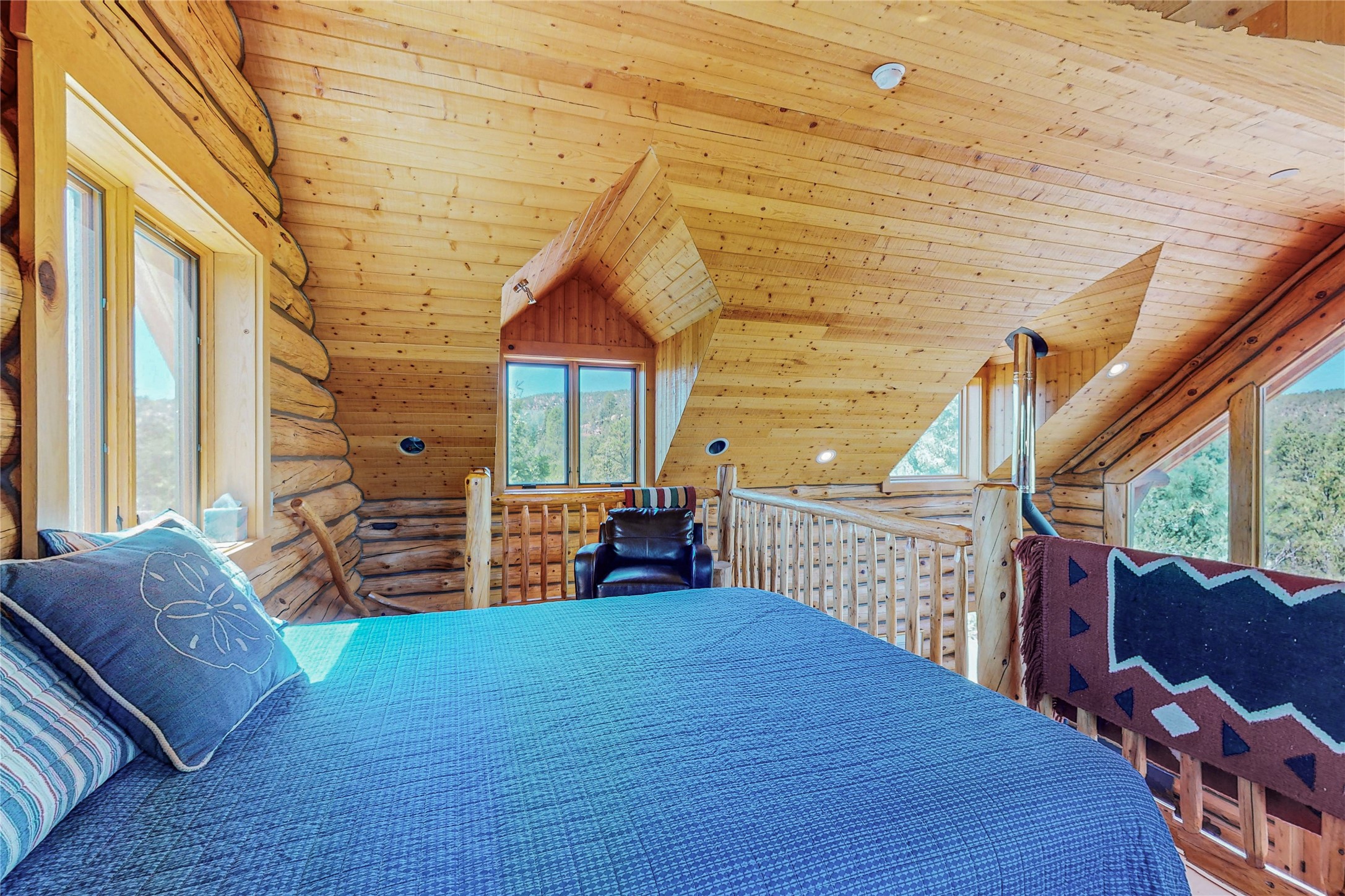VERY RARE, amazing custom built log cabin with stunning 360 views offered to sale for the first time. Located at the top of Los Altos de Cicuye a portion of the property we have been told was the sacred Medicine hill for the Pecos Pueblo and the remains of a Kiva are present. The home was built by Pecos Trail Contractors, the premier builder in the area and the details of the construction are significant. Properties such as this one are rarely available For folks seeking a quality, log cabin please consider Los Altos de Cicuye.