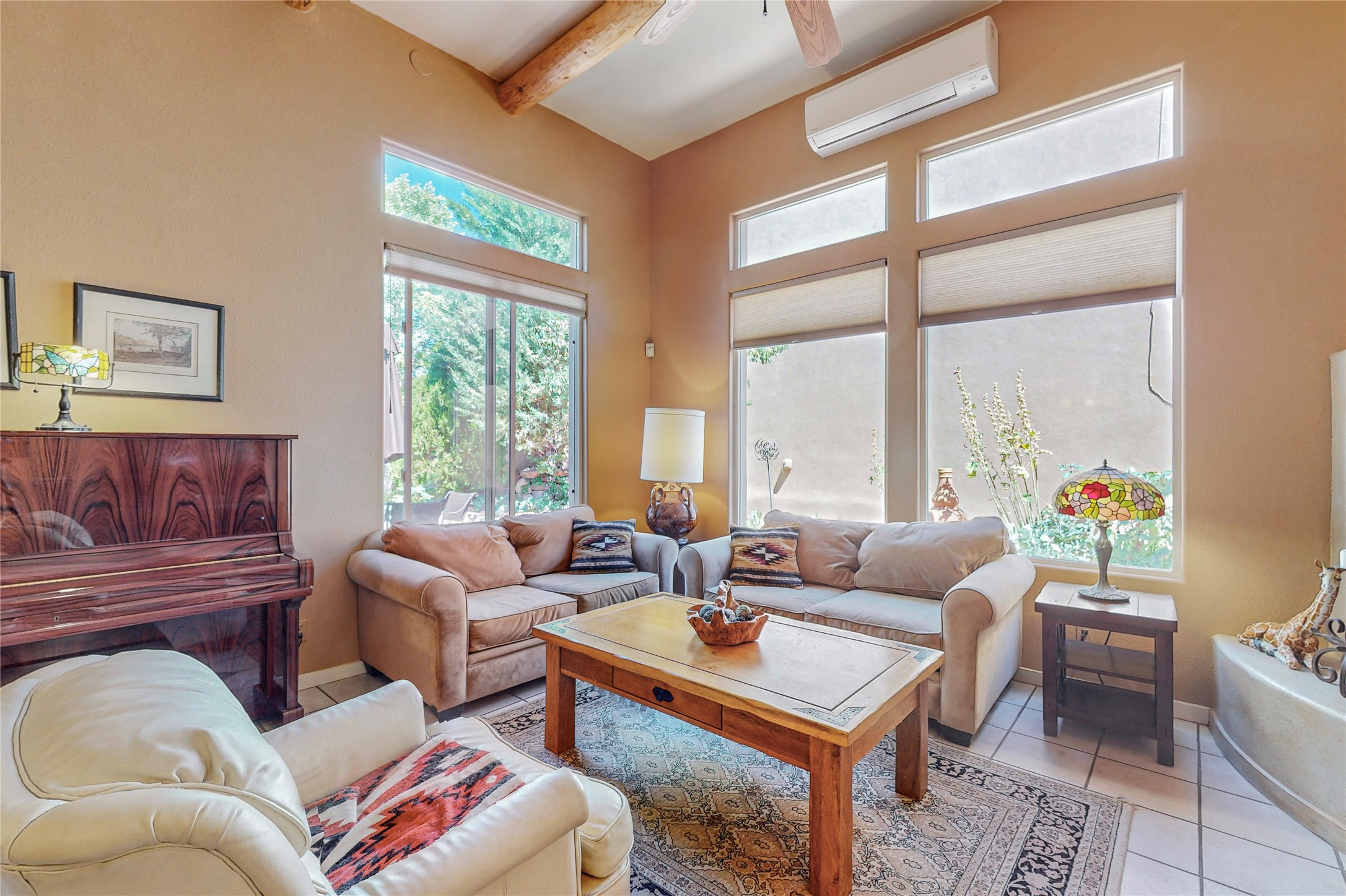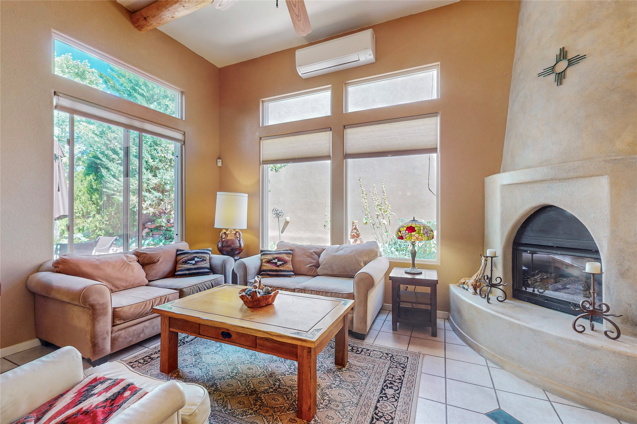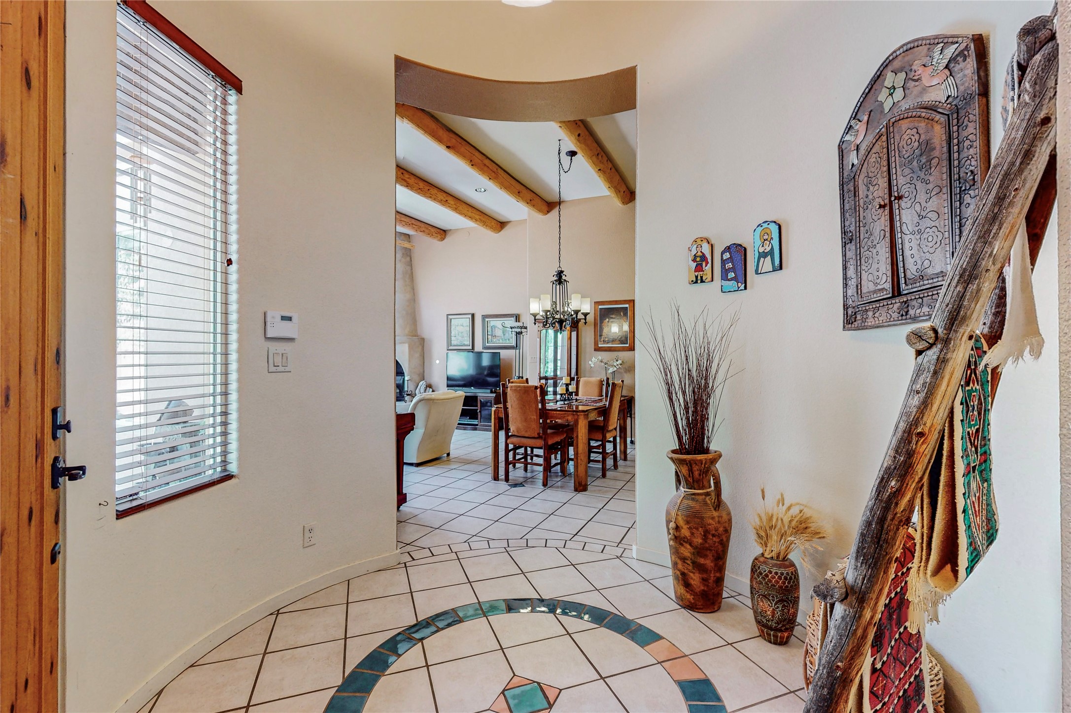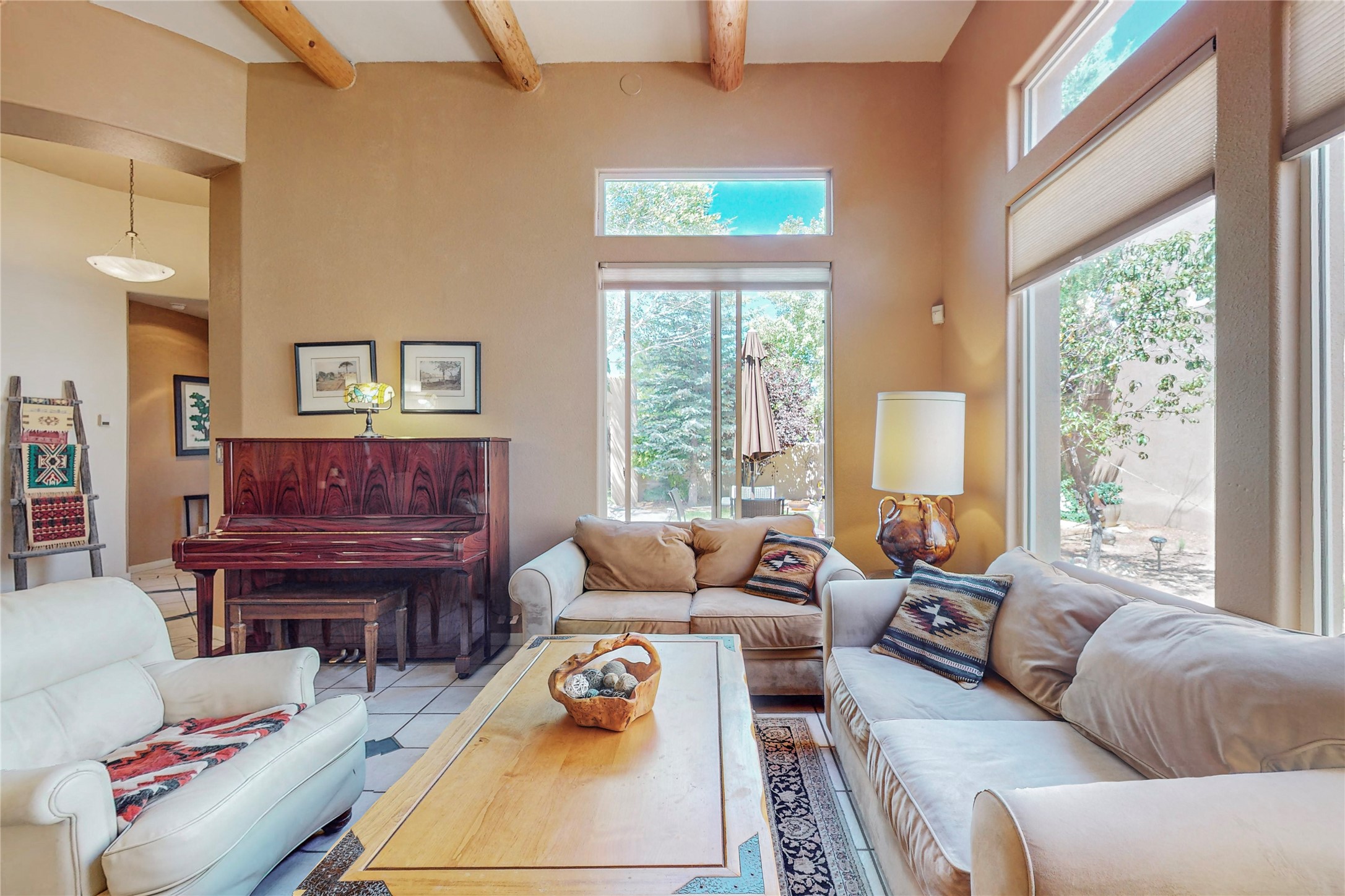 Back on market! Motivated Seller! This extraordinary home, nestled inside the popular neighborhood of Rancho Viejo, has everything you are looking for! Throughout the home, you will find beautiful Southwest touches that make it quintessential Santa Fe. The high ceilings with traditional vigas, large kiva fireplace, and the front circular foyer with its beautiful tiles will delight you. This beautiful home has a sizable kitchen with ample cupboard space, and the open floor plan makes a perfect space for entertaining. The master bedroom is spacious, complete with an ensuite with a large soaking tub and a generous walk-in closet. The quaint backyard comes with two stately trees and the large front courtyard is completely private and beautifully landscaped. The neighborhood is quiet, scenic and has multiple parks. This home is conveniently located near an extensive network of hiking trails and provides easy access to anything you could need in Santa Fe or an easy commute to Albuquerque. What a gem! This house is priced to sell!