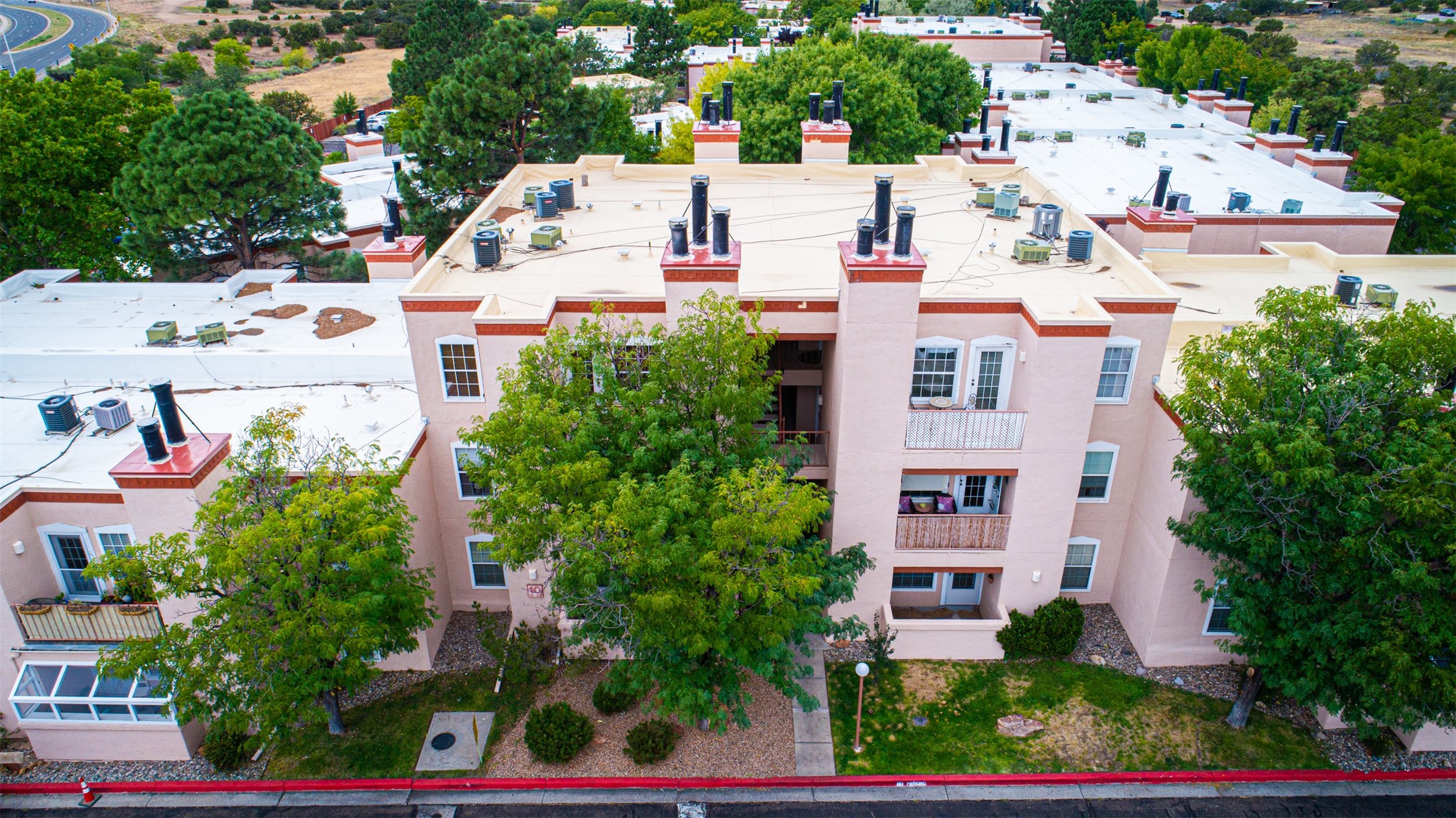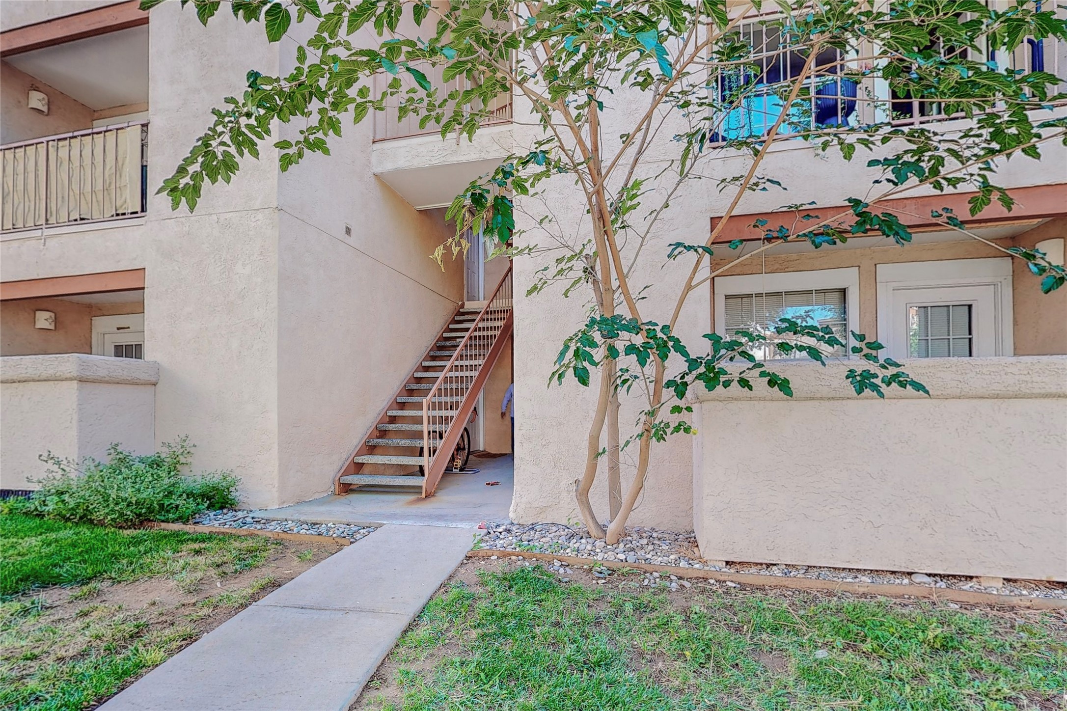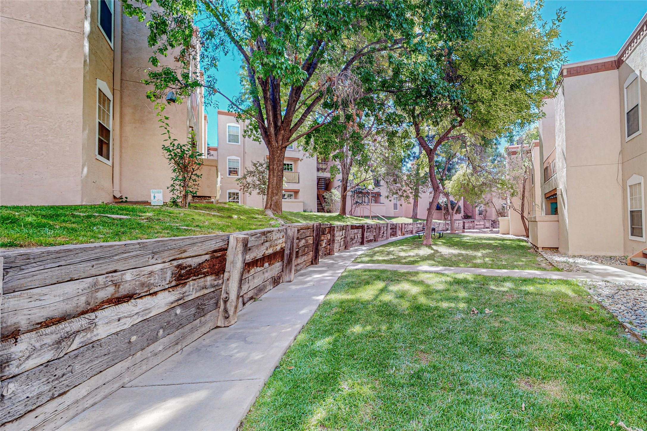 Welcome to this lovely 1 bed , 1 bath Condominium unit located in the beautiful Zia Vista complex. This 3rd floor unit features a private balcony with a wonderful view of the court yard, the perfect combination of cozy and comfort. The kitchen offers a southwestern style tile counter tops, wooden cabinets, and stainless steel appliances. Enjoy a nice fire in the wood burning fire place during the winter in the spacious living area. Located in the highly desired, Zia Vista gated community, with lush lawns, an abundance of large trees and mature landscaping. Enjoy the community pool, gym, clubhouse, the serenity of the beautiful grounds, and the convenience of nearby restaurants and shopping. Located only 15 minutes from downtown and close access to I-25.