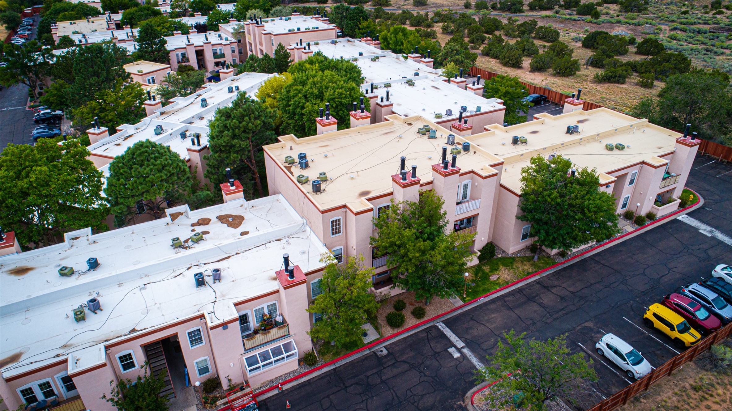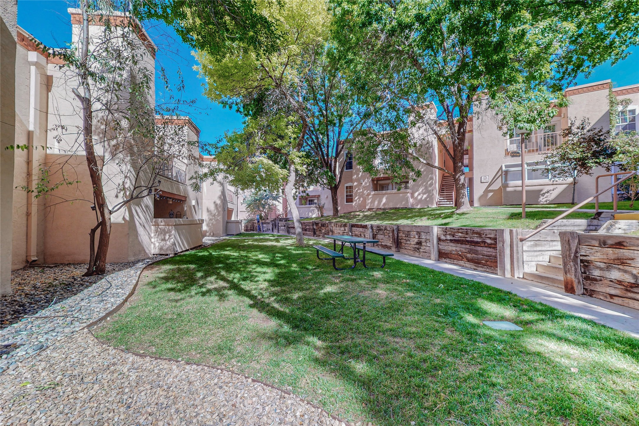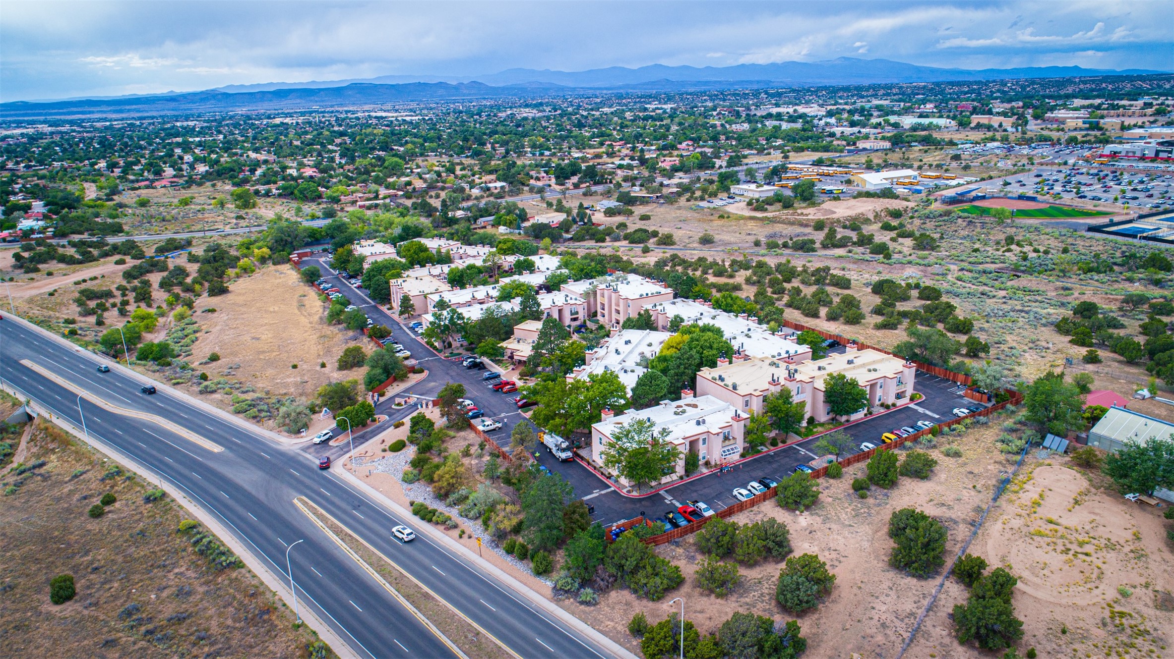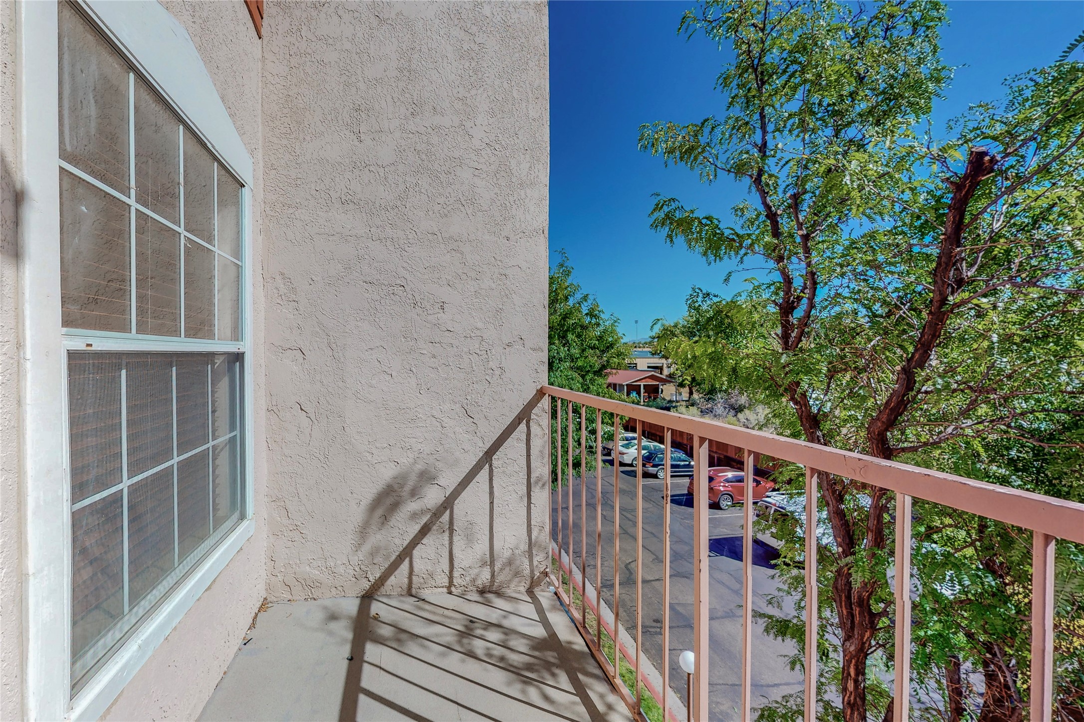 Welcome to this lovely 1 bed , 1 bath Condominium unit located in the beautiful Zia Vista complex. This 3rd floor unit features a private balcony with a wonderful view of the court yard, the perfect combination of cozy and comfort. The kitchen offers a southwestern style tile counter tops, wooden cabinets, and stainless steel appliances. Enjoy a nice fire in the wood burning fire place during the winter in the spacious living area. Located in the highly desired, Zia Vista gated community, with lush lawns, an abundance of large trees and mature landscaping. Enjoy the community pool, gym, clubhouse, the serenity of the beautiful grounds, and the convenience of nearby restaurants and shopping. Located only 15 minutes from downtown and close access to I-25.
