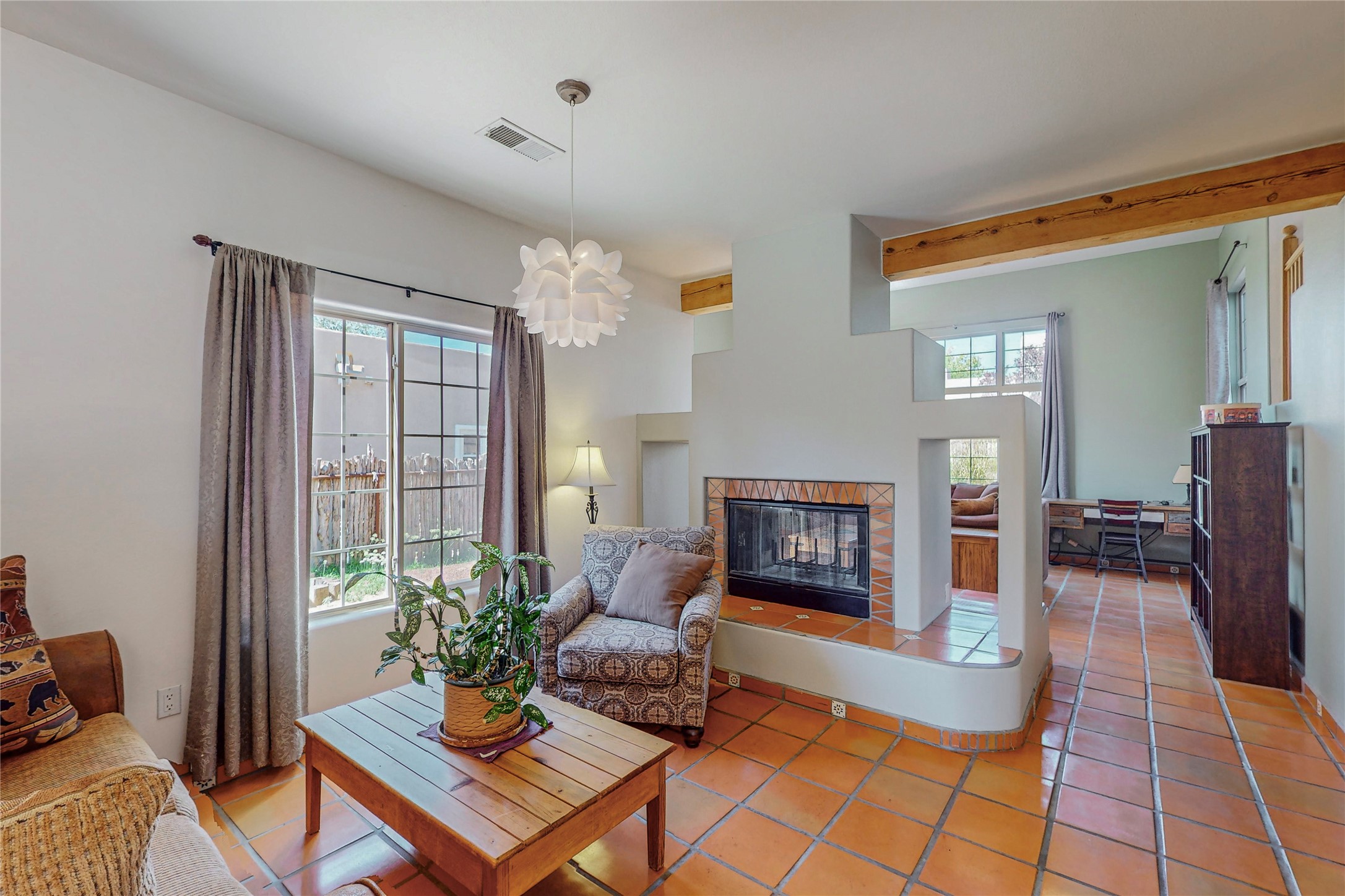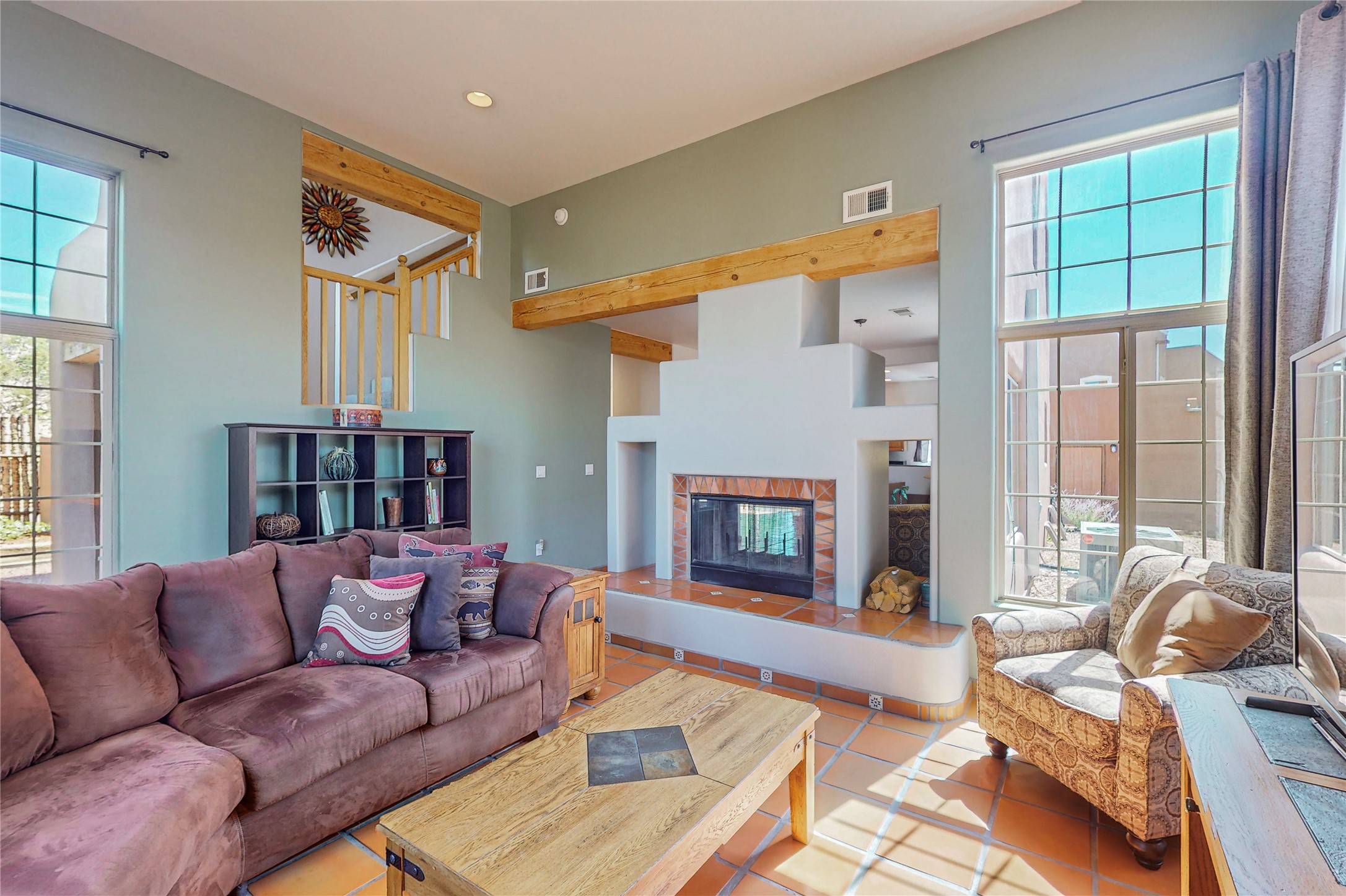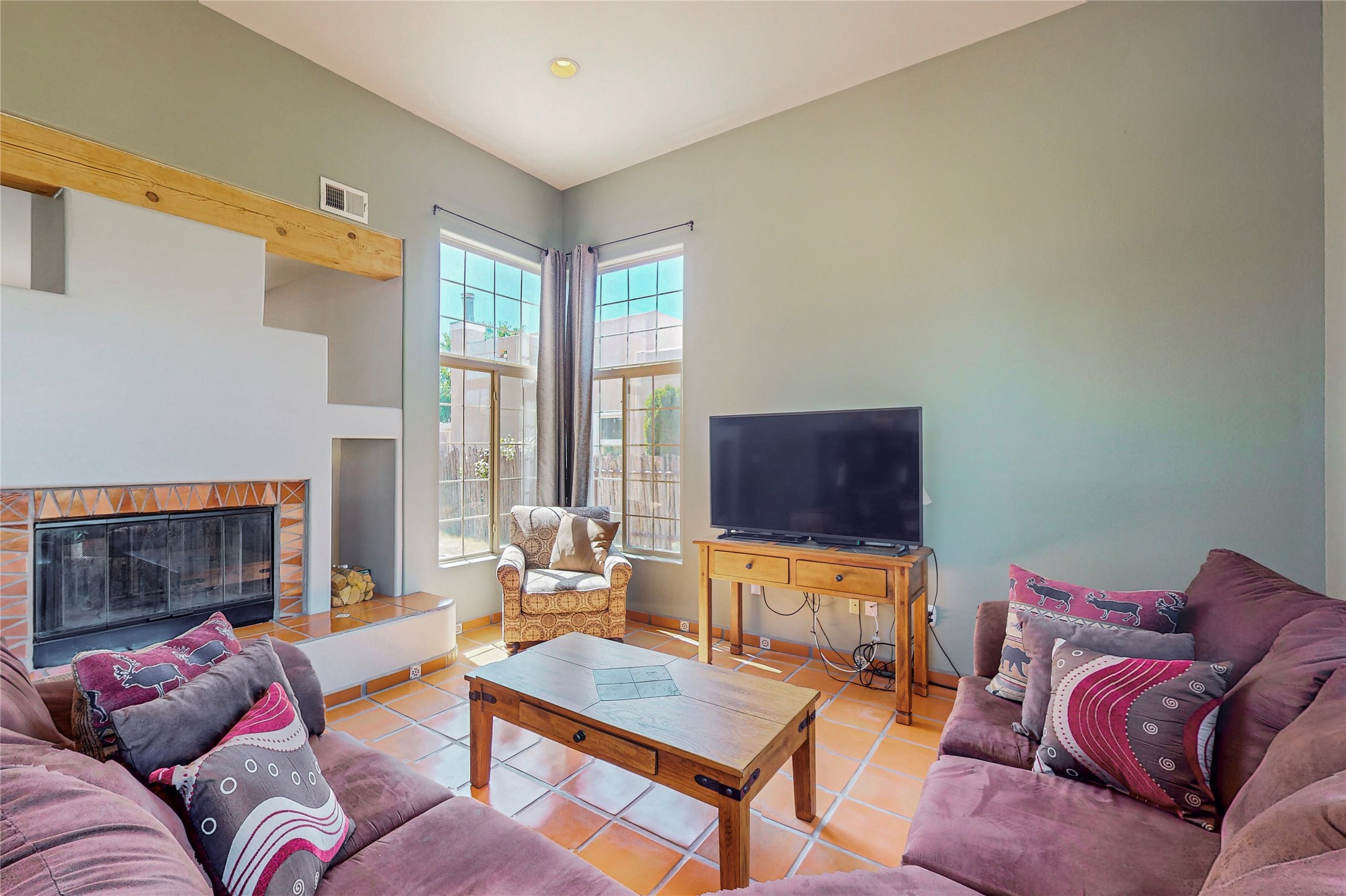 Must see home in Nava Ade, nestled quietly on a cul-de-sac this 3 bedroom 3 bath 2 car garage single family home is a two story with mountain views from every room upstairs. Large master bath with separate shower and soaking tub. This is an open concept home with tall ceilings and plenty of light! The double sided fireplace is beautiful and cozy and adds warmth for those cold winter nights. This home provides central heating and air-conditioning, saltillo tile throughout the entire first floor, an additional sitting room, lots of storage and a nice size yard with mature trees with drip irrigation and coyote fencing! A clubhouse, pool, community parks, gym and walking trails are amenities that are provided within the Nava Ade community. This home is conveniently located near shops, the Chamisas Arroyo bike/walking trail, and I-25 for commuting to and from work.