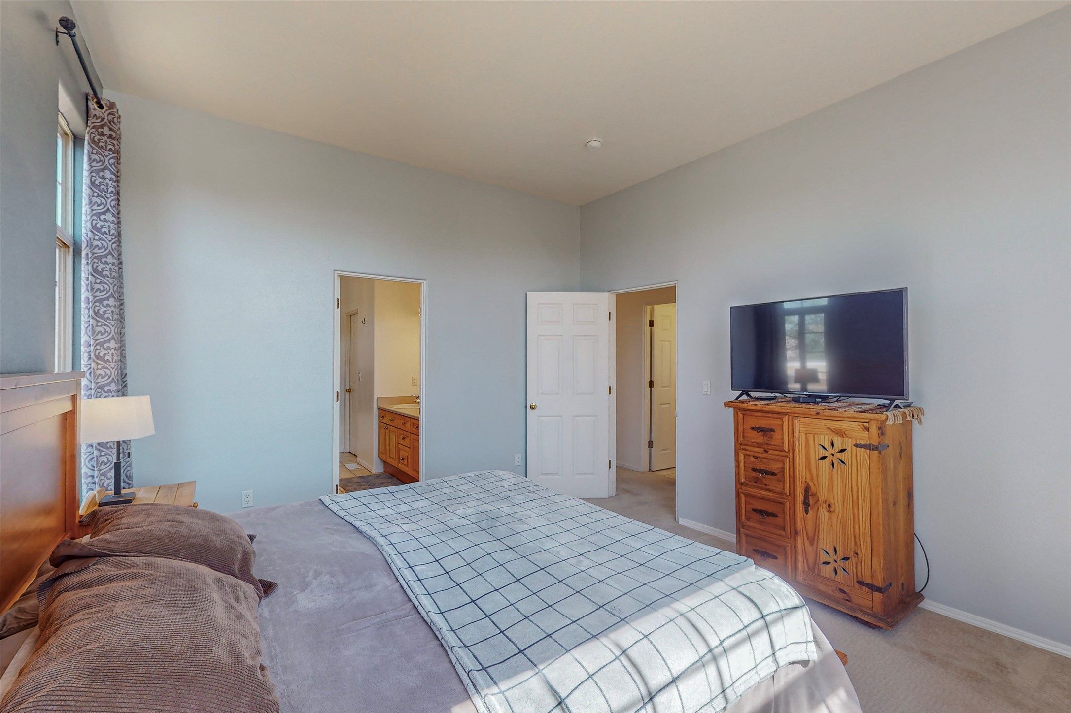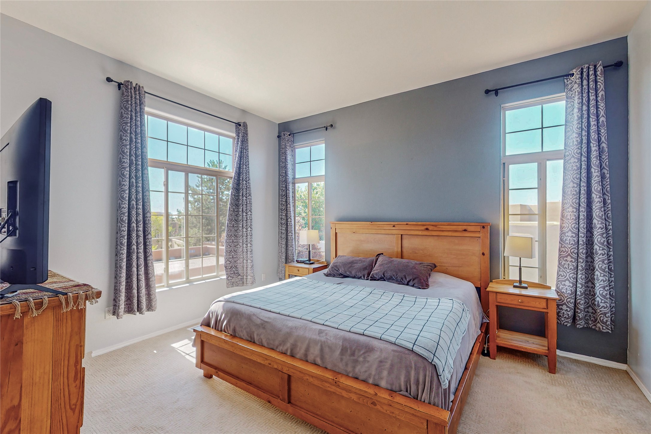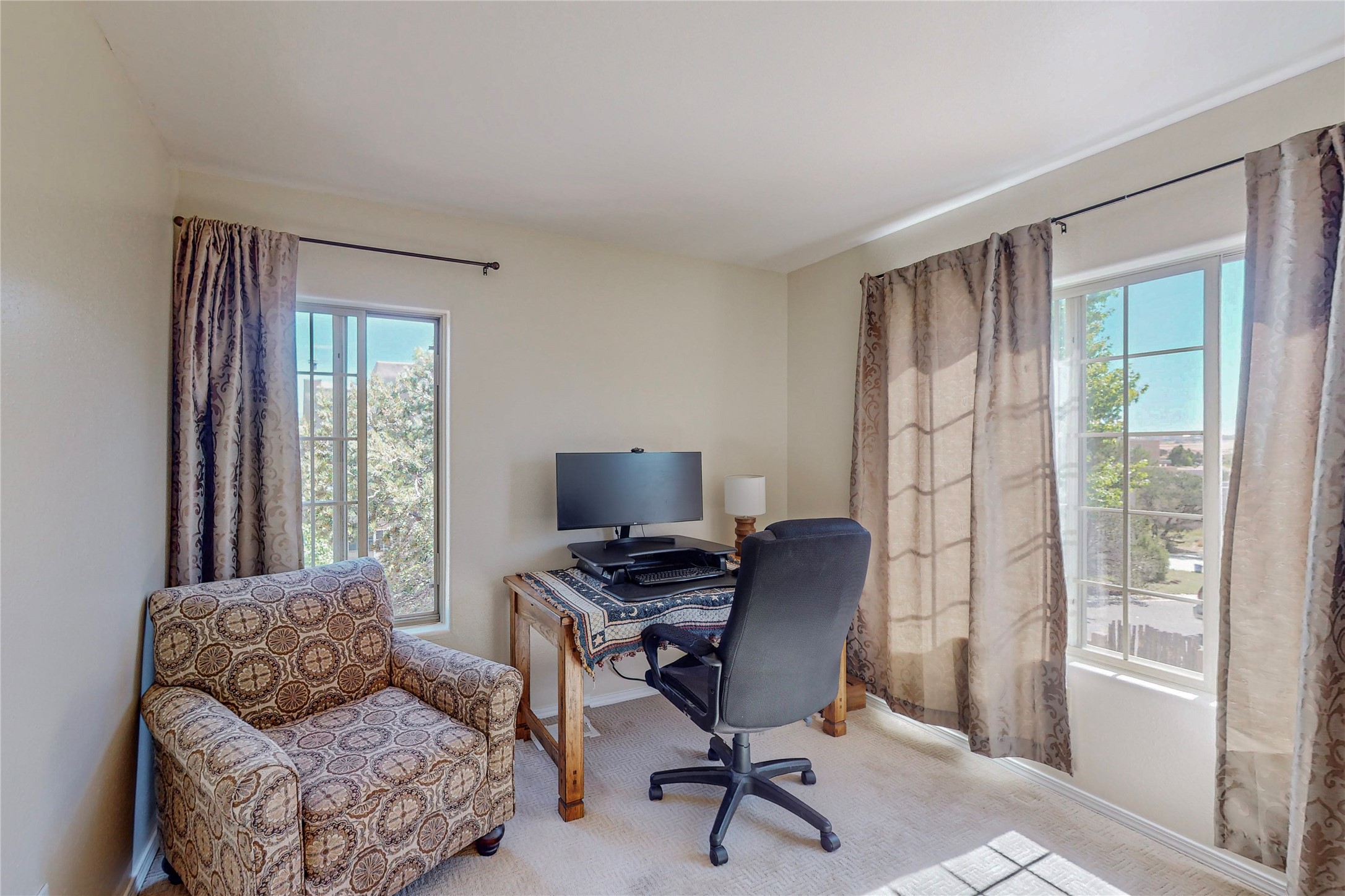Must see home in Nava Ade, nestled quietly on a cul-de-sac this 3 bedroom 3 bath 2 car garage single family home is a two story with mountain views from every room upstairs. Large master bath with separate shower and soaking tub. This is an open concept home with tall ceilings and plenty of light! The double sided fireplace is beautiful and cozy and adds warmth for those cold winter nights. This home provides central heating and air-conditioning, saltillo tile throughout the entire first floor, an additional sitting room, lots of storage and a nice size yard with mature trees with drip irrigation and coyote fencing! A clubhouse, pool, community parks, gym and walking trails are amenities that are provided within the Nava Ade community. This home is conveniently located near shops, the Chamisas Arroyo bike/walking trail, and I-25 for commuting to and from work.