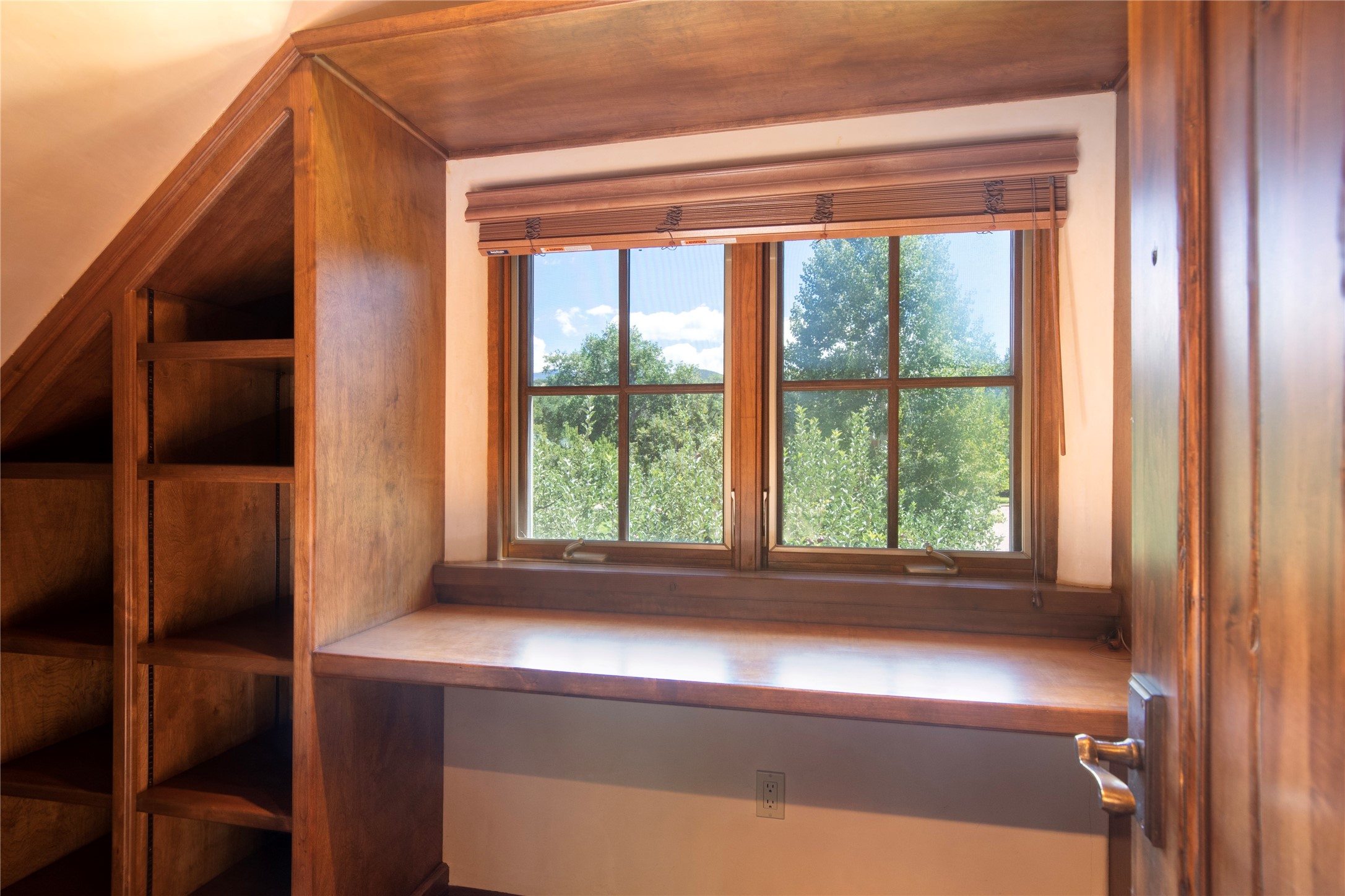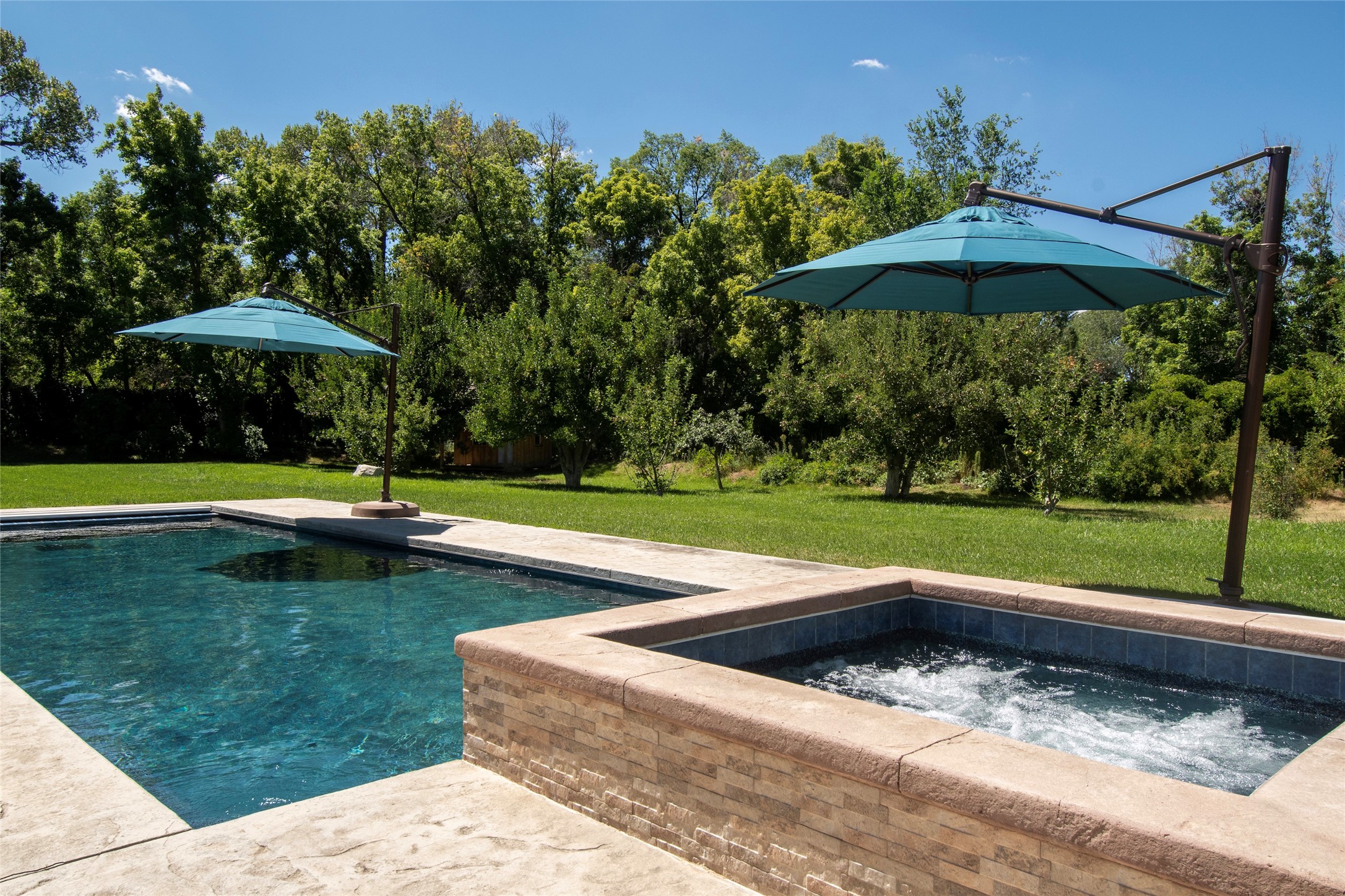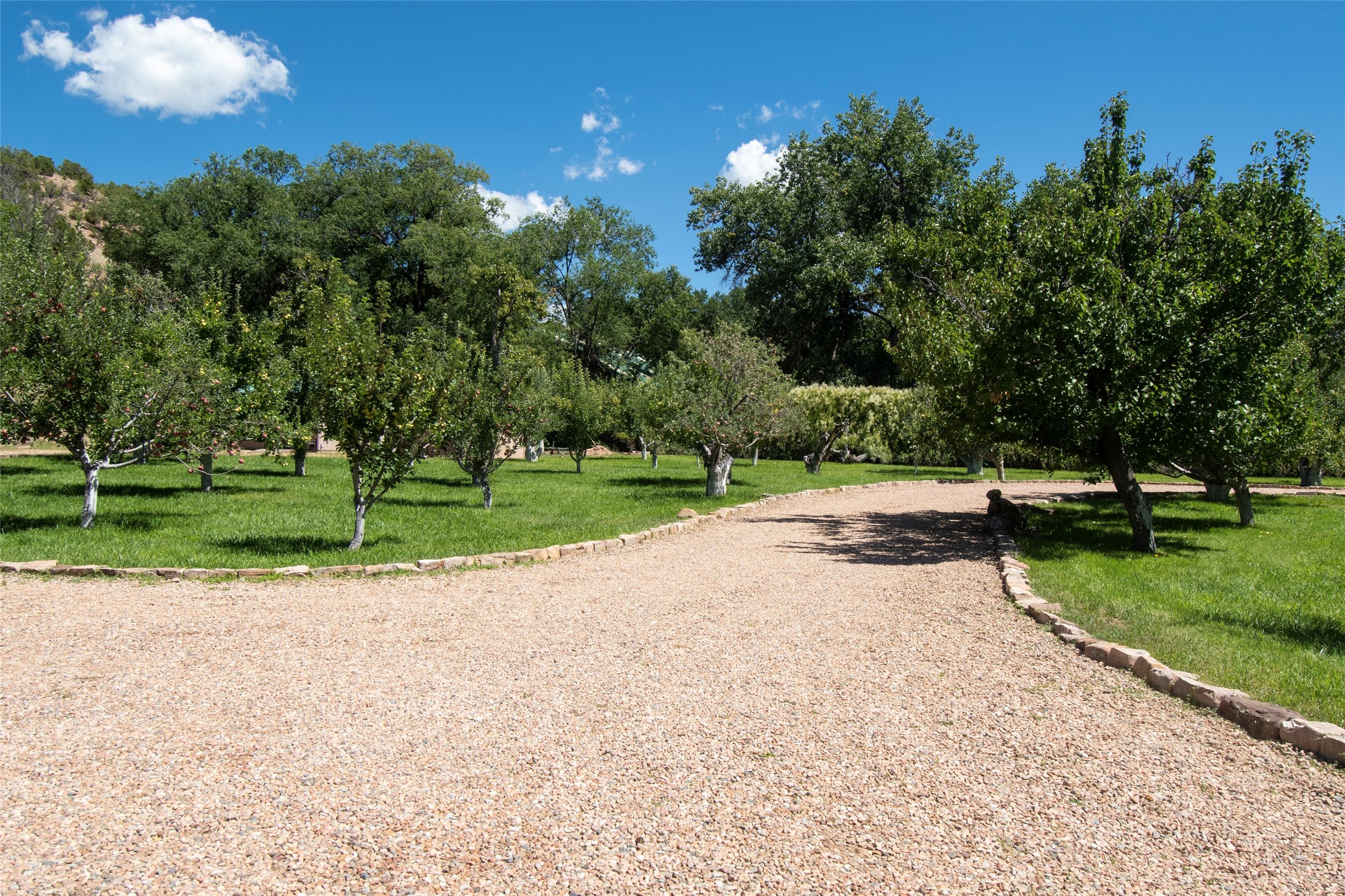 Designer David Naylor and architects Colin Keegan and Larry Andren have brought this remarkable Northern New Mexico style home to life. Featured in designer David Naylor's book "Old World Interiors - A Modern Interpretation," this home is a stunning tribute to craftsmanship and is unique in every way. The standing seam pitched roof and wrap around portal accent the architectural style. The kitchen, with excellent quality appliances and an abundance of cabinets and counterspace, and the dining room both open to the great room with high, coffered ceilings and stone fireplace. The main suite to the right of the entry hall on the first floor has a walk-in closet with built-in cabinets. The good-sized bathroom has natural stone floors, shower, jetted tub, two sinks and a water closet. French doors on either side of the bedroom lead to the wraparound portal. A sparkling blue swimming pool with waterfall feature and spa are near the master, and an outdoor shower is conveniently located just outside. The upstairs is divided into two loft sections with each having its own stairway. The stairway to the left loft leads up to a sitting room featuring a balcony. This loft has a good-sized bedroom, with a 3/4 bath. The right loft features two ensuite bedrooms and each with a balcony. One bedroom has a study with built-in bookshelves. From upstairs it is easy to view this well-maintained property: Bishop Lamy lilac bushes, a vegetable garden, the labyrinth. There are terraces and gardens, and even an organic apple orchard (plus pear, apricot and plum)! Two acequias run through the property and there is a well on each of the two legal lots. Some land overlooks the Tesuque River and abuts the Santa Fe National Forest. Completely private, this home is just minutes to town. Built from Rastra, an energy efficient and very strong material, this property is simply magnificent in every way.