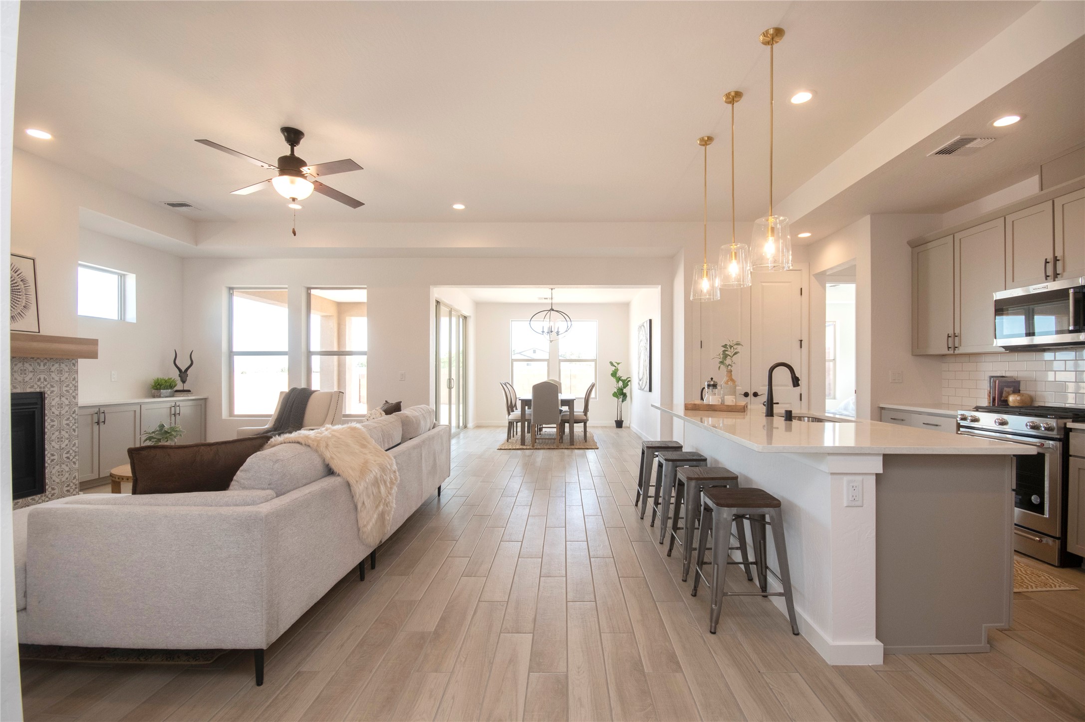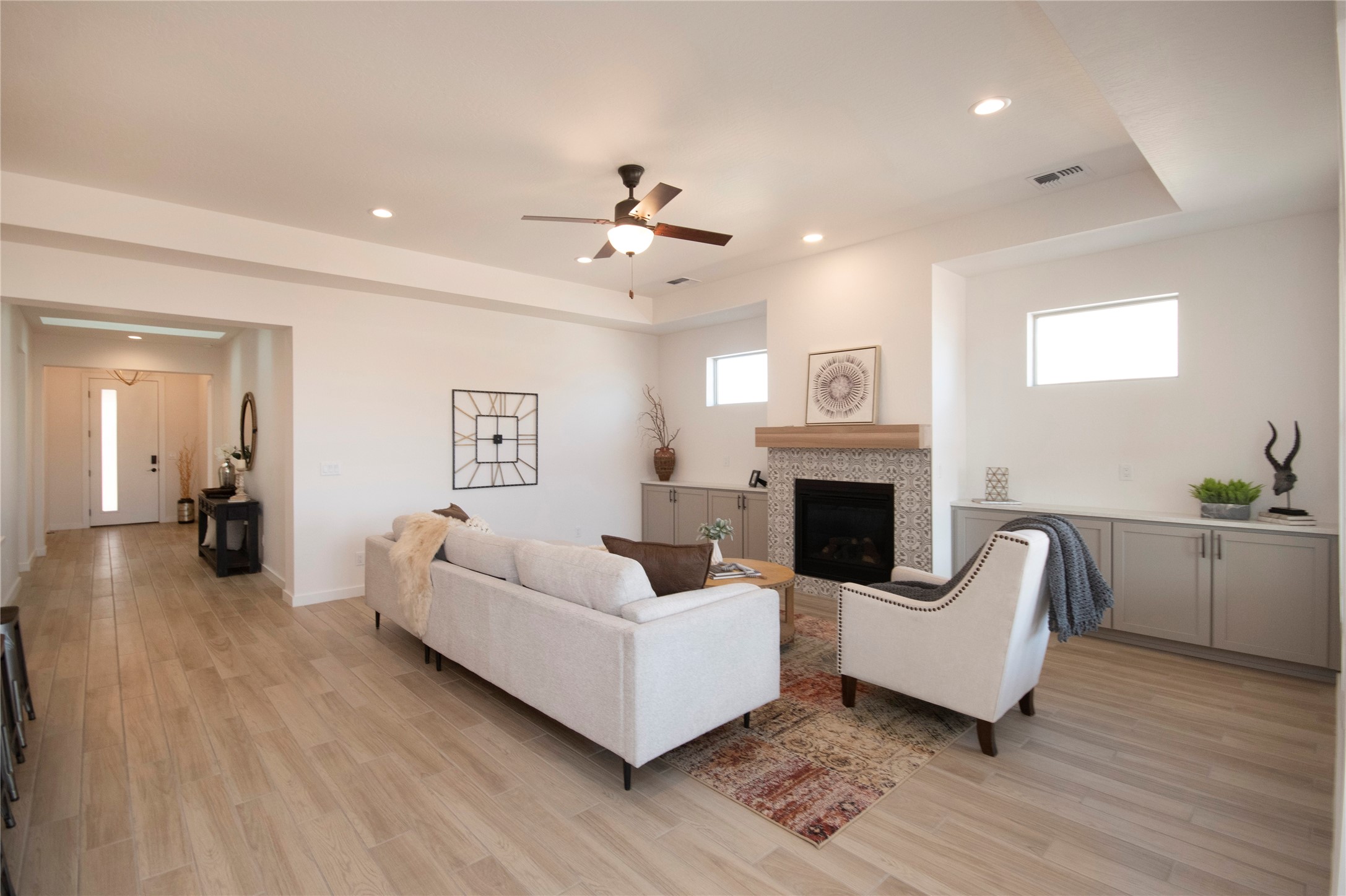 This 4-bedroom Cypress is the one you have been waiting for! As soon as you walk in the skylights in the hallway greet you with sunshine. The soft grey cabinets, white countertops, wood-look tile floors, stainless steel appliances, 8ft white doors, fun and classy decorative tile on the fireplace with a wood box beam mantle makes this open-concept floorplan just stunning! Backyard Landscaping is included and will be installed in the coming weeks. Don't forget about the 210 warranty...buy with confidence!We look forward to helping you make this one yours!****$12K FROM THE BUILDER****To be utilized towards rate buy down or closing costs. BUYER GETS TO PICK HOW TO USE IT!