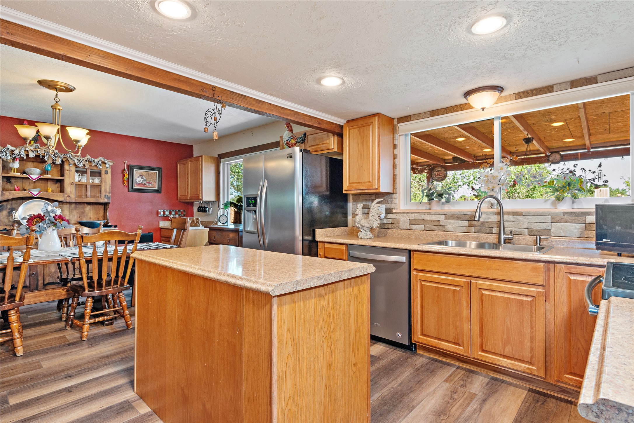 Beautiful 4 bedroom 2 bathroom home ready for a new family. Home is open concept filled with natural light, kitchen has stainless steel appliances with a deep walk in pantry and a large dining room perfect for entertaining family and guests. Saltillo tile and wood floors in main areas and cozy carpet in the bedrooms. A large fenced in backyard with low maintenance landscaping, mature trees and, a covered porch with additional storage shed tucked away in the corner. Conveniently located in established neighborhood near shopping and restaurants, only 15 minutes from the plaza.See Matterport for complete look at the property